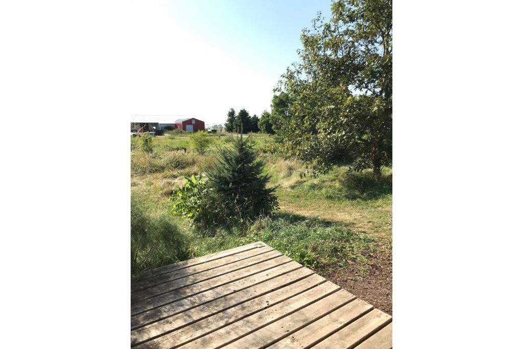 Grinnell Heritage Tiny House - On Organic Farm Grinnell Tiny House is a peaceful space with some of the best views of the farm. Sip morning coffee on the deck while overlooking the majestic views of the prairie, chestnut trees and listening to the birds sing. Take a stroll through the seasonal organic vegetable garden and sit in the hammock under a shade tree. Just a stones throw away from Ahrens Park, Grinnell College and Downtown Grinnell makes it an ideal place for biking to and from events.