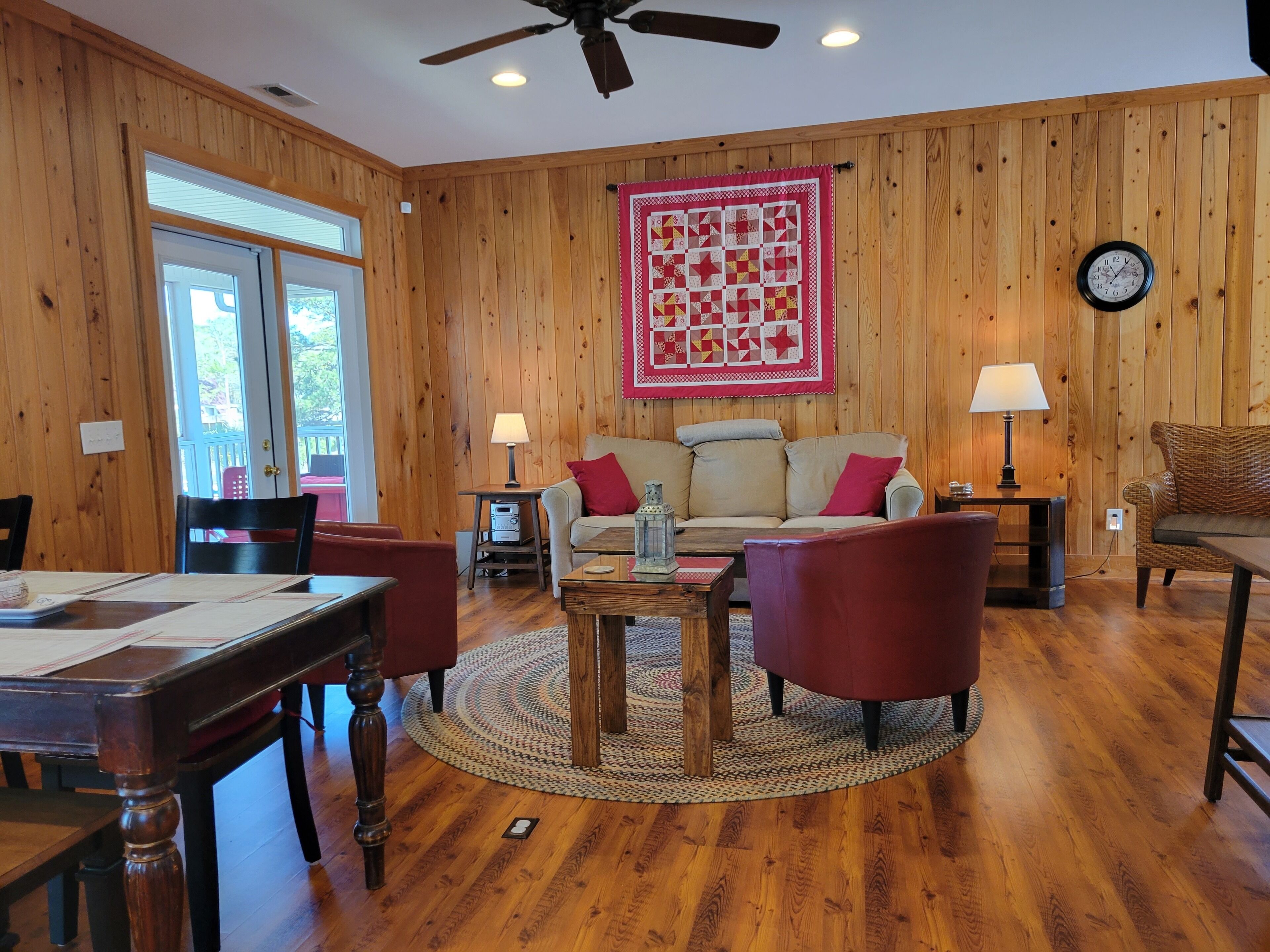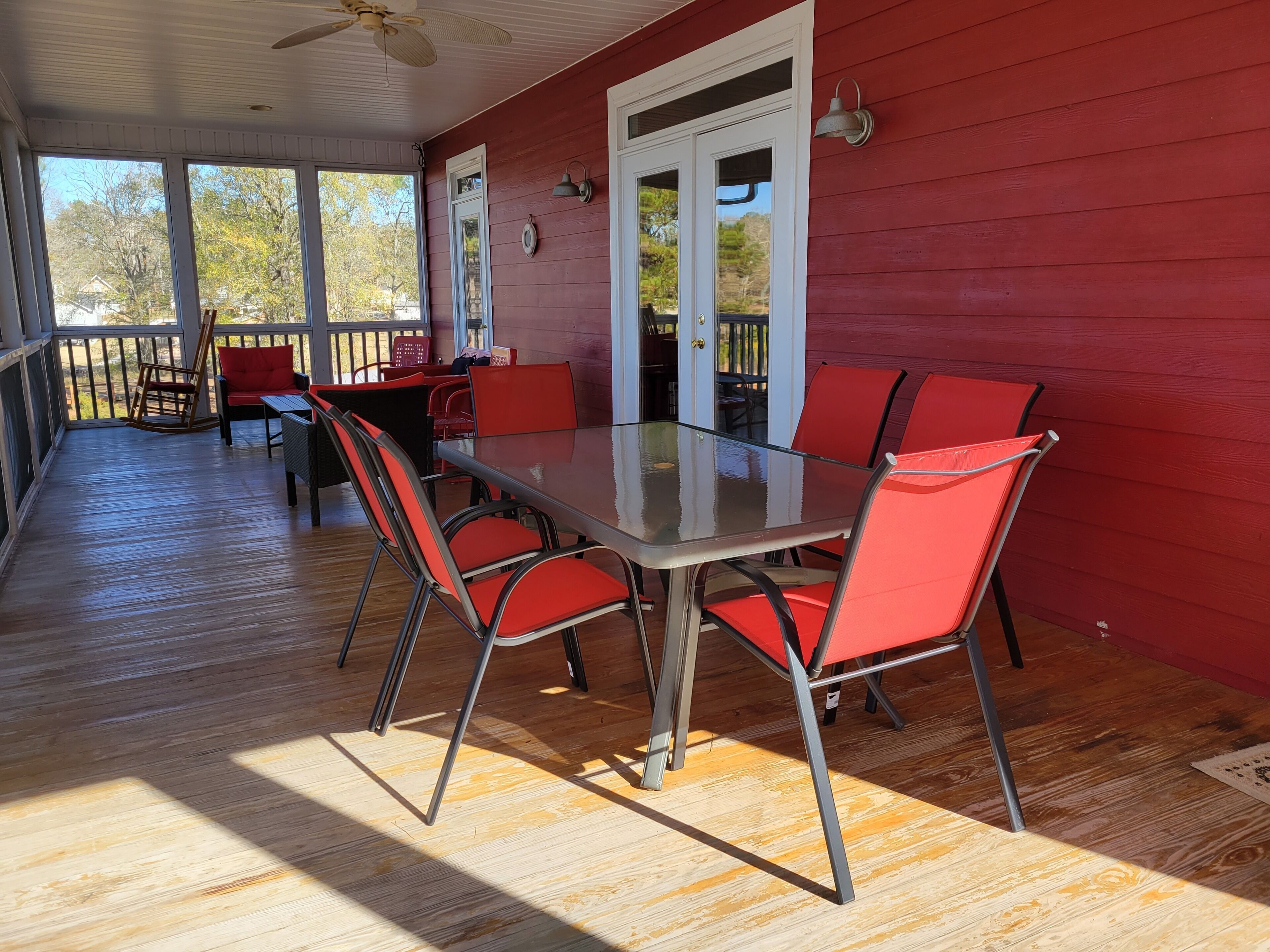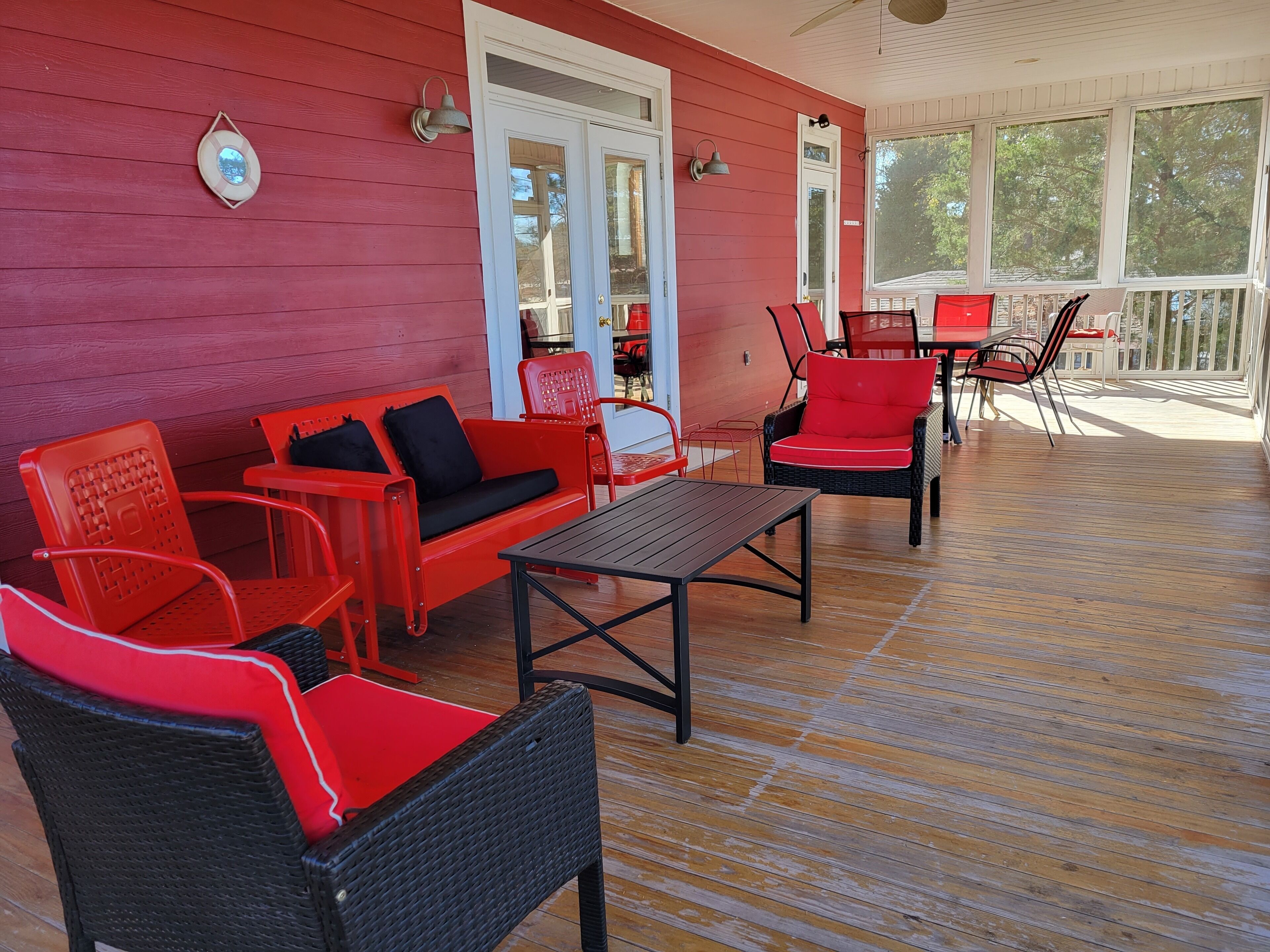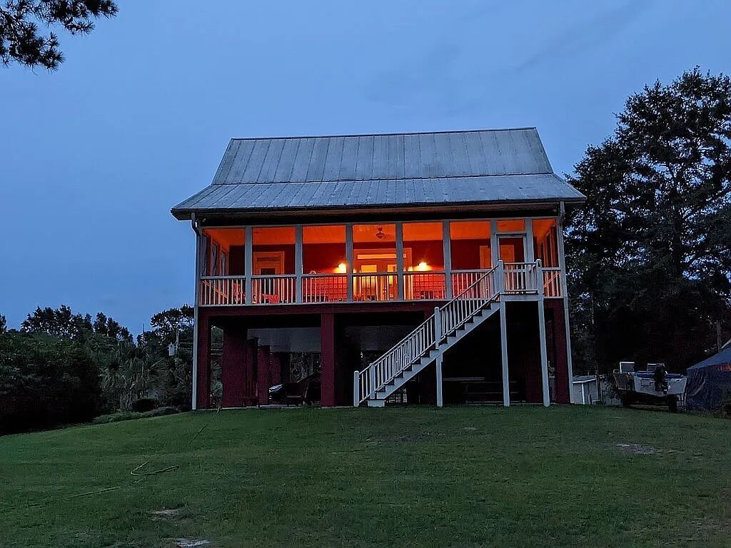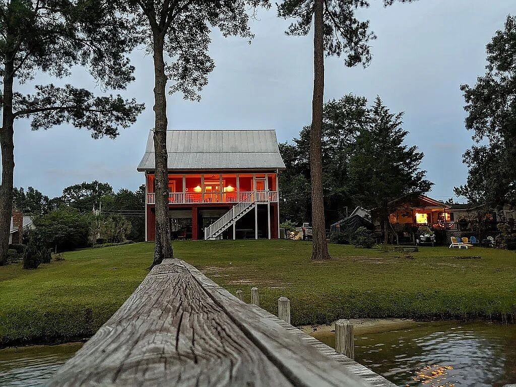 Lake Marion's Big Red House. W/ Dock and Kayaks. Pet Friendly please read policy Enjoy all that Lake Marion has to offer during your stay at this Delightful Lakefront Home in desirable White Oak II off of Wyboo Creek. House is located in front of the famous sandbar!!!Cozy, Custom Designed and Custom Built. This Lake Marion home with Private Dock was completed April 2010 and has just added 2bedrooms and the 3rd full bath in 2023. Built with modern conveniences but having the old-world charm of cypress paneling and a whimsical, retro decor. Huge screen porch overlooks sunsets on the cove.An excellent spot for Family Vacations, bring the kids and the grandparents. Relax on the screened porch and take in the View. Grill out in the underneath parking area complete with outside shower and fish cleaning sink. Put your boat in at the public landing around the corner and keep your boat tied up at the private dock for the duration of your visit. Swim, fish and kayak off the dock. Golf Courses nearby and Historic Charleston is just a little over an hour away. Lake Living at its Best - Ya'll will have a Relaxing and Enjoyable visit.Note: This Home is Nestled Amongst Permanent Residents. Guests Are to Be Respectful and Courteous.1 dog up to 50lbs is $100.00 fee when booking.**** Smoking on porch or outside only.****Please note that there are Outdoor Internet Cameras on the front and back step areas of the house- these cameras do not point to any interior portion of the home****Pricing that appears on this site is set for occupancy up to 12 guests. This limit strictly enforced because septic system will not allow for more. Minimize water usage! Long-Term, Off-Season Rentals Available. EMAIL for pricing. ***Please note that a "Starter Kit" of paper towels, toilet paper, dish and clothes detergents is provided. Clean Bed Linens are provided at the foot of each bed so you will know that they are fresh for your use. ***bath towels etc also provided