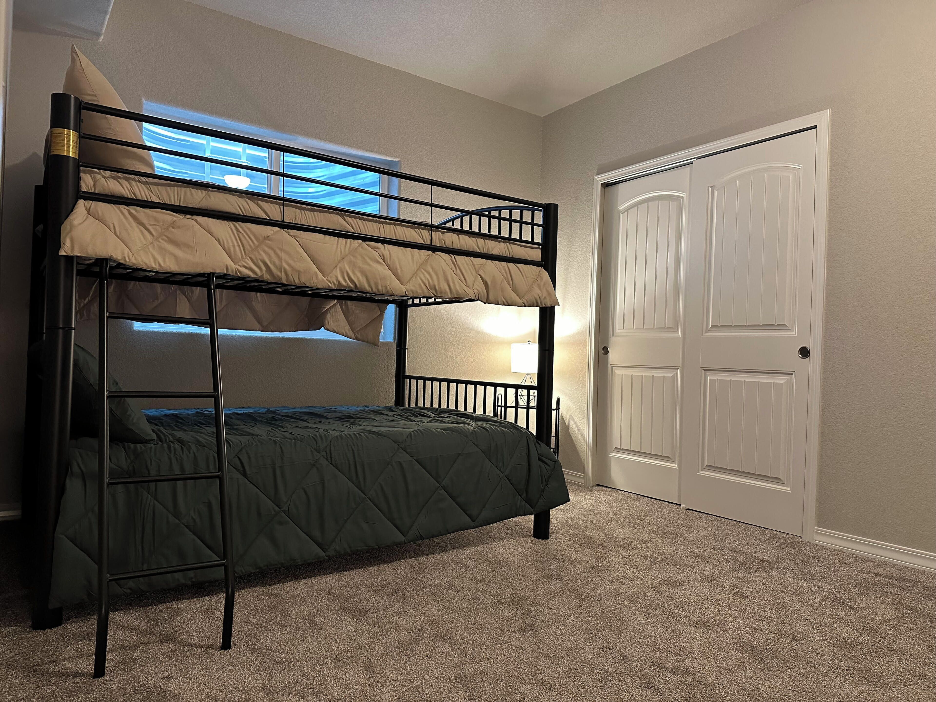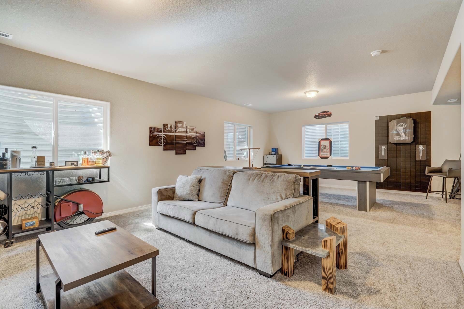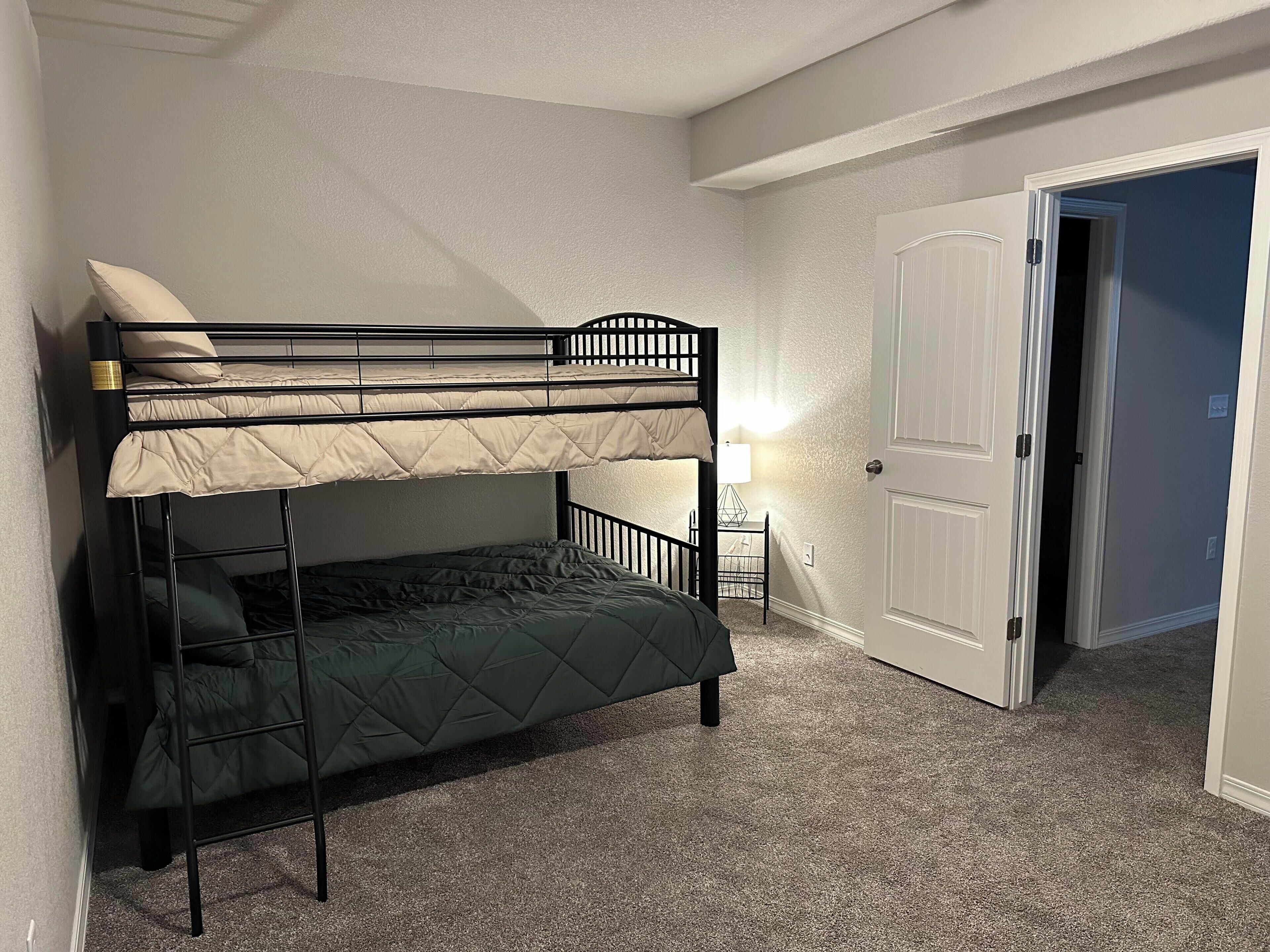 5 Room 11 Bed, Sleeps 21 or More Guests with Game Room, Wi-Fi, Fire Pit & More!! This stylish place to stay is perfect for group and family trips! Peyton, Colorado, where tranquility meets breathtaking views of Pikes Peak! This exquisite 2 Story home boasts over 3800 sq. feet of meticulously crafted living space, offering unparalleled comfort and luxury! Upstairs, you'll find a luxurious master suite complete with a 5 piece Style Bathroom! 3 additional bedrooms and an office converted into another guest bedroom, offers ample space for family members & guests, each thoughtfully designed with comfort and style in mind! Your cozy getaway awaits in Peyton, CO at this fantastic house! With 5 bedrooms, including 1 full bed, 2 queen beds, 1 king bed, and 2 sets of full size bunk beds (4 beds total), there's plenty of space for all your guests. The 3.5 bathrooms, complete with a bathtub, ensure everyone can freshen up comfortably. Additionally, you'll find amenities like an iron, heating, A/C, WiFi, and a washing machine/dryer for your convenience. The two additional spaces, both living rooms, offer extra relaxation and even more sleeping options with a queen size sofa bed in the main living room and 2 additional sofa beds in the upstairs loft! 1 Queen sofa bed and 1 twin sofa bed! We hope you enjoy what our place and Peyton has to offer.Also, don't forget about the fully finished basement with a full size Pool Table, Dart Board, Guitar Hero/Rock Band (Xbox 360/Xbox One), Dry Bar, Mini Fridge and a massive 75" Samsung Smart TV for those late night movie nights together!