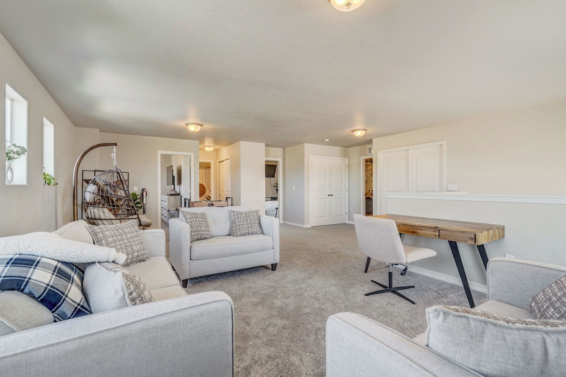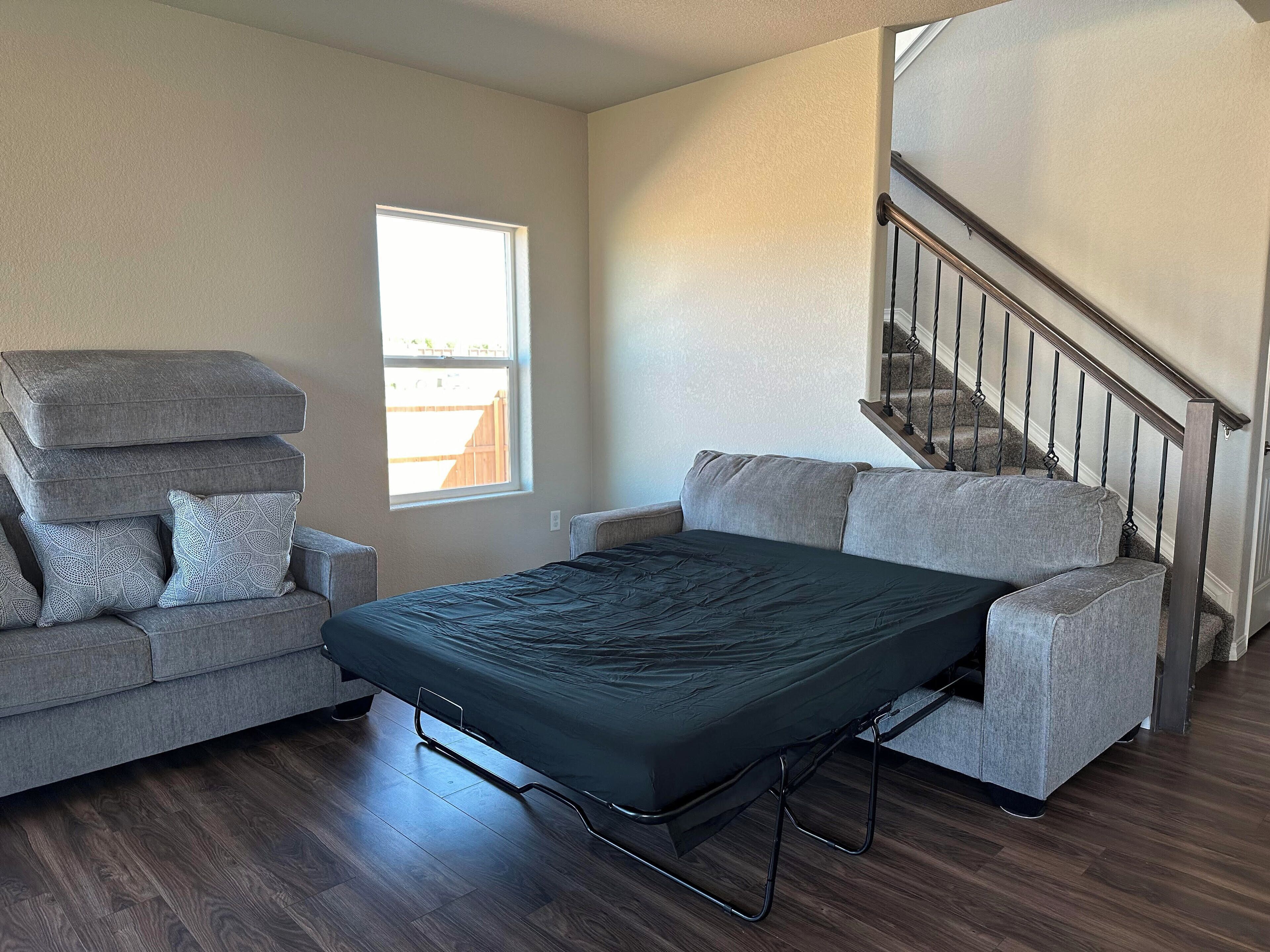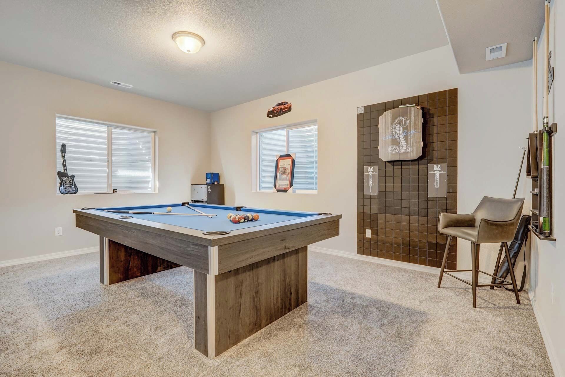 5 Room 11 Bed, Sleeps 21 or More Guests with Game Room, Wi-Fi, Fire Pit & More!! This stylish place to stay is perfect for group and family trips! Peyton, Colorado, where tranquility meets breathtaking views of Pikes Peak! This exquisite 2 Story home boasts over 3800 sq. feet of meticulously crafted living space, offering unparalleled comfort and luxury! Upstairs, you'll find a luxurious master suite complete with a 5 piece Style Bathroom! 3 additional bedrooms and an office converted into another guest bedroom, offers ample space for family members & guests, each thoughtfully designed with comfort and style in mind! Your cozy getaway awaits in Peyton, CO at this fantastic house! With 5 bedrooms, including 1 full bed, 2 queen beds, 1 king bed, and 2 sets of full size bunk beds (4 beds total), there's plenty of space for all your guests. The 3.5 bathrooms, complete with a bathtub, ensure everyone can freshen up comfortably. Additionally, you'll find amenities like an iron, heating, A/C, WiFi, and a washing machine/dryer for your convenience. The two additional spaces, both living rooms, offer extra relaxation and even more sleeping options with a queen size sofa bed in the main living room and 2 additional sofa beds in the upstairs loft! 1 Queen sofa bed and 1 twin sofa bed! We hope you enjoy what our place and Peyton has to offer.Also, don't forget about the fully finished basement with a full size Pool Table, Dart Board, Guitar Hero/Rock Band (Xbox 360/Xbox One), Dry Bar, Mini Fridge and a massive 75" Samsung Smart TV for those late night movie nights together!
