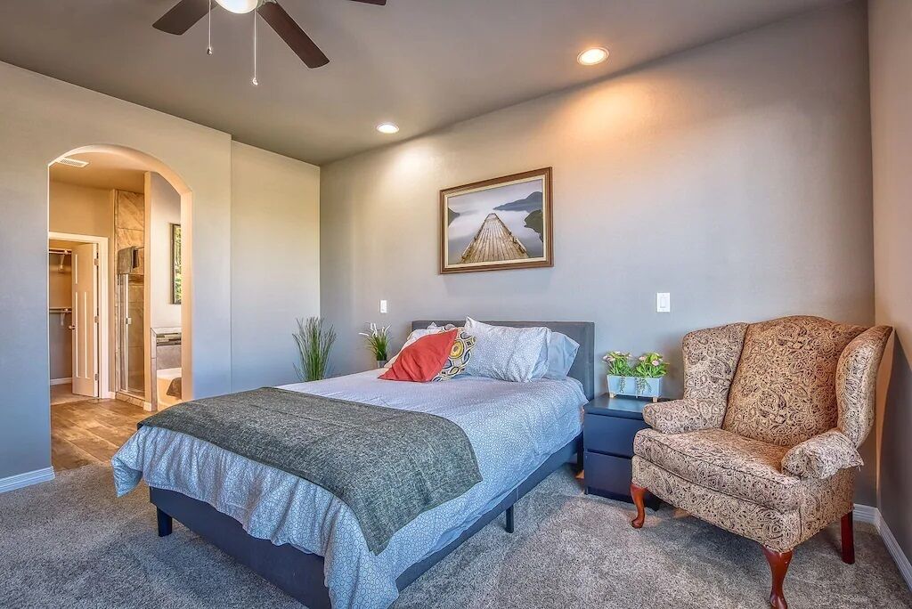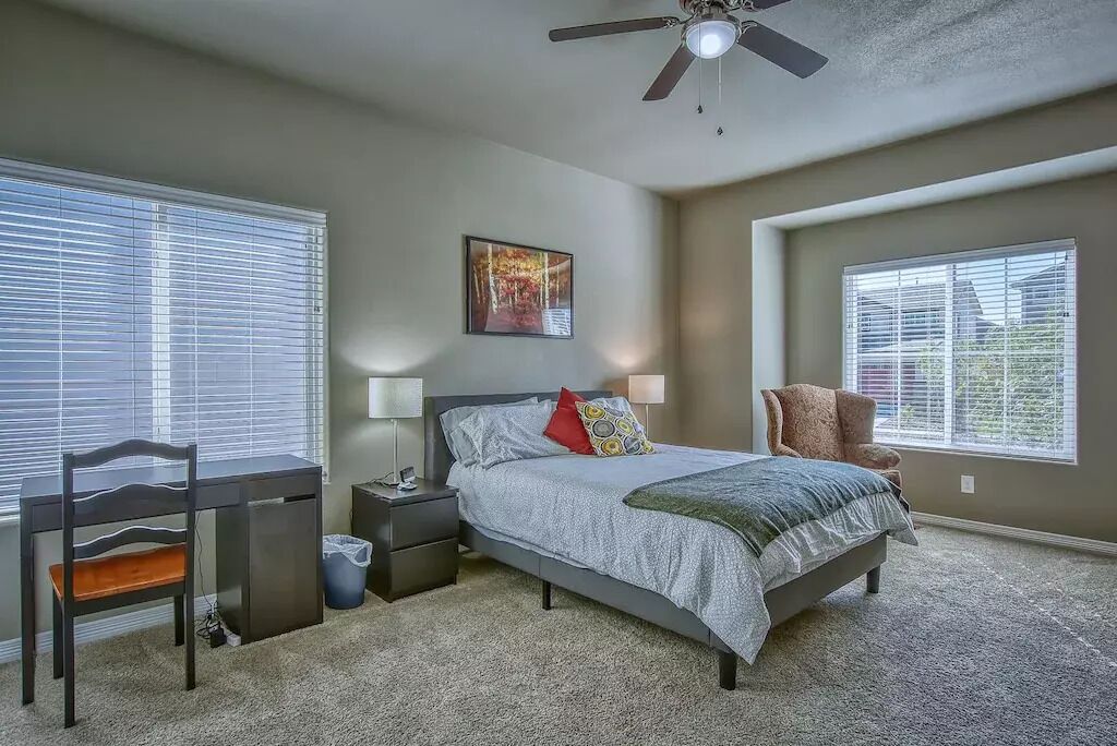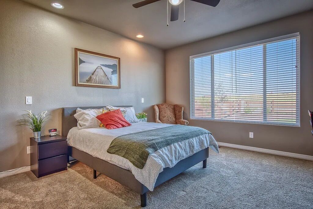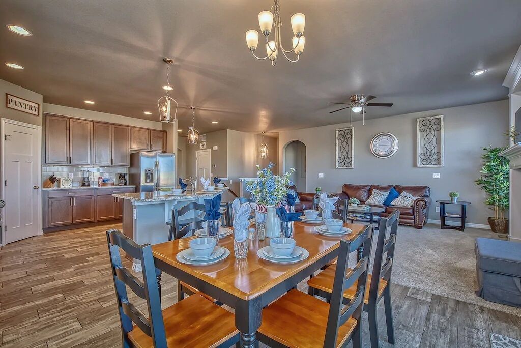 Colorado Springs Mountain View Haven Golf Course Community 5 Bedrooms, 3 Baths Book now for summer 2024 This spacious Retreat in Colorado Springs Meridian Ranch is in a golf community. The home has 3,200 SF of stylish, fully furnished, living overlooking the Colorado High Plains and Front Range. The home offers; 5 lg bedrooms, including main floor master suite with 5 piece en suite bathroom & a 2nd main floor master suite with adjacent full bathroom. Total of 3 full bathroomsThe main floor is Open concept with a family-centric kitchen perfect for entertaining; the main floor features a cozy gas fireplace and Large screen HDTV/with Netflix, Amazon Prime, Blu-Ray Players, & high speed internet. HDTV’s in each bedroom, Board & Card Games, Books, & Outdoor Amenities. Antler Creek Golf Course meanders through the community and offers great golf and panoramic views of Pikes Peak and the front range of the Rockies. All this and just minutes from downtown Colorado Springs.