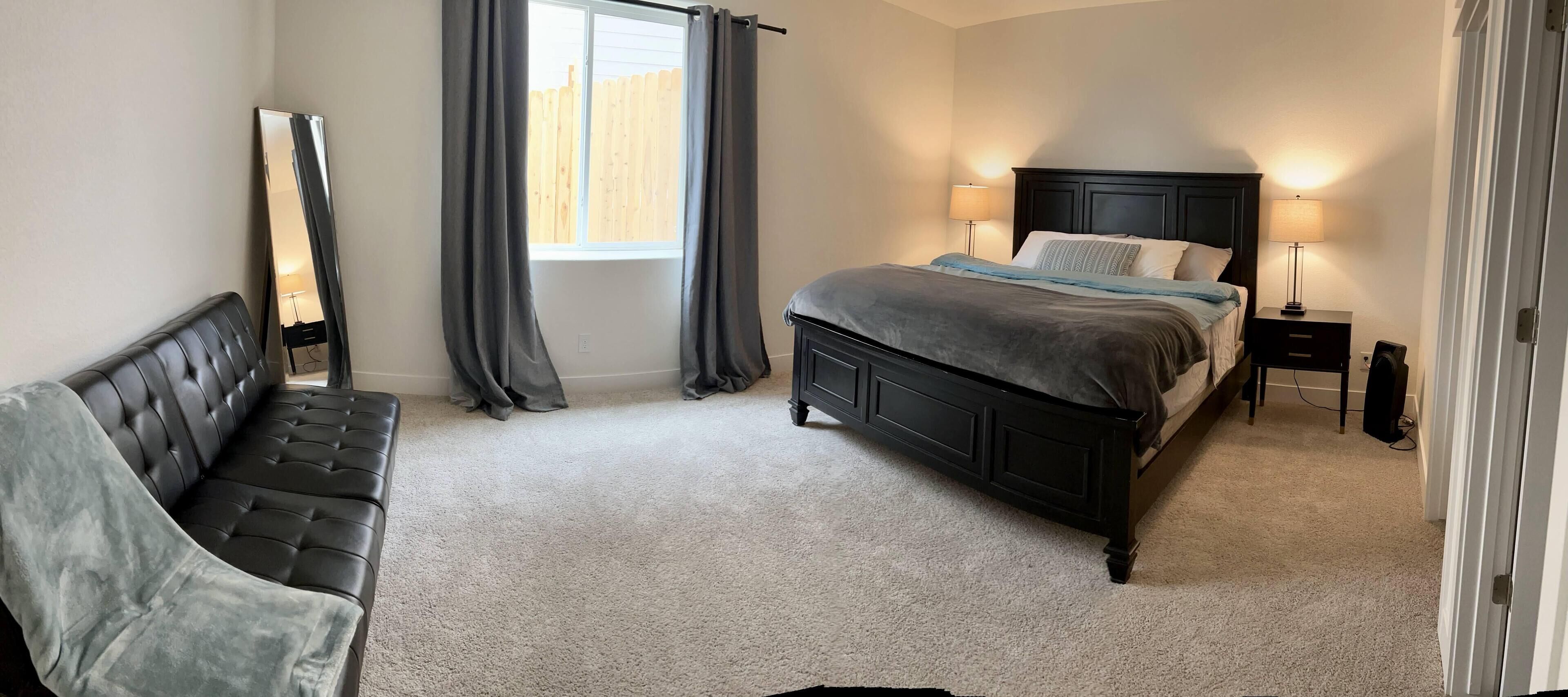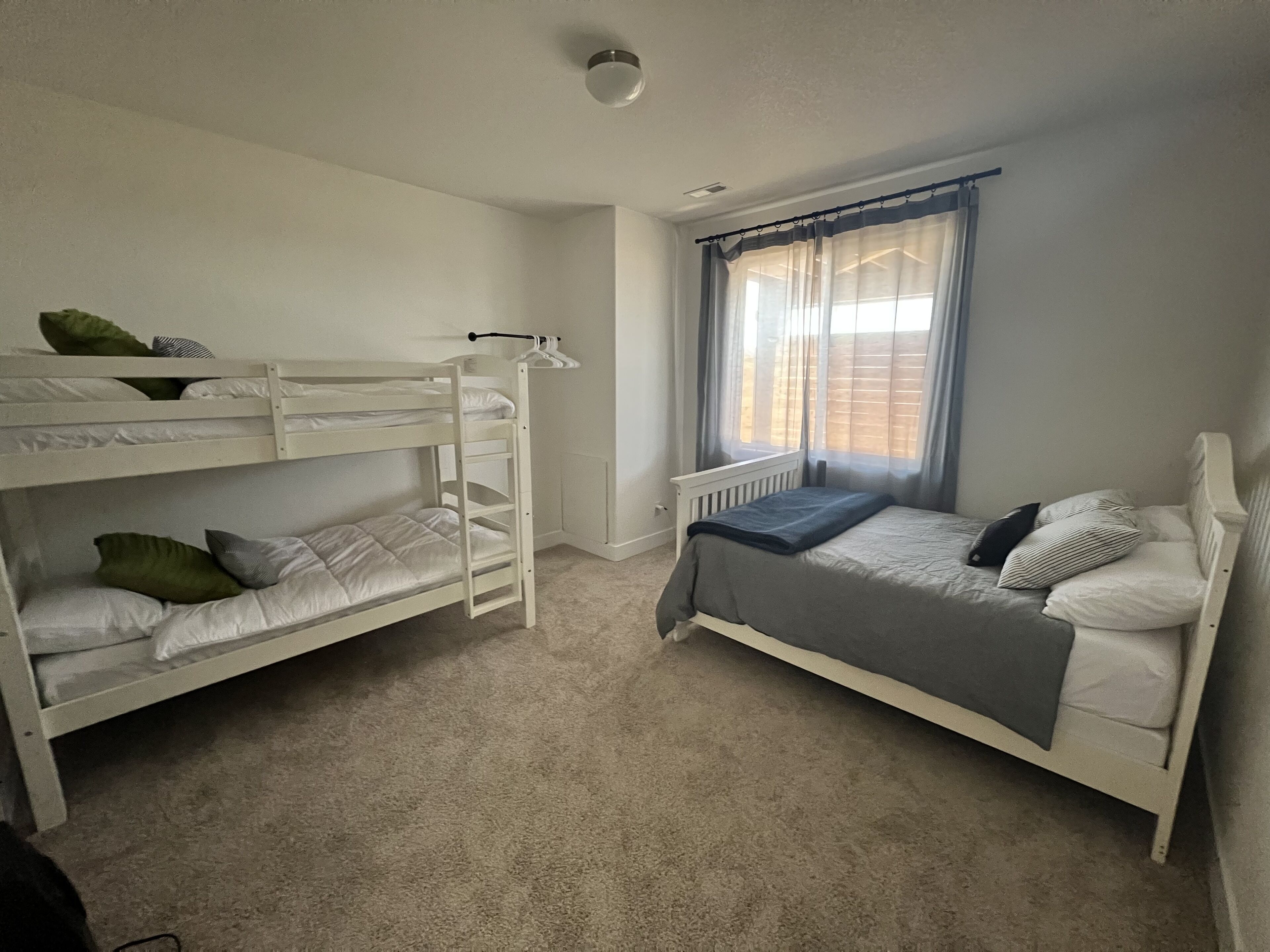 Modern farm 2b 2b Walkout Basement Apartment - Falcon , CO Welcome to our new, basement apartment. This suite is 1800 sf and is private and separated from our upstairs unit with a separate entrance.THE SPACE:Make yourself at home ! While we live upstairs, you’ll have an entire private space to yourself, including a separate back entrance and patio. The suite is a 2 bedroom, 2 bath + a cozy living area featuring a 65” TV . The living area also comes with a kitchenette and everything you need to prep and eat a meal. A full Fridge, double burner electric hotplate , instant pot, microwave, air fryer, coffee maker, toaster, and utensils/cups/plates will be available for use. Napkins, Paper towel, and cleaning products to get you started. Additionally, you’ll have a washer and dryer all to yourself!Master Bedroom 1 features a King bed. With an attached Bathroom tub/shower in the Master Bedroom. Bedroom 2 features a full bed, and twin bunk beds along with a large walk-in closet for lots of luggage storage. bathroom 2 features a gorgeous tub shower. *Shampoo, body wash, conditioner, and other toiletry items are provided for your stay! Wi-Fi - Our internet has the capability to plug in. You’ll definitely be able to “work from home” and Zoom with your co-workers or clients. GUESS ACCESS:Guests have access to the entire lower-level of our property. There are some steps to walk down to get to the back entrance.PARKING:Driveway parkingOTHER THINGS TO NOTE:While we live upstairs with our own dog, we want you to know you may hear him playing or barking from time to time. If you need anything from us, don’t hesitate to send us a text, we’ll be sure to assist as soon as possible!