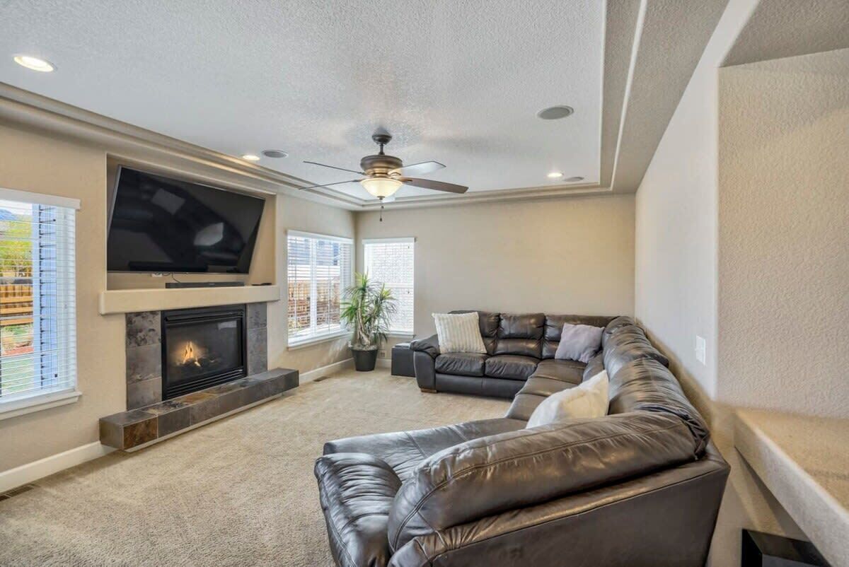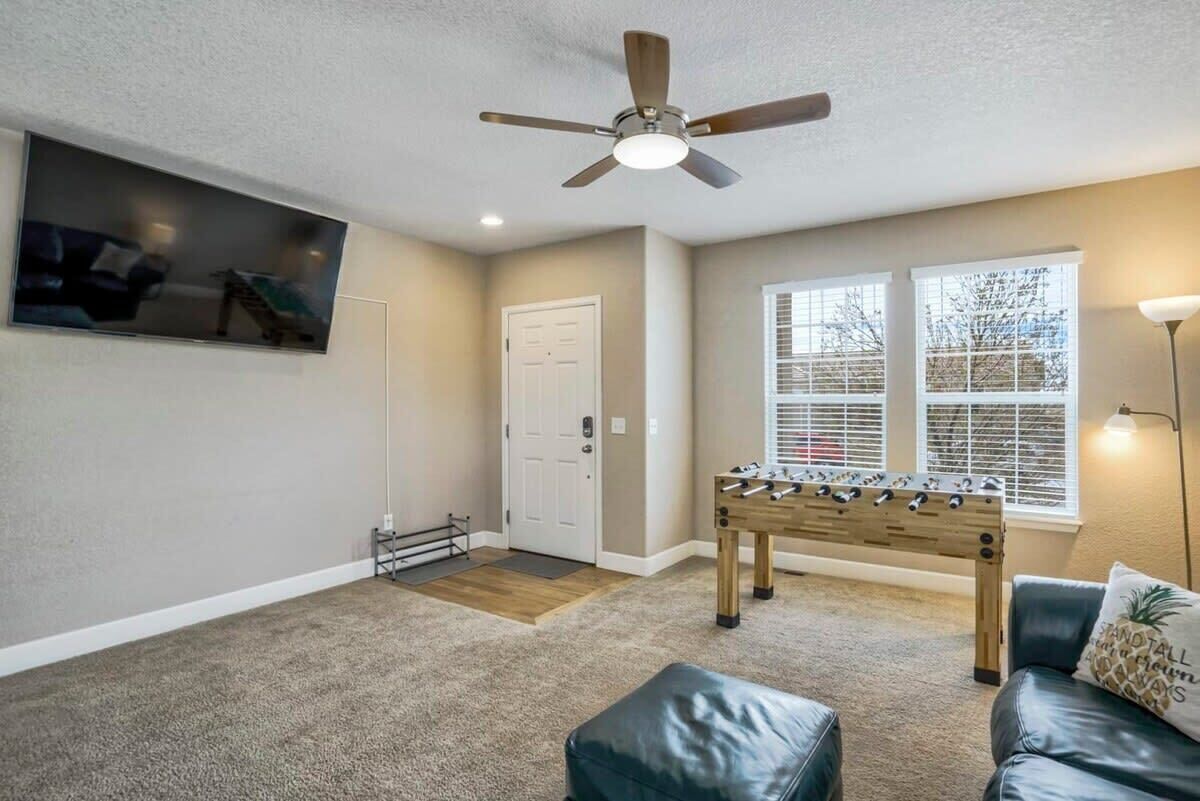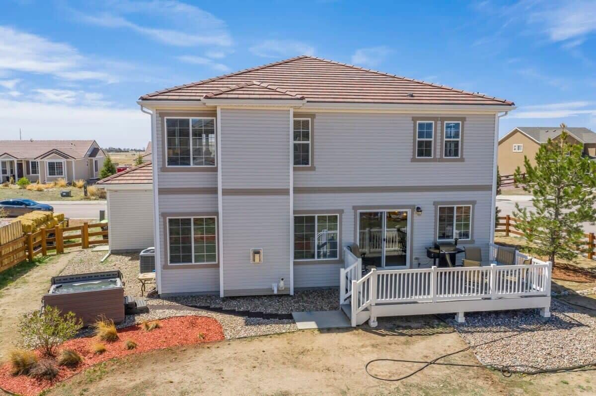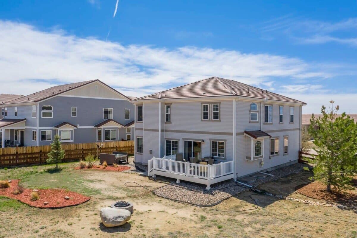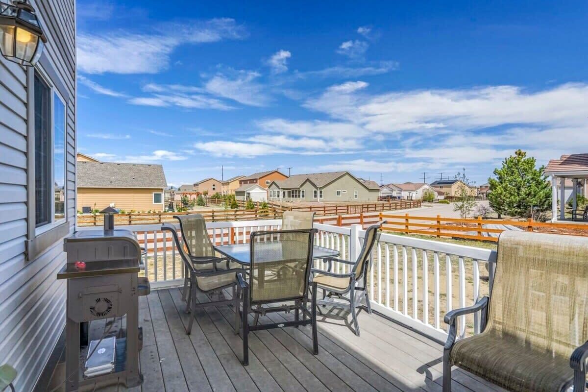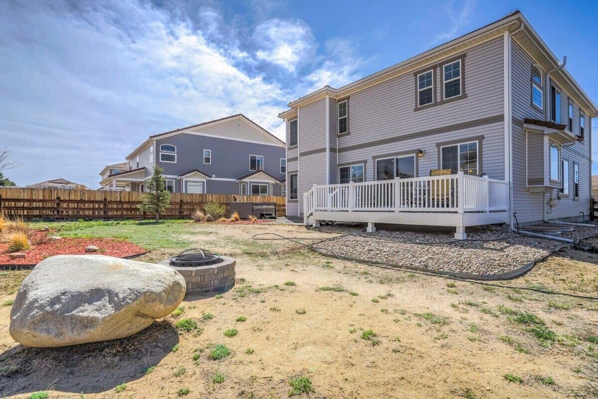 4BR|Hot Tub Pool Table, Ping Pong, Foosball! Summary:This large home has the space & amenities to please your family or group, with 4 bedrooms, 2.5 bathrooms, 9 beds & a hot-tub for the travel-weary! Located just east of Colorado Springs in a quiet, suburban neighborhood, there are plenty of open skies, lots of peace & quiet, and shopping & dining nearby.The Space:All of the most well-known area attractions are still just about 30 minutes away, and this home presents a solid value proposition to the visitor and guest—a unique, functional location for less!With plenty of space to eat, sleep, play, rest & even park your car … this one’s easy! Pull up into the private driveway, park in the (3!) car garage and enter through the front door using the private electronic key-code given to you at check-in. You’ll open the door to a wide, bright, welcoming space with an open-concept design. The living room features a comfortable couch, a great TV and a foosball table, perfect for the young or the young-at-heart. Just beyond you’ll notice the dining room, with seating for 8. The kitchen, just beyond the dining room, is wide and expansive, perfect for entertaining. We all know that when family and friends are together, everyone ends up close to the food, and this is a great, functional environment in homage to that! And with quality stainless steel appliances, a separate gas range, wide, quality cabinetry, Corian countertops, open space and natural light, this kitchen is ready for some serious cooking!Seamless access to the backyard, outdoor living space is offered by the kitchen walk-out. There’s plenty of outdoor seating here on the deck, and a grill and smoker ready for that summer BBQ. The backyard is large and open and ready for the kids and some time under the open, immensely blue Colorado skies. Of course, primary to any outdoor experience should be some time spent relaxing in 104° water, with soothing jets to relax the stress away … and our hot-tub steps up! Wake up to a crisp, Colorado morning year-round with our spa, or some coffee or spend some quality time under the stars. Nearby, there’s a fire-pit to add to the ambiance. Colorado’s known for its outdoors, its open skies, its clear, crisp air, and there’s no better way to experience it than by relaxing, as much as possible, in comfort while you breathe it all in, and then let it all go.Back inside the home you’ll notice the large, comfortable den featuring a massive TV mounted above the gas fireplace. The leather sectional just begs a sit. After so many opportunities to relax, you might want a little more physical activity, and this home’s got that too. A gym and ping-pong table are located in the basement, and equally (for more relaxation … sense the theme here?) a private little dry-sauna awaits! With so much space in this home, we’ve filled it with comfort, and as many entertainment possibilities as possible.Keeping with our theme, moving up-stairs, you’ll immediately notice the pool table in the loft! The master bedroom, just beyond, offers king-comfort, an immense amount of space, and a kingly-master-bath too with a dual-vanity sink, inviting shower and relaxing soaking tub. Two more bedrooms feature queen beds, and our fourth features a stunning 6 twin beds in a bunk setup. Remember those sleepovers as a kid!? These remaining bedrooms are serviced by a large bathroom, clean, modern, and ready for business. All of the beds, too, are appointed with quality linens, professionally laundered after each stay. This home is managed professionally by a vacation rental specialist, and there’s a sense of quality and care here worthy of your 5-star review! Overall, we think this home offers an immense amount of appeal, especially to those who need some space, and maybe some endless options to relax and entertain. Please, browse our photos, ask us any questions, and book today!Family friendly home with keyless entry and fast Wi-Fi for business travelers.To give you peace of mind, we have a 5 star cleaning team that keeps this home immaculately clean and disinfected (especially high-touch areas) so you can enjoy your stay and feel safe.Guest Access:You have access to the entire property and all the wonderful amenities the home comes with!The Neighborhood:Peyton, Colorado is just about 15 minutes east of Colorado Springs and as the Pikes Peak Region grows, this area has become more and more vibrant, with development on the rise and some exceptional, brand new amenities for residents and visitors and guests alike. There’s plenty of shopping & dining opportunities here including some pretty notable spots just up the road from this home including Jak’s brewing, the Purple Toad, and the Creek View Grill at the Antler Creek Golf Course.While being just a few minutes away from Colorado Springs, the area is nonetheless easy to access and all of the best-known attractions are easily accessible too — Places like Garden of the Gods, the Broadmoor, the Cheyenne Mountain Zoo, the Air Force Academy, Manitou Springs and Old Colorado City are all just about 30 minutes away by car. This area might not be the first that travelers look to for their vacation rentals, but we think that maybe they should! For those willing to drive just a bit more, there’s value here and maybe a short-term rental hidden gem or two, and the mountain views still abound, with unobstructed views of Pikes Peak, “America’s Mountain” and the entire Rocky Mountain Front Range looming just in the distance.Getting Around:We recommend that you have a car or use Uber or Lyft when traveling in Colorado Springs and surrounding areas. Also, we can provide you with specific bus routes to help you get around.Other Things to Note:Last, it’s your vacation, so you probably don’t want a lot of RULES. So think of these more as our strong requests:AGE REQUIREMENT: Must be at least 21 years old. We cannot accommodate guests who do not meet this age require