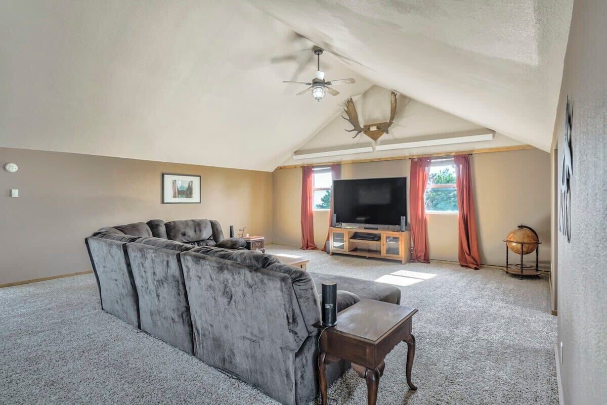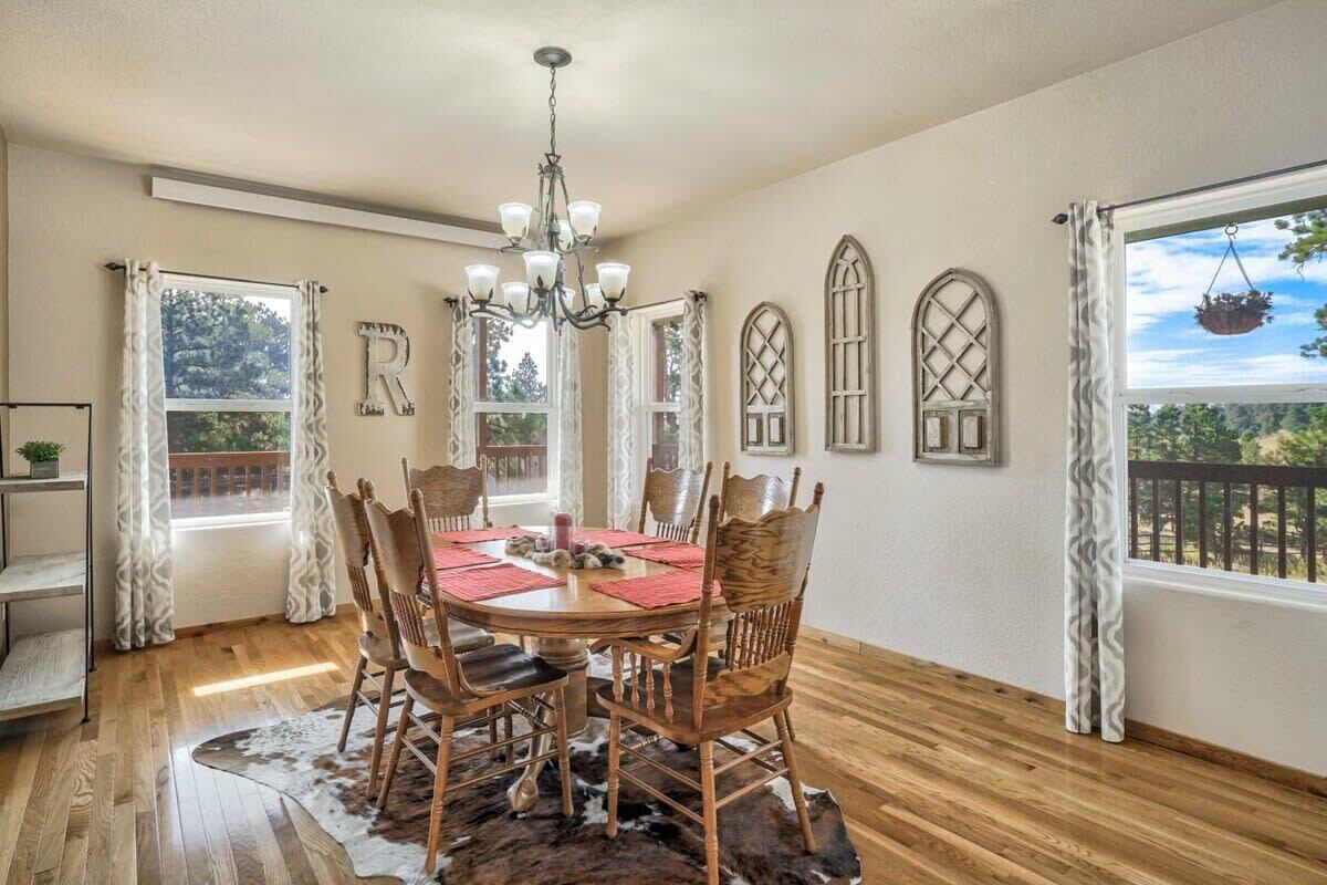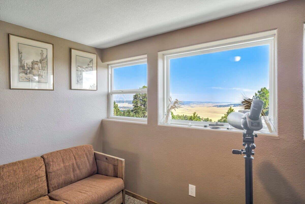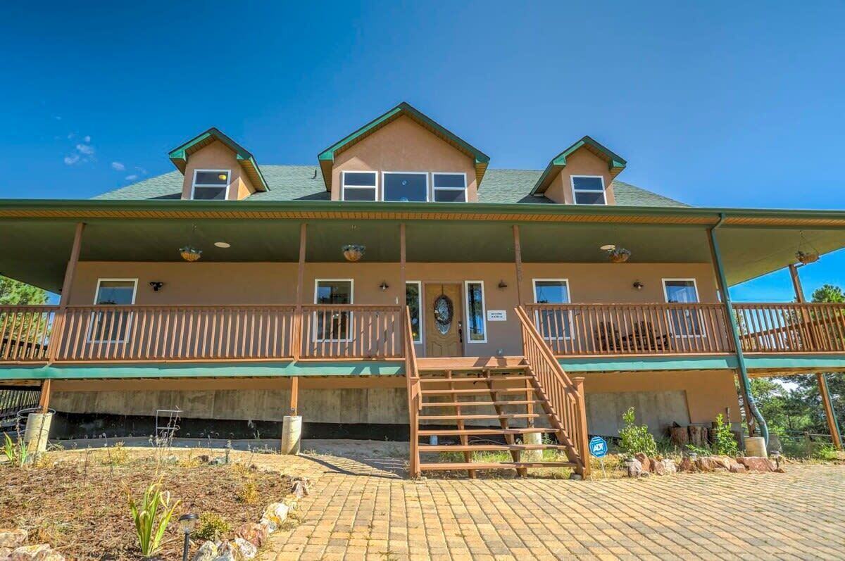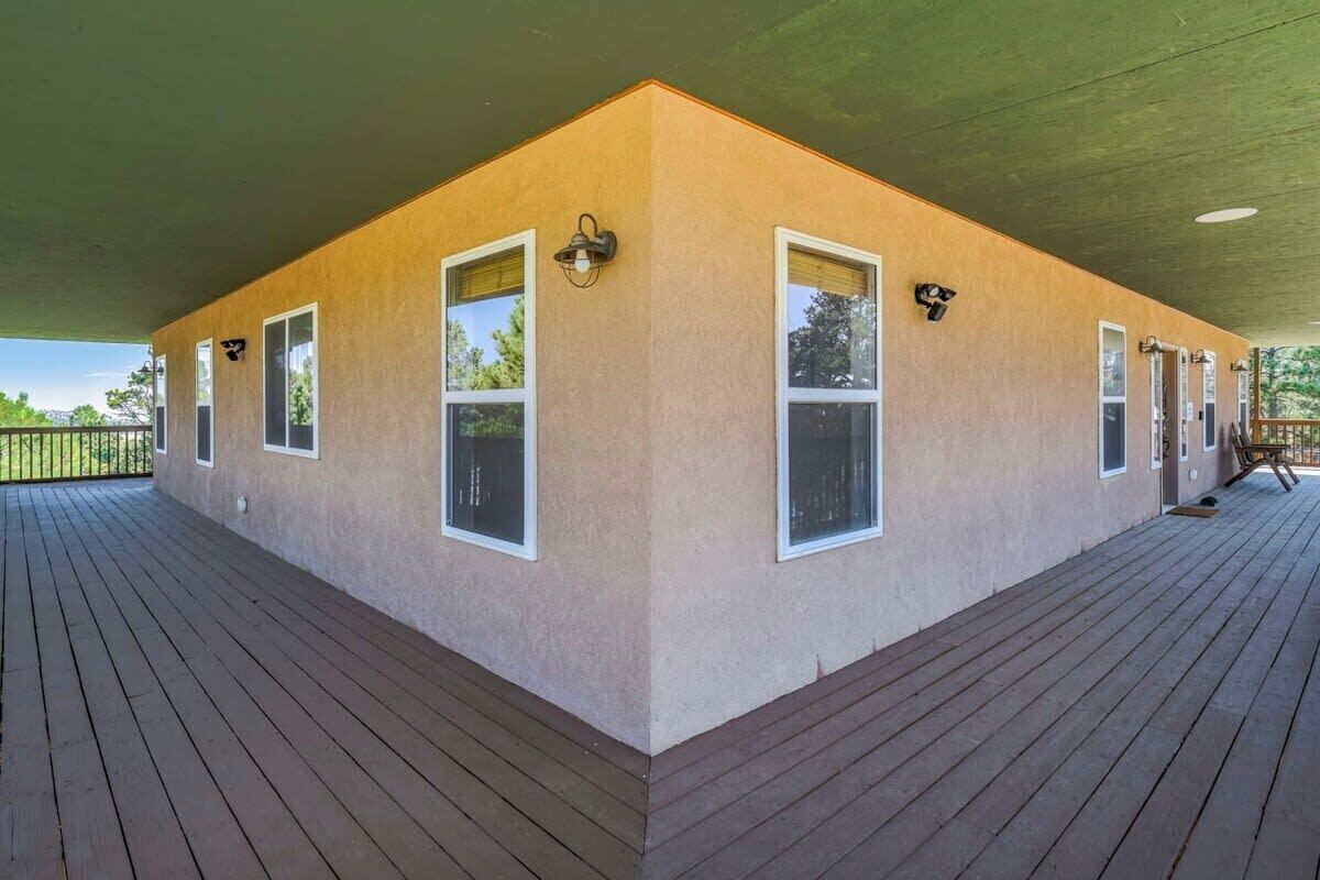Nature's Oasis, 4BD Ranch Retreat, Hot tub! Summary:✓ Great for Family Retreats, or Small Groups for Rest and Relaxation!✓ Committed to Guest Safety✈ 33 miles from COS Airport✓ Avg 70mbps WiFi Speed for a Rural Area!✓ Ceiling Fans in Each Room + Portable AC Unit in Master Bedroom✓ Hot Tub✓ Smart TV's ✓ Ping Pong Table✓ Full Stocked Kitchen + CoffeeThe Space:This 4-BDRM, 4-BA home in true ranch country imparts the sense of rural tranquility you’ve been craving, but within easy driving distance of Colorado Springs and the many attractions and outdoor adventures offered by the Pikes Peak region of the Rockies. In this home, great care has been taken to create an atmosphere of contemporary comfort amidst décor that reflects the rugged character of the Colorado range, and the space has been configured for the optimal enjoyment of groups of up to 10.Tucked among a smattering of trees, this home enjoys a refreshing, woodsy feel, but it’s poised upon a gentle hill, affording glorious, sweeping views of the mountains and the surrounding open range. The home was built to make the most of its dramatic views with a wide wooden deck wrapping around all four sides of the dwelling.Designed in a common mountain house style, the primary living space is situated on the second (deck) level. Climb a set of exterior stairs or use a convenient ramp to reach the deck and your front door. You’ll find a three-car garage on the ground floor, as well as plentiful outdoor parking. Stepping through the main entrance, you’ll appreciate the open concept great room that provides an ideal environment for creating quality “together” time. A stylish, cozy seating area is centered around a fireplace that is ornamental only, with casual but sumptuous seating you’ll love sinking into after a day of activity. A row of floor-to-ceiling windows lines the back wall and incorporates a sliding glass door to the deck with outdoor seating and a grill. A large corner-mounted TV is visible throughout the space, including a casual dining area with seating for 4 and a large, open kitchen with a long breakfast counter for 4.A suite of stainless steel appliances includes a full-size range, French door refrigerator, microwave and dishwasher, plus a toaster, coffee maker, and chef’s knives. A generous island with a built-in sink supplements counter space. Adjacent to the kitchen you’ll find a separate, more formal dining area with seating for 6. Rounding out this level, you’ll find a laundry room with full-size washer and dryer, plus two bedrooms and two baths. The larger bedroom includes a king bed, fireplace that is ornamental only, and sliding doors to the deck. A luxurious en suite bath provides a soaking tub with water jets, two sink vanities, a shower stall, and a toilet tucked discreetly behind its own door. A cheerful second bedroom includes a queen bed and a desk. A separate bathroom includes a tub/shower combo.Upstairs, a spacious, airy TV room under a peaked ceiling includes a huge, inviting L-shaped sofa. Two additional seating nooks branch off of this space, each providing bright, windowed areas to talk or read – and one with a telescope! An office space includes an executive desk. This level also includes a bedroom with 2 twin beds and a bathroom with a shower/tub combo. On the ground-floor level, you’ll find even more living space. A spacious room with a ping-pong table includes sliding glass doors that lead to the outdoors. You’ll also find one bathroom with shower/tub combo, and a bedroom with a queen bed and large mirrored closet.Hotel-grade linens are professionally laundered after every visit. This property is managed by a local vacation rental specialist, and there’s a sense of quality and care that’s worthy of your 5-star review. Browse our pictures, ask us anything, and book today!Guest Access:🏠 We highly recommend checking in before sunset. The area is very dark and it can be difficult to navigate the dirt roads. Please let us know what time you'll be checking in so we can make sure you arrive safely. You will have access to the entire home and all the wonderful amenities the home comes with! The barn on the property is off limits. 🚗 ParkingWe highly recommend a 4X4 or AWD vehicle with higher clearance to handle the bumpy dirt roads, especially during inclement weather. Even though it is a 3 car garage it only has room for 2 cars to fully pull inside. There is room to park up to 4 cars in the spacious driveway. 🕓 Early Check-in RequestsWe cannot guarantee an early check-in than 4pm as we need time to make sure this property is perfect for you before your stay! Please message us on the day of your arrival to see if the property is ready no earlier than 2pm. 🔑 Check-in Process: All guests will need to complete our secure, online ID Verification process to receive the door code and check-in instructions. Similar to hotels requiring photo ID upon check-in, we ask that guests provide a copy of their Government Issued ID, matching selfie and credit card to verify identity. This is used to prevent fraudulent reservations, identity verification and for the safety of all guests and homes. We take data security very seriously. All information entered into this form is encrypted and transmitted securely over SSL. By completing the reservation you agree to the following:1. I agree to be bound by our rental terms and conditions.2. I acknowledge that I will be required to provide a copy of a valid government issued ID and matching credit card through our online portal prior to check in.The Neighborhood:This home is situated in Peyton, Colorado, a peaceful, rural area about 45 minutes east of Colorado Springs and 90 minutes southeast of Denver. It’s characterized by varied terrain favored by horse ranchers. A notable nearby site is the Paint Mines Interpretive Park, consisting of 750 acres and 4 miles of trails that rise to an elevation of over 500 feet. It’s most fam
