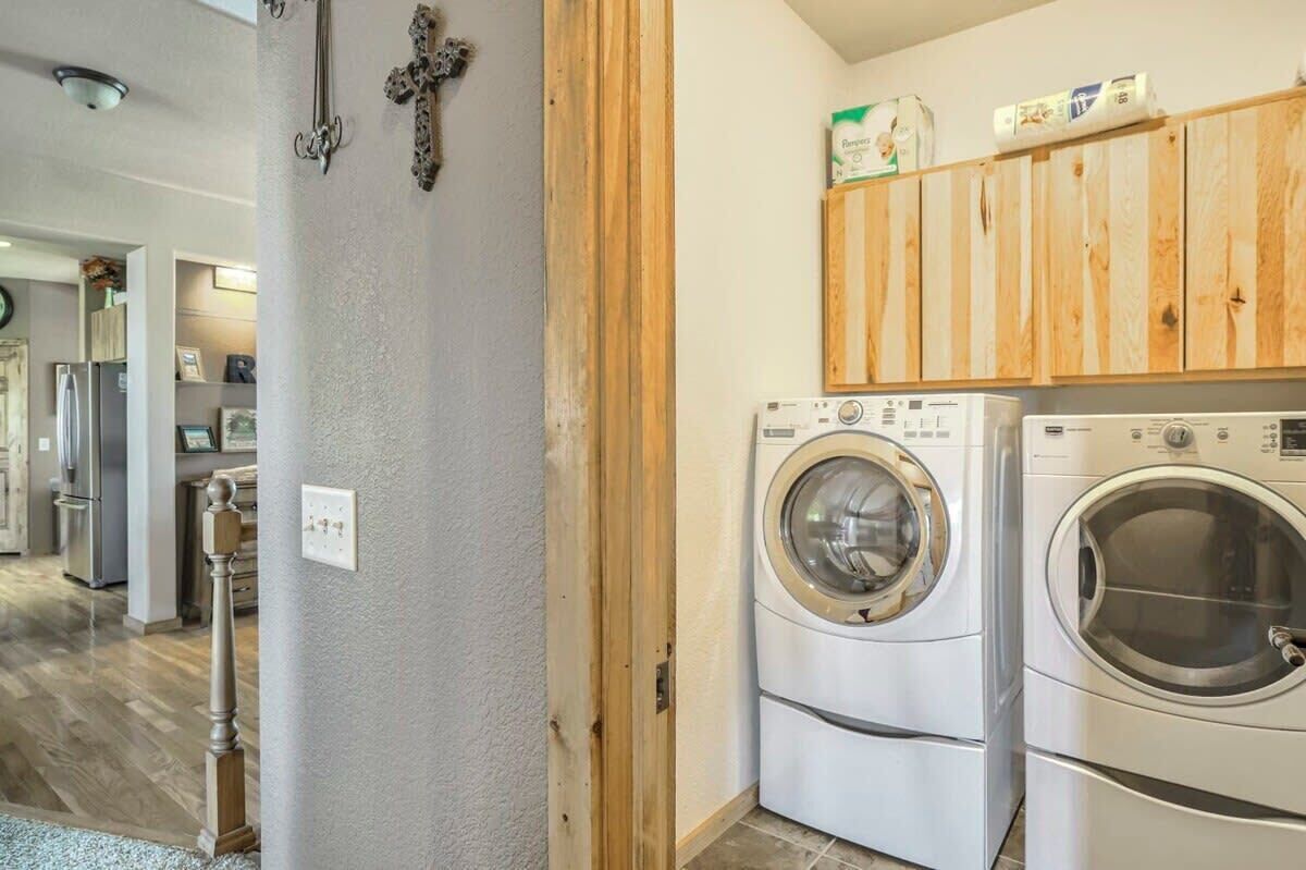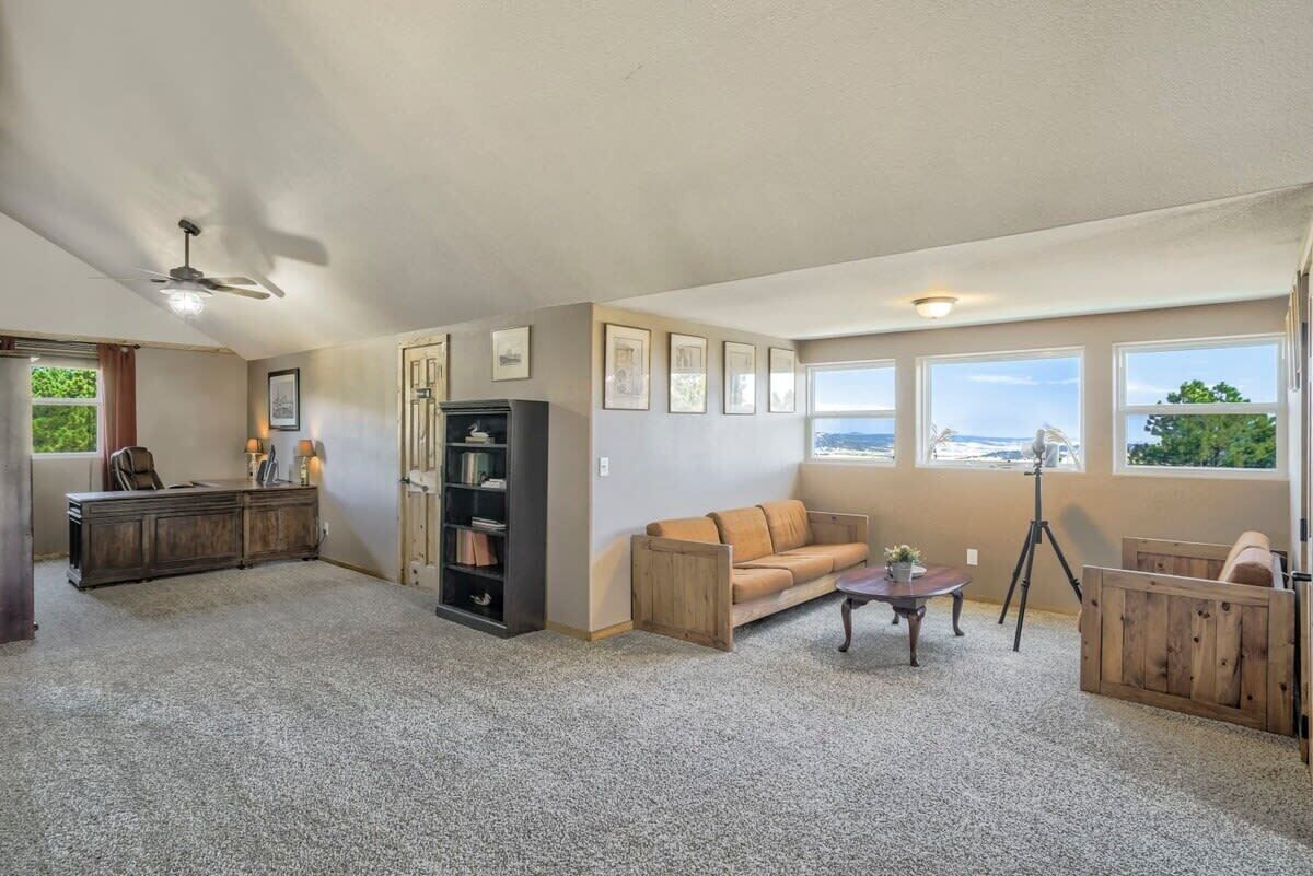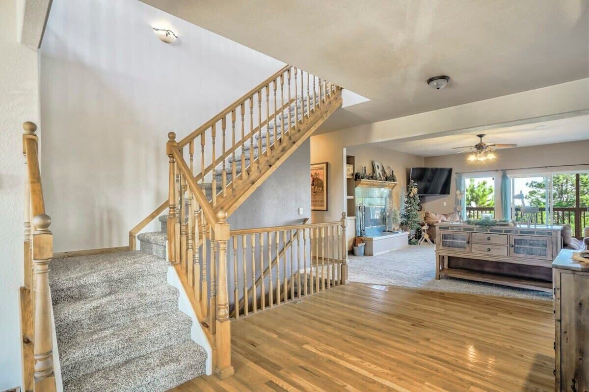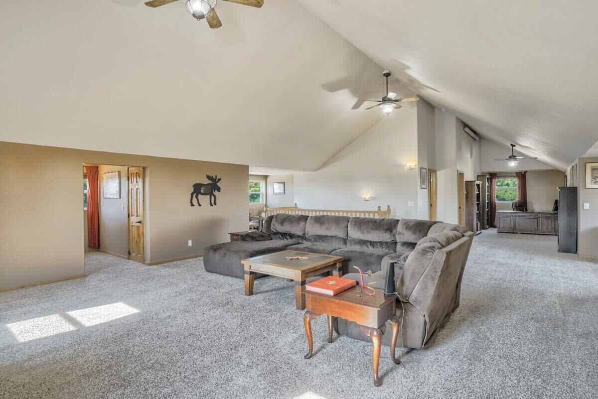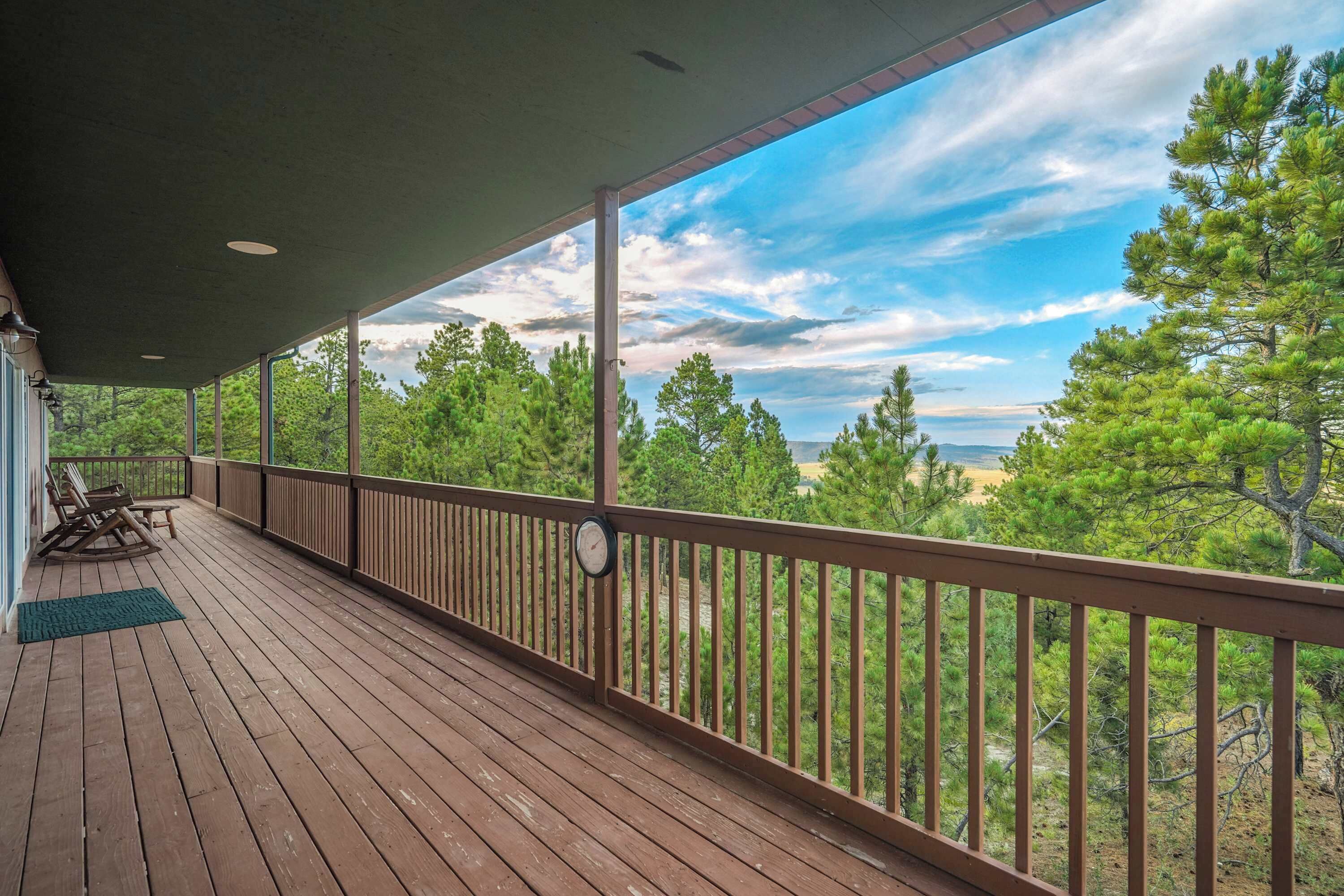 Nature's Oasis, 4BD Ranch Retreat, Hot tub! Summary:✓ Great for Family Retreats, or Small Groups for Rest and Relaxation!✓ Committed to Guest Safety✈ 33 miles from COS Airport✓ Avg 70mbps WiFi Speed for a Rural Area!✓ Ceiling Fans in Each Room + Portable AC Unit in Master Bedroom✓ Hot Tub✓ Smart TV's ✓ Ping Pong Table✓ Full Stocked Kitchen + CoffeeThe Space:This 4-BDRM, 4-BA home in true ranch country imparts the sense of rural tranquility you’ve been craving, but within easy driving distance of Colorado Springs and the many attractions and outdoor adventures offered by the Pikes Peak region of the Rockies. In this home, great care has been taken to create an atmosphere of contemporary comfort amidst décor that reflects the rugged character of the Colorado range, and the space has been configured for the optimal enjoyment of groups of up to 10.Tucked among a smattering of trees, this home enjoys a refreshing, woodsy feel, but it’s poised upon a gentle hill, affording glorious, sweeping views of the mountains and the surrounding open range. The home was built to make the most of its dramatic views with a wide wooden deck wrapping around all four sides of the dwelling.Designed in a common mountain house style, the primary living space is situated on the second (deck) level. Climb a set of exterior stairs or use a convenient ramp to reach the deck and your front door. You’ll find a three-car garage on the ground floor, as well as plentiful outdoor parking. Stepping through the main entrance, you’ll appreciate the open concept great room that provides an ideal environment for creating quality “together” time. A stylish, cozy seating area is centered around a fireplace that is ornamental only, with casual but sumptuous seating you’ll love sinking into after a day of activity. A row of floor-to-ceiling windows lines the back wall and incorporates a sliding glass door to the deck with outdoor seating and a grill. A large corner-mounted TV is visible throughout the space, including a casual dining area with seating for 4 and a large, open kitchen with a long breakfast counter for 4.A suite of stainless steel appliances includes a full-size range, French door refrigerator, microwave and dishwasher, plus a toaster, coffee maker, and chef’s knives. A generous island with a built-in sink supplements counter space. Adjacent to the kitchen you’ll find a separate, more formal dining area with seating for 6. Rounding out this level, you’ll find a laundry room with full-size washer and dryer, plus two bedrooms and two baths. The larger bedroom includes a king bed, fireplace that is ornamental only, and sliding doors to the deck. A luxurious en suite bath provides a soaking tub with water jets, two sink vanities, a shower stall, and a toilet tucked discreetly behind its own door. A cheerful second bedroom includes a queen bed and a desk. A separate bathroom includes a tub/shower combo.Upstairs, a spacious, airy TV room under a peaked ceiling includes a huge, inviting L-shaped sofa. Two additional seating nooks branch off of this space, each providing bright, windowed areas to talk or read – and one with a telescope! An office space includes an executive desk. This level also includes a bedroom with 2 twin beds and a bathroom with a shower/tub combo. On the ground-floor level, you’ll find even more living space. A spacious room with a ping-pong table includes sliding glass doors that lead to the outdoors. You’ll also find one bathroom with shower/tub combo, and a bedroom with a queen bed and large mirrored closet.Hotel-grade linens are professionally laundered after every visit. This property is managed by a local vacation rental specialist, and there’s a sense of quality and care that’s worthy of your 5-star review. Browse our pictures, ask us anything, and book today!Guest Access:🏠 We highly recommend checking in before sunset. The area is very dark and it can be difficult to navigate the dirt roads. Please let us know what time you'll be checking in so we can make sure you arrive safely. You will have access to the entire home and all the wonderful amenities the home comes with! The barn on the property is off limits. 🚗 ParkingWe highly recommend a 4X4 or AWD vehicle with higher clearance to handle the bumpy dirt roads, especially during inclement weather. Even though it is a 3 car garage it only has room for 2 cars to fully pull inside. There is room to park up to 4 cars in the spacious driveway. 🕓 Early Check-in RequestsWe cannot guarantee an early check-in than 4pm as we need time to make sure this property is perfect for you before your stay! Please message us on the day of your arrival to see if the property is ready no earlier than 2pm. 🔑 Check-in Process: All guests will need to complete our secure, online ID Verification process to receive the door code and check-in instructions. Similar to hotels requiring photo ID upon check-in, we ask that guests provide a copy of their Government Issued ID, matching selfie and credit card to verify identity. This is used to prevent fraudulent reservations, identity verification and for the safety of all guests and homes. We take data security very seriously. All information entered into this form is encrypted and transmitted securely over SSL. By completing the reservation you agree to the following:1. I agree to be bound by our rental terms and conditions.2. I acknowledge that I will be required to provide a copy of a valid government issued ID and matching credit card through our online portal prior to check in.The Neighborhood:This home is situated in Peyton, Colorado, a peaceful, rural area about 45 minutes east of Colorado Springs and 90 minutes southeast of Denver. It’s characterized by varied terrain favored by horse ranchers. A notable nearby site is the Paint Mines Interpretive Park, consisting of 750 acres and 4 miles of trails that rise to an elevation of over 500 feet. It’s most fam