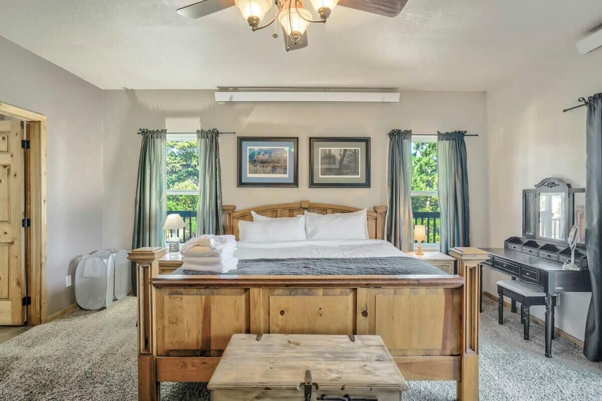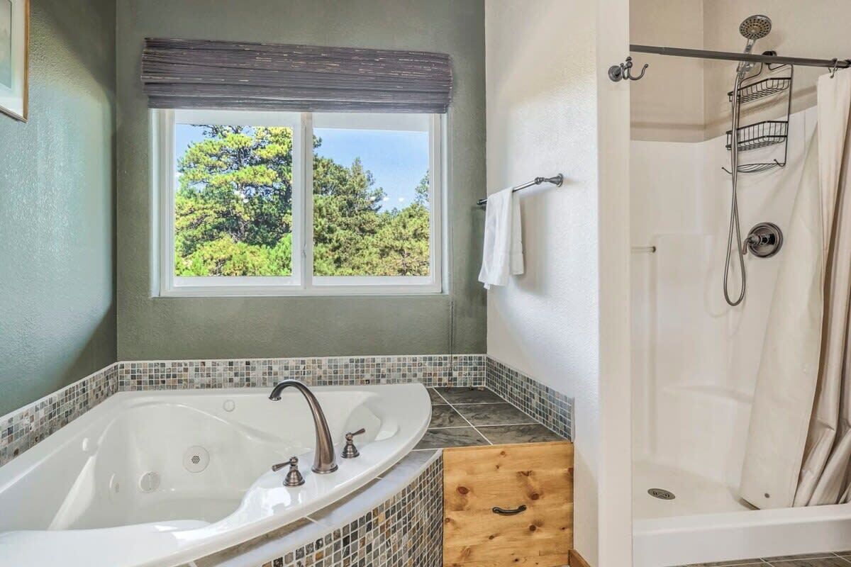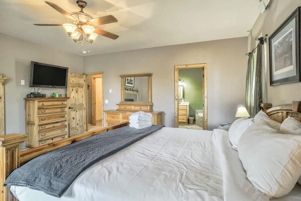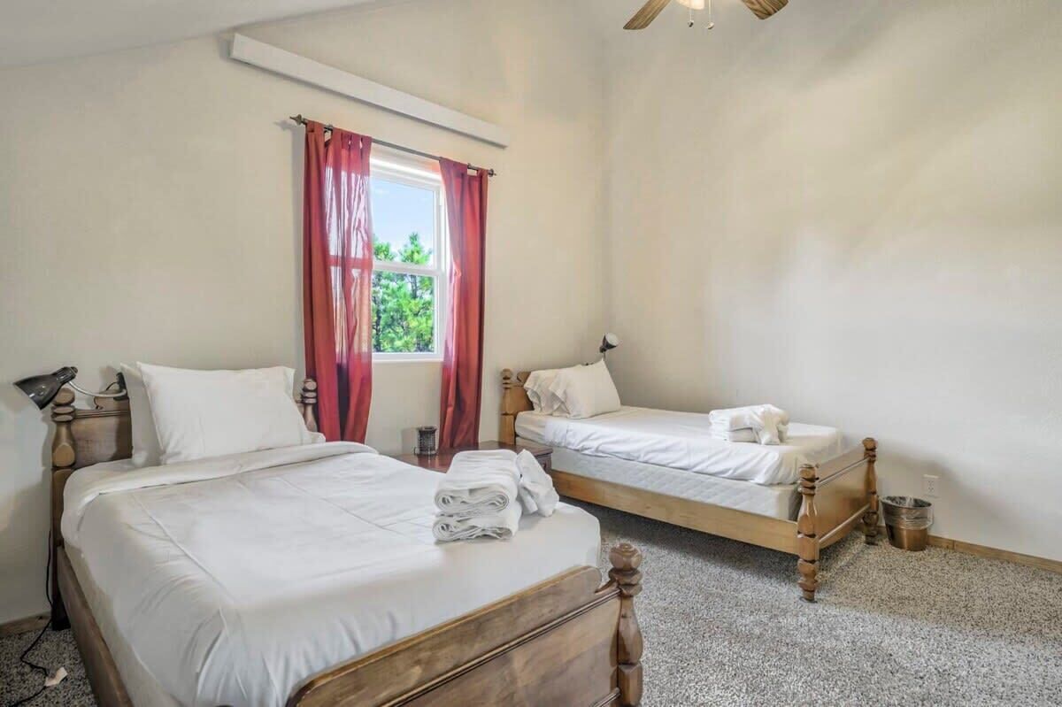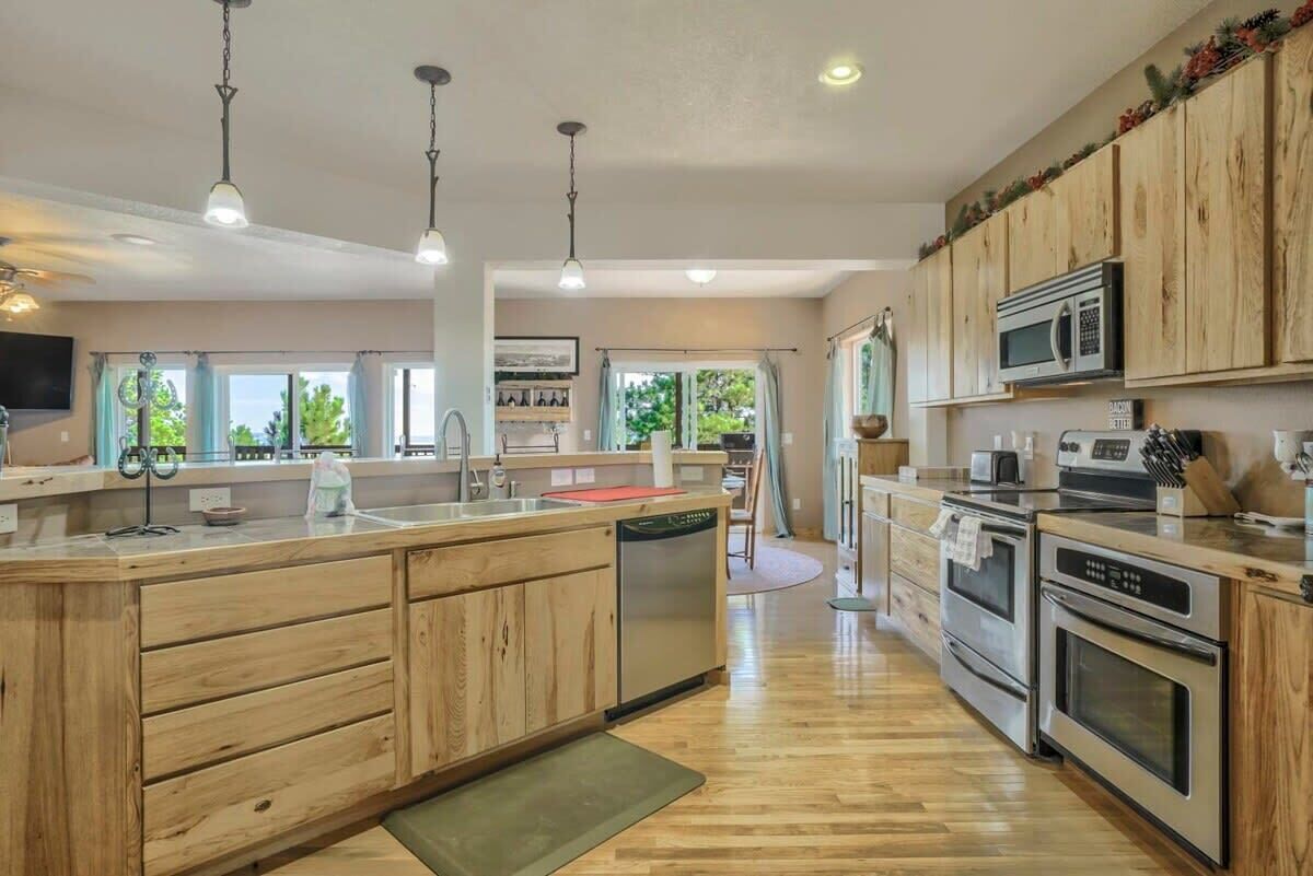 Nature's Oasis, 4BD Ranch Retreat, Hot tub! Summary:✓ Great for Family Retreats, or Small Groups for Rest and Relaxation!✓ Committed to Guest Safety✈ 33 miles from COS Airport✓ Avg 70mbps WiFi Speed for a Rural Area!✓ Ceiling Fans in Each Room + Portable AC Unit in Master Bedroom✓ Hot Tub✓ Smart TV's ✓ Ping Pong Table✓ Full Stocked Kitchen + CoffeeThe Space:This 4-BDRM, 4-BA home in true ranch country imparts the sense of rural tranquility you’ve been craving, but within easy driving distance of Colorado Springs and the many attractions and outdoor adventures offered by the Pikes Peak region of the Rockies. In this home, great care has been taken to create an atmosphere of contemporary comfort amidst décor that reflects the rugged character of the Colorado range, and the space has been configured for the optimal enjoyment of groups of up to 10.Tucked among a smattering of trees, this home enjoys a refreshing, woodsy feel, but it’s poised upon a gentle hill, affording glorious, sweeping views of the mountains and the surrounding open range. The home was built to make the most of its dramatic views with a wide wooden deck wrapping around all four sides of the dwelling.Designed in a common mountain house style, the primary living space is situated on the second (deck) level. Climb a set of exterior stairs or use a convenient ramp to reach the deck and your front door. You’ll find a three-car garage on the ground floor, as well as plentiful outdoor parking. Stepping through the main entrance, you’ll appreciate the open concept great room that provides an ideal environment for creating quality “together” time. A stylish, cozy seating area is centered around a fireplace that is ornamental only, with casual but sumptuous seating you’ll love sinking into after a day of activity. A row of floor-to-ceiling windows lines the back wall and incorporates a sliding glass door to the deck with outdoor seating and a grill. A large corner-mounted TV is visible throughout the space, including a casual dining area with seating for 4 and a large, open kitchen with a long breakfast counter for 4.A suite of stainless steel appliances includes a full-size range, French door refrigerator, microwave and dishwasher, plus a toaster, coffee maker, and chef’s knives. A generous island with a built-in sink supplements counter space. Adjacent to the kitchen you’ll find a separate, more formal dining area with seating for 6. Rounding out this level, you’ll find a laundry room with full-size washer and dryer, plus two bedrooms and two baths. The larger bedroom includes a king bed, fireplace that is ornamental only, and sliding doors to the deck. A luxurious en suite bath provides a soaking tub with water jets, two sink vanities, a shower stall, and a toilet tucked discreetly behind its own door. A cheerful second bedroom includes a queen bed and a desk. A separate bathroom includes a tub/shower combo.Upstairs, a spacious, airy TV room under a peaked ceiling includes a huge, inviting L-shaped sofa. Two additional seating nooks branch off of this space, each providing bright, windowed areas to talk or read – and one with a telescope! An office space includes an executive desk. This level also includes a bedroom with 2 twin beds and a bathroom with a shower/tub combo. On the ground-floor level, you’ll find even more living space. A spacious room with a ping-pong table includes sliding glass doors that lead to the outdoors. You’ll also find one bathroom with shower/tub combo, and a bedroom with a queen bed and large mirrored closet.Hotel-grade linens are professionally laundered after every visit. This property is managed by a local vacation rental specialist, and there’s a sense of quality and care that’s worthy of your 5-star review. Browse our pictures, ask us anything, and book today!Guest Access:🏠 We highly recommend checking in before sunset. The area is very dark and it can be difficult to navigate the dirt roads. Please let us know what time you'll be checking in so we can make sure you arrive safely. You will have access to the entire home and all the wonderful amenities the home comes with! The barn on the property is off limits. 🚗 ParkingWe highly recommend a 4X4 or AWD vehicle with higher clearance to handle the bumpy dirt roads, especially during inclement weather. Even though it is a 3 car garage it only has room for 2 cars to fully pull inside. There is room to park up to 4 cars in the spacious driveway. 🕓 Early Check-in RequestsWe cannot guarantee an early check-in than 4pm as we need time to make sure this property is perfect for you before your stay! Please message us on the day of your arrival to see if the property is ready no earlier than 2pm. 🔑 Check-in Process: All guests will need to complete our secure, online ID Verification process to receive the door code and check-in instructions. Similar to hotels requiring photo ID upon check-in, we ask that guests provide a copy of their Government Issued ID, matching selfie and credit card to verify identity. This is used to prevent fraudulent reservations, identity verification and for the safety of all guests and homes. We take data security very seriously. All information entered into this form is encrypted and transmitted securely over SSL. By completing the reservation you agree to the following:1. I agree to be bound by our rental terms and conditions.2. I acknowledge that I will be required to provide a copy of a valid government issued ID and matching credit card through our online portal prior to check in.The Neighborhood:This home is situated in Peyton, Colorado, a peaceful, rural area about 45 minutes east of Colorado Springs and 90 minutes southeast of Denver. It’s characterized by varied terrain favored by horse ranchers. A notable nearby site is the Paint Mines Interpretive Park, consisting of 750 acres and 4 miles of trails that rise to an elevation of over 500 feet. It’s most fam