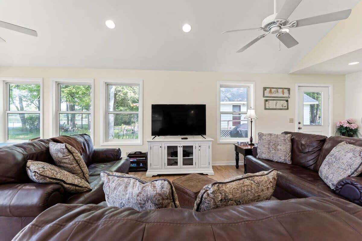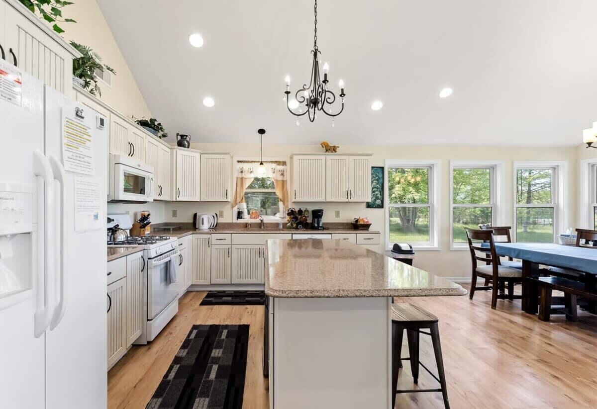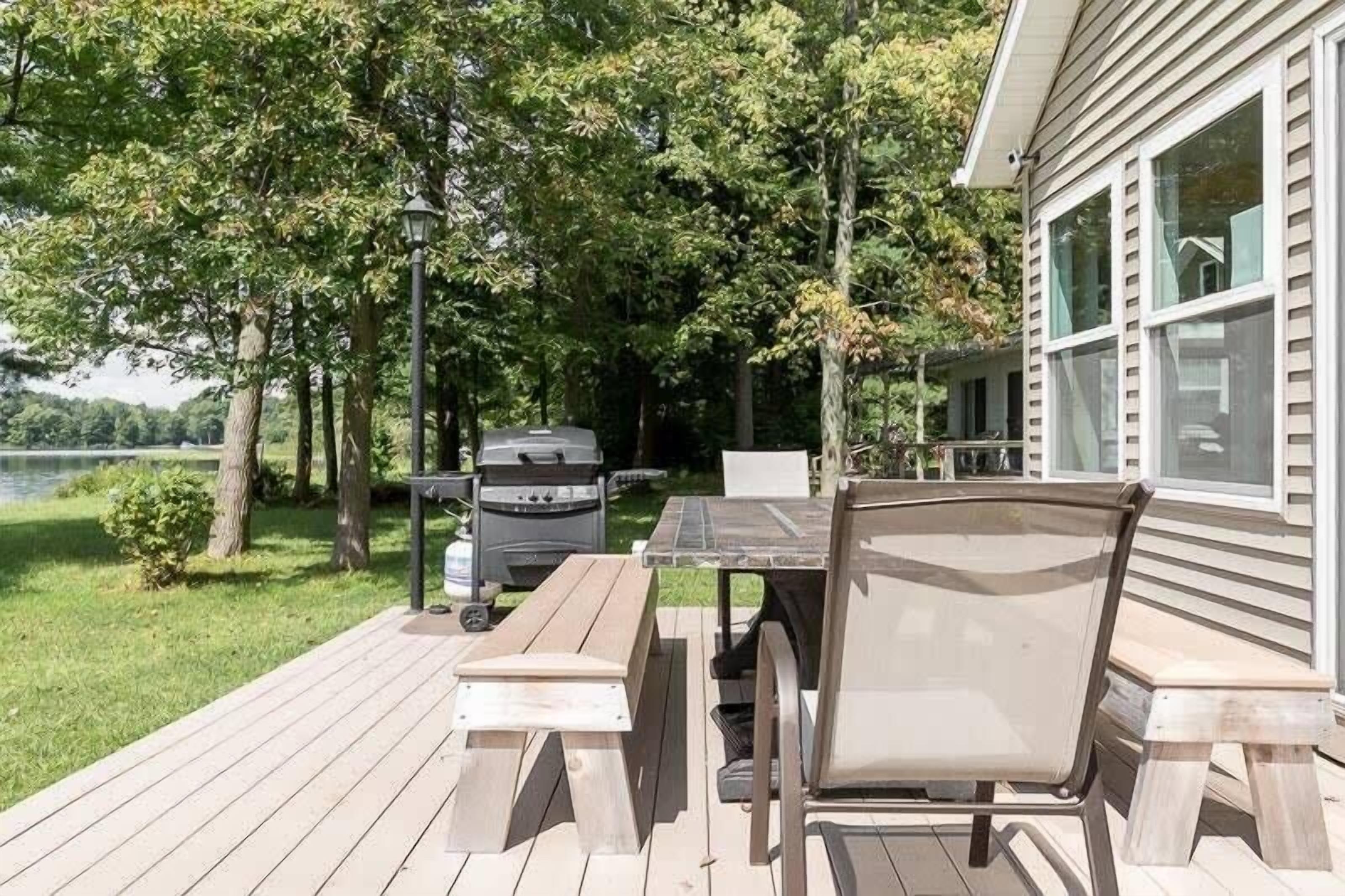 Pvt Beach, 6BR/3BA, Family, Sleep 14, S Haven Area Summary:Escape to 6-bedroom, 9-bed, 3-bath Sunset Beach House. Enjoy Upper Scott Lake from the private backyard beach, or through the huge picture windows of our great room featuring a full kitchen, XL dining set & lounge areas. Ranch-style home incl. screened porch, deck w/dining set & pergola. The home features a private fire pit, dock, beach & canoe. Central location: 2.5 hours from Chicago; 3 hours from Detroit. 14 max guests (10 max adults); total guest count must include all kids over age 2.The Space:Now Booking Select Aug-Dec 2024 & ALL 2025 Dates!New for Spring 2024: Now 3 king beds, 2 queen beds + 2 sets of twin bunk bedsThis extensively-renovated cottage is attractively decorated and is perfect for families with children or a group rekindling their friendship--all in a peaceful country and lake setting. Our home consists of nearly-new ranch-style construction with no stairs inside.The great room offers entertainment and dining options including island seating for 2, an extra-large dining table that seats up to 12, or a small intimate table for 4 that can also be used for games or scrapbooking. The comfortable leather sofas are a perfect seating area to watch satellite TV or DVD movies on our large-screen (55") HD TV. The kitchen is well-equipped and even has a mini-fridge hidden under the island--perfect for kids to fill with their own snacks and drinks. The bedrooms are lovingly decorated, comfortable, and inviting. The screened porch is a great play area for kids or a sitting area for reading; it's also great for just looking at the trees while sitting in a rocking chair or on our comfortable furniture. The lake-facing deck features al fresco dining space, and you'll have access to our gas grill to you can cook up your favorite meals during the warmer months. Our sturdy fire pit with plenty of seating is always available for gathering in the cool evenings to enjoy the sunsets over a cup of hot cocoa or cold drink, and the beach area is ready and waiting for kids of all ages to curl up on one of the Adirondack chairs by the water or wade out into the lake for fun & games. Fish to heart's content from our private dock, or row your way around the quiet lake in our canoe.Note: dock, watercraft, grill & outdoor dining furniture are not available Oct 25-Apr 15.14 max guests (12 max adults); total guest count must include all kids over age 2.Guest Access:Now Booking Select Aug-Dec 2024 & ALL 2025 Dates!New for Spring 2024: Now 3 king beds, 2 queen beds + 2 sets of twin bunk bedsGuests will have full access to the entire home, deck, yard, driveway & parking areas, private beach, and private dock with our canoe.Respect our neighbors: use only our yard, beach, dock, driveway, & parking areas. No RV parking/camping.Use of our canoe is free with the home. We also offer reasonably-priced kayak rental, by the day ($25/day) or week; reservation & pre-payment are required; a $100 minimum rental applies.Local boat rental options may be available--just ask for details. The public boat launch is just down the street from our home.Note: dock, watercraft, grill & outdoor dining furniture are not available Oct 25-Apr 15.14 max guests (10 max adults); total guest count must include all kids over age 2.The Neighborhood:Sunset Beach House is one of a handful of homes surrounding Upper Scott Lake, a quiet inland lake located in Lee Township, Michigan. Come and experience all four seasons with family or friends! Summer brings the fun of boating, swimming, picnicking, and relaxing. The autumn colors are spectacular around the lake and area. Enjoy the area's winter sports like skiing, sledding, cross-country skiing, and ice skating. Spring brings the lovely colors of the flowers and leaves bursting into life, invigorating your soul and mind after the long winter. The cozy home 10-15 minutes away from Crane's Orchards and Dutch Farms, famous for delicious pies and fruit picking. On the way to the orchards is the Fennville Winery, offering tours and wine tastings. If you like antiquing, it does not get better than this; there are many antique stores within 20 minutes, either in South Haven, Allegan, Douglas, and Saugatuck or along Blue Star Highway. In the summer dune rides are a blast and the South Haven beaches are gorgeous. Go fruit picking for cherries, blueberries, raspberries, and apples in nearby orchards. Art galleries in the area offer a wonderful selection to take home as souvenirs. Take your own kayaks to different lakes and rivers - but don't forget your paddles and life jackets!Upper Scott Lake is only 15 minutes from downtown South Haven or Saugatuck, and 25 minutes from Holland.Note: if you have a wild party, we will call the police & have you removed from our property.Getting Around:You will definitely need a car to see the best that southwest Michigan has to offer.Note: We do not offer electric vehicle (EV) charging & attempting to do so will overload or damage our electrical system. Violators will automatically be charged a $400.00 fine plus applicable damages.Other Things to Note:Now Booking Select Aug-Dec 2024 & ALL 2025 Dates!New for Spring 2024: Now 3 king beds, 2 queen beds + 2 sets of twin bunk bedsCellular pocket Wi-Fi is provided by AT&T, the best area internet service provider. They only offer limited speeds so more than a few connected devices at a time will cause lag. We provide satellite TV service & DVD players in all of our homes since video streaming is not an option.Parties: Loud parties with excessive alcohol/drug use are not allowed. All drinking games are prohibited. We ask that nothing be stuck to our walls since this will damage the paint. use of tinsel, glitter, confetti, feathers, etc., is not welcomed since they leave a mess that is hard/time-consuming for our very small staff to clean up. Note: If you have a wild party, we will call the police & have you removed from our property.Township-mandated quiet hours are 