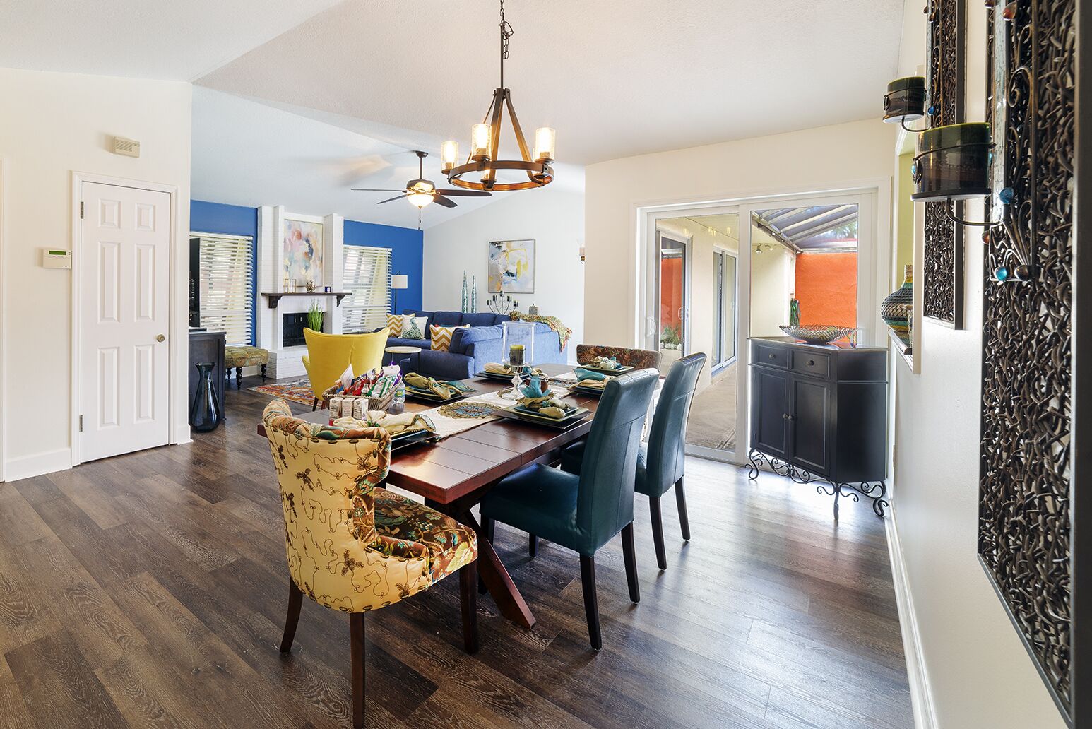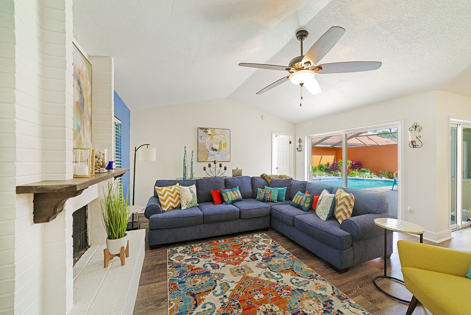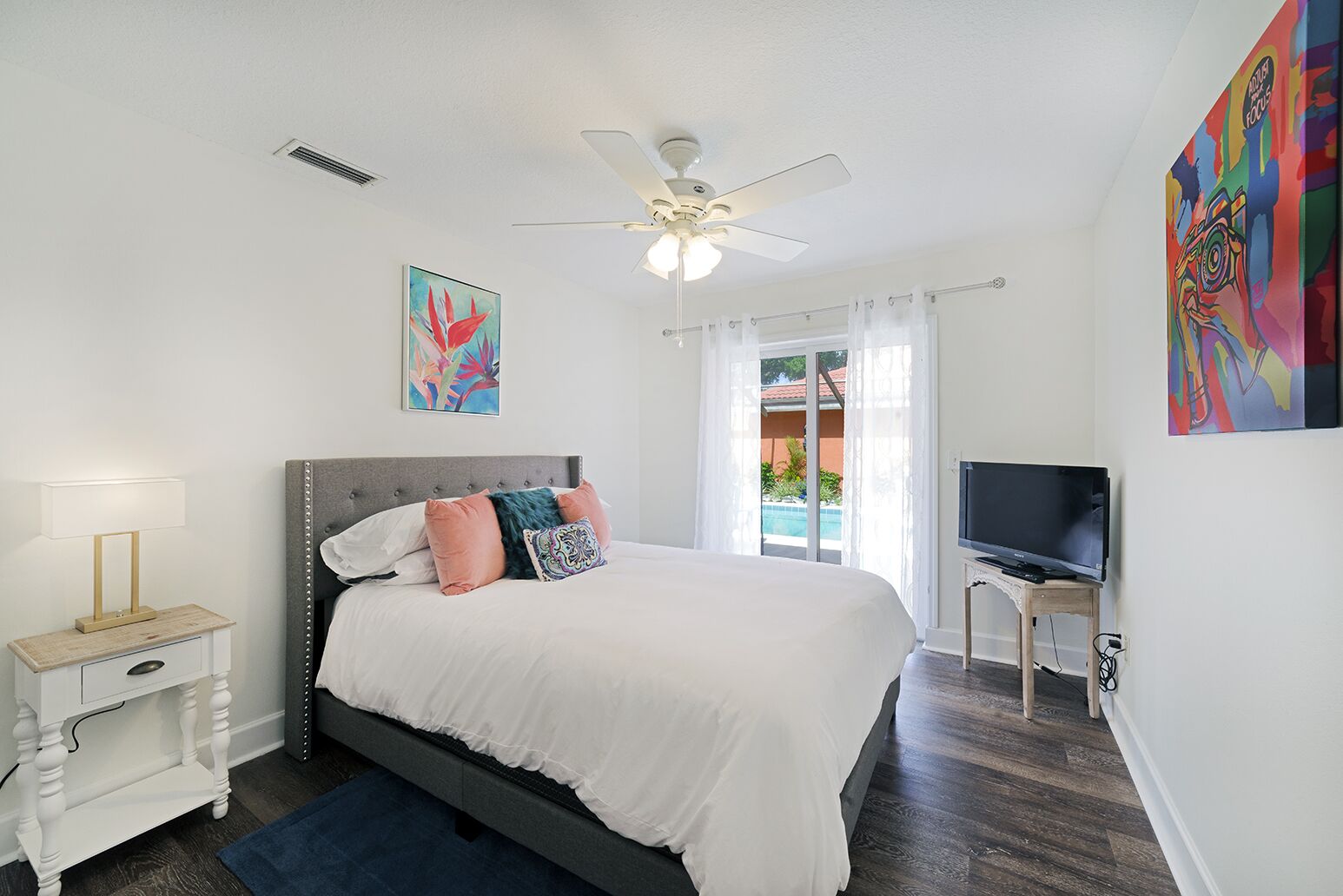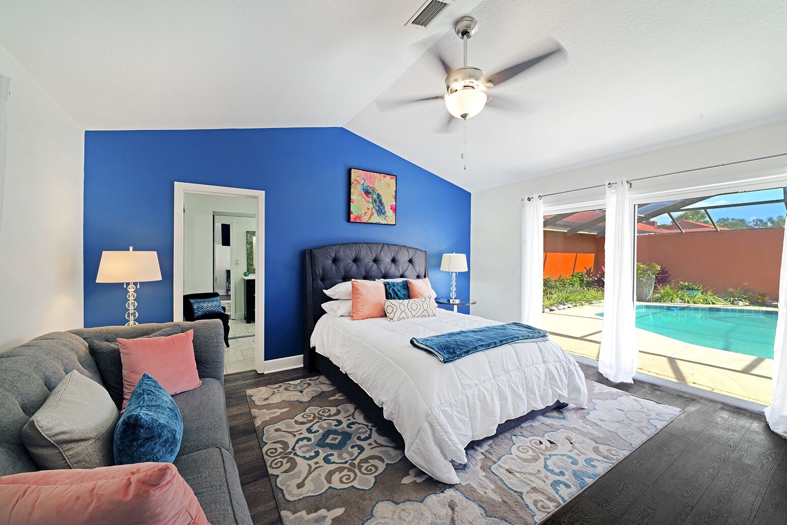 A Hidden Oasis in the city! Attn: min 180 nights or 6 month lease required for this property. Book 12 weeks at a time.Our home is a tropical getaway located within the city limits of Orlando and short drive to all local entertainment/park attractions (Restaurants, 3 Malls, Universal, Disney and Pointe Orlando). It's gated, quiet, and the picture of tranquility. The tall palm trees, lush green grass, and sounds of streaming water will literally transport you away during a tired day. Our home is spacious, vibrant and warm with open views of the private pool through out the home. The heartbeat of our home is the eat-in kitchen and large dining room table to share a meal with your family. Relax at the end of the day in the spacious master bedroom suite with your own television and couch peering at the pool. Oh and it comes with free parking for 1 car in the garage and drive way parking!