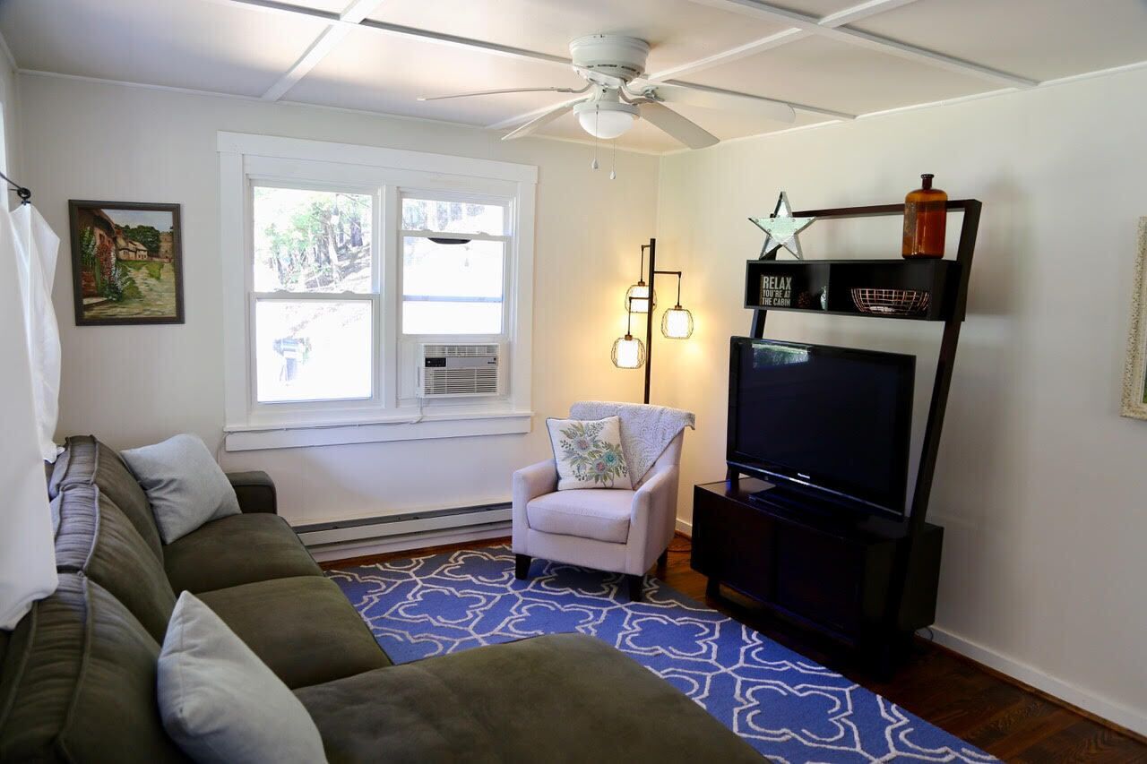 New Hot Tub! Next to resort with spa and golf! Nestled in the Capon hollow and within the George Washington National Forest and steps away from the famous Capon Springs Resort you will find a newly remodeled Ms. Bessie's Bungalow. Ms. Bessie's Bungalow is one of the original homes in the quaint little town of Capon Springs, WV. Ms. Bessie was the original owner of the bungalow and the name pays homage to her.Ms. Bessie’s Bungalow is the perfect place to set on the front porch and listen to the stream or pack your backpack for a hike in The George Washington National Forest. Ms. Bessie's Bungalow offers everything for your stay in beautiful West Virginia! The downstairs offers a bedroom with a queen bed along with a full bathroom. The upstairs area has a loft with one queen bed, two twin beds, air mattress and a full bathroom. The kitchen has everything you need to cook a meal or use our grill (gas or charcoal) outside in the outdoor entertainment area. Relax outside by the fire pit (fire wood provided) in the Adirondack chairs or sit on the Brazilian wood wrap around porch and enjoy the sounds of the stream. Spend time with your family enjoying outdoor games, indoor games, movies, and books to keep everyone entertained. Everything you need for your West Virginia get-a-way.Features: WifiWaterfall shower headHeat bathroom floor main levelKeyless entryGas fireplaceFire pit (fire wood supplied)Outdoor charcoal grill/smoker (Charcoal not included)Outdoor ice chestWater cooler filled w/ "Capon Springs Water"Picnic table w/ umbrellaOutdoor Bluetooth speakerBathroom Bluetooth speakerKitchen Bluetooth speakerTankless water heaterSatellite TelevisionLine line phone with unlimited long distance callingKreurig, Coffee Pot, Coffee Bean GrinderFull kitchen stock coffee maker, microwave, gas range/oven, dishwasher, toaster oven, and blender. Sheets, towels, shampoo, conditioner, and bath wash provided.