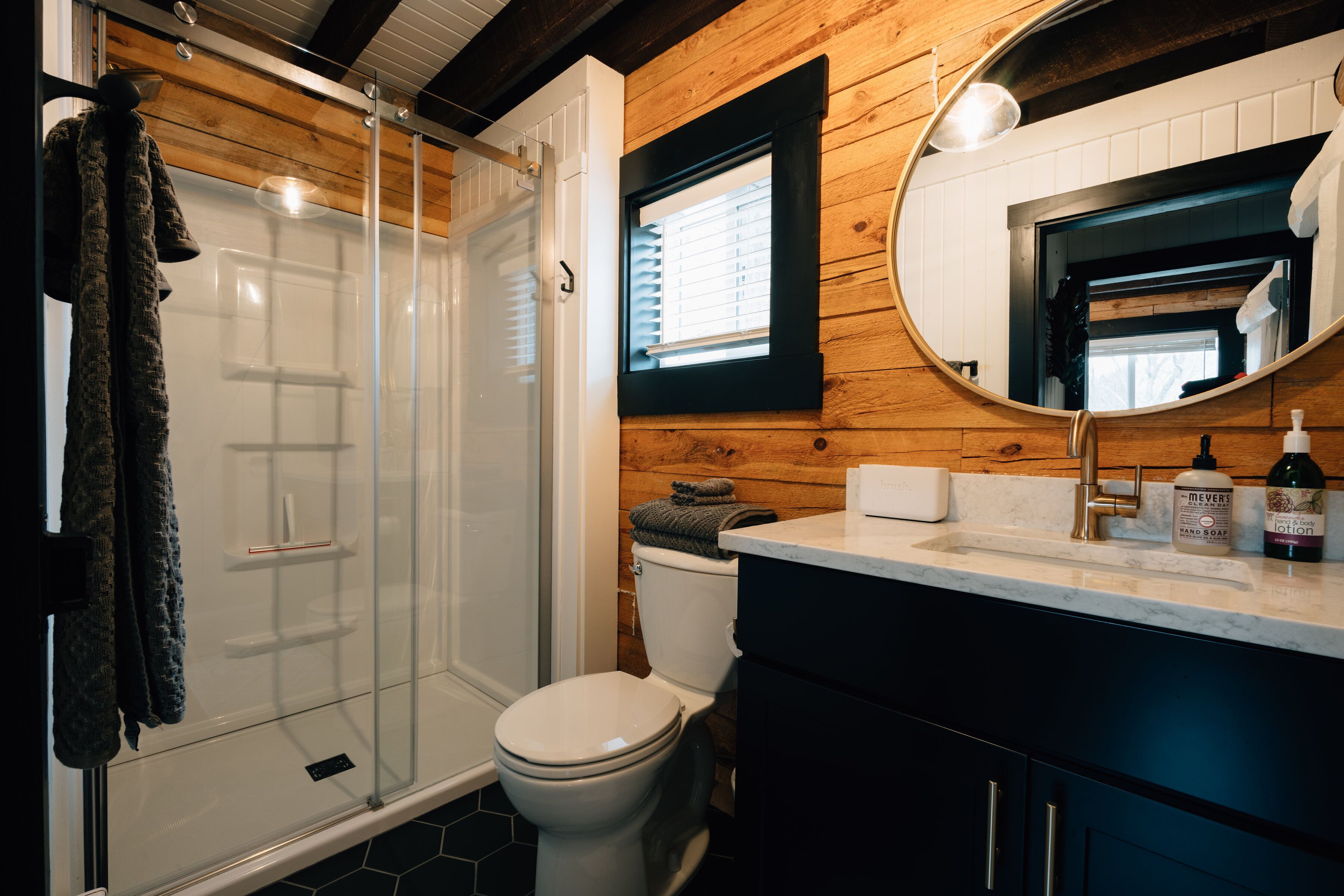 Secluded Rustic + Modern Log Cabin with hot tub by Stream, luxury getaway