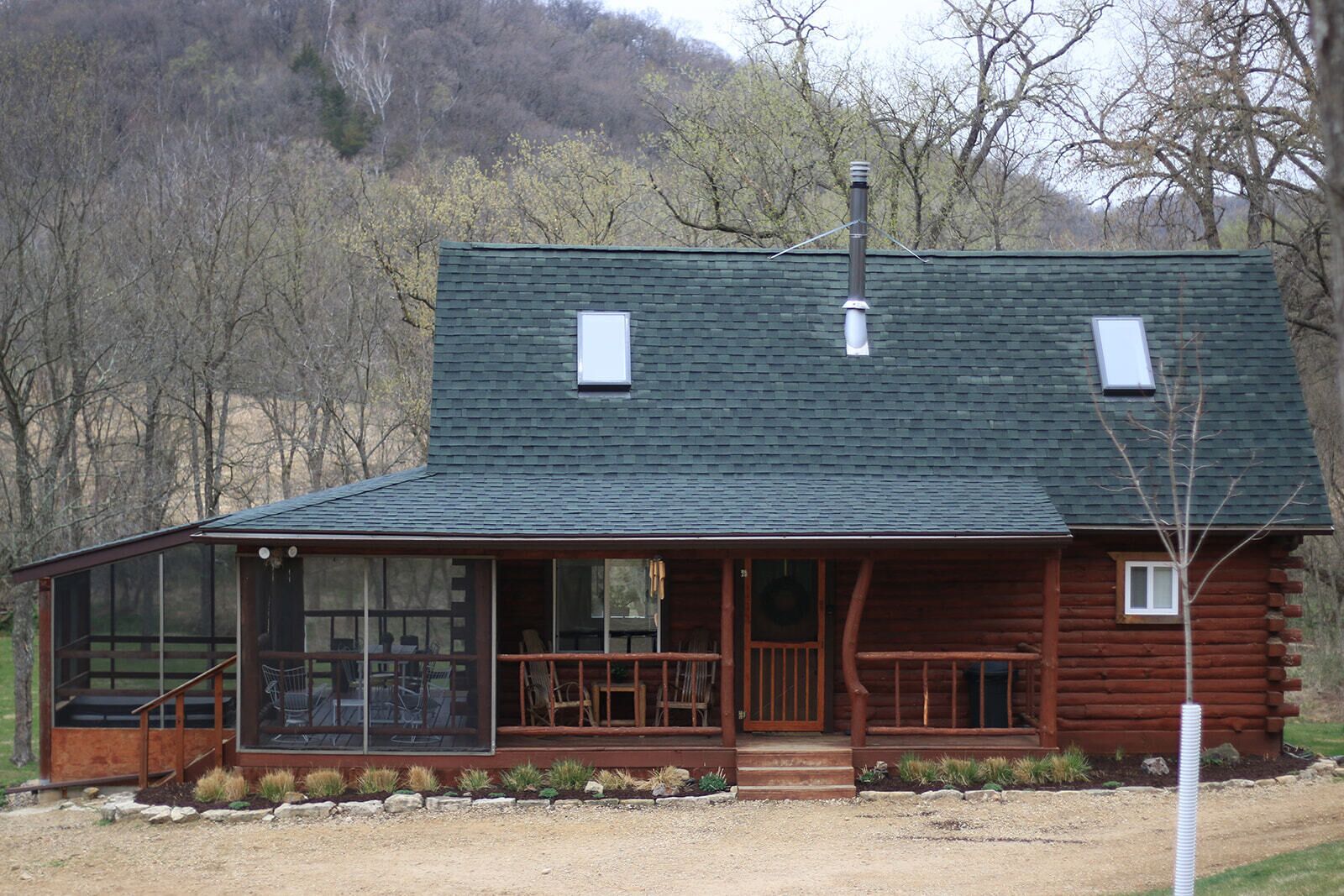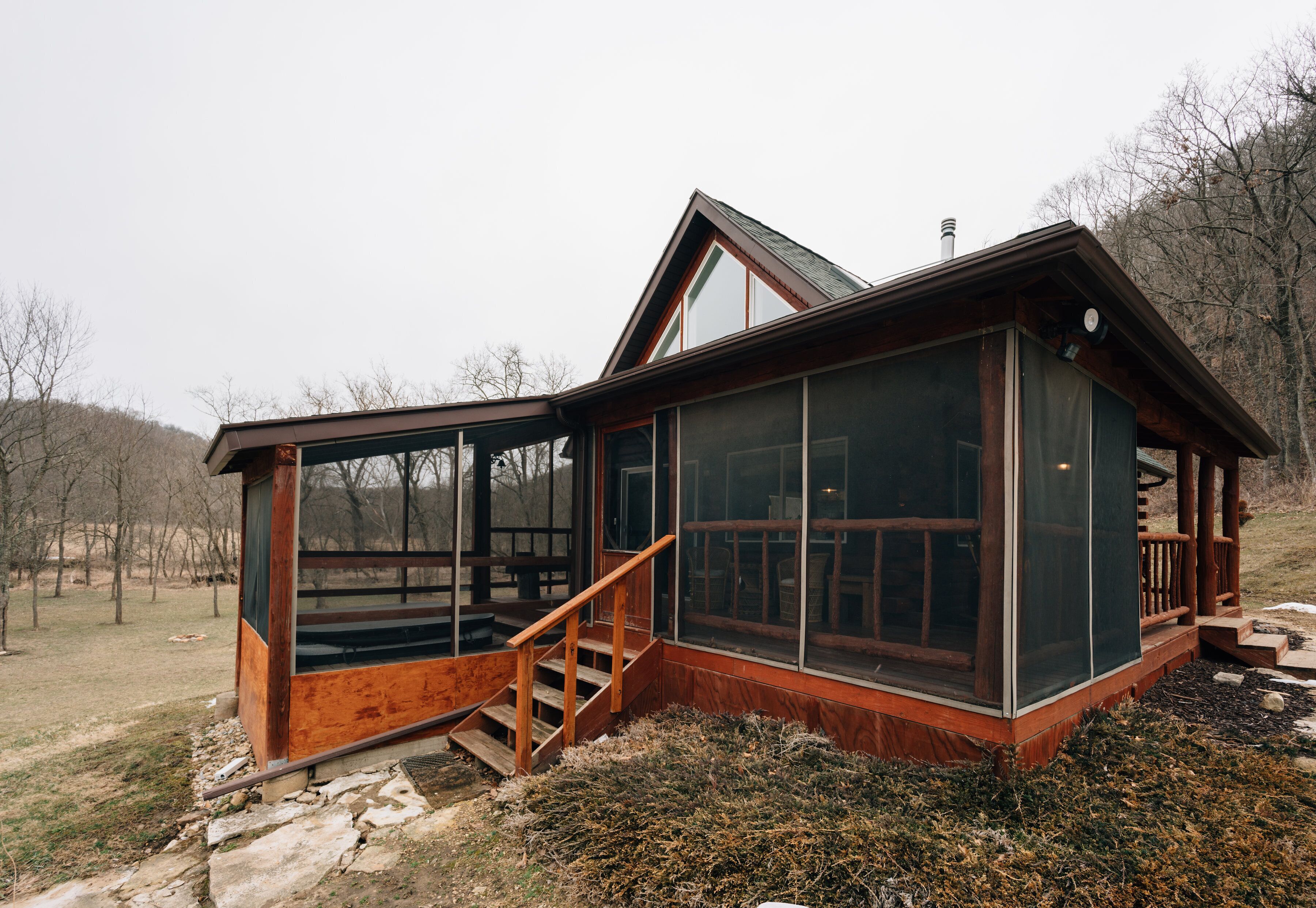 Secluded Rustic + Modern Log Cabin with hot tub by Stream, luxury getaway Walnut Creek Cabin, formerly known as the Rustic Retreat, is a secluded log cabin on a private stream located in the heart of the Driftless Area. The cabin has recently been renovated to welcome guests into a modern + rustic luxury getaway. The rustic details of the original log cabin have been preserved and reimagined to include an attractive modern design. During your stay, the serene landscapes of rolling hills, bubbling brooks and wildlife invite you to explore the 10 acres of land with nature walks or while sitting in the hot tub. There is also an outdoor fire pit, screened-in porch, and an indoor gas fireplace to make this your dream retreat. Experience nature and simple living without forgoing all the amenities.The cabin is located close to the scenic Mississippi River where you can enjoy water sports, fish, and watch spectacular sunsets. Nearby is the Rush Creek State Nature Preserve and also the Villa Louis in historic Prairie Du Chien. During wintertime, enjoy cross county skiing and snowmobiling. The Space:You will have access to the entire log cabin, which is located in Ferryville, WI. There is a private bedroom on the main level with a full bed and access to the washer/dryer in the closet. The upstairs loft has a queen bed, complete with a Saatva luxury mattress made with eco-responsible materials. There is also a daybed couch, that can convert into a queen-sized bed, and additional seating areas upstairs in the loft. The cabin is fully furnished and also offers Wi-Fi, cable TV and a land line (if you choose to use!) to ensure a comfortable and relaxing stay.Keywords: Log, Cabin, vacation, rental, House, secluded, peaceful, quiet