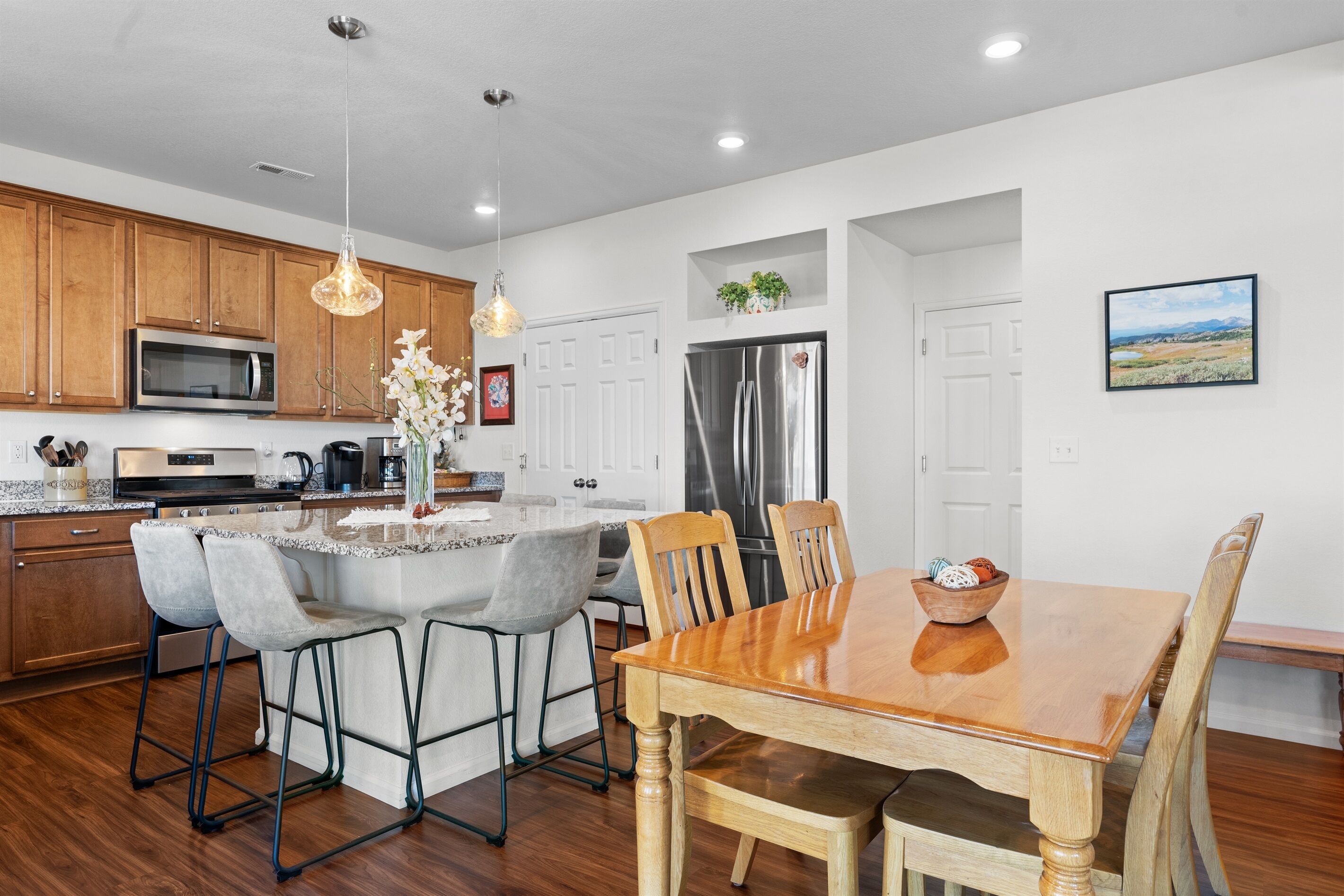 Eclectic Nest ~ Johnstown [𝗖𝗢𝗡𝗖𝗜𝗘𝗥𝗚𝗘 𝗦𝗘𝗥𝗩𝗜𝗖𝗘𝗦 𝗣𝗥𝗢𝗩𝗜𝗗𝗘𝗗 𝗔𝗧 𝗧𝗛𝗜𝗦 𝗟𝗢𝗖𝗔𝗧𝗜𝗢𝗡 - inquire about list of services!]Welcome to Eclectic Nest, where you can embark on a global adventure without ever leaving the comfort of your home! Immerse yourself in the vibrant cultures of the world as you traverse through this unique rental filled with exquisite art pieces from around the globe.Step inside and be greeted by breathtaking Turkish mosaic light fixtures that illuminate the space with a warm glow, while captivating African paintings and handcrafted sculptures steal your gaze. Every corner of this home invites your senses to wander and discover.With three cozy queen size beds adorned with high-quality linens, you and your loved ones will be ensured a restful night's sleep after exhilarating Colorado adventures. And fear not, with three bathrooms at your disposal, there will be no scramble to get ready in the morning - everyone will have their own sanctuary.Two inviting common-living spaces and an office, reading nook provide ample room for laughter-filled conversations, engaging games, and well-deserved downtime. Whether you're seeking relaxation or recreation, Eclectic Nest has you covered.Hungry for adventure? The full kitchen is fully equipped with everything you'll need to whip up delicious meals while enjoying the privacy of the backyard enveloped in the crisp Colorado air. Indulge in cozy family meals or gather your friends for a memorable evening under the stars.Don't let this opportunity slip away - seize the chance to experience the captivating beauty and cultural richness of Eclectic Nest. Book now and let your family-friendly escapade begin!**Interested in staying with us for more than 30 days? Feel free to reach out for pricing and direction for booking with us.**𝗗𝗜𝗦𝗖𝗟𝗔𝗜𝗠𝗘𝗥𝗦:- A link will be sent to you after booking to securely enter your credit card number directly with our property management company.- The renter agreement must be signed within 72 hours of booking.- Must be 25+ years old to reserve Eclectic Nest.- This property is professionally managed by Urbanize. **𝗧𝗵𝗶𝗻𝗴𝘀 𝘁𝗼 𝗗𝗼 𝗡𝗲𝗮𝗿𝗯𝘆:Conveniently nestled in a newer, tranquil neighborhood just South of the Johnstown Plaza and Centerra Shopping malls, retail enthusiasts will find their shopping desires satisfied. And if that's not enough, a short drive will take you to Downtown Loveland, where you can further explore an abundance of shopping, tantalizing restaurants, and lively bars.Close in proximity to Loveland, CO, home of Lake Loveland and Boyd Lake where there are plenty of outdoor activities including paddle boarding, kayaking, and fishing. Don't forget about Devil's Backbone (about a 15-minute drive West) where you can enjoy a day hiking through the foothills enjoying scenic views of the Rocky Mountains.With its convenient location and a short drive for access to downtown Loveland, you will find plenty of restaurants, art galleries, sculpture gardens, and shopping nearby. Craft beer lovers will be excited by more than 30 breweries within 30 minutes of the home. Take the gorgeous, 45-minute drive to the famed Estes Park for a day trip of hiking and exploring Rocky Mountain National Park. With a one-hour drive North, you'll find Cheyenne, Wyoming. Denver and Denver International Airport are also only an hour south.Fort Collins is a wonderful college town just north of Loveland and a short 15-minute drive, with availability to world-famous breweries such as New Belgium and Odell Brewing Companies. Look them up online to schedule a brewery tour or visit the expansive tasting rooms for a taste of fresh and delicious on-site brews. You will find a thriving downtown with quaint shops, a wide variety of restaurants, local coffee shops, and great concert venues such as the Aggie Theatre. Fort Collins is an amazing spot to visit during your stay at the Eclectic Nest!