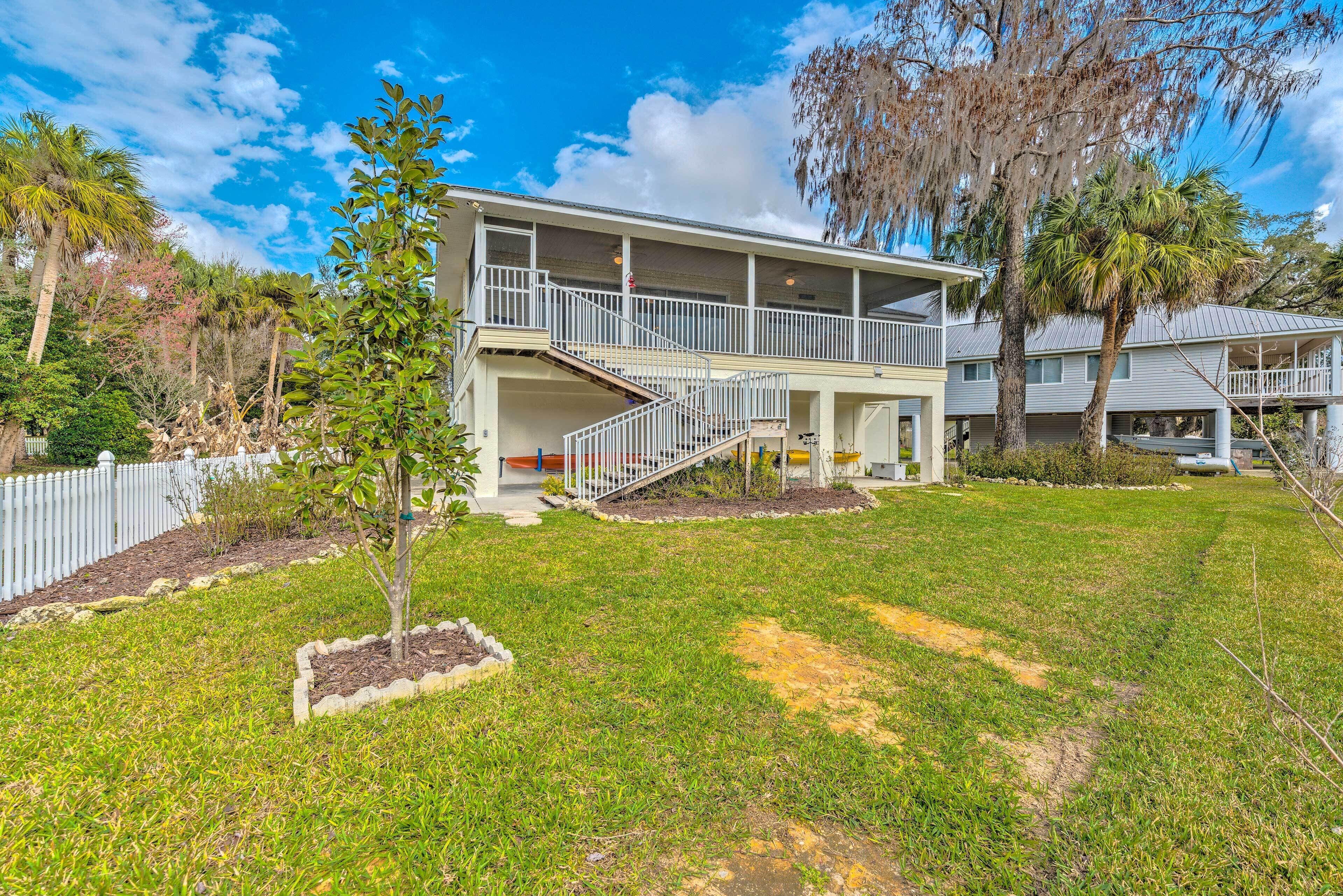 Withlacoochee River House w/ Dock + Kayaks! Located on the Withlacoochee River, just a short 4-mile drive to the Gulf of Mexico, this 2-bedroom, 2-bathroom vacation rental will serve as an excellent Florida getaway! With a screened-in deck overlooking the river and a picnic table beside the water, this house is a true riverfront escape! Charter a fishing boat or go bird-watching in Crystal River N...