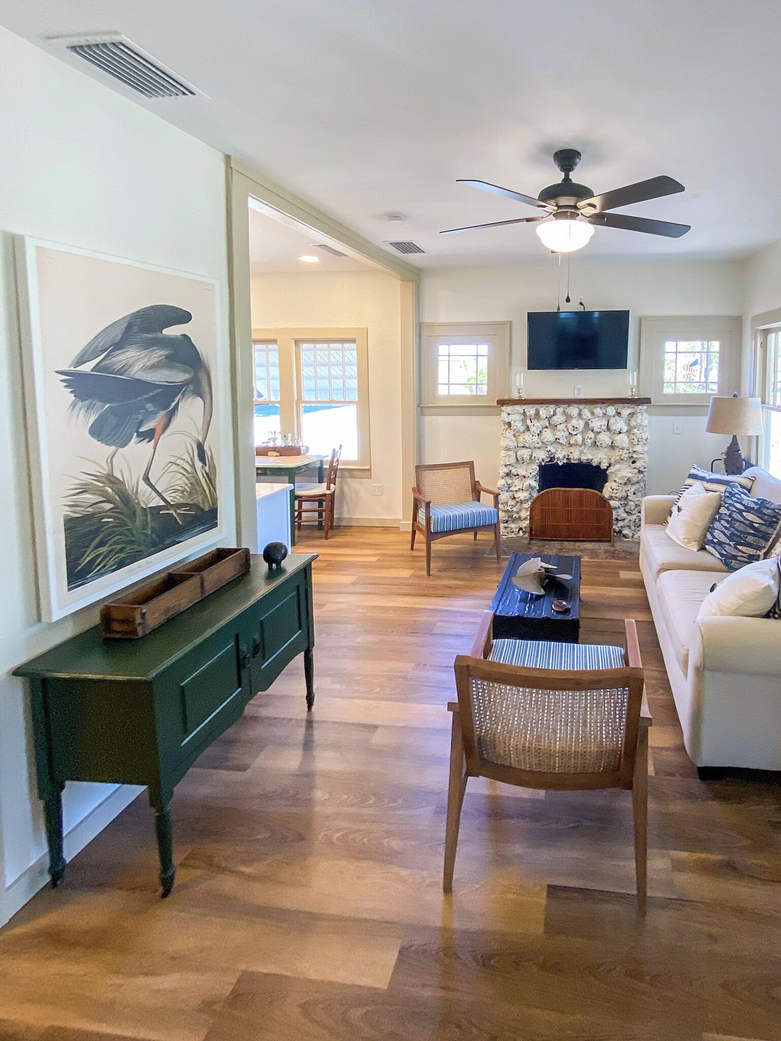 1940 Cottage on the Nature Coast Welcome to Daybook Cottage! Our cozy and charming 1940s house is the perfect getaway for those seeking a peaceful retreat. Nestled near the Withlacoochee River, our fully furnished home features two bedrooms, a spacious living area, and an equipped kitchen. Spend your mornings sipping coffee on the front porch and your afternoons exploring nearby rivers, springs and the gulf. Daybook Cottage is the ideal home base for your adventures. Make unforgettable memories at our lovely cottage. Book now!Charming 1940s Cottage in Yankeetown, Florida – Experience Historic Elegance & Modern Comforts at Daybook CottageEmbark on a journey of tranquility and adventure at Daybook Cottage, a meticulously renovated 1940s cottage nestled in the serene Nature Coast of Yankeetown, Florida. Daybook Cottage, a fusion of historical charm and contemporary amenities, offers an unparalleled retreat for those seeking a blend of simplicity and modern luxury.Historical Elegance Meets Modern ComfortAs the proud owner and an avid storyteller behind Daybook.blog, I've poured my passion for authenticity and comfort into every corner of this historic home. Preserving its unique 1940s character, Daybook Cottage has been thoughtfully updated to provide you with a seamless blend of vintage charm and modern convenience.Accommodation Details: Ideal for Small Groups or Families- Bedrooms: Two cozy bedrooms, including a plush queen-size bed and a comfortable twin-size bed, all outfitted with high-quality linens.- Bathroom: A distinctive vintage clawfoot tub with a shower attachment and an original iron sink, combining historical elegance with modern functionality.Gourmet Efficiency Kitchen & Charming Dining Spaces- Kitchen: A fully-equipped kitchen featuring stainless steel appliances, sleek countertops, and comprehensive cookware.- Dining Areas: Three inviting dining areas, one adjacent to an original awning-wrapped cottage window, one on an expansive private backyard deck and another in a sunrise soaked sunroom, perfect for enjoying Florida’s sunshine and breezes.Living Area: Vintage Style with Modern Touches- An open living space with rich wood flooring, sunny windows, an original limestone fireplace, and comfortable seating arrangements.-A seamless flow into the kitchen area for effortless living and socializing, adorned with a blend of vintage, antique, and modern décor.Outdoor Oasis: Native Landscaping & Private Deck- Immerse yourself in Florida's natural beauty with our landscaped yard featuring native plants, ideal for birdwatching and appreciating nature.- A spacious deck in a fenced backyard offers privacy and a serene setting for relaxation or social gatherings.Explore the Nature Coast: Adventure & Serenity Awaits- Proximity to the Gulf of Mexico and various nature preserves, perfect for outdoor enthusiasts interested in manatee viewing, snorkeling, diving, swimming, kayaking, fishing, and birdwatching.- Discover local attractions, including unique dining experiences, antiquing, and biking trails.Your Dream Getaway in YankeetownDaybook Cottage is more than just a vacation rental; it's a home steeped in happiness and history, waiting to be part of your adventure-filled stories. Reserve your stay at our renovated 1940s cottage and immerse yourself in the charm of a bygone era, complemented by the comforts of modern living in Yankeetown, Florida. We eagerly anticipate welcoming you to Daybook Cottage – where history, comfort, and adventure harmoniously intertwine.At Daybook Cottage, we prioritize your convenience and security. That's why we've equipped our charming 1940s retreat with the Lockly Secure Plus, a cutting-edge smart lock system. This advanced lock ensures hassle-free access while maintaining the highest level of security.Easy Entry with Advanced Technology: Gain access via a secure, smartphone-controlled system. Whether you prefer using an electronic key (eKey) or a unique access code, entering Daybook Cottage is both simple and secure.Personalized Access Codes: For your stay, you'll receive a personalized, time-sensitive access code that ensures your privacy and security. This code is easily shareable with your fellow guests, making their arrival smooth and stress-free.Unmatched Convenience: The Lockly Secure Plus is designed for ease of use. With its user-friendly interface, managing access is a breeze, even for those who are not tech-savvy.Your seamless and secure access to Daybook Cottage is just another way we ensure your stay is as relaxing and worry-free as possible. Experience the perfect blend of vintage charm and modern technology at our cozy Yankeetown haven.Guest Interactions: Always Connected, Assured AssistanceWhile I may not be there to personally welcome you to Daybook Cottage, rest assured that you are never without support. I am always available to you via phone, text or email, ensuring that any questions or concerns are promptly addressed.Remote Accessibility:Even though I won't be there in person, I'm always just a message or call away, ready to assist with any aspect of your stay.Local Support Network: To ensure your comfort and convenience, I have established a network of trusted local contacts. Whether it's a maintenance issue, additional cleaning services, or even guidance on exploring the local area, our reliable team is on hand to provide swift and efficient assistance.Our commitment to your comfort extends beyond the physical space of Daybook Cottage. We strive to make your experience seamless and enjoyable, with support always within reach.Yankeetown, Florida, is a quaint and serene village that captures the essence of Old Florida charm. With a population of approximately 588 people as of 2020, it's a small community that offers a peaceful and friendly atmosphere. This village is nestled just upstream where the Withlacoochee River flows into the Gulf of Mexico, making it an ideal location for those who love water activities and natural beauty.
