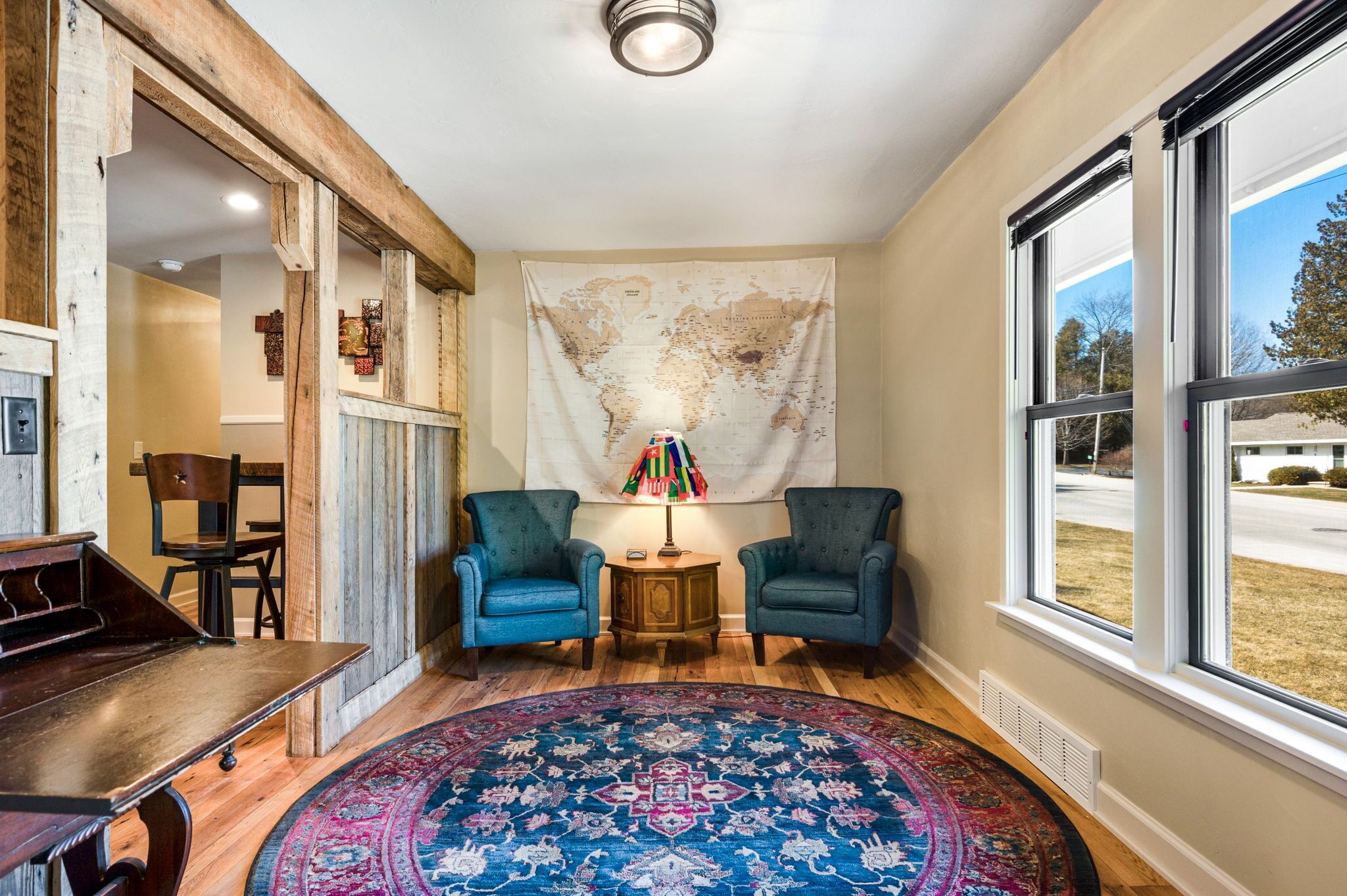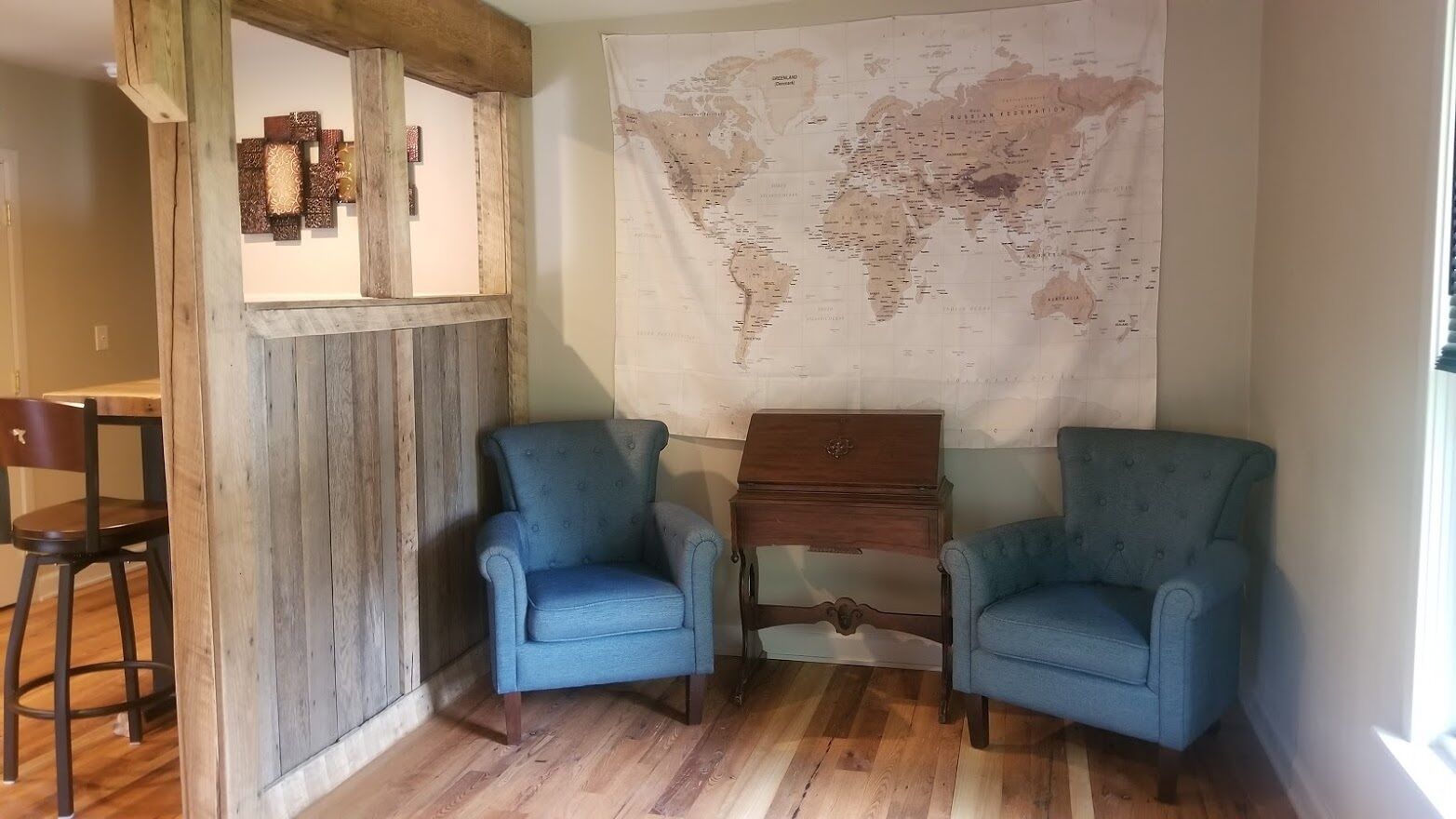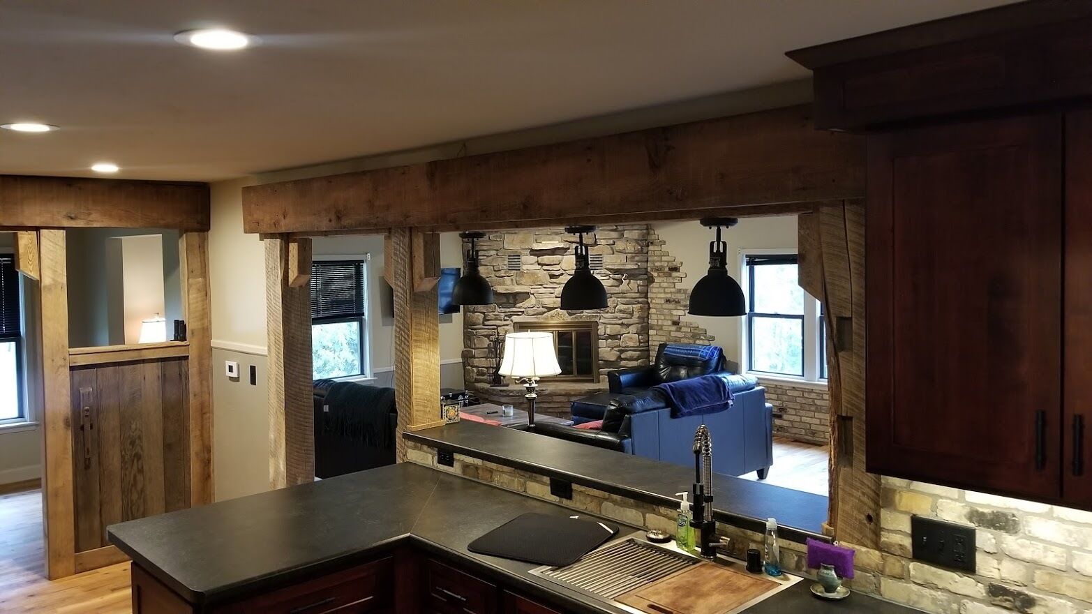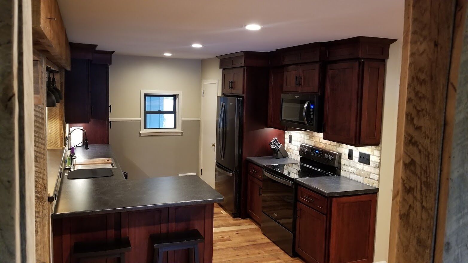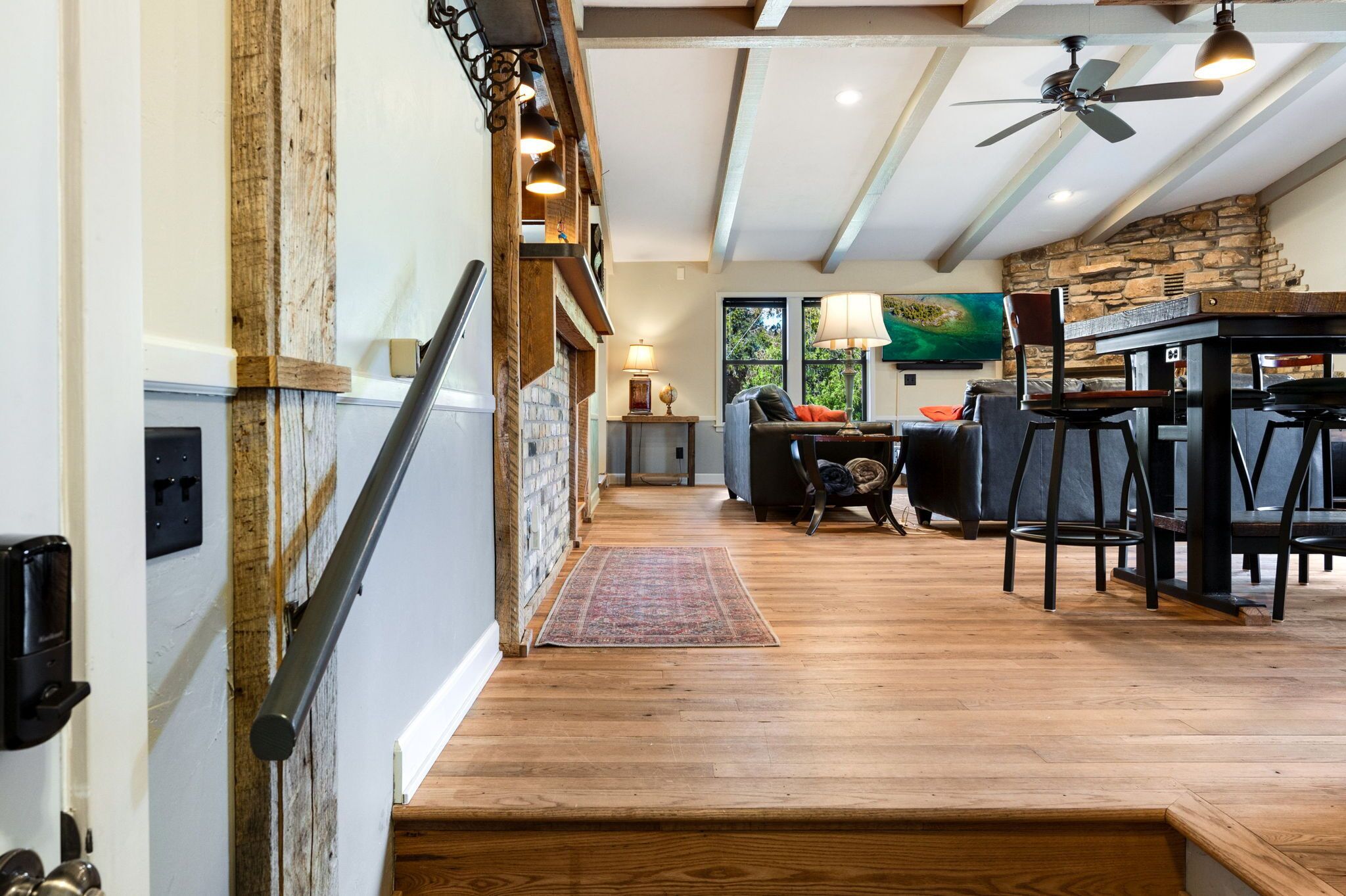 Perfect for families!!, Baileys Harbor 3 Bedroom House! Sleeps 6 plus 2 under 12 Kendall ParkA comfortable 3-bedroom, 2-bath home on the quiet side of Door County. Located in downtown Bailey's Harbor and one block in from the main street. This house is within walking distance to the Marina, The Ridges Environmental Center, Door County Brewery, Harbor Fish Market & Grille, Chives Restaurant, Bailey's 57, Anclam Beach, shops, and all that Bailey's has to offer. Yet the home offers privacy in a quiet, safe neighborhood. Located across from Kendall Park which is fun for the kids and convenient for the Sunday Farmers Market.The house was built in 1950 as a 3-bedroom, 1-bath home. In 1973 it received a major remodel which included a great room with a stone fireplace, and a master bedroom with a bath. Except for a few makeovers here and there, it remained that way for 46 years.It recently underwent a significant transformation. The house has been renovated using repurposed materials from industrial buildings and barns from around Wisconsin as well as Amish-made cabinets and furniture.The family room and the kitchen is generally one large area which is perfect for families. It has a stone, floor-to-ceiling fireplace surrounded by a comfortable seating area. There is a huge bar height table in front of a backlit timber and cream city brick wall with a coffee bar and sink. Patio doors lead to a private, spacious deck with ample seating and a gas fire table and grill. The kitchen overlooking the family room is set up with everything you need to enjoy family meals at home if you choose. On the other side of the house, down the hall, is where you will find the three bedrooms. The master bedroom has a queen bed and a full bath with a walk-in shower and walk-in closet. The remaining 2 bedrooms each have a queen bed and a twin-XL bed along with a closet. Both bedrooms share the main bath at the end of the hall. It is a full bath with a shower over the tub. Additionally, the master bedroom walk in closet has been converted into a laundry area with washer and dryer for guests to use.Bailey's Harbor is the perfect location in Door County! This house is the perfect location in Bailey's Harbor! Enjoy your stay!