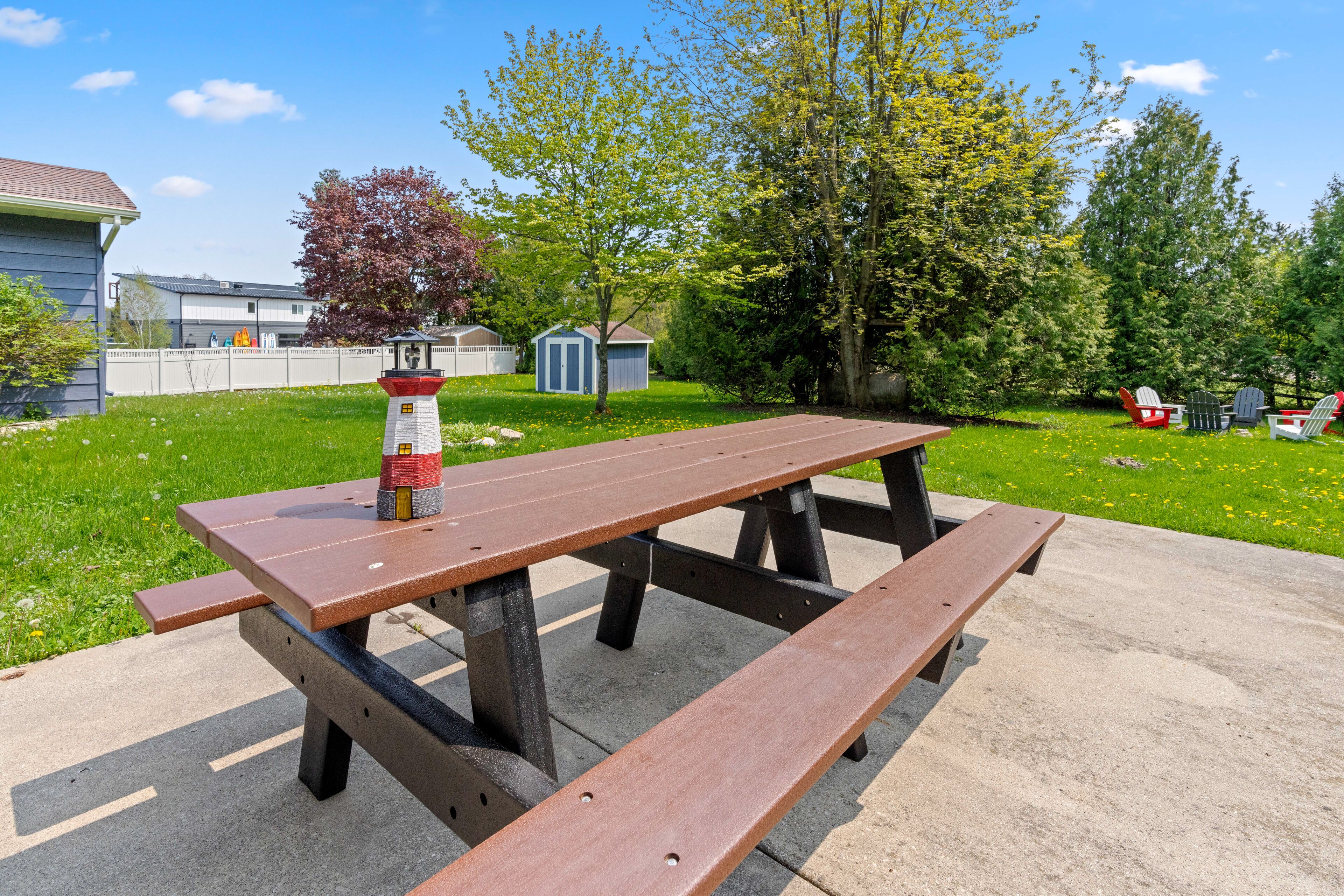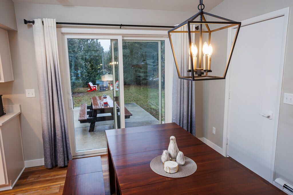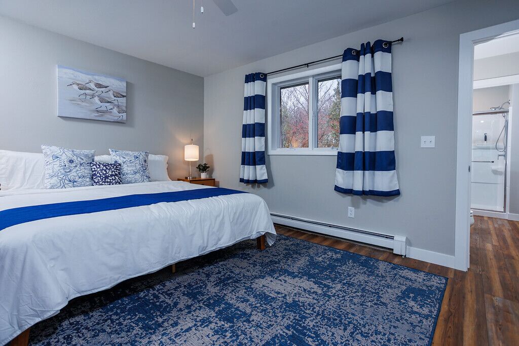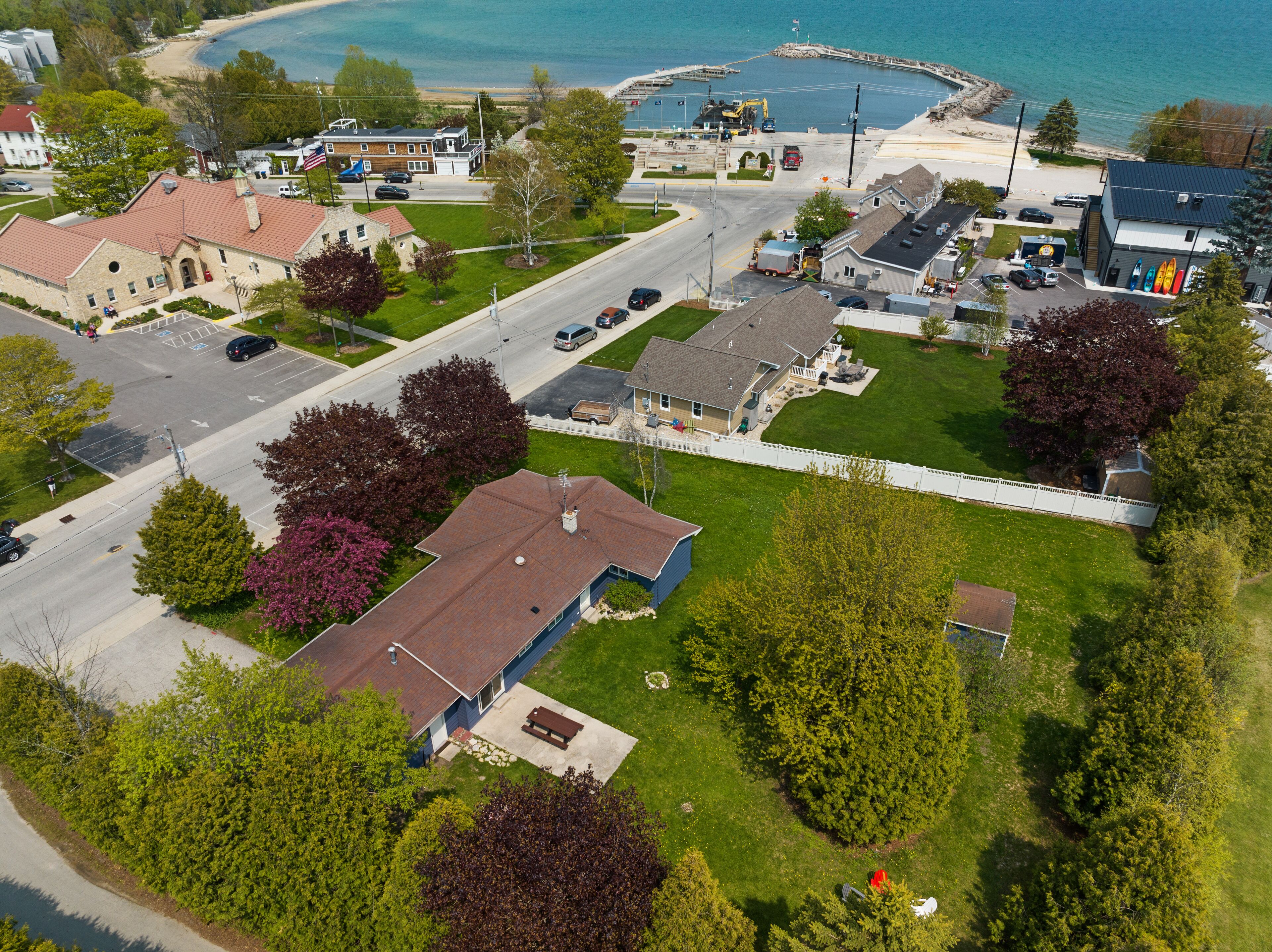 Newly Renovated, Downtown Marina Cottage Welcome to Marina Cottage, a beautifully renovated home in downtown Baileys Harbor, hosted by Simple Life Rentals! This spacious, one-story ranch is situated on a beautiful, semi-private lot surrounded by trees. It includes three bedrooms, two full bathrooms, a fully equipped kitchen, stylish living spaces and ample parking. Marina Cottage has a large attached garage with 48A Tesla wall charger and additional parking for two vehicles inside. The 1/2 acre outdoor space includes a patio for entertaining, a propane grill, an 8-foot picnic bench, large lawns for games or relaxing, and a smokeless fire pit area with seating for six. Marina Cottage is air conditioned in the main living space and two bedrooms, includes central heating throughout and a cozy gas fireplace in the living room. This home was fully renovated in 2022 with new kitchen, bathrooms, woodwork, furniture, appliances and technology. All living spaces include a Samsung SmartTV with a soundbar in the main living space for cinema or music.This home is across the street from the library and marina, and is a very short walk to restaurants, shops, the beach and much more. Guests can even enjoy water views of Lake Michigan from the front windows. This is the perfect vacation property and we are excited to host you!***This property is located in a quiet community with neighbors and is geared towards quiet family vacations. Due to the proximity of neighbors, we cannot accommodate parties at the property including bachelor or bachelorette parties, reunions, or other rowdy gatherings.Property Note:This property is equipped with a decibel monitoring sensor located inside of the home. Please do not remove or tamper with the devices. There are also two cameras on the outside of this home: one on the front doorbell and another on the garden, security light. These are used for security purposes when the property is empty and are not monitored when the home is occupied.This property supports electric vehicle (EV) charging and includes Tesla Level 2 charger (48A) inside the garage. It will work with other EVs, if guests have a Tesla to J1772 adapter.Door County Tourism Zone Commission Permit #02-56-2866-07Please be aware that you must sign a terms and conditions agreement, which will be sent to you separately, to finalize your reservation.About the Space:9 maximum guests total3 bedrooms/2 bathroomsNo petsWi-Fi (due to the rural nature of the property, internet and cell service can vary)4 Smart TVs (living room and each bedroom). Guests may log in using their own accounts. All TV's have USB and HDMI cable extensions if guests would like to plug in own Roku/FireStick or similar.Heat and air conditioning units in living room and 2 bedroomsGas fireplaceSound bar systemBluRay player and discsWasher and dryerIron and ironing boardChild’s high chairPack ‘n play (no sheets provided)Children’s books and toysBooks and games provided for guest’s enjoymentSleeping Accommodations:Bedroom 1 (main level): includes King bed, TV, ceiling fan, hangers, room darkening shades, extra pillows and blanketsBedroom 2 (main level): includes King bed, TV, ceiling fan, hangers, room darkening shades, extra pillows and blanketsBedroom 3 (main level): includes 2 Twin beds, 1 trundle Twin bed, TV, ceiling fan, hangers, room darkening shades, extra pillows and blanketsAdditonial sleeping space: Sleeper sofa in living roomKitchen Amenities:The kitchen is equipped with a refrigerator, freezer, ice maker, microwave, stove, dishwasher, oven and toasterA Keurig coffee maker is also providedAlso available are pots and pans, kitchen towels, hot pads, tea kettle, baking sheets and grill utensilsDishes, utensils, glassware, and wine glasses are also on siteDining area seats up to 12Bathrooms:Bathroom 1 (main level): includes walk-in shower and hair dryerBathroom 2 (main level): includes walk-in shower and hair dryerOutdoor Space:Patio with patio tableFire pit with 6 chairs, firewood providedPicnic tableGas grill with extra propaneOutdoor games for guest’s enjoyment including: Cornhole, Bocce, Slammo, Dartboard and darts in garageDriveway includes space for 4 vehicles, including space for a trailerGarage includes space for 2 vehiclesSurrounding Area:Located in the heart of Baileys Harbor, Marina Cottage is 500 ft from Baileys Harbor Marina and Downtown Baileys Harbor so everything is walkable. Situated opposite Kendall Park and the public library, Marina Cottage is centrally located on a residential street. It is the perfect private holiday spot in the center of town!Door County is full of many amazing things to see and do! We recommend that you check out Destination Door County, and the visitor's bureau online, to help map out your vacation. "Door County Vacationers" is also a great FB group to join to get recommendations on everything from favorite restaurants to favorite tours, places to rent boats, and things to do. Dining recommendations:Clover and Zot - European style fine dining and sharing plates with lakefront patioChives - American style fine diningCornerstone Pub - Casual bar atmosphere with reasonably priced fareHarbor Fish Market and Grill - Seafood and meat dishes with lake viewsDoor County Brewing - Locally brewed beers and barbecueThe Blue Ox - Burgers, homemade chili and beerHeirloom Café - home made breakfast optionsFlorian II Supper Club - Traditional Wisconsin supper club with lake viewsProvided:Bed linens, pillows, blankets, and bathroom towels are provided. Please bring your own beach towels. We provide a starter pack of essentials which includes toilet paper, paper towels, dish soap, dishwasher soap, hand soap and garbage bags. Due to septic systems, we do not provide facial tissue.We also supply one each of travel size shampoo, conditioner and bodywash per full bathroom. Due to health and safety guidelines made by the health department, all pantry items must be removed between guests. Please bring cooking ess