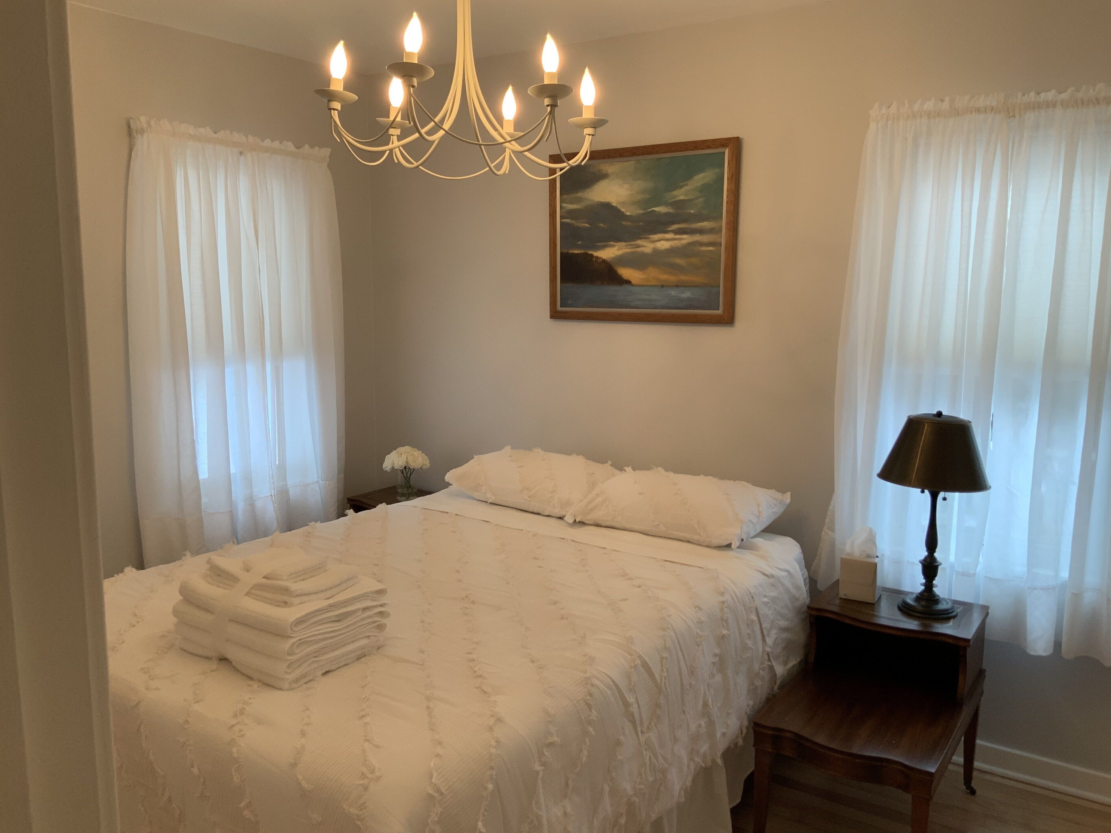 Charming garden cottage downtown Ellison Bay walking distance to lake and shops This gorgeous downtown property is surrounded by beautiful perennials, climbing vines and flower bushes. The Cottage is located kitty corner from the Gus Klenke Garage on hwy 42 in downtown Ellison Bay and within walking distance to Door County Cider, local pottery shops, and an antique shop. Local restaurants and coffee shops include Kick Ash Coffee, Brew Coffee House, Wickman House, Mink River Basin Bar and Restaurant, and The Viking Grill all within walking distance. The Pioneer Store is less than a city block away and has deli meats, beer, wine, liquor and fresh and frozen foods. The Cottage is attached to a seasonal retail shop with its own personal entrance. There is a spacious parking lot and a very large enclosed patio area with a picnic table, patio table and bench. The kitchen has all the tableware and silverware needed for eight individuals as well as a coffee maker, toaster, pots and pans, full refrigerator, electric stove/oven and a dishwasher. The dining area has a fold-out table that seats 8 and has a large bay window. The living room is open and bright with a full picture window looking out at the patio. There is a brand new cozy couch with additional seating facing an electric fireplace and large screen tv that includes Spectrum cable and wifi. Provided are also Pendleton beach towels for your use. There is one bathroom that has a large sit-down tiled shower. A set of towels, hand towels and washcloths are provided for each guest. The first bedroom is very large with a four poster queen bed and corner windows perfect for relaxing with a good book. Large closet and shelves with a luggage rack and all bedding with extra blankets and sheets provided. The second bedroom has a comfortable queen bed with cozy bedding and extra blankets and sheets provided. A small closet and full length shelving unit for clothing storage. All bedding is provided with extra blankets and sheets. Owners live in Door County and are very open to accommodating our guests in any way we can so please let us know if there is anything you need to help make your vacation the best experience possible!