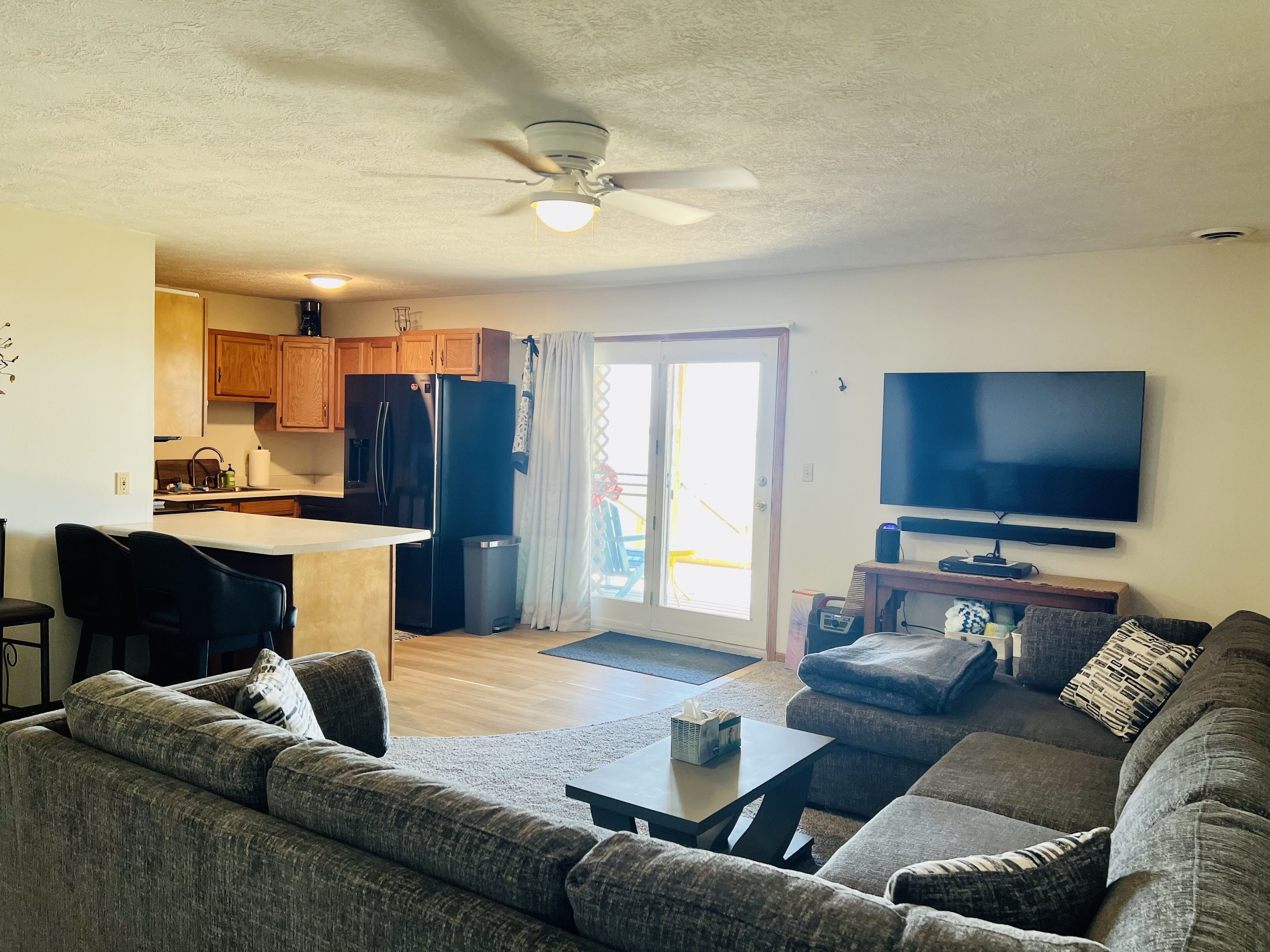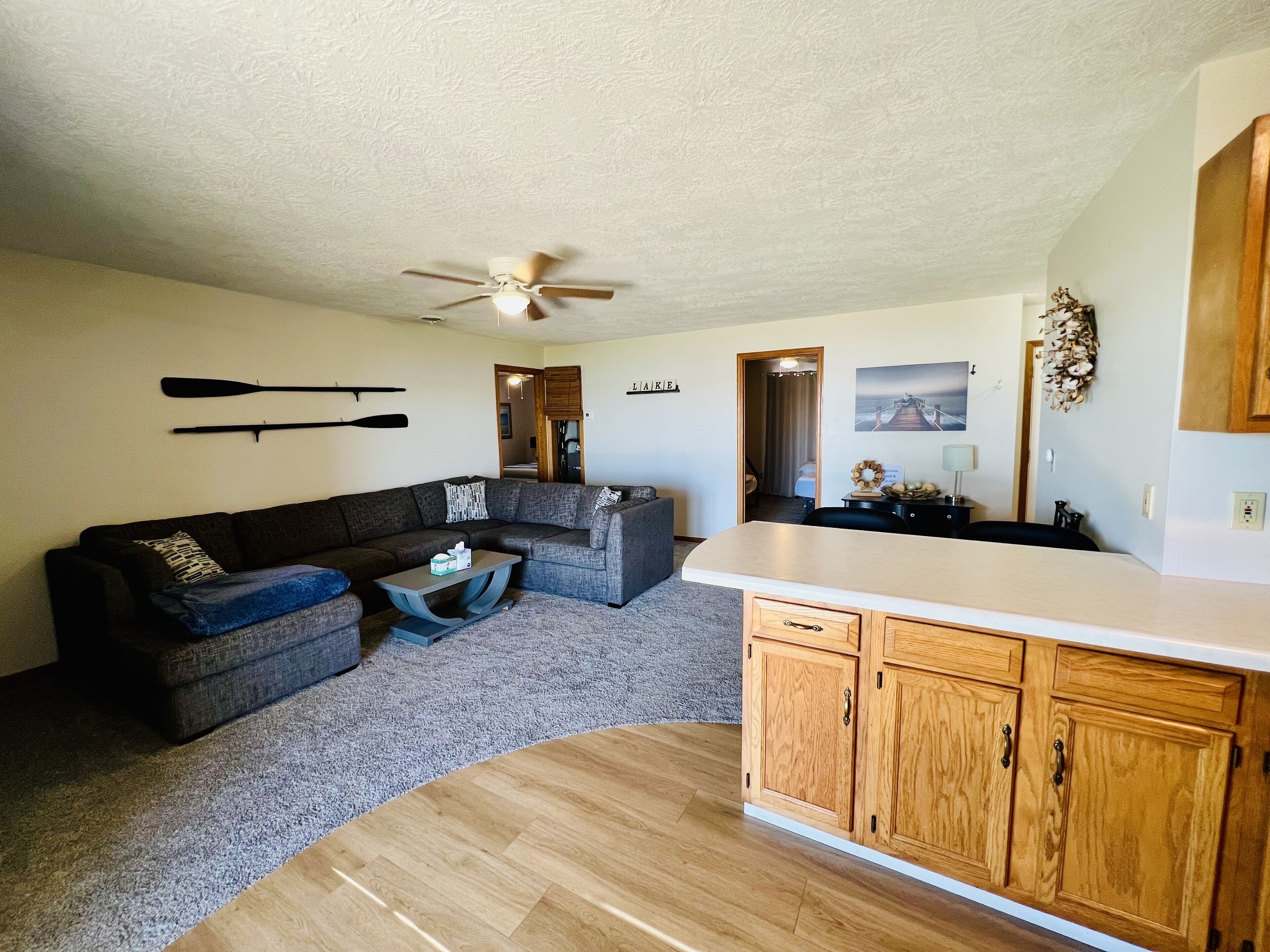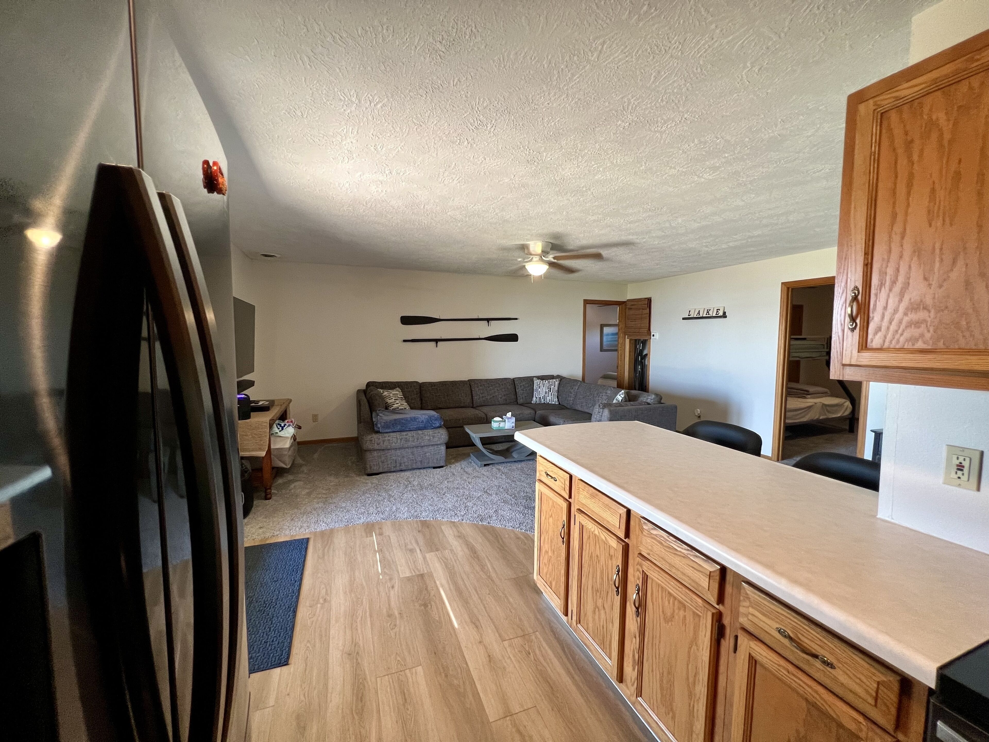 Lakefront Fun If you are looking for a a fun weekend on the lake this is the perfect condo for you! Enjoy the first floor views with shared dock access and large shared yard. The best bar/restaurant on the lake is right next door with live music every Friday and Saturday in the summer. Spacious covered deck with patio furniture, grill and fire pit for extra outdoor living space.
