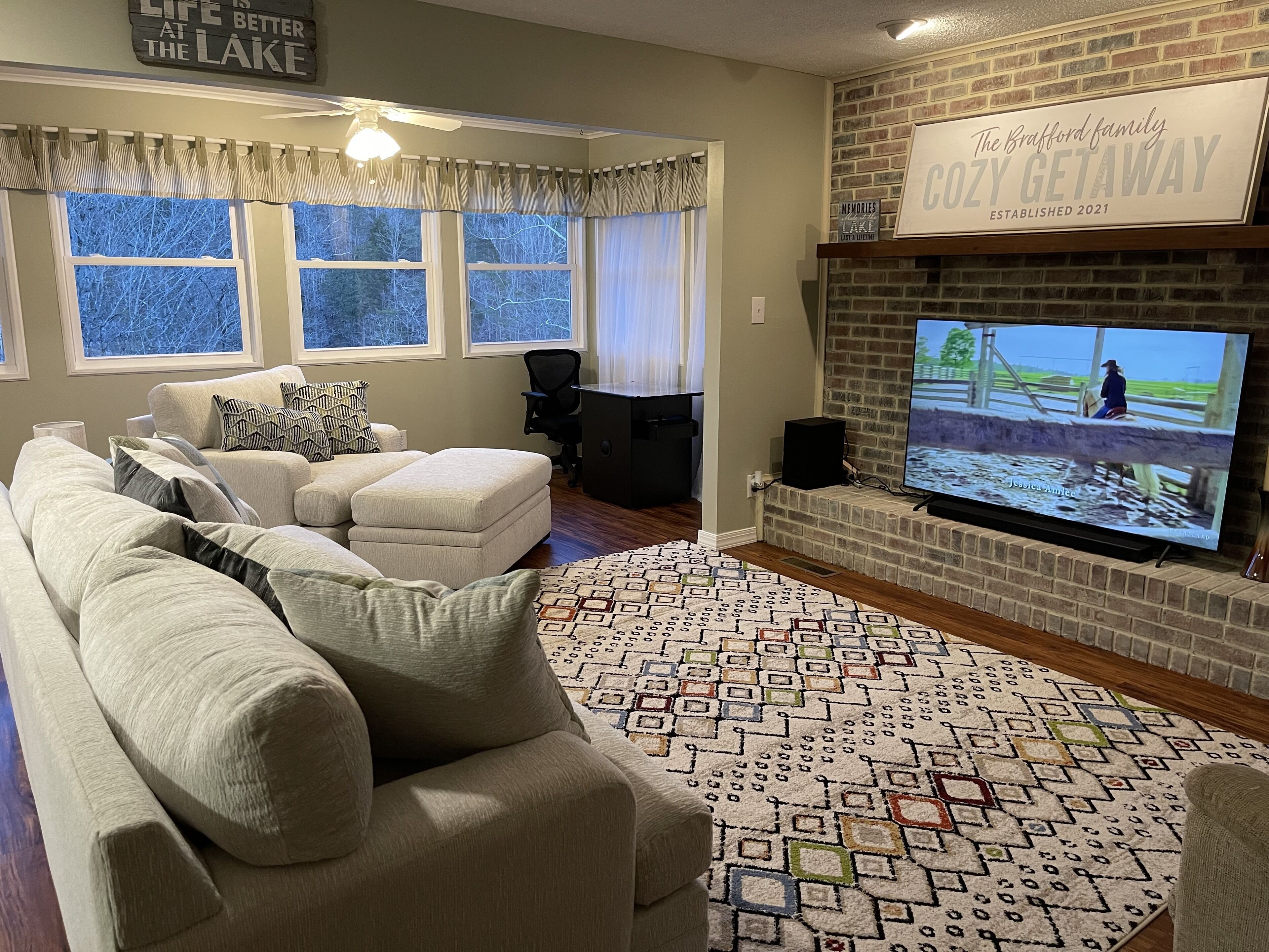 Lake Front House in Caryville with Private Dock, 5 minutes from I75 /Twin Cove! You will fall in love with this cozy lake front home located just 5 minutes from the interstate, Walmart and Twin Cove Marina, sleep up to 12 with spacious living room area and fully equipped kitchen, strong high speed internet, good phone reception, enjoy breath taking views from the back porch as You grill some burg...