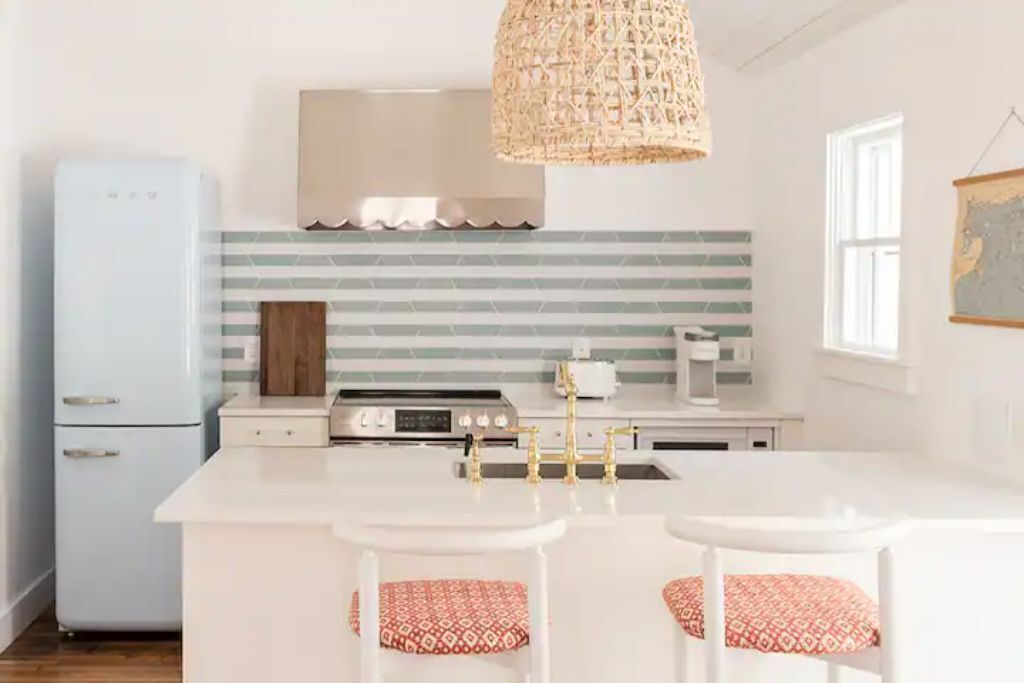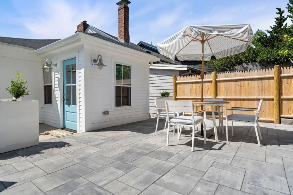 A True Old Town Experience Enjoy a true Old Town experience at this charming two bedroom apartment steps from Abbot Hall, Crocker Park, beautiful beaches, and the best shops and restaurants downtown Marblehead has to offer. Situated on the second floor above a jewelry shop, this cozy hideaway was inspired by Marblehead's nautical history, while still retaining all the modern conveniences today's travelers desire.The spaceGuests will enter through a private walkway along the side of the building and up the steps leading to a deck and beautiful patio. Inside, the entry area doubles as a laundry room with access to a washer and dryer, in case you need to dry beach towels or bathing suits after a day on the water. This leads to the main living space with an open kitchen. Though the living area may be small, the vaulted shiplap ceilings make the space feel open and airy. It's the perfect spot to curl up with a good book or watch a movie on a rainy day. The kitchen is equipped with everything you'll need for meals during your stay and includes a peninsula for dining in. Take your pick from the lobster bedroom offering a queen bed or the sailboat bedroom with a full bed. Treat yourself to a bath in the antique clawfoot tub or take a quick shower to wash away the salt and sand. There's even a spacious patio perfect for outdoor dining or relaxing in the sun. Decorated in a playful red, white, and blue color scheme, this quaint apartment offers the quintessential Marblehead experience for those looking to live like a local during their stay.