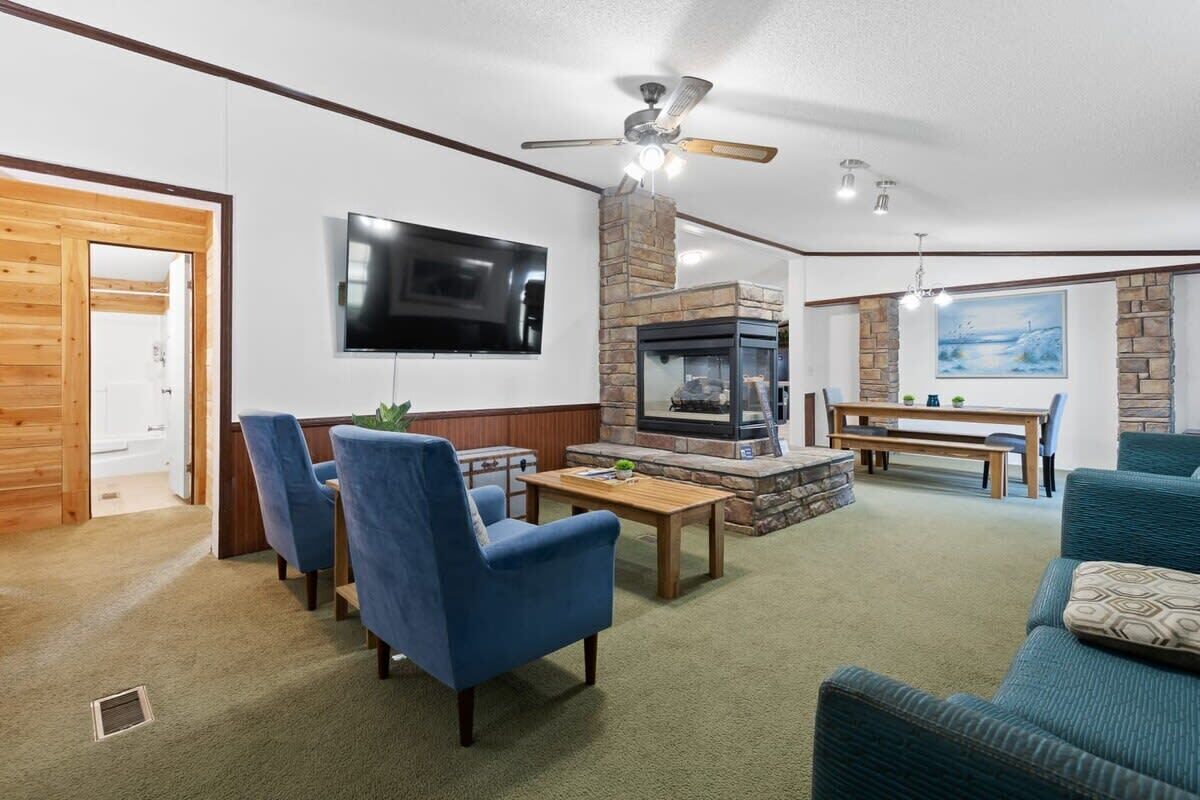 Hottub & Right on River! Chickamauga River Retreat Summary:Are you looking for a sense of seclusion all while staying at a home just steps from the river? Make this your next getaway and enjoy beautiful views of the Chickamauga River right out your front door. Our four-bedroom, two-bathroom home offers spacious living both inside and out! Guests will enjoy the large open living, dining, and kitche...