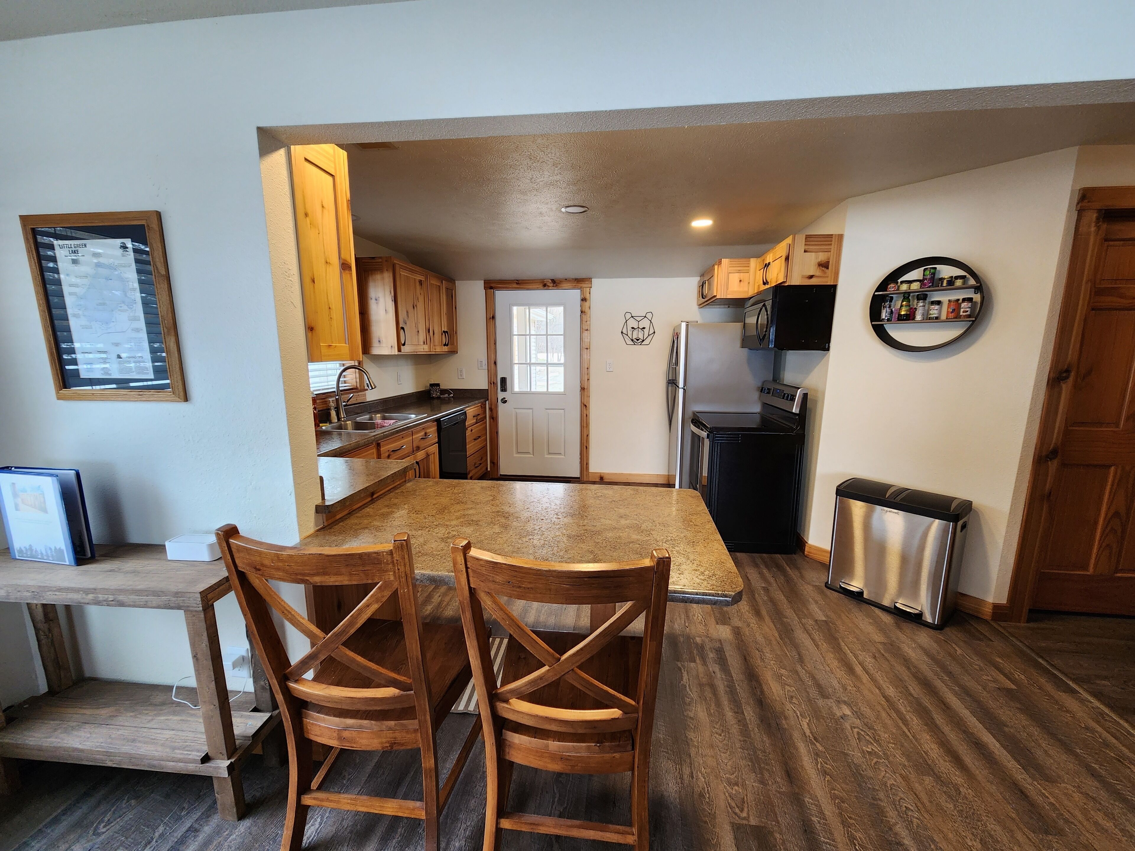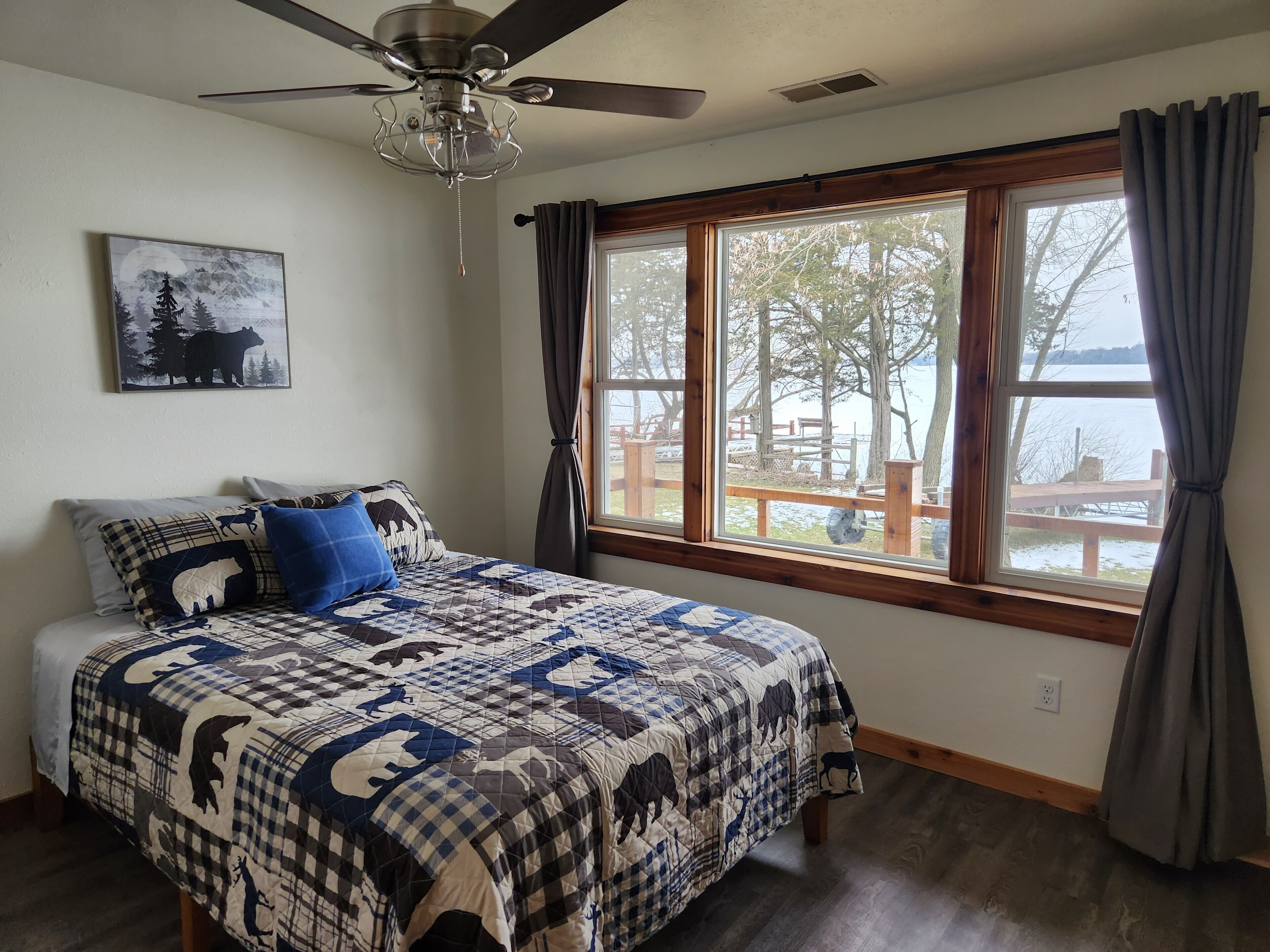 Lakefront Cabin on Full Rec Lake with Pier Our Cabin is the getaway you’ve been dreaming of. With a multitude of nearby supper clubs, lake front fishing, and a local Piggly Wiggly just down the road, this cabin has everything you need to enjoy a good 'old fashioned Wisconsin week! Big Green Lake and the golf course of Lawsonia minutes away. Spend your time out fishing/kayaking/swimming on the lake, curled up with a good book and blanket inside, or roasting some marshmallows by the campfire. Lots of games and puzzles for all ages. This charming year-round home is perfect for small group gatherings or a close to home staycation.This 3-bedroom cabin features an outdoor fire-pit, and private lake access. Private pier to dock your boat or fish from with a boat launch just down the road. This 3 bedroom, 1 bathroom home features the following sleeping arrangements: Bedroom 1 - queen bed and a twin bedBedroom 2 - queen bedBedroom 3 - queen bed Living Room - sofa queen pull out bed In the living room, you can find a smart tv.Other Important things to Know:We are so delighted to have you stay at our cabin! We ask that you please treat our home as if it is your own and follow the stated house rules below carefully:Noise:Our neighbors are great, but due to the close-proximity we ask you to respect them by refraining from loud noise between 10pm-8am.Pet Policy:We love pets, but we ask that you limit the number to 2 small-medium breed dogs or 1 large dog. If you are bringing your furry loved ones, please keep them off the carpeted space. We have a baby gate in place so you shouldn’t have any issues doing this. Please keep your pets on leashes when outside of the cabin and pick up after them. Please stay off of the vacant lot next door and do not allow guests or pets on the other side of the fence. There will be a $100 per pet fee for the duration of your stay and a $250 refundable damage deposit for any guests with pets. Failure to clean up after your dog will result in a $50 fee. We do not allow for fireworks of any kind to be used during your stay.Guests/Visitors:We love having friends over, but do not allow any additional overnight visitors other than what has been previously approved. If your plans change, please contact us to seek approval. Additionally, we do not allow for any events of any kind during your stay.Non-Smoking:Please note that this is a non-smoking home and we do not allow illicit drug use at any time while on our property.Appliances, Utilities, And Securities:Please switch off all lights, fans, and electronics upon check-out and when you are not at home. Please wash and put away all dishes used. Please lock and close all doors and windows when you leave. We are not responsible for the loss of any personal valuables or belongings.Garbage & Recycling:Please empty all garbage and recycling and put in in the garbage bins outside. If your garbage does not fit inside, please plan to take it with you to dispose of yourself. We will ensure adequate room in the bins, but garbage left inside our home will result in a $50 fee.Damages:We understand that accidents happen! We ask that you report any accidental damages prior to check-out in a timely manner. In case of damage to property that is not covered by insurances, guests will pay for the repair. Please be respectful of our space and keep furniture in the room you found it in.Lake & Kayak use:No lifeguard. Lake and kayaks may be used at your own risk.Winter:Winter is a little challenging at the cabin but our favorite time there! It is extremely peaceful and beautiful there in the snow. We hire someone to plow once the snow storm passes. The short walk and driveway from the parking spot to the house may or may not may not be shoveled. Please wear appropriate winter footwear and be prepared to shovel if booking during the winter months.Compliance:A breach in any of the above stated rules is a breach of the terms and conditions that you have agreed to. We reserve the right to evict any guests or visitors from the property who do not follow the above stated rules.Cancelation Policy:We encourage our guests to obtain travel insurance, so that in the case of unforeseen circumstances such as illness, family emergency, or other scheduling conflict you are covered. We do not refund or make exceptions to our policy.