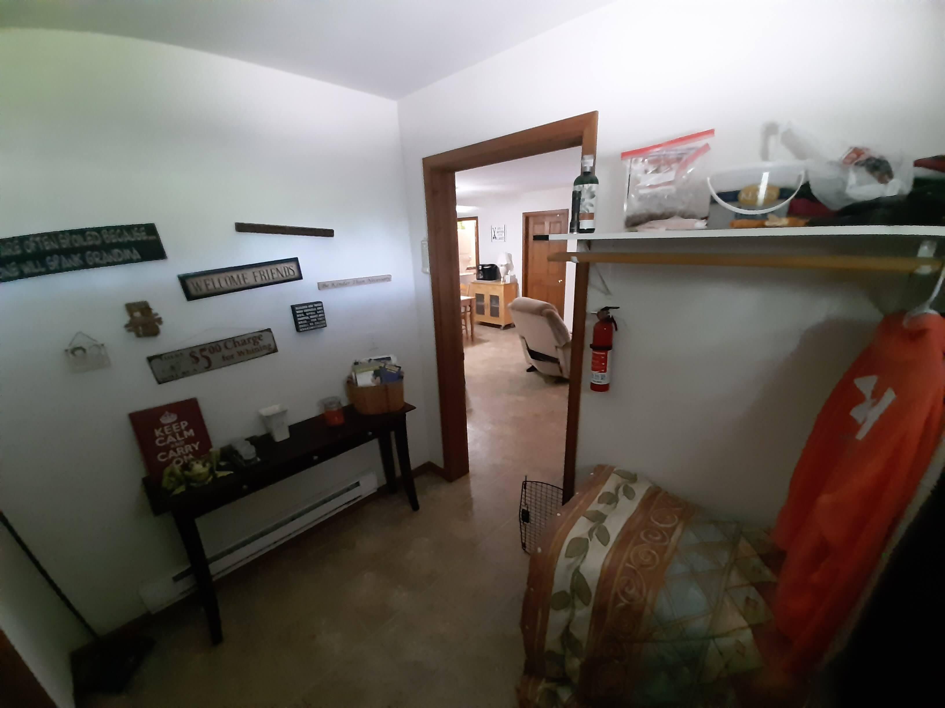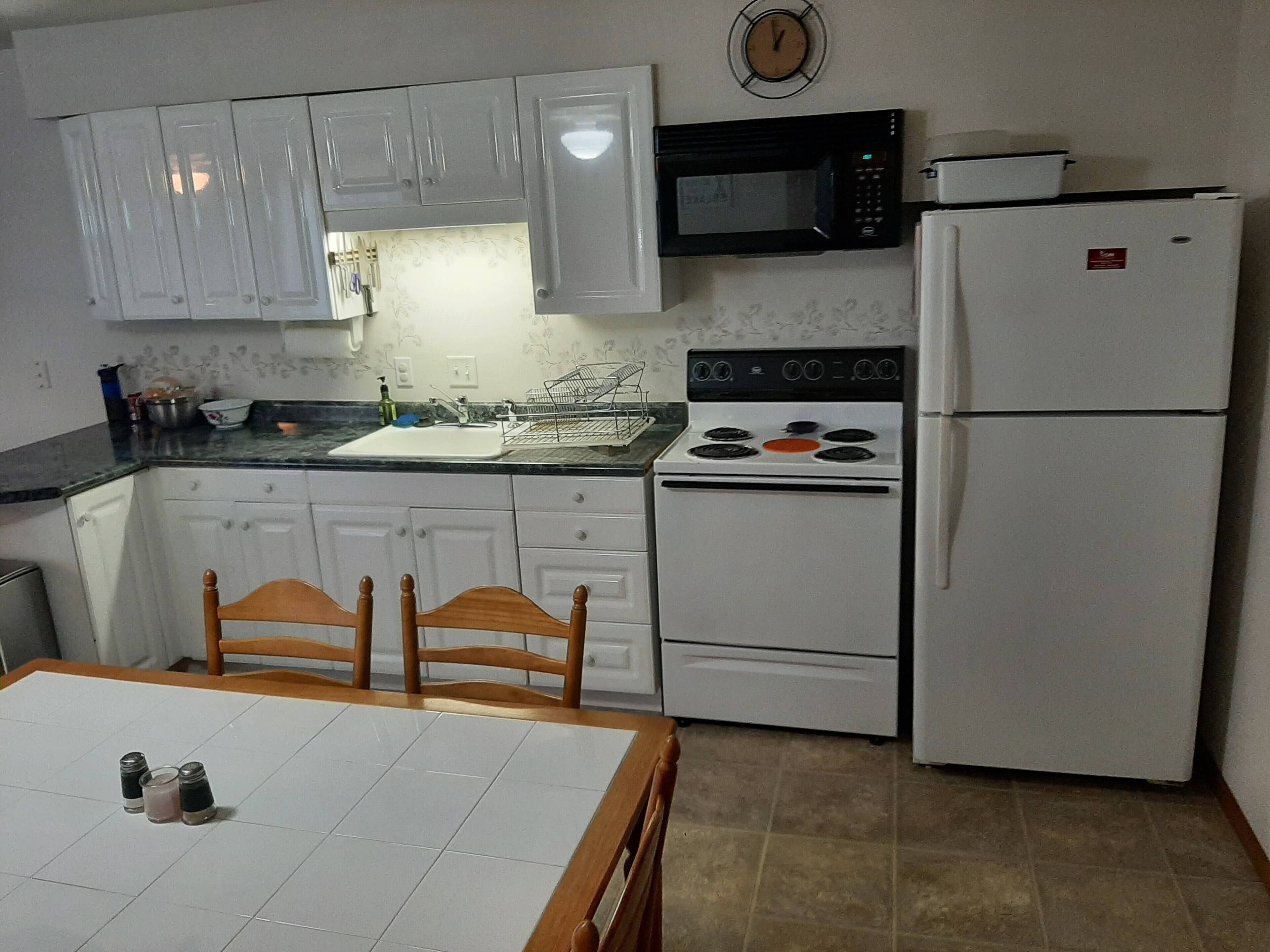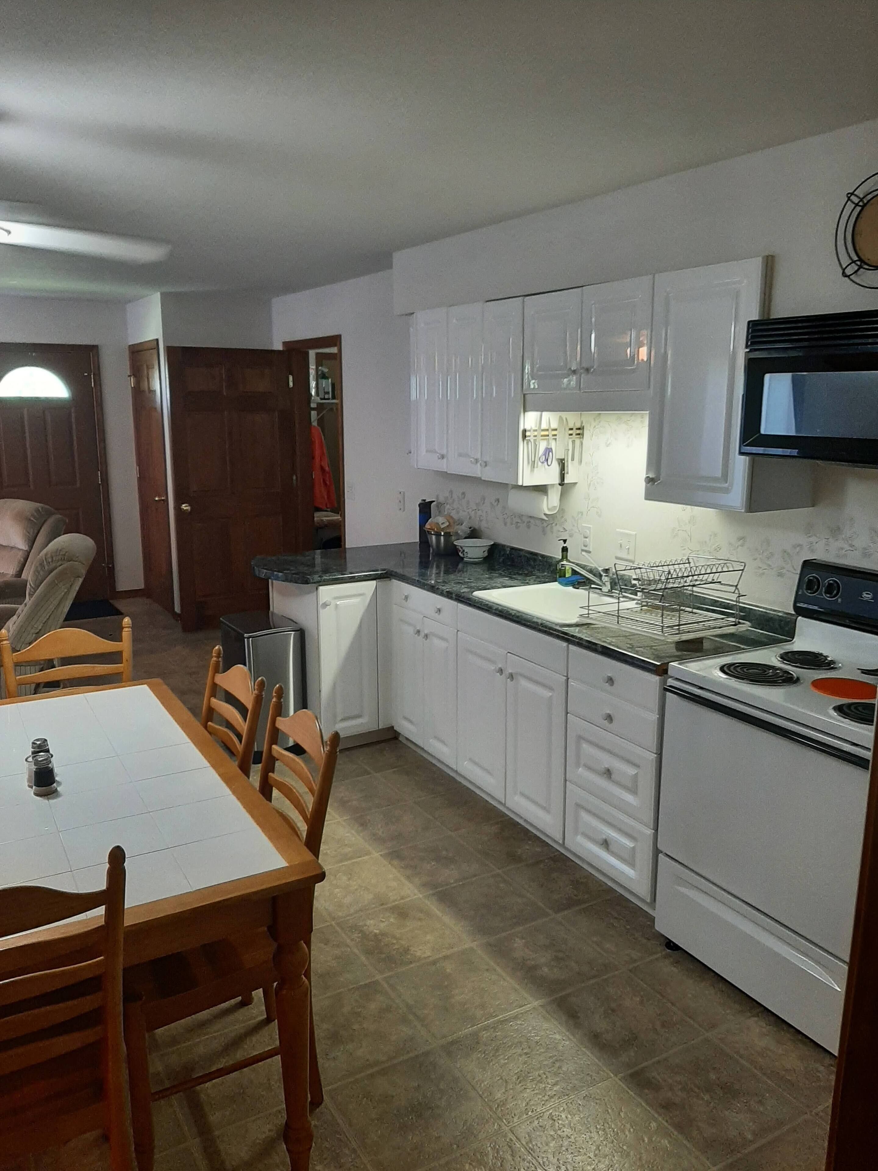 Green Lake View Cottage Cottage with attached Garage, overlooking Green Lake (not on the lake). Garage for gatherings and extra space. Beautiful views, quiet side of the lake with a limited amount of traffic. Room for 6-8 people. Pack n play for babies. Toddler mattress to lay on floor as well. Nice small kitchen, has lots of dishes, some small appliances, full fridge, full stove/oven, microwave. Just a 1/4 mile from Reillys Bar, 1/2 mile from a boat launch. Plenty of room in driveway for two Trucks with trailers. Very close to the snowmobile trails as well.
