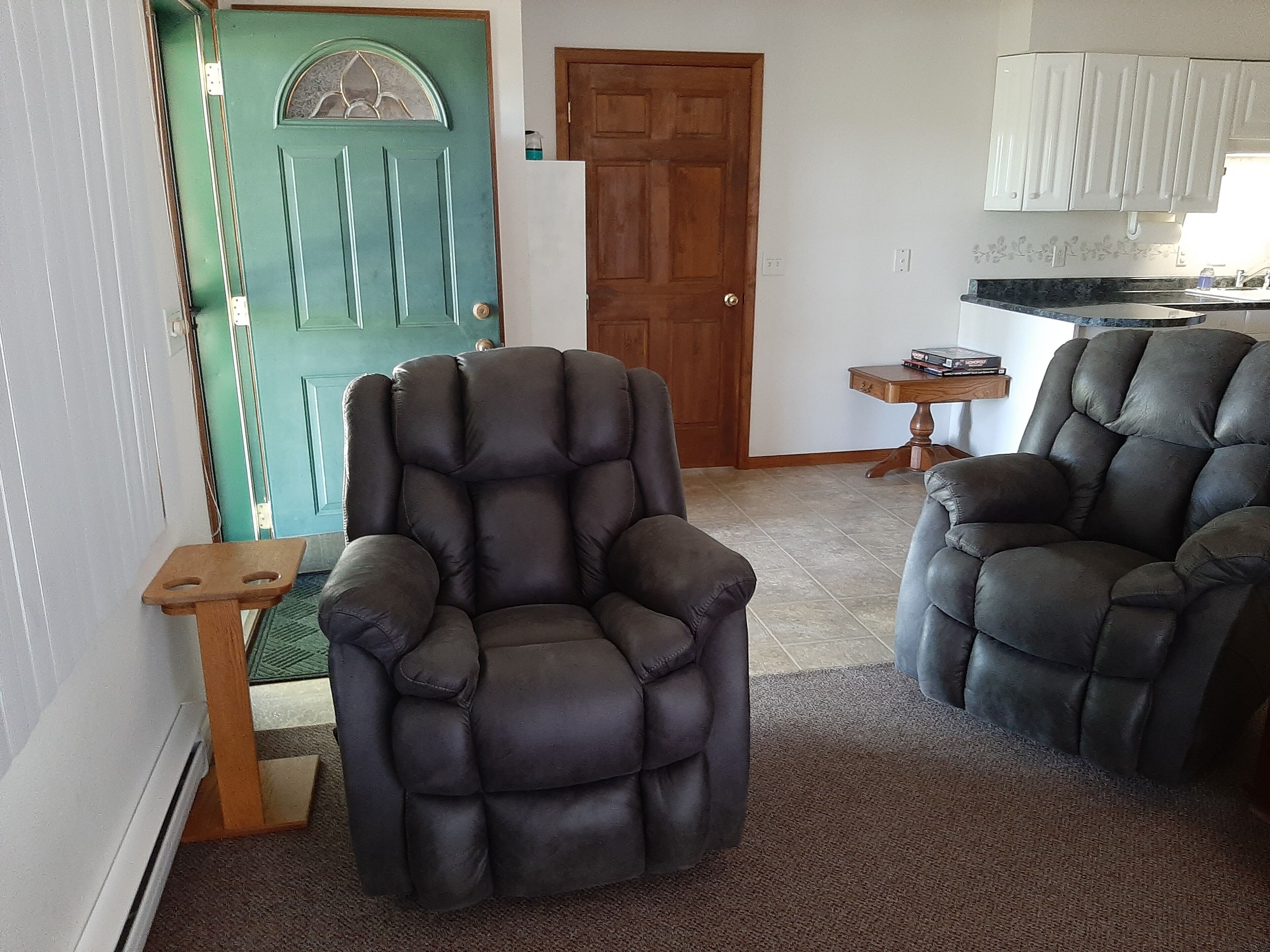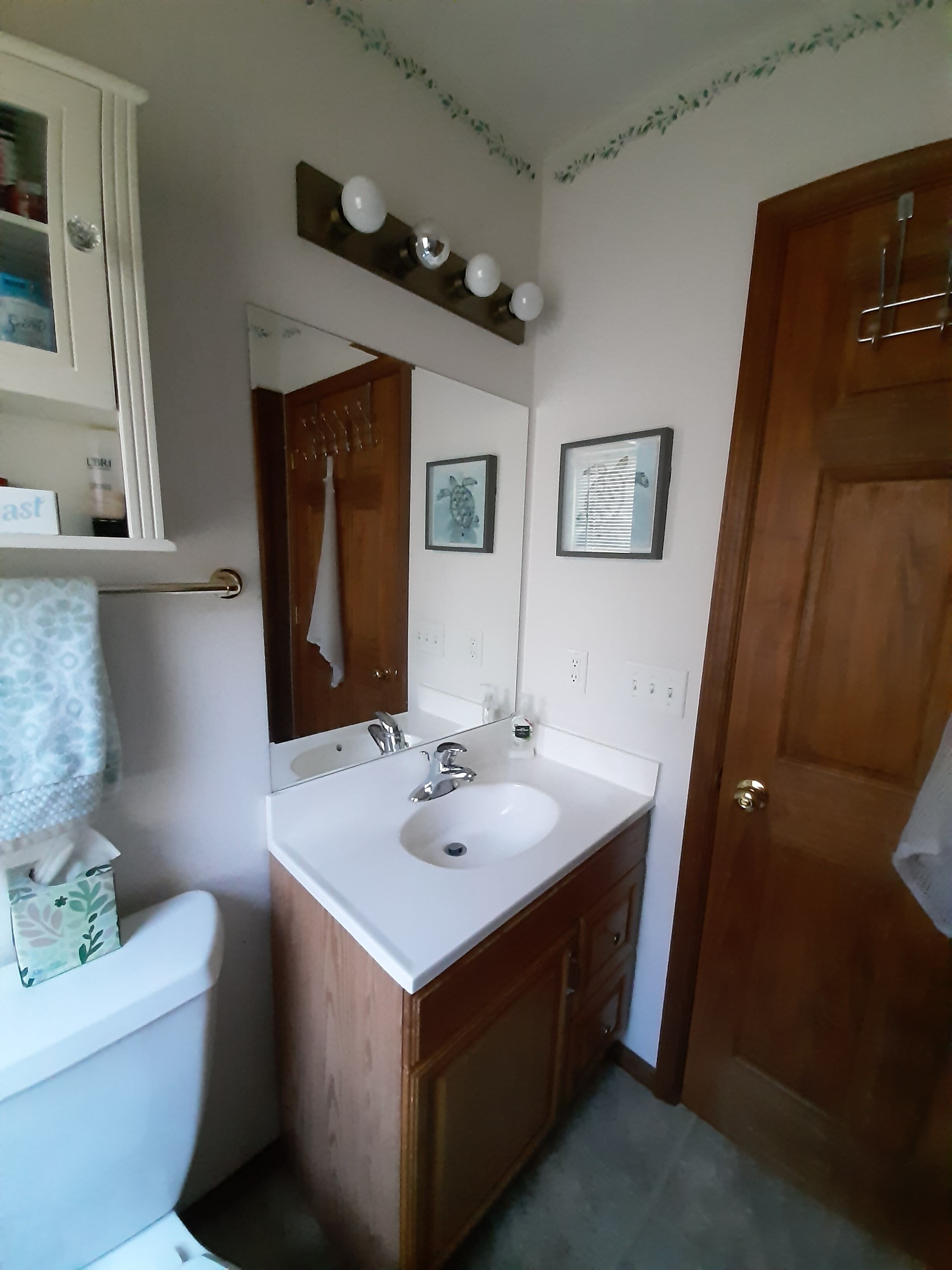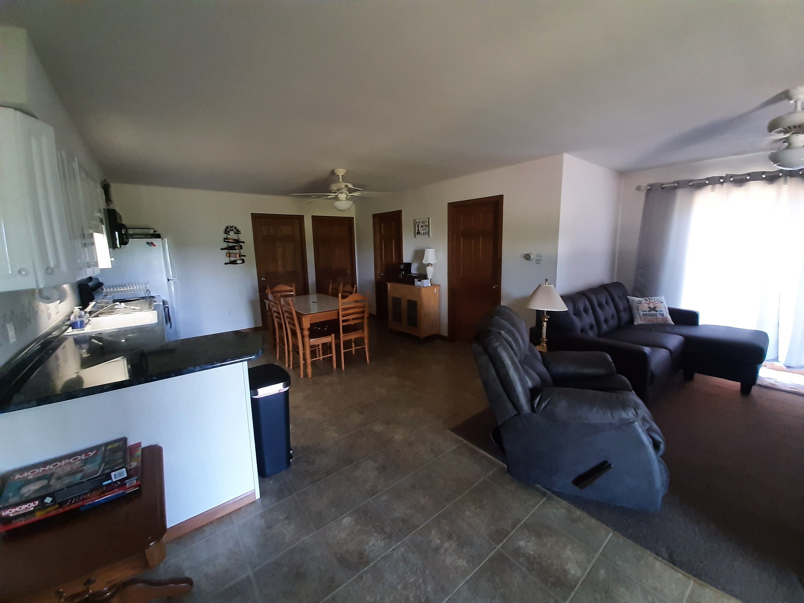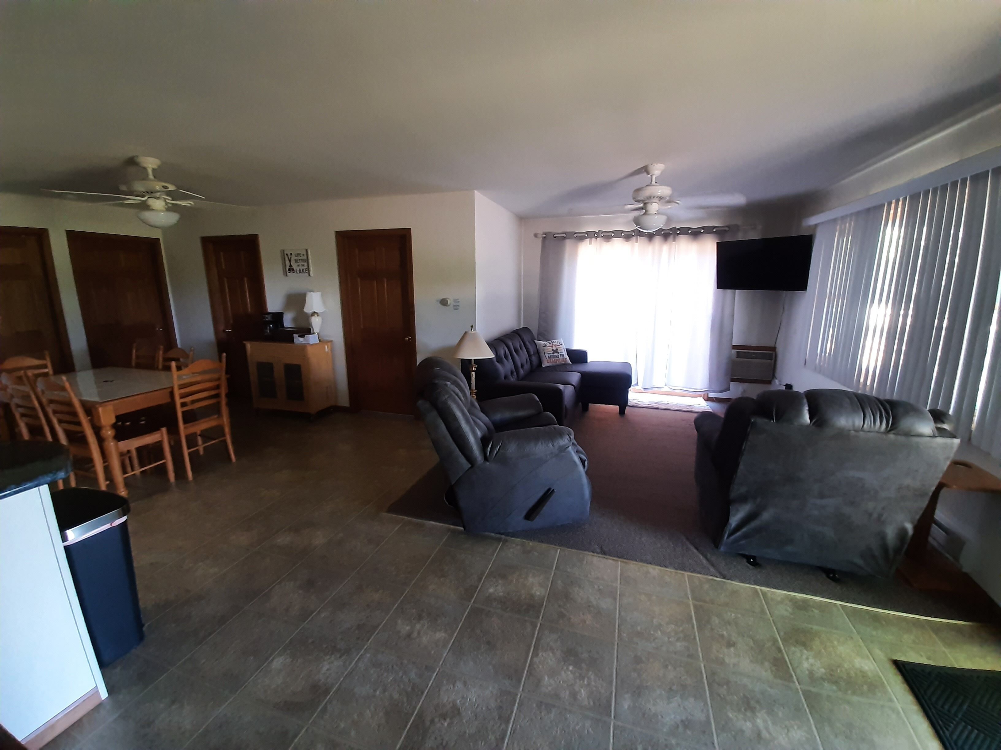 Green Lake View Cottage Cottage with attached Garage, overlooking Green Lake (not on the lake). Garage for gatherings and extra space. Beautiful views, quiet side of the lake with a limited amount of traffic. Room for 6-8 people. Pack n play for babies. Toddler mattress to lay on floor as well. Nice small kitchen, has lots of dishes, some small appliances, full fridge, full stove/oven, microwave. Just a 1/4 mile from Reillys Bar, 1/2 mile from a boat launch. Plenty of room in driveway for two Trucks with trailers. Very close to the snowmobile trails as well.