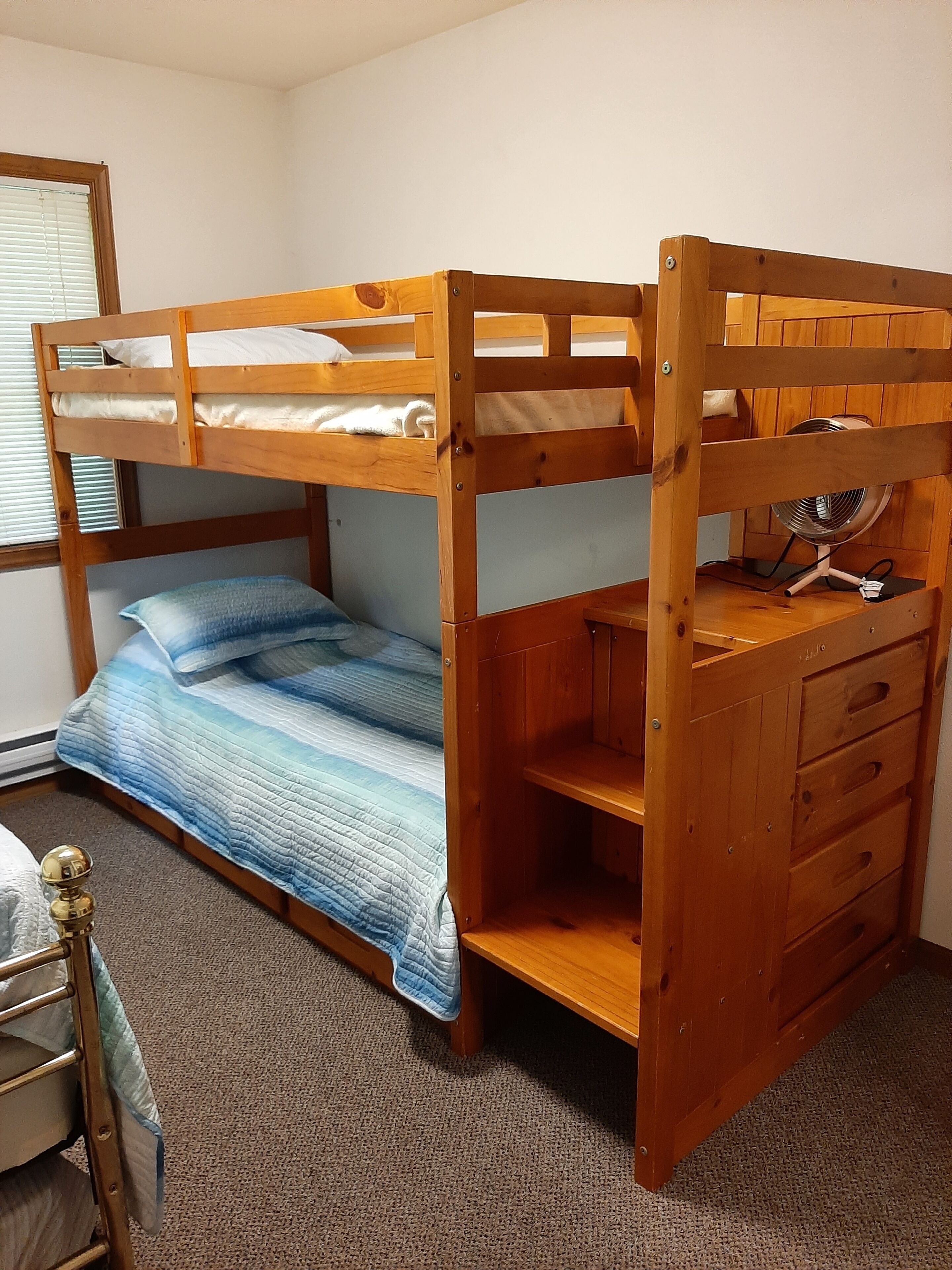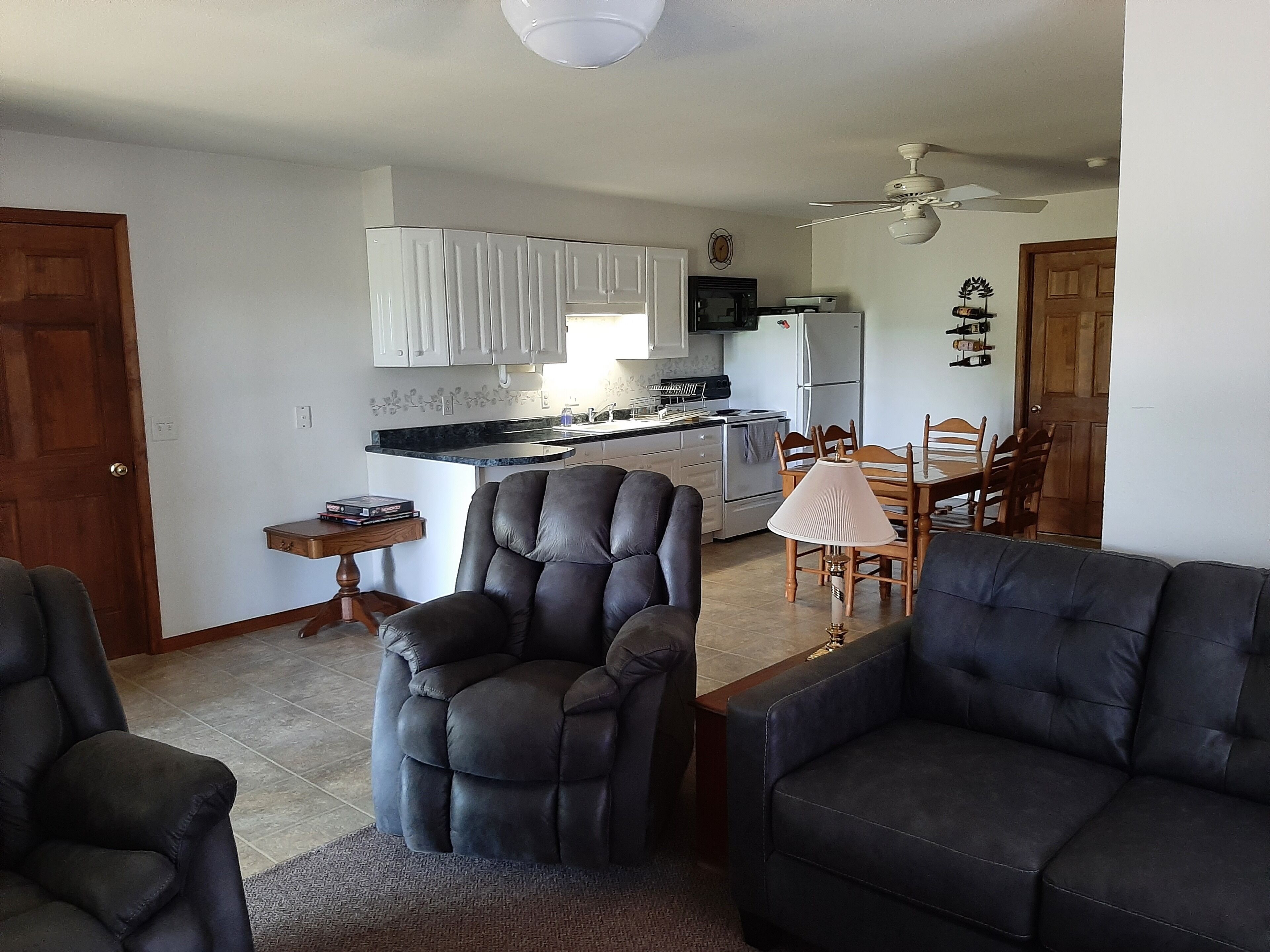 Green Lake View Cottage Cottage with attached Garage, overlooking Green Lake (not on the lake). Garage for gatherings and extra space. Beautiful views, quiet side of the lake with a limited amount of traffic. Room for 6-8 people. Pack n play for babies. Toddler mattress to lay on floor as well. Nice small kitchen, has lots of dishes, some small appliances, full fridge, full stove/oven, micro...