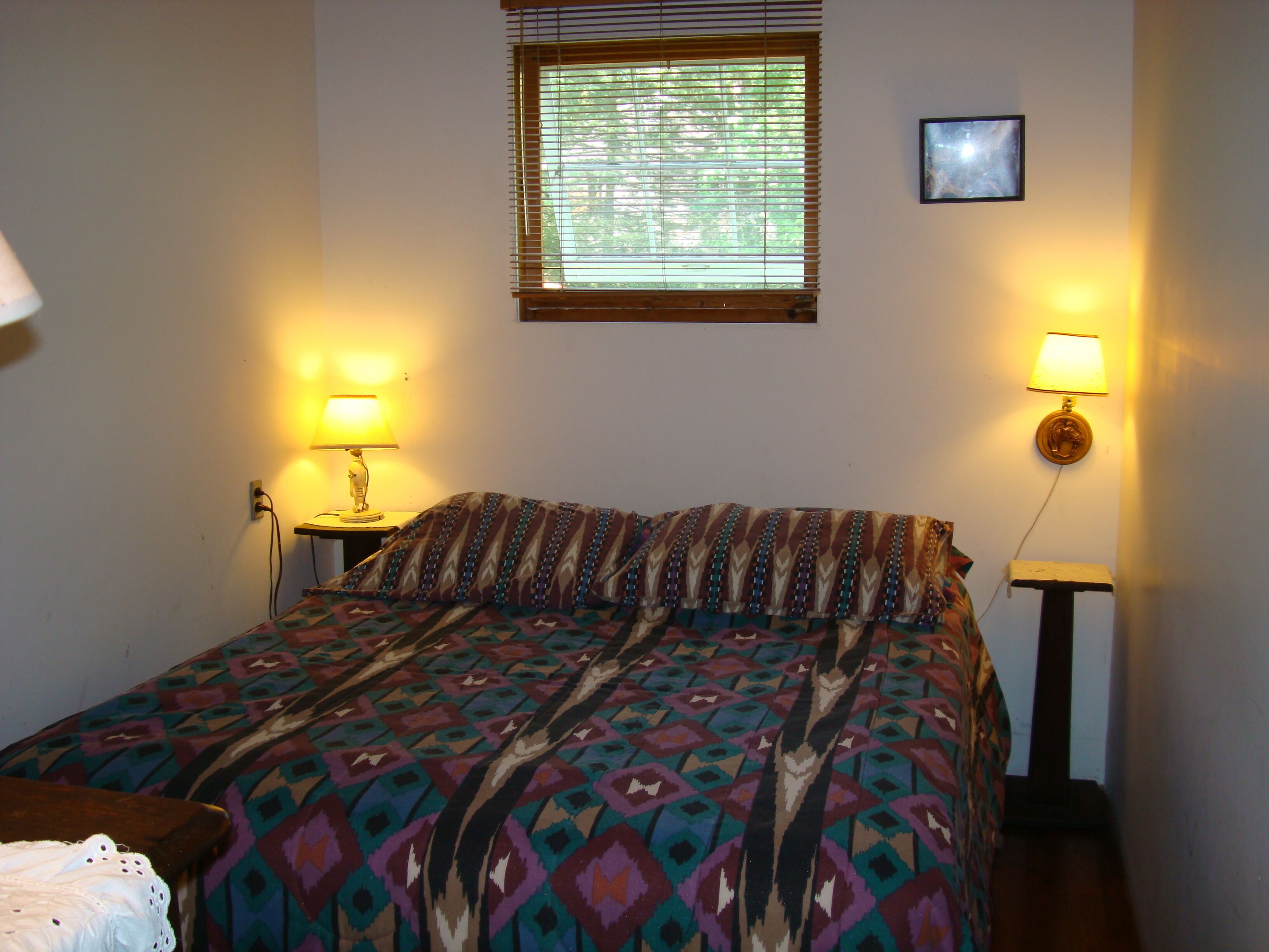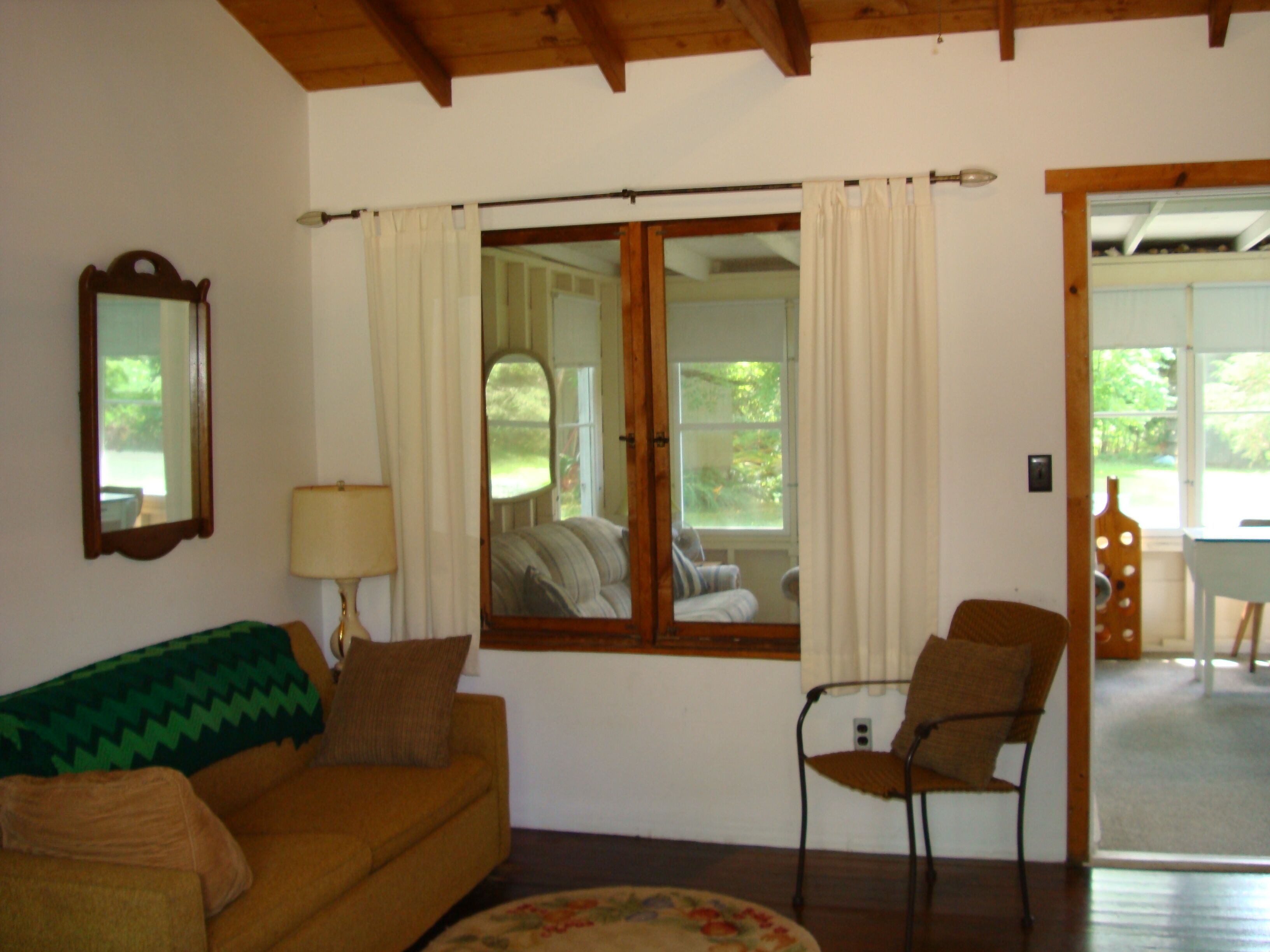 Green Lake, WI. Little House. Handsome Private Vacation Cottage Charming two bedroom vacation cottage with access - one block - to Big Green Lake, Wi. Quiet Neighborhood lake access, 80' of frontage with shallow sand bottom approximately 325' from front of yard where you can anchor your boat. There is no dock. Out door chairs are provided.Modern kitchen with dishwasher, in sink disposer, electric stove, refrig. micro. Pots, pans, small appliances, dishes, utensils, flatware.Large 10 x 10 bathroom with handicap accessible shower. Updated with new toilet and floor. Bath, kitchen, and bedroom linens provided.One br. queen bed. 2nd br. 2 twin beds. Double size sofa sleeper in living area. Queen size sofa sleeper on large enclosed, carpeted, screened porch. Auxillary moveable single bed. Max. occupancy 7.CableTV & Wifi. Books, board games.Private yard and property to play. Charcoal and gas grills. Outdoor picnic table and chairs. Boat, swim, kayak, fish, hunt tube jet ski, bike, Jog or walk the quiet gently rolling roads of the Green Lake Terrace Area. A complete bike route around 27 mile Green Lake,County Park with boat launch facilities located within 1/2 mile of cottage. 5 golf courses within 1/2 hour drive from cottage. Restaurant/bar, and farmers market in area. Restuarants, shops, supplies, boat rental,vacation activities, library, post office in downtown Green Lake.cooling: auxillary fans in all rooms.Overhead ceiling fan in Living/Dining. Heating: electric baseboard
