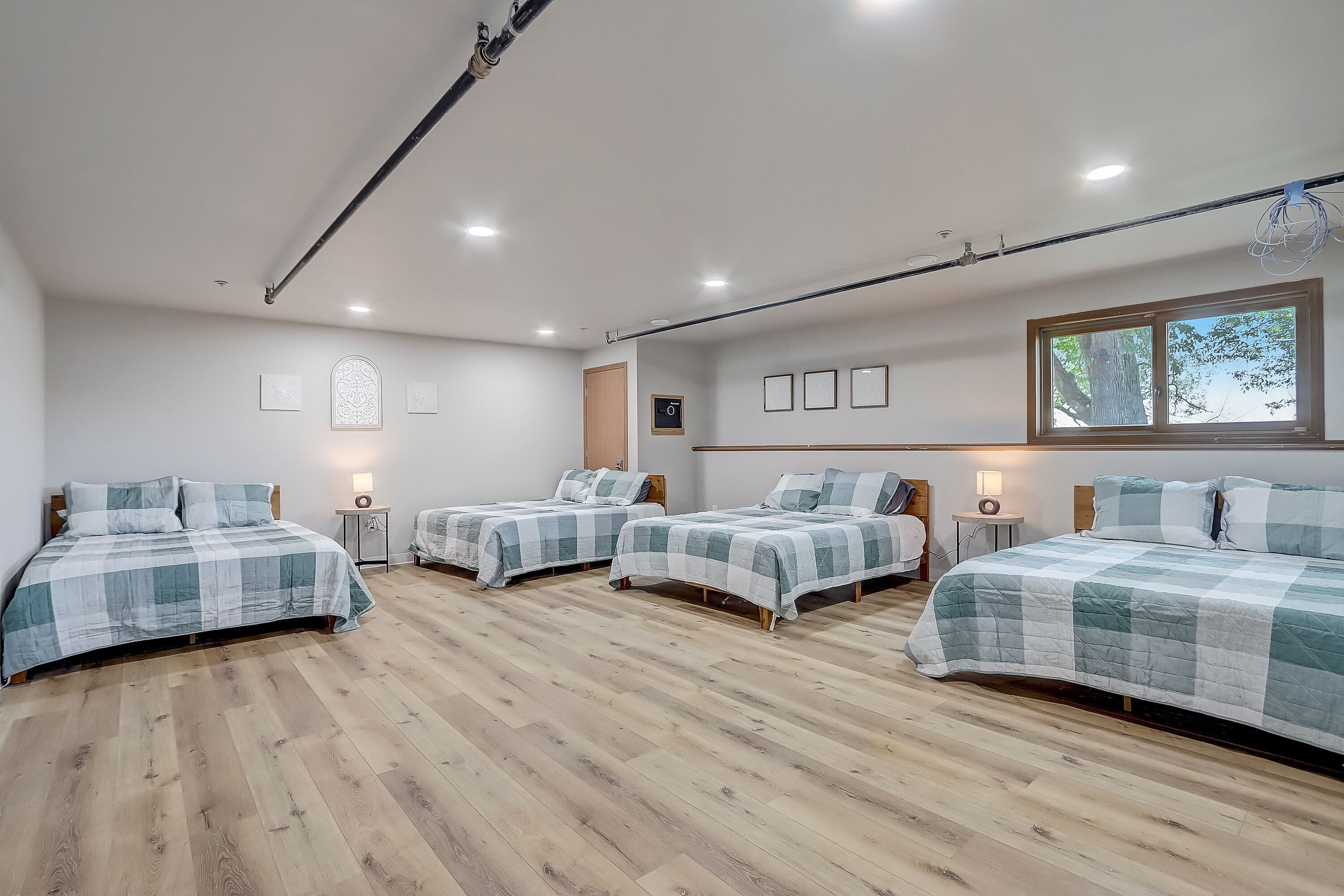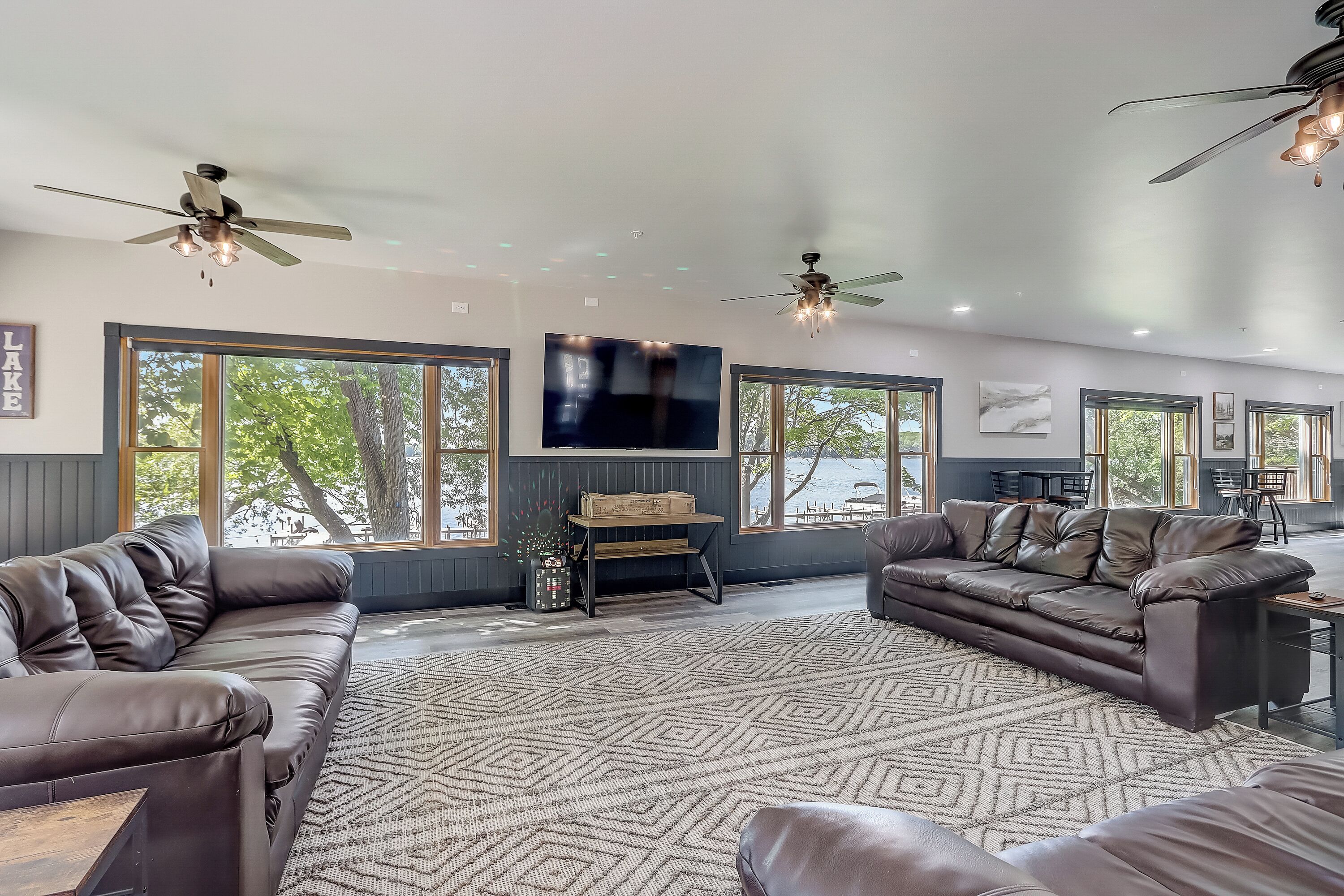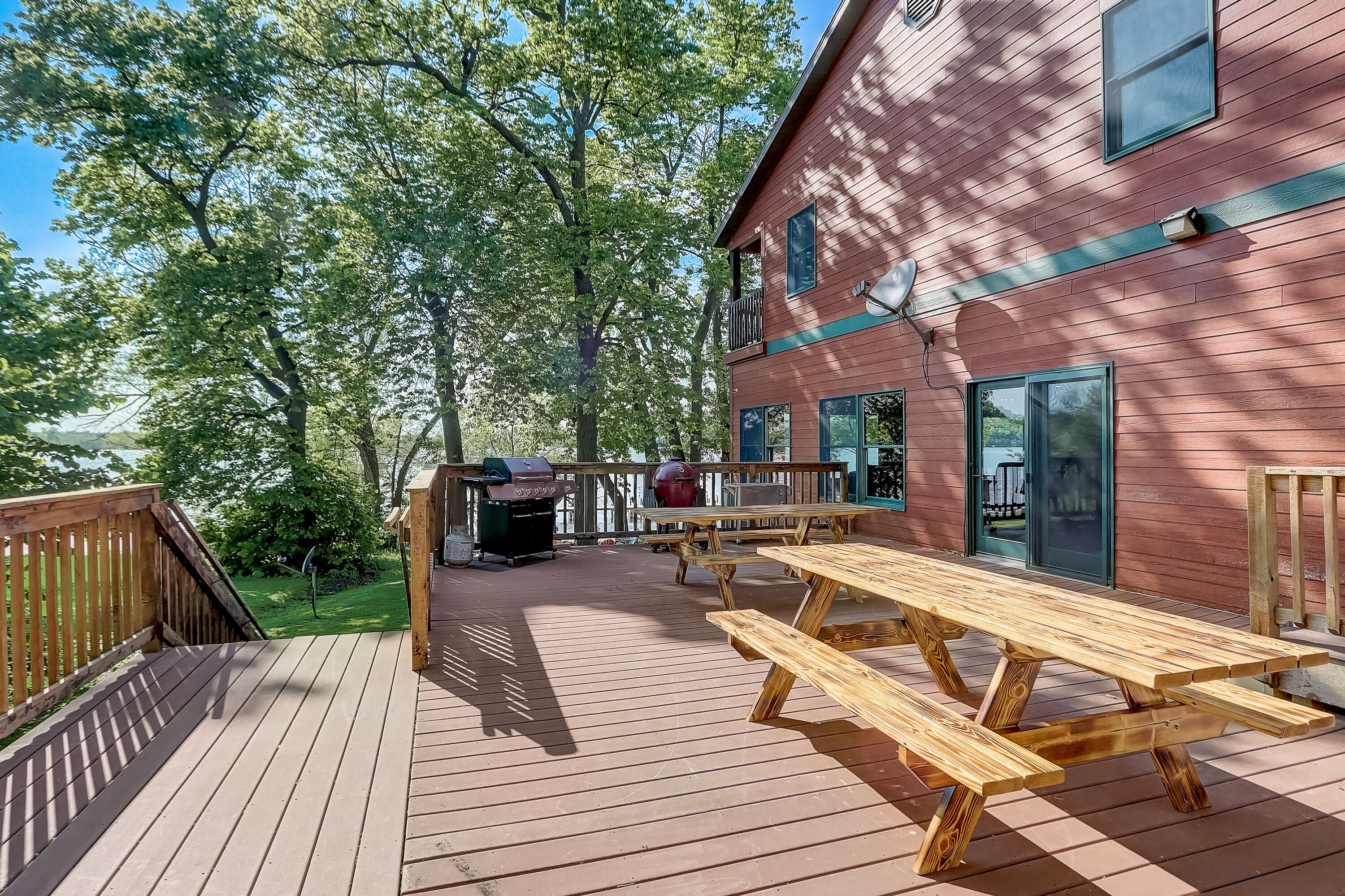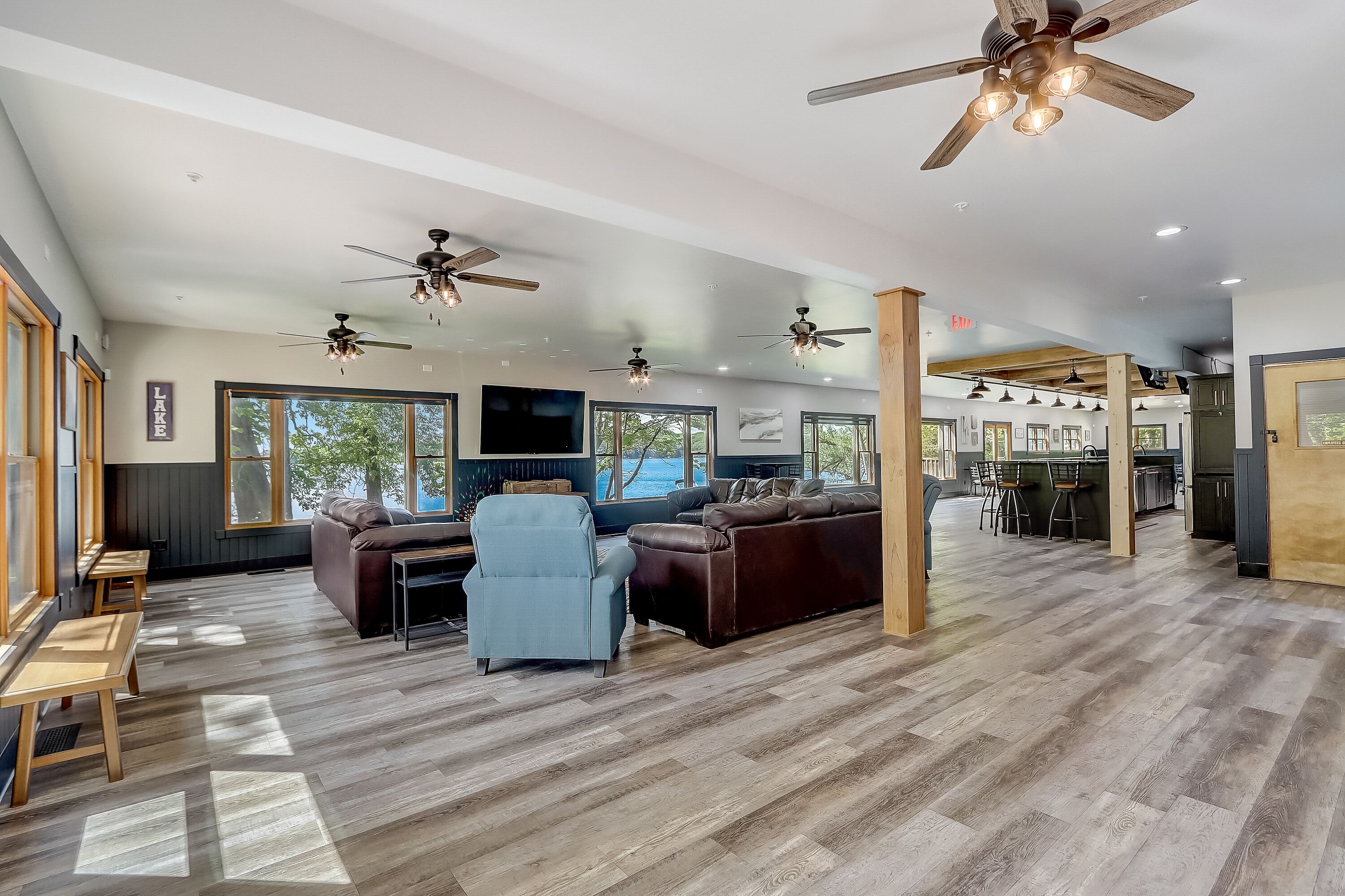 NEW Waterfront Rental! Sleep 40. 11k SF! Game Room Welcome to Little Green Lodge, Green Lake County's newest and most exclusive large group rental. You get the entire property just for your group when you book! *MUST READ ENTIRE LISTING & RULES BEFORE YOU BOOK!-Failure to abide by these rules will cause a cancelation without refund*Our fully renovated waterfront lodge offers exquisite finishes and a perfect blend of comfort and adventure. Whether you're planning a family vacation, friends' trip, wedding, corporate retreat, or any special occasion, Little Green Lodge is the ideal destination. Sleeping up to 40 guests with over 11,000 square feet of living space, 8 bedrooms, and ample privacy, your entire group will have plenty of room to gather and relax. The views from every window are truly unbelievable! Enjoy 120 feet of private waterfront access, complete with a private dock and boat slips, and located towards the end of a private road. Just steps away, a public sand beach awaits! The real excitement begins in our massive 2,000 sq ft game room, featuring professional arcade machines, a dart board, pool table, shuffleboard, and more. 11 seater pontoon boat available for rent! Get ready for an unforgettable experience at Little Green Lodge. We can't wait to host you.Key Features:- Fully renovated chef's kitchen with top-of-the-line appliances, stone counters, and ample space for culinary delights.- Coffee bar offering a variety of brewing options, including Keurig and drip machines.- Massive, Amish made farmhouse tables with seating for up to 40- 11 person pontoon boat available for rent.- Spacious main living area with comfortable sectional couches, multiple TVs, and a well-equipped bar, all surrounded by breathtaking lake views.- Additional fully equipped kitchen in Suite 1 upstairs, making group meals even easier.- 2,000 sq ft game room filled with entertainment options like a pool table, shuffleboard, arcade games, flat screen TVs, and a dedicated kids play area.- 8 stunning bedrooms and multiple sleeper sofas, accommodating stays of 8 to 40 guests. Each suite has its own unique layout and amenities.- Private balconies off each bedroom, a large deck off the main living area, and a spacious backyard for outdoor enjoyment.- Adventure Shed stocked with bikes, kayaks, paddle boards, outdoor games, fishing equipment, and more.- Baby and kid supplies, including high chairs, booster seats, pack 'n plays, utensils, toys, and books.- Dog-friendly accommodations with crates, beds, bowls, and leashes provided (cats not permitted).- Various amenities provided, including toiletries, linens, towels, laundry essentials, Wi-Fi, and more.Bedroom Breakdown:-SUITE ONE:Bedroom 1 - 1 King bedBedroom 2 - 1 King bedLiving Space - 2 Queen pull-out couches Kitchen: Fully equipped kitchen with island seating and dining tableBathroom: Full bathroom with whirlpool tub/shower combo-SUITE TWO:Bedroom 3 - Queen bedBedroom 4 - Queen bedLiving Space - Queen pull-out couchBathroom: Full bathroom with tub/shower combo-SUITE THREE:Bedroom 5 - Queen bedBedroom 6: Queen bedLiving Space - Queen pull-out couchBathroom: Full bathroom with tub/shower combo-SUITE FOUR:Bedroom 7 - Queen bed & twin over twin bunk bedBathroom: Full bathroom with tub/shower combo-BASEMENT BEDROOM:Bedroom 8 - 4 queen bedsBathroom: Full bathroom with stand up showerOutdoor Living Spaces:-Indulge in the pleasure of private balconies accompanying each bedroom, while the expansive deck off the main living area provides ample seating and tables. The breathtaking views of the lake from these spaces are truly awe-inspiring. Our spacious backyard offers a haven for outdoor games and relaxation. Unleash your culinary skills at our well-equipped grilling station, complete with gas and charcoal grills and a comprehensive set of utensils for an unforgettable BBQ experience. Adjacent to our property lies a charming public park with a public beach, adding to the allure of our locationThe Adventure Shed:-Immerse yourself in a world of endless possibilities within The Adventure Shed. This treasure trove is brimming with an assortment of items. Discover a fleet of bikes of various sizes, accompanied by helmets for safety. Explore the lake with our collection of 6 kayaks and 2 stand-up paddleboards, each accompanied by a dozen life jackets. Enjoy classic lawn games with washer board sets and bags sets, or gather around cozy fire pits. We provide an abundance of lawn chairs, extra coolers, footballs, Frisbees, and fishing poles with light tackle for your angling endeavors.Baby/Kid Supplies:-We understand the needs of families with little ones, which is why we have taken care to provide a range of baby and kid supplies. Take advantage of our 5 high chairs, 5 booster seats, 4 pack 'n plays, and an assortment of kid-friendly utensils, cups, bowls, and plates. For your convenience, we offer baby monitors, noise machines, and a vast selection of toys and books suitable for children of all ages.Dog Supplies:-Attention dog owners! We have you covered with a variety of amenities for your furry friends. Our provisions include crates, comfortable beds, bowls, leashes, and more. Please note that our accommodations are exclusively available for dogs, and we regretfully cannot accommodate cats. A nominal fee of $50 per dog per day applies.Weddings/Special Events:-Kindly note that weddings, receptions, or any large events held at our properties require prior approval from the host. Hosting such events incurs a cost of up to $3,000. If you wish to celebrate your special day at Little Green Lodge, please contact us to discuss pricing and arrangements. Failure to inform us about a wedding, reception, or large event will result in additional charges, and you may be subject to immediate removal from the premises. We rely on our security cameras attentive neighbors to keep us informed, so we kindly request your cooperation in working with our team to plan your special occasion in adva