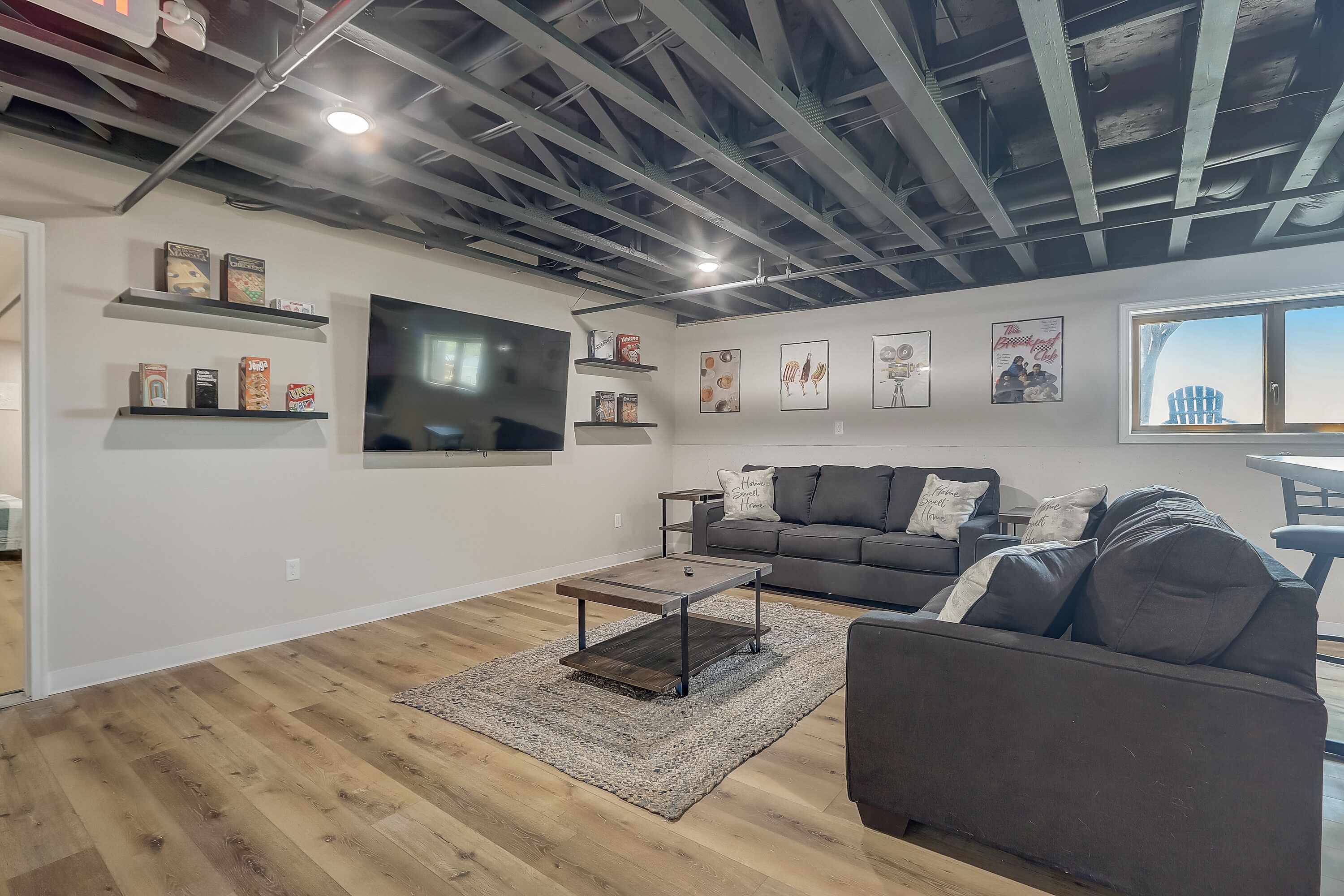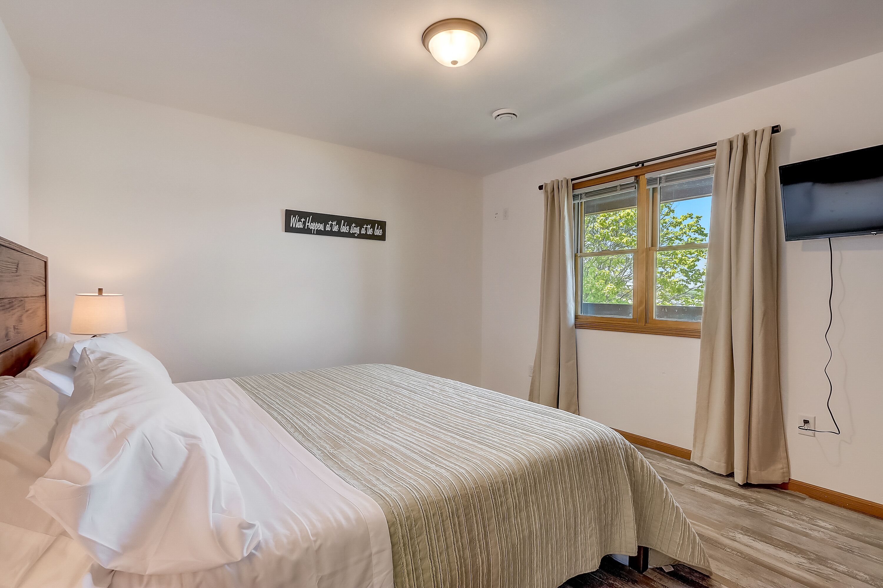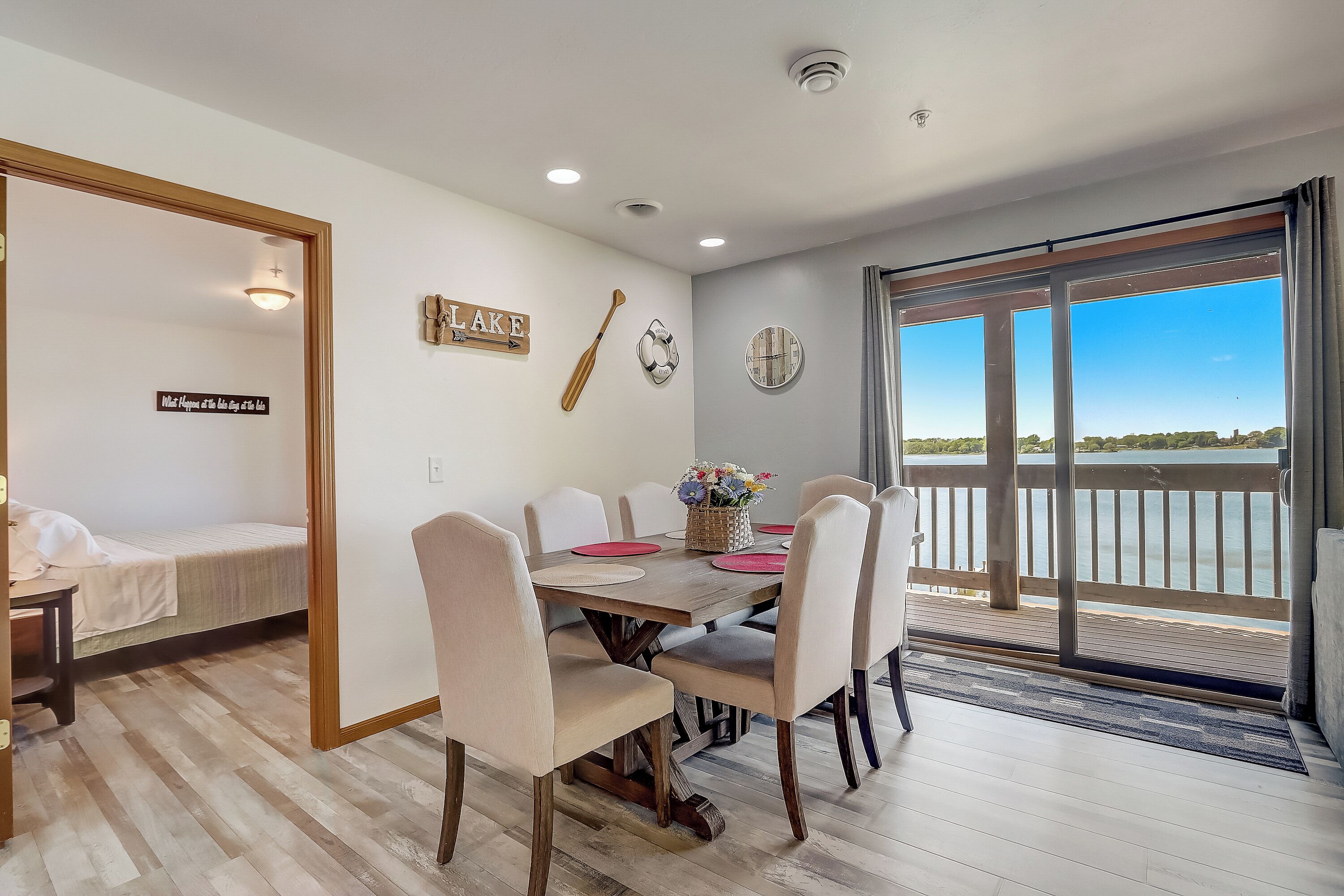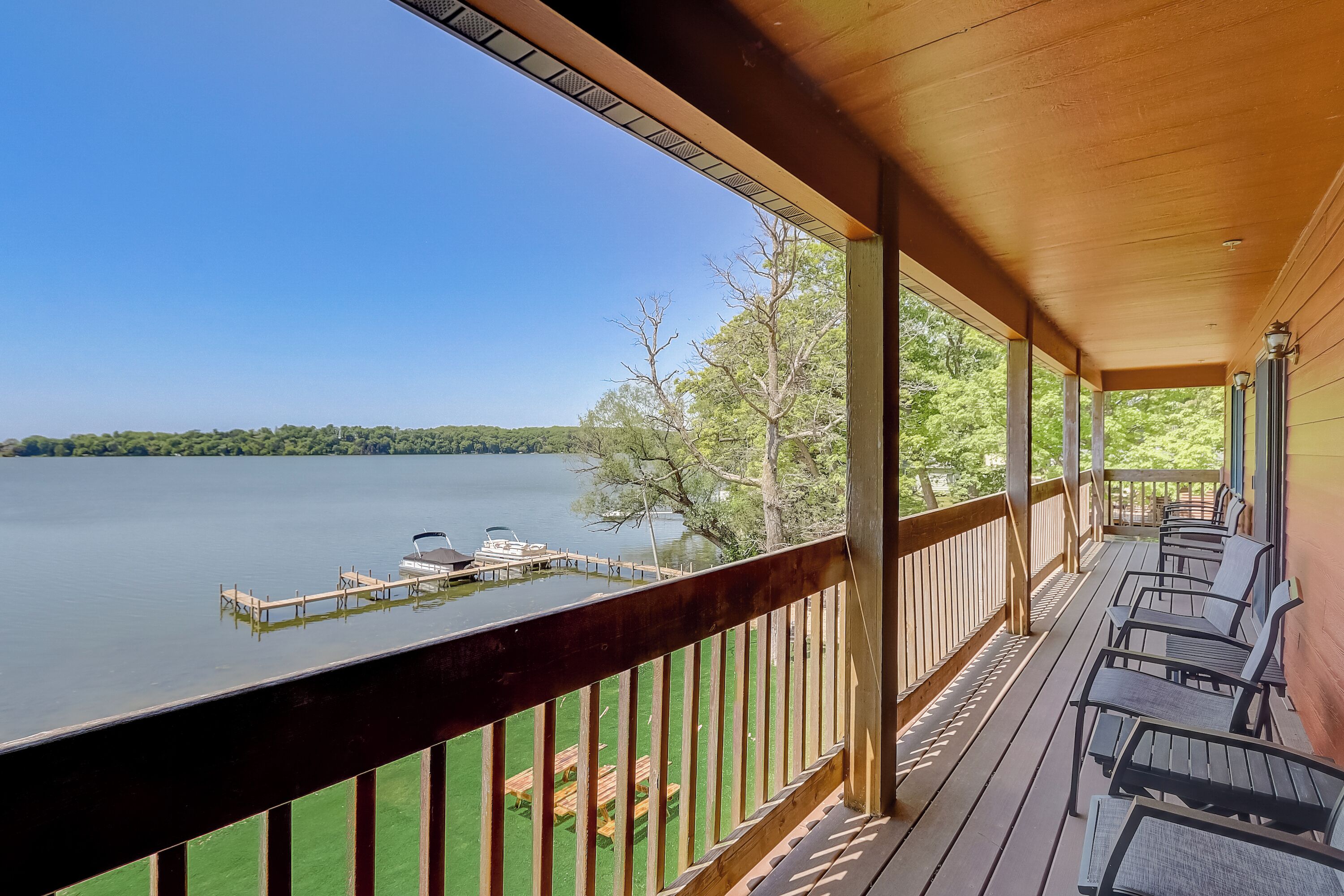 NEW Waterfront Rental! Sleep 40. 11k SF! Game Room Welcome to Little Green Lodge, Green Lake County's newest and most exclusive large group rental. You get the entire property just for your group when you book! *MUST READ ENTIRE LISTING & RULES BEFORE YOU BOOK!-Failure to abide by these rules will cause a cancelation without refund*Our fully renovated waterfront lodge offers exquisite finishes and a perfect blend of comfort and adventure. Whether you're planning a family vacation, friends' trip, wedding, corporate retreat, or any special occasion, Little Green Lodge is the ideal destination. Sleeping up to 40 guests with over 11,000 square feet of living space, 8 bedrooms, and ample privacy, your entire group will have plenty of room to gather and relax. The views from every window are truly unbelievable! Enjoy 120 feet of private waterfront access, complete with a private dock and boat slips, and located towards the end of a private road. Just steps away, a public sand beach awaits! The real excitement begins in our massive 2,000 sq ft game room, featuring professional arcade machines, a dart board, pool table, shuffleboard, and more. 11 seater pontoon boat available for rent! Get ready for an unforgettable experience at Little Green Lodge. We can't wait to host you.Key Features:- Fully renovated chef's kitchen with top-of-the-line appliances, stone counters, and ample space for culinary delights.- Coffee bar offering a variety of brewing options, including Keurig and drip machines.- Massive, Amish made farmhouse tables with seating for up to 40- 11 person pontoon boat available for rent.- Spacious main living area with comfortable sectional couches, multiple TVs, and a well-equipped bar, all surrounded by breathtaking lake views.- Additional fully equipped kitchen in Suite 1 upstairs, making group meals even easier.- 2,000 sq ft game room filled with entertainment options like a pool table, shuffleboard, arcade games, flat screen TVs, and a dedicated kids play area.- 8 stunning bedrooms and multiple sleeper sofas, accommodating stays of 8 to 40 guests. Each suite has its own unique layout and amenities.- Private balconies off each bedroom, a large deck off the main living area, and a spacious backyard for outdoor enjoyment.- Adventure Shed stocked with bikes, kayaks, paddle boards, outdoor games, fishing equipment, and more.- Baby and kid supplies, including high chairs, booster seats, pack 'n plays, utensils, toys, and books.- Dog-friendly accommodations with crates, beds, bowls, and leashes provided (cats not permitted).- Various amenities provided, including toiletries, linens, towels, laundry essentials, Wi-Fi, and more.Bedroom Breakdown:-SUITE ONE:Bedroom 1 - 1 King bedBedroom 2 - 1 King bedLiving Space - 2 Queen pull-out couches Kitchen: Fully equipped kitchen with island seating and dining tableBathroom: Full bathroom with whirlpool tub/shower combo-SUITE TWO:Bedroom 3 - Queen bedBedroom 4 - Queen bedLiving Space - Queen pull-out couchBathroom: Full bathroom with tub/shower combo-SUITE THREE:Bedroom 5 - Queen bedBedroom 6: Queen bedLiving Space - Queen pull-out couchBathroom: Full bathroom with tub/shower combo-SUITE FOUR:Bedroom 7 - Queen bed & twin over twin bunk bedBathroom: Full bathroom with tub/shower combo-BASEMENT BEDROOM:Bedroom 8 - 4 queen bedsBathroom: Full bathroom with stand up showerOutdoor Living Spaces:-Indulge in the pleasure of private balconies accompanying each bedroom, while the expansive deck off the main living area provides ample seating and tables. The breathtaking views of the lake from these spaces are truly awe-inspiring. Our spacious backyard offers a haven for outdoor games and relaxation. Unleash your culinary skills at our well-equipped grilling station, complete with gas and charcoal grills and a comprehensive set of utensils for an unforgettable BBQ experience. Adjacent to our property lies a charming public park with a public beach, adding to the allure of our locationThe Adventure Shed:-Immerse yourself in a world of endless possibilities within The Adventure Shed. This treasure trove is brimming with an assortment of items. Discover a fleet of bikes of various sizes, accompanied by helmets for safety. Explore the lake with our collection of 6 kayaks and 2 stand-up paddleboards, each accompanied by a dozen life jackets. Enjoy classic lawn games with washer board sets and bags sets, or gather around cozy fire pits. We provide an abundance of lawn chairs, extra coolers, footballs, Frisbees, and fishing poles with light tackle for your angling endeavors.Baby/Kid Supplies:-We understand the needs of families with little ones, which is why we have taken care to provide a range of baby and kid supplies. Take advantage of our 5 high chairs, 5 booster seats, 4 pack 'n plays, and an assortment of kid-friendly utensils, cups, bowls, and plates. For your convenience, we offer baby monitors, noise machines, and a vast selection of toys and books suitable for children of all ages.Dog Supplies:-Attention dog owners! We have you covered with a variety of amenities for your furry friends. Our provisions include crates, comfortable beds, bowls, leashes, and more. Please note that our accommodations are exclusively available for dogs, and we regretfully cannot accommodate cats. A nominal fee of $50 per dog per day applies.Weddings/Special Events:-Kindly note that weddings, receptions, or any large events held at our properties require prior approval from the host. Hosting such events incurs a cost of up to $3,000. If you wish to celebrate your special day at Little Green Lodge, please contact us to discuss pricing and arrangements. Failure to inform us about a wedding, reception, or large event will result in additional charges, and you may be subject to immediate removal from the premises. We rely on our security cameras attentive neighbors to keep us informed, so we kindly request your cooperation in working with our team to plan your special occasion in adva