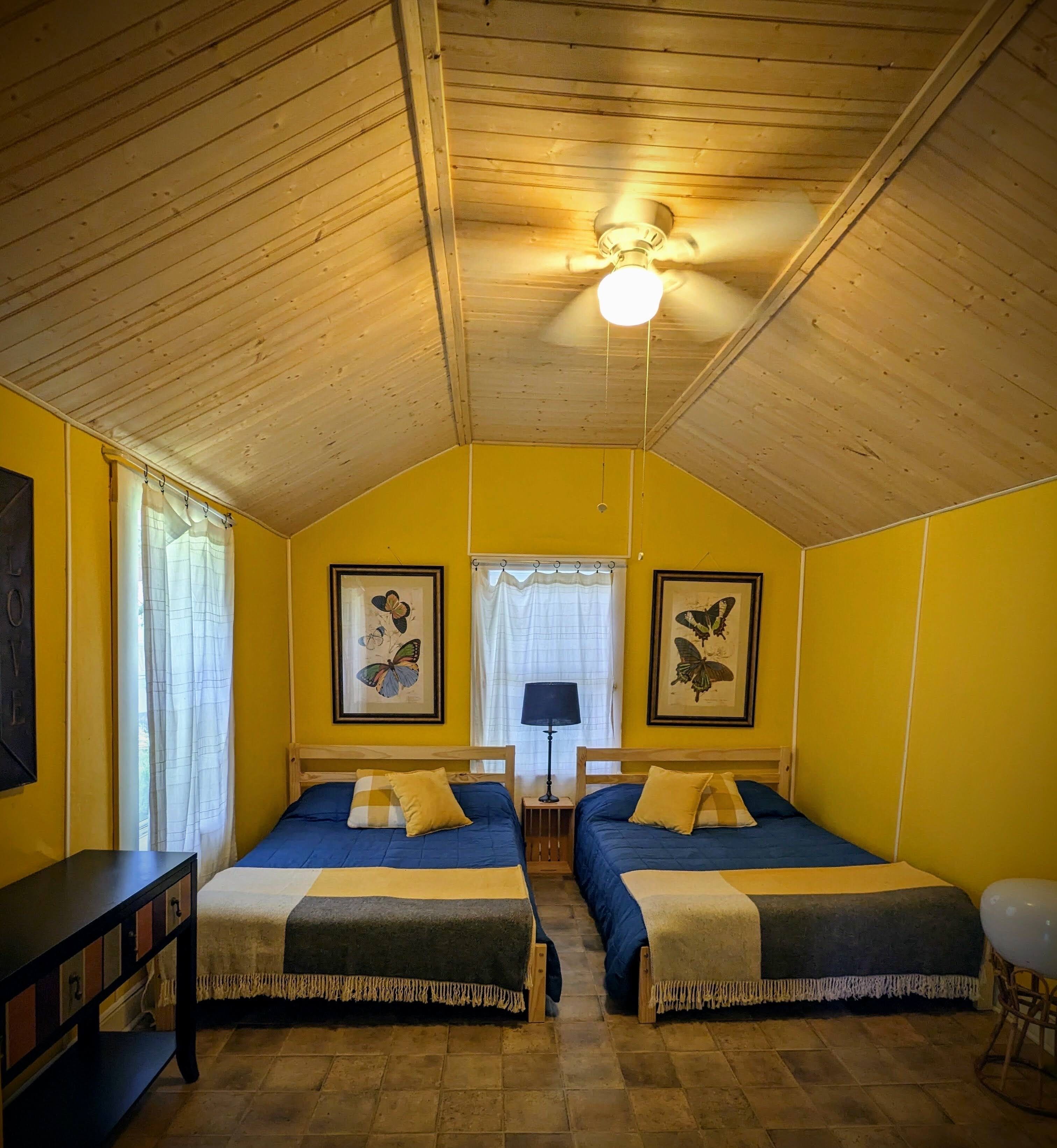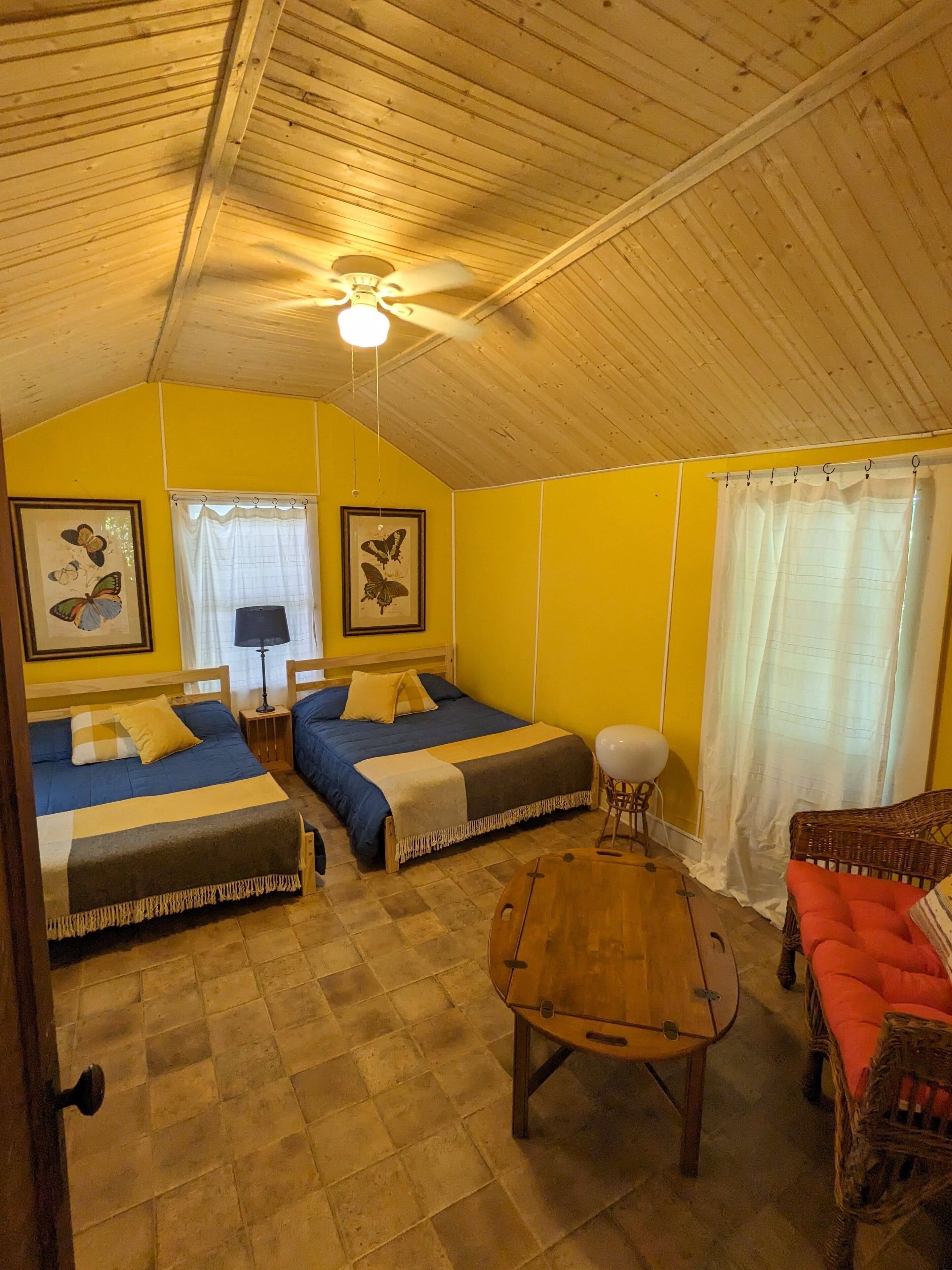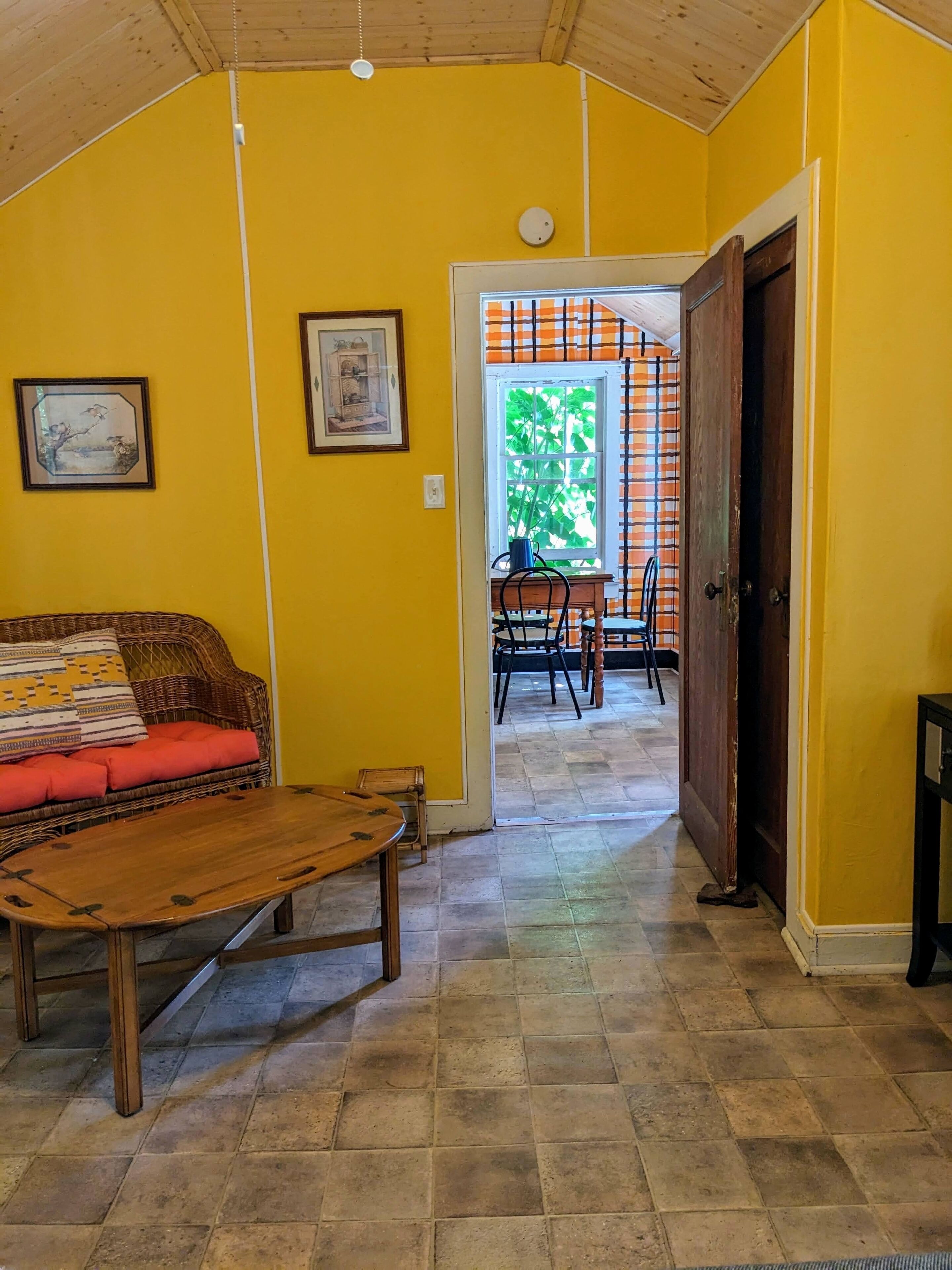 Seasonal Cottages Colony With Outdoor Swimming Pool Small cozy cottage colony ( only 4 units) located less than 4 miles from Bethel Wood Performance Center, walking distance from White Lake. About 10-15 minutes drive to Toronto Reservoir or Superior Park Lake, near restaurants and boat rental. There is a swimming pool, trampoline, playground, ping-pong table and outside fireplace on territory. This one bedroom cottage is newly remodeled and freshly painted. It has two full size beds, full kitchen with dinette area, bathroom with shower and screen room. There is BBQ table and grill outside. Upon request extra folding bed can be provided.