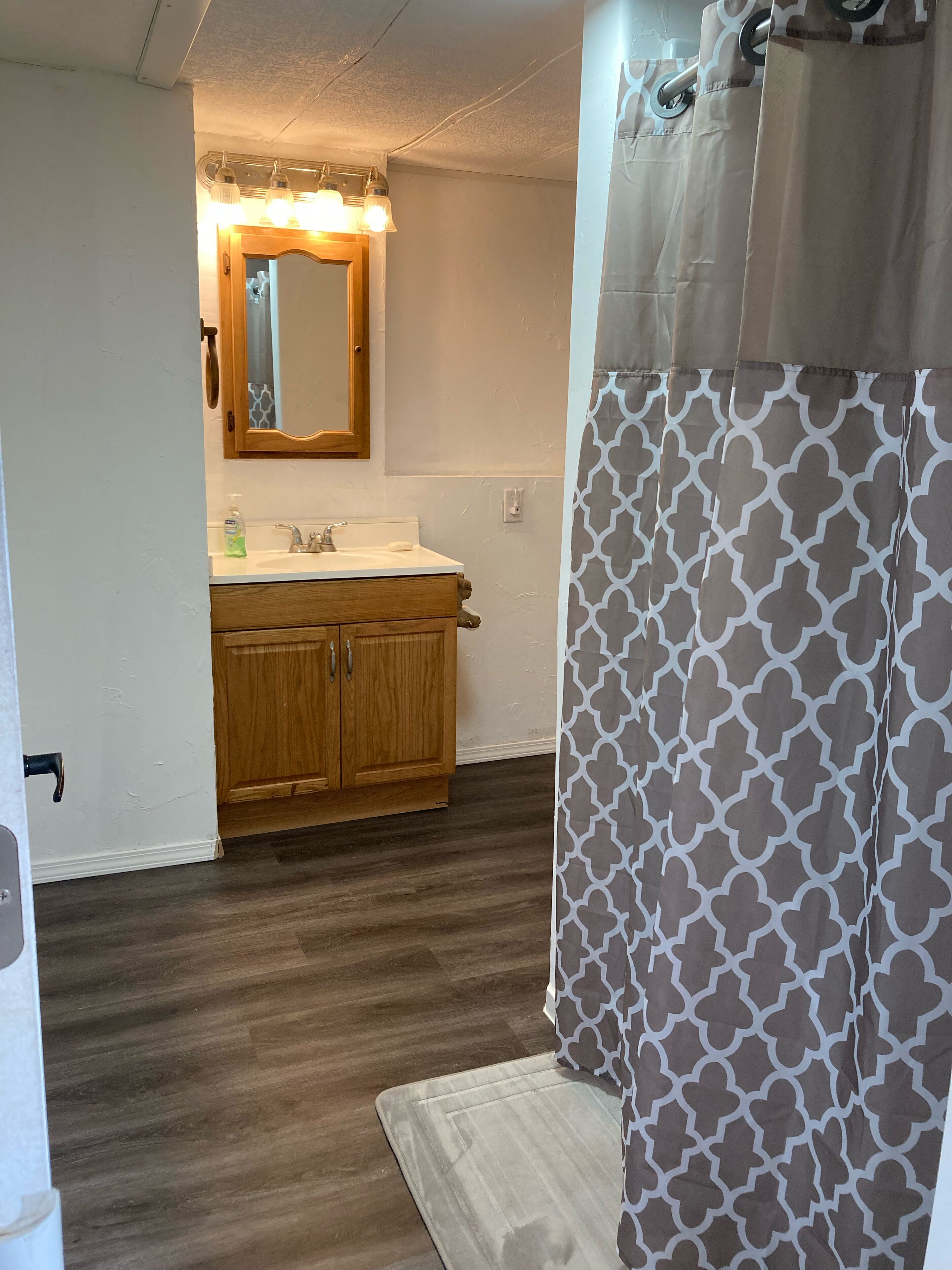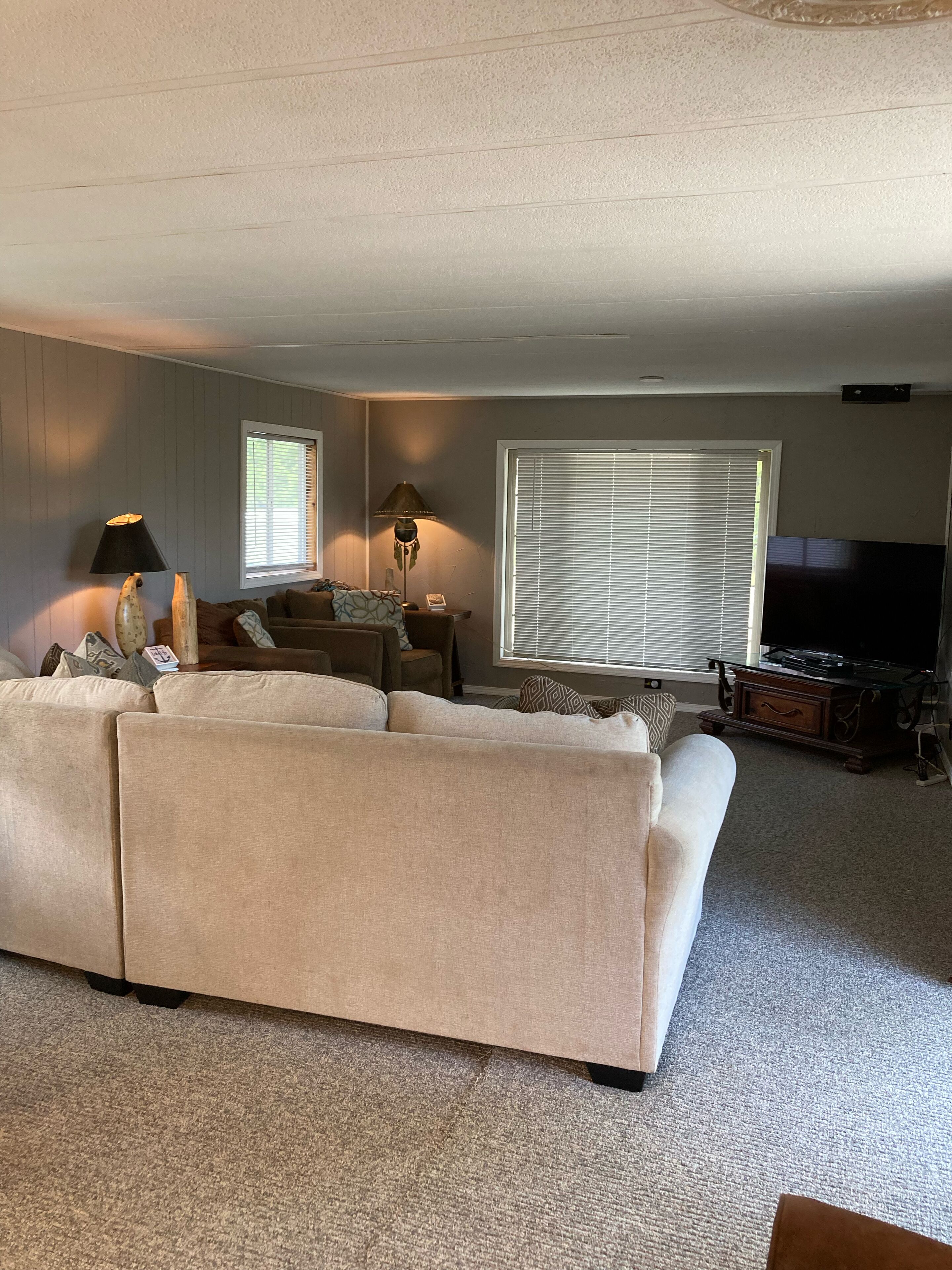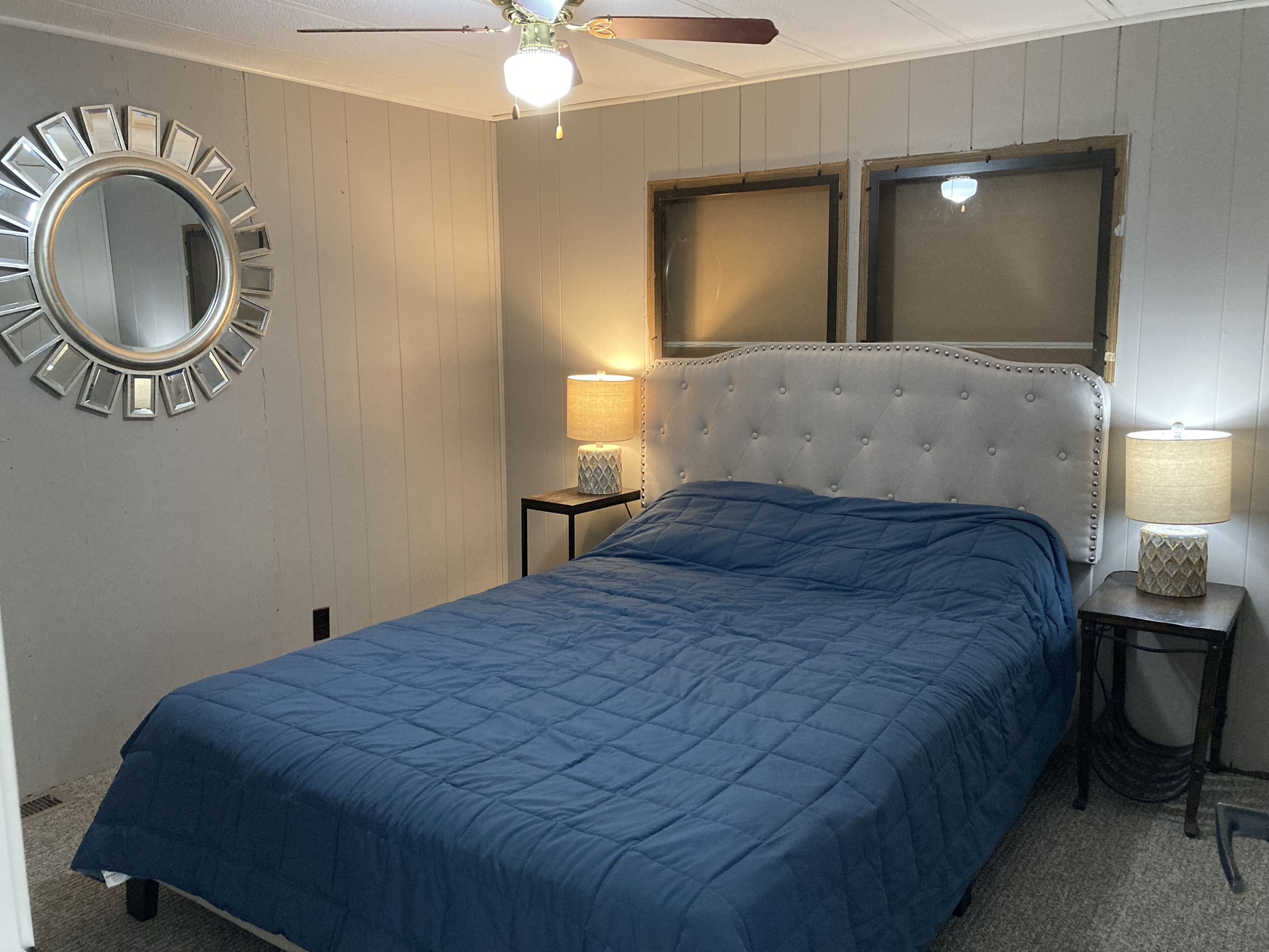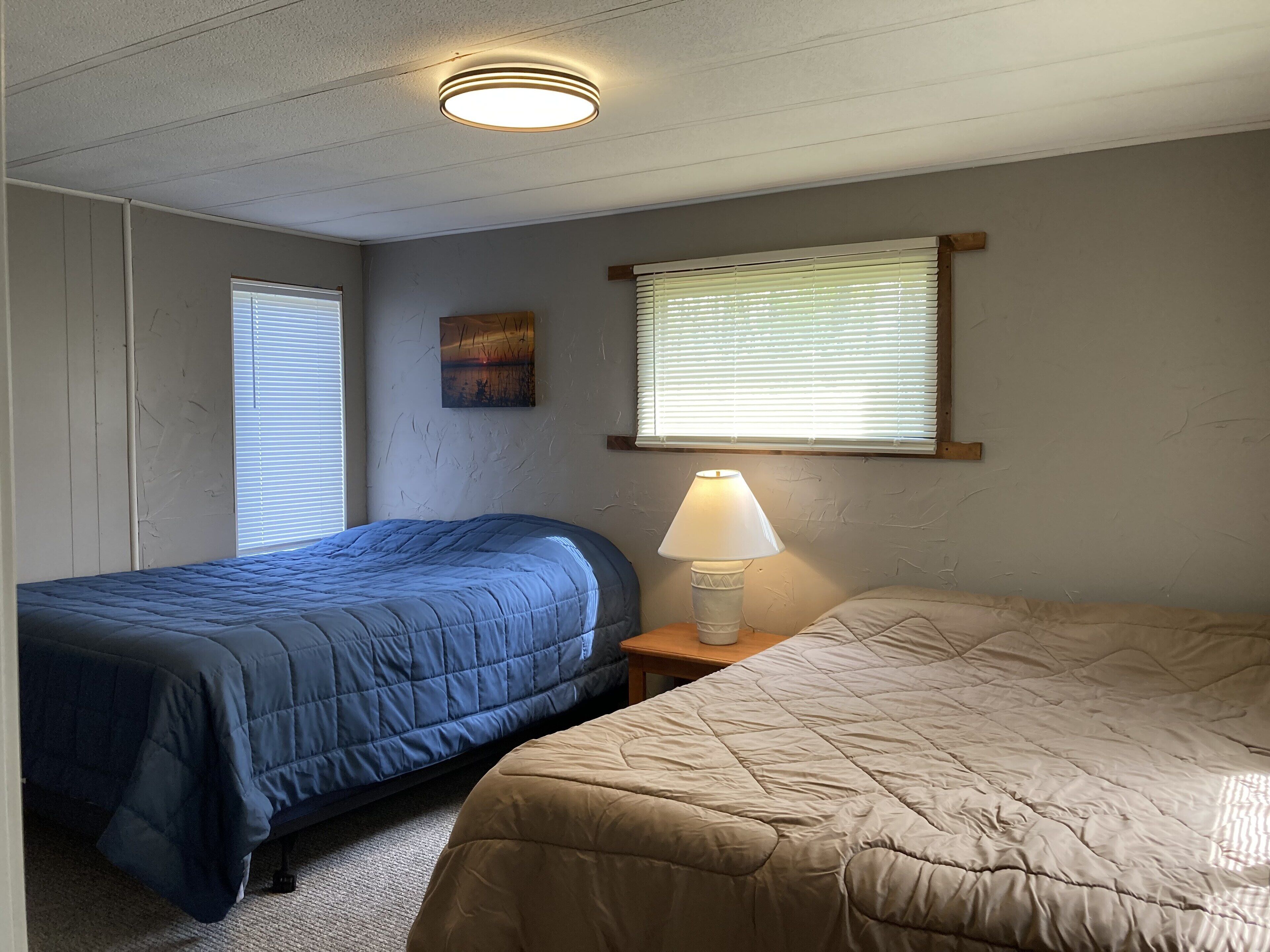 Cabin Retreat on White Potato Lake Walking distance to a private community sandy beach area. Newly remodeled manufactured home located right off of White Potato Lake. Located within a small seasonal campground, quiet during the week and a bit busier on the weekends in summer. It is isolated from the hustle and bustle of the lake and campground. Full service lake that is great for kayaking, canoeing, paddle boarding, skiing, wakeboarding, tubing and great fishing. Cabin is very close to the boat launch (boat landing 1). Snowmobile trail is just across the lake which you can take the boat landing to. UTV trails start on the road that goes to the trail just up the street. Ample parking for toys. Spacious living room, full kitchen (equip with all your cooking needs), large dining space, 3 bedrooms, full bathroom and bonus room with pull out couch and laundry. Sheets, pillows, pillow cases and comforters provided for queen beds only (4), not pull out. Kitchen has all essentials drip coffee pot, crockpot, pots, pans, plates, bowls, cups and utensils.*No bath or beach towels provided.*No local garbage pick up, you will need to take to the local recycling center or take with you when you leave. No WiFi