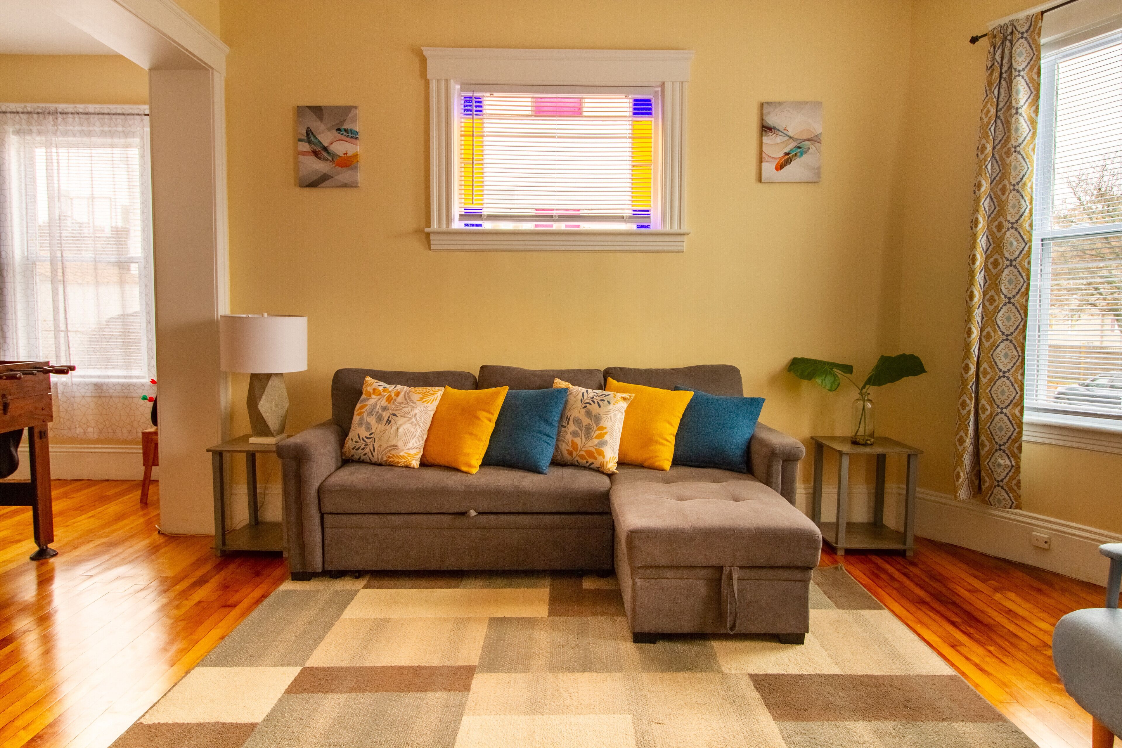 Spacious family friendly 3BR 1st FL apt. Kelly SQ, collages & universities WOOSTAH HIDDEN GEM 💎 Spacious family friendly 3BR APT w/free WiFi, 65” and 40”smart TV’s, board games, Central heating and cooling, ceiling fans, A full kitchen, dining room. Steps away from the Canal District and all it’s restaurants, Shops, lounges, bars, nightclubs and all the city amenities. Close to all colleges and universities Within .5 mile from the DCU center, Fidelity Ice arena, WooSox Polar park, the Palladium, Union Station, ST. Vincent Hospital , I290, I190, I90 & route 9. This spacious family friendly apartment you will have 3 bedrooms. The first bedroom has a small office desk and chair with a twin and full size bed. The second bedroom has a queen size bed, side tables, lamps with USB ports for smart device changing and wall mounted 40” TV. The third bedroom has queen size beds. It also give access to a office space with chair and desk a full closet with a baby pack and play, baby bath, bassinet and other toddler/baby toys, an iron and ironing board. All bedrooms has ceiling fan and lamps with usb charging ports for smart devices and room darkening shades.The kitchen is spacious with a dining table, toaster oven, all in one coffee, tea and latte maker, microwave, crockpot, full knife set, full cooking set pots and pans, stove with oven, a refrigerator and a full size pantry. Coffee ( regular & decaf), Tea, creamers, sugar, sweeteners and bottled water are always in stock for our guests.The dining room has a table and six chairs. There is also a pool table/ game table with cards, chess, Uno, Dominoes and a poker set.The living room has wide open space, a sleeper sectional with a 65” wall mounted TV with streaming service. There is WiFi throughout the apartment.There is a full bathroom with a bathtub. There is a mud room at the back entrance next to the bathroom, at the front entrance there is a coat rack with bench and storage.There is a indoor heated seating designated smoking area at the back entrance before entering the apartment. No smoking is allow inside the apartment.