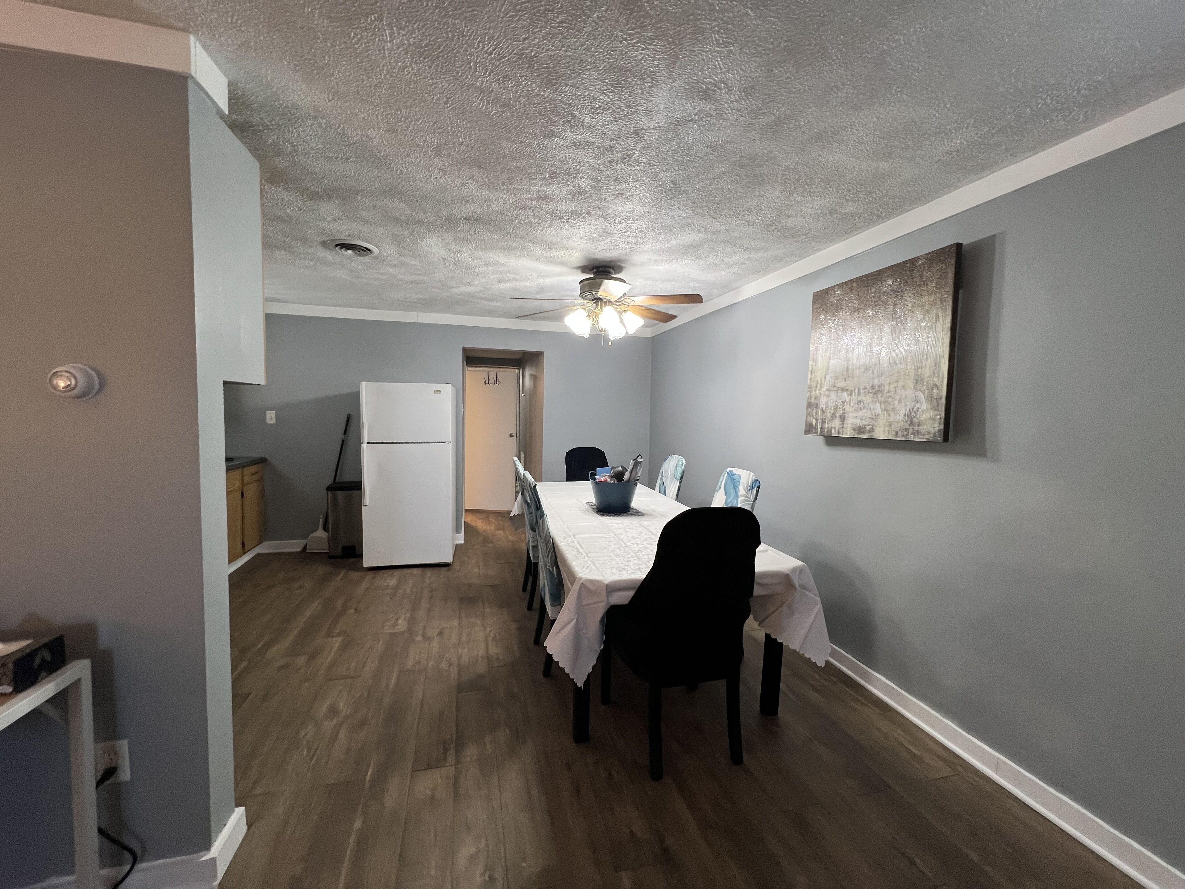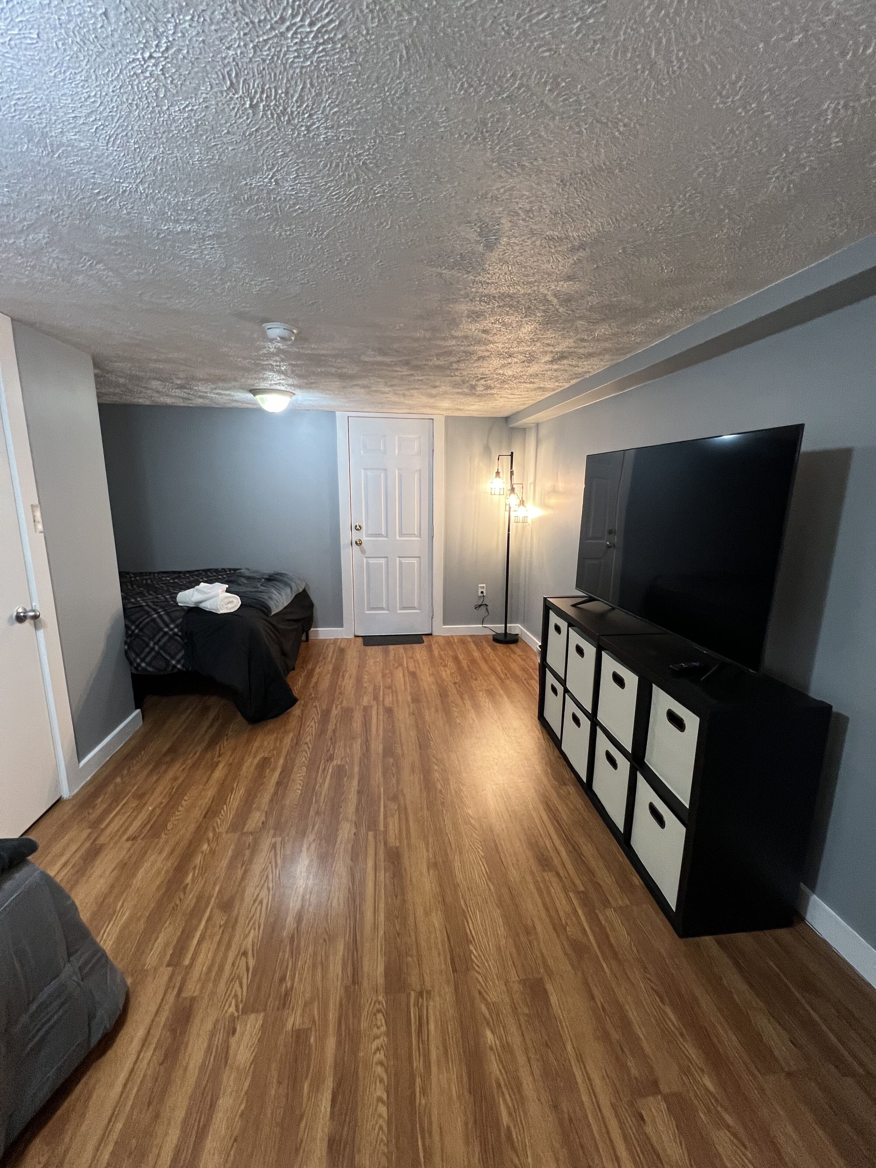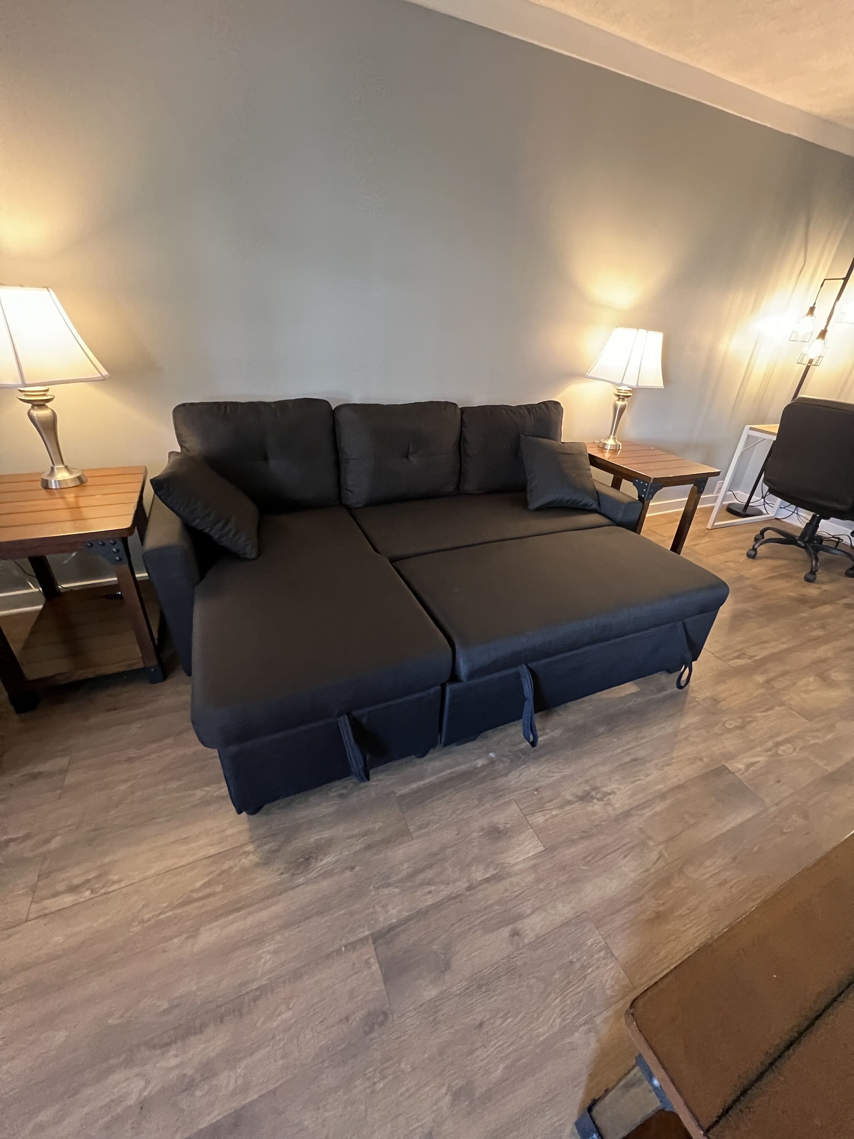Coming into town for any special event.Cozy spacious space with all your needs! Coming into town for any event with the spacious one bedroom apartment with open floor plan! Bedroom and living room with a 50” Roku TV. Wi-Fi included. Large kitchen table with 6 comfortable chairs. Lots of restaurants and stores nearby. Convenient location right in the middle of town, especially with some walking distance.