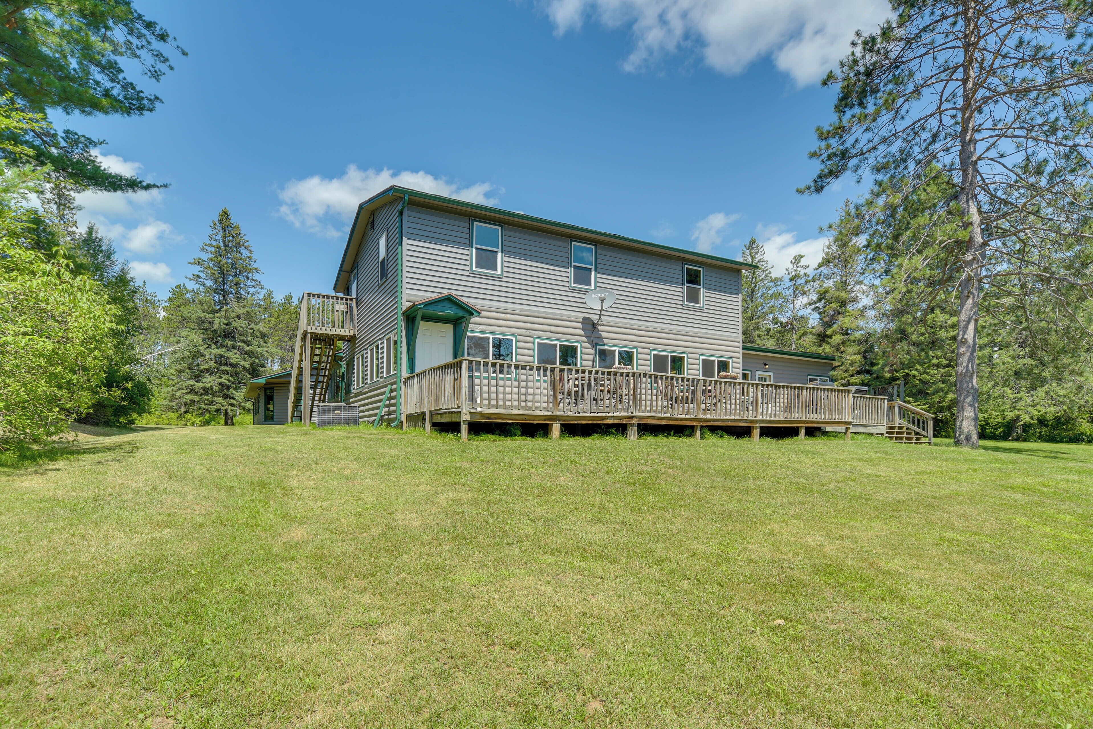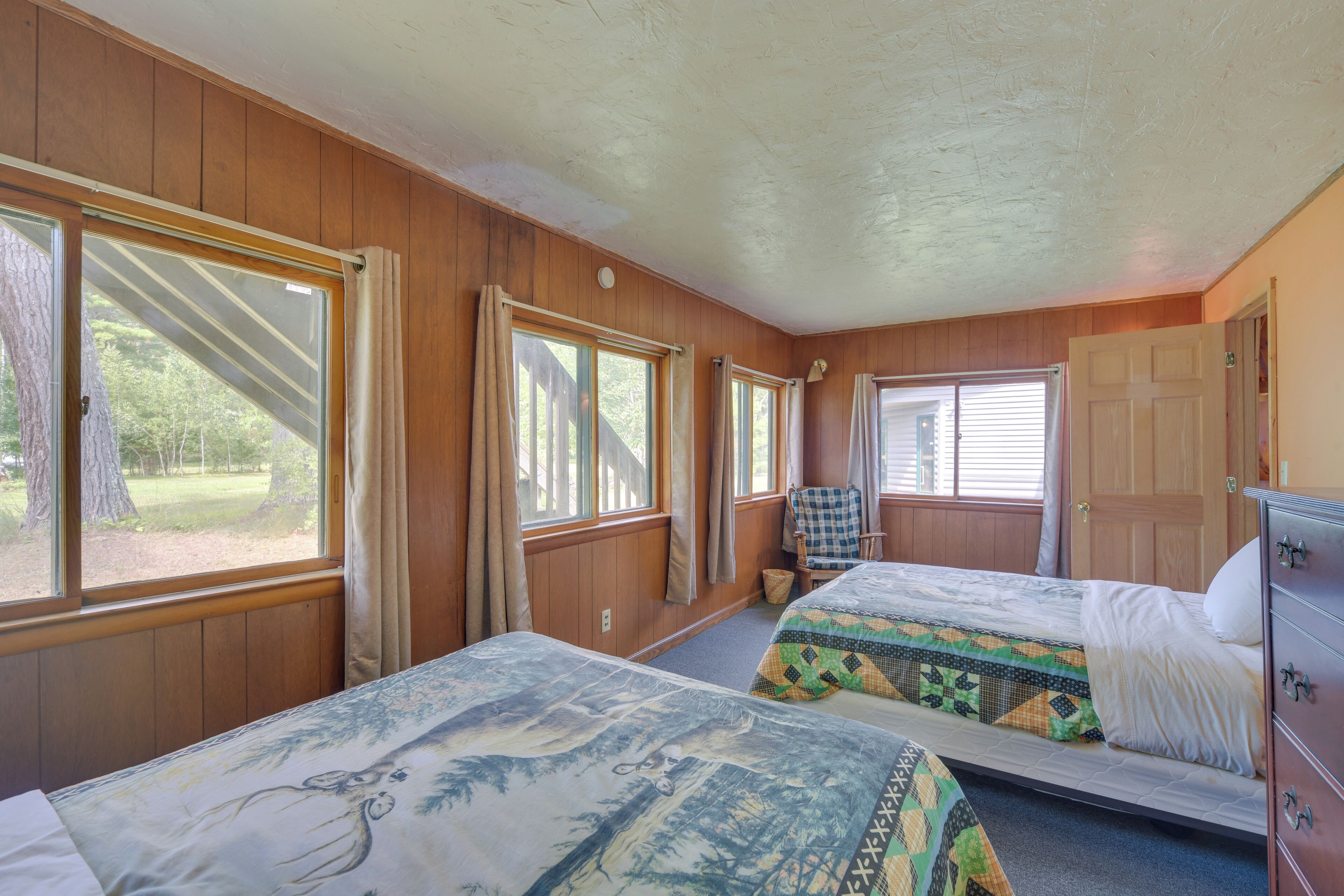 Spacious Winter Retreat w/ River Access + Kayaks! Guarantee your next Wisconsin getaway includes plenty of outdoor fun when you book this stunning Winter vacation rental! Boasting 7 bedrooms, 5 bathrooms, and plenty of incredible on-site amenities, ‘O'Malley's Hideaway’ makes the perfect destination for an exciting nature getaway that comfortably accommodates everyone. Take the kayaks out for some time on the water, hold a friendly ping pong or foosball tournament in the house’s game room, or relax around the furnished river-facing deck!-- THE PROPERTY --Stocked Game Room | Central Heating & A/C | Smart TVs | 6,700 Sq FtBedroom 1: 2 Queen Beds | Bedroom 2: 2 Queen Beds | Bedroom 3: 2 Queen Beds | Bedroom 4: 2 Queen Beds | Bedroom 5: 3 Queen Beds | Bedroom 6: 2 Queen Beds | Bedroom 7: Queen Bed | Game Room: Queen Sleeper SofaINDOOR LIVING: Dining tables, gas fireplace, wet bar, office desk, walk-in closet, walk-in shower, shower/tub combo, ceiling fans, Xbox console, DVD playerGAME ROOM: Pool table, ping pong, foosball, dartboard, board gamesOUTDOOR LIVING: On-site river access, 8 kayaks, canoe, private deck, outdoor dining sets, 2 wood-burning fire pits (wood not provided), gas grill & flat-top gas grill (propane provided), volleyball court, horseshoes, sandbox, kids playhouseKITCHEN: Refrigerator, coffee maker, stove/oven, microwave, dishwasher, toaster, toaster oven, Crockpot, blender, dishware & flatware, cooking basics, spicesGENERAL: Keyless entry, self-check-in, free WiFi, washer & dryer, laundry detergent, towels/linens, trash bags/paper towels, complimentary toiletries, hair dryer, life vestsFAQ: Stairs required for access, 1 exterior security camera (facing out), may be critters (remote location)PARKING: Driveway (10 vehicles), RV/trailer parking allowed on-site-- THE LOCATION --CHIPPEWA RIVER (on-site): Boating, kayaking, swimming, fishingOUTDOORS: Tuscobia State Trail (1 mile), Ojibwa Park (4 miles), Flambeau River State Forest (22 miles)NEARBY ATTRACTIONS: Barker Lake Golf Course (12 miles), Chippewa Flowage Public Boat Landing (14 miles), Grindstone Creek Casino (26 miles)AIRPORTS: Rice Lake Regional Airport (61 miles), Minneapolis-Saint Paul International Airport (151 miles)-- REST EASY WITH US --Evolve makes it easy to find and book properties you’ll never want to leave. You can relax knowing that our properties will always be ready for you and that we’ll answer the phone 24/7. Even better, if anything is off about your stay, we’ll make it right. You can count on our homes and our people to make you feel welcome--because we know what vacation means to you.-- POLICIES --- No smoking- No pets allowed- No events, parties, or large gatherings- Must be at least 25 years old to book- Additional fees and taxes may apply- Photo ID may be required upon check-in- NOTE: The property requires 1 step to access from the deck- NOTE: Due to the remote location, you may see critters or wildlife- NOTE: Your safety matters. This property features 1 exterior security camera located at the main entrance facing outward. It does not look into any interior spaces. The camera records video and sound when activated by motion