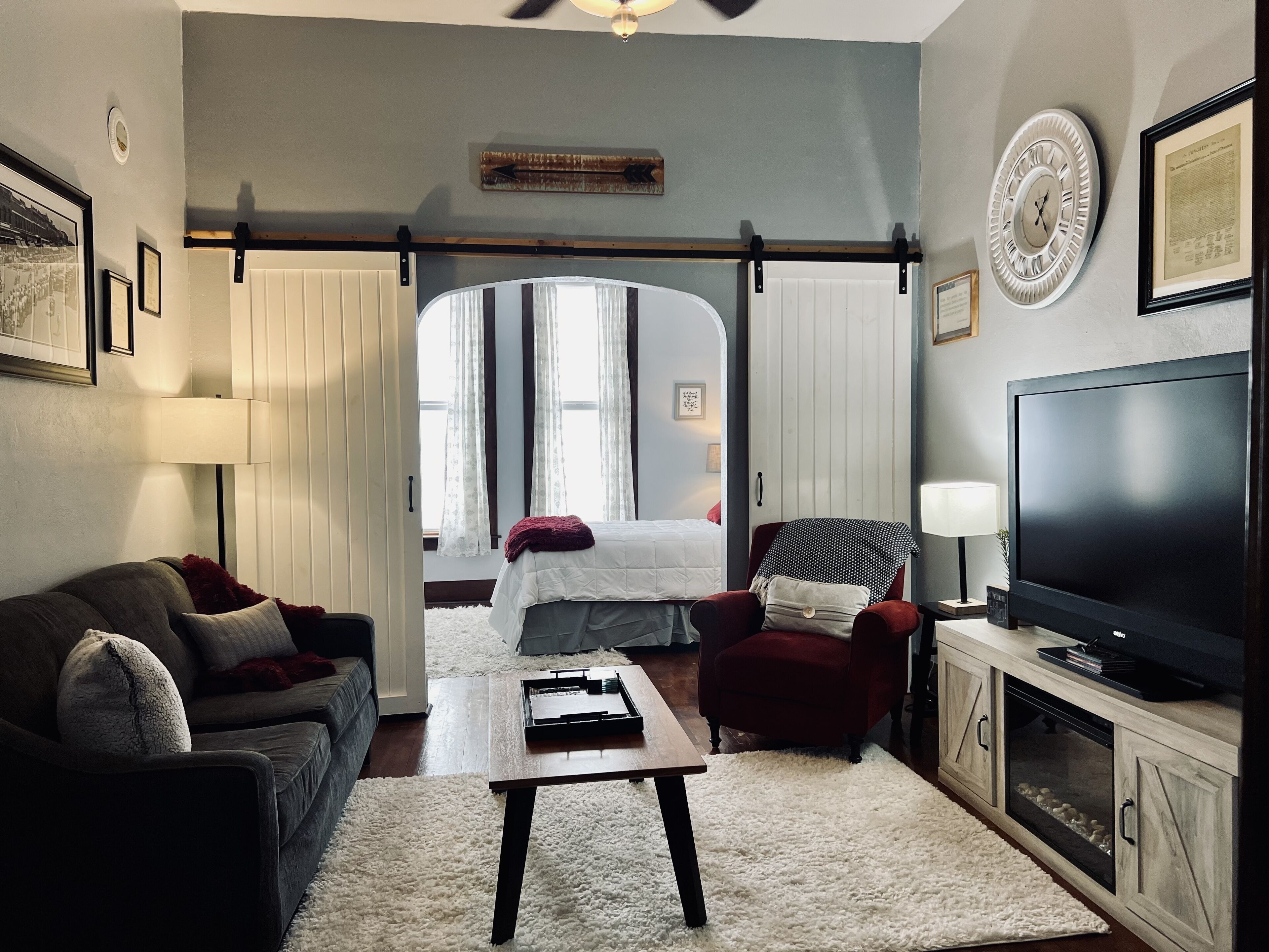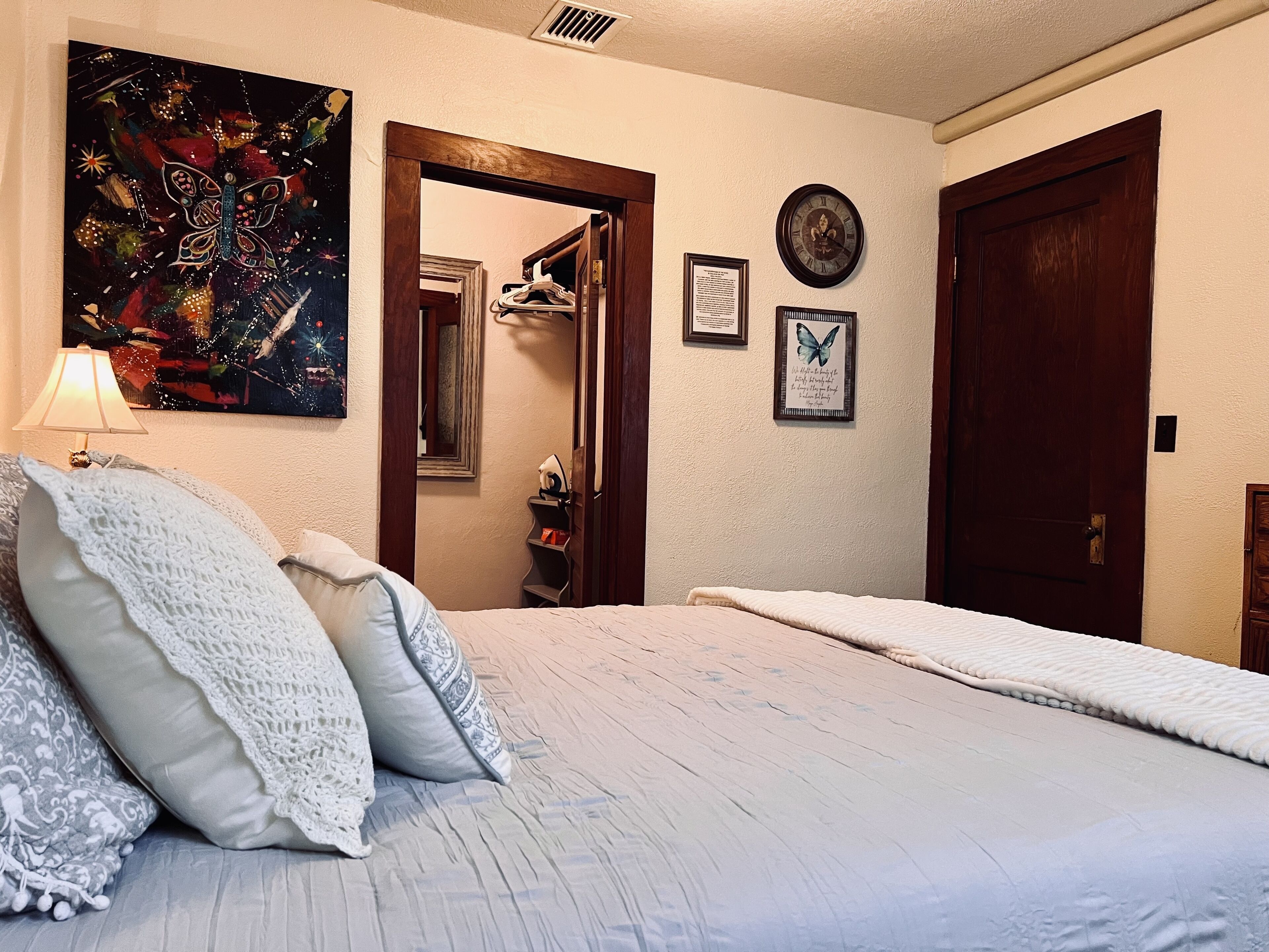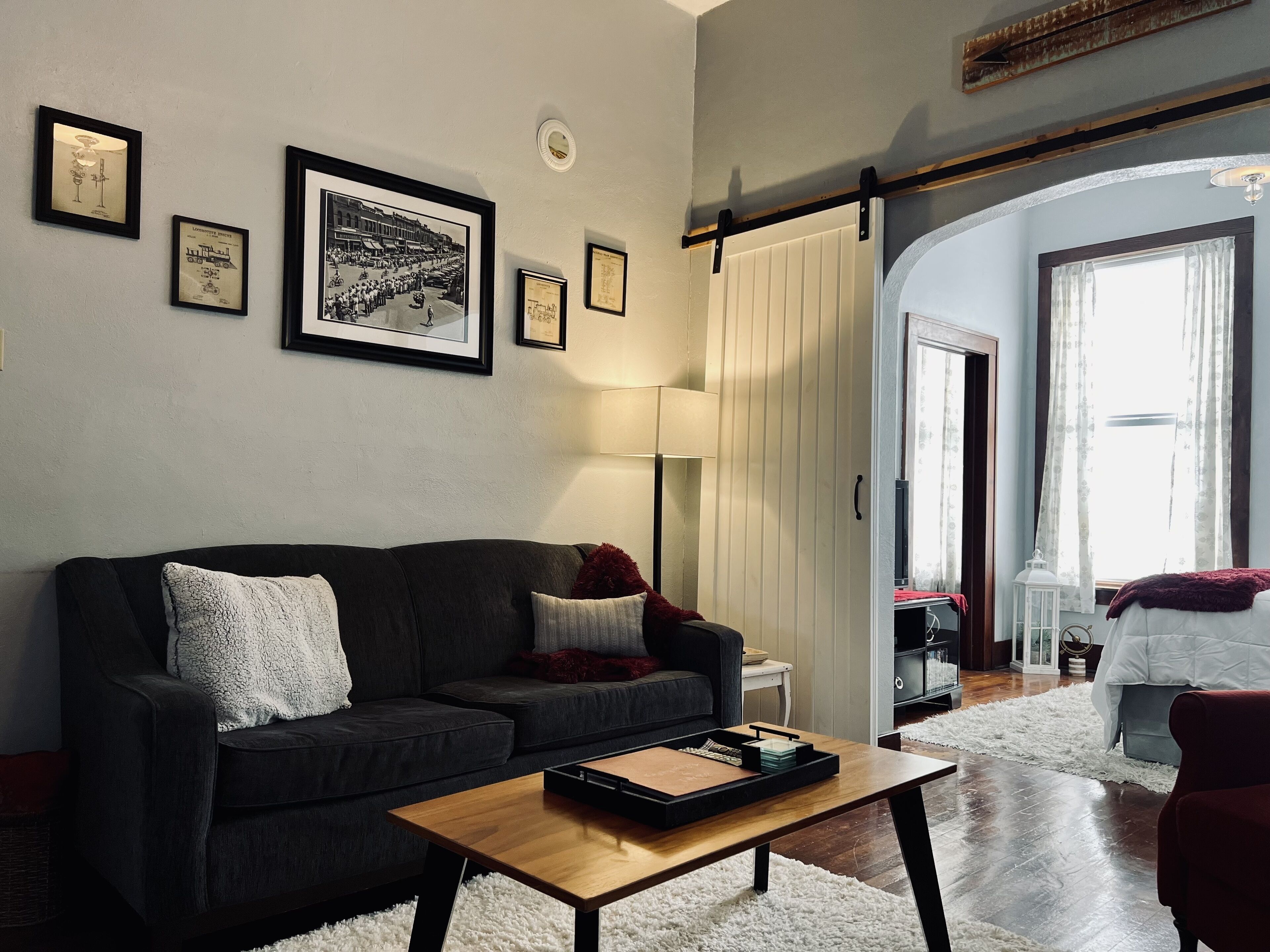 Mental Health Focused Historical Apartment The Regal Fritillary welcomes you to our “unique experience stays” upstairs apartment that offers beautiful views of the historic downtown Main Street of Belle Plaine, IA from 8ft windows, with grand 11ft ceilings, original woodwork, skeleton key doorknobs, & a retro 40s style kitchen with ample modern amenities. We offer several healing upgrade options such as massage, yoga, & personal indulgence items. Our storefront below opens 2024! Message us directly/FB for upgrade details & pricing.