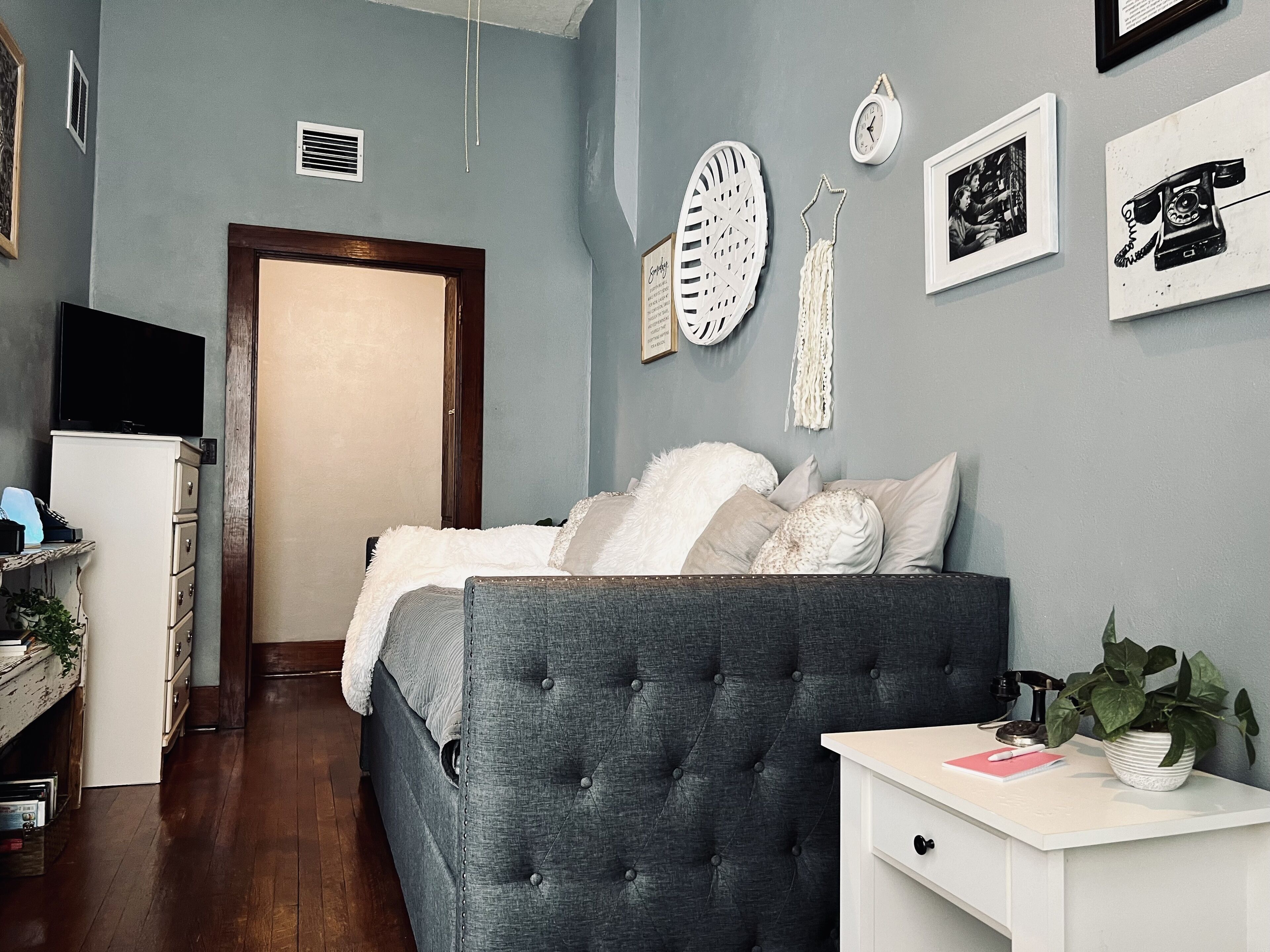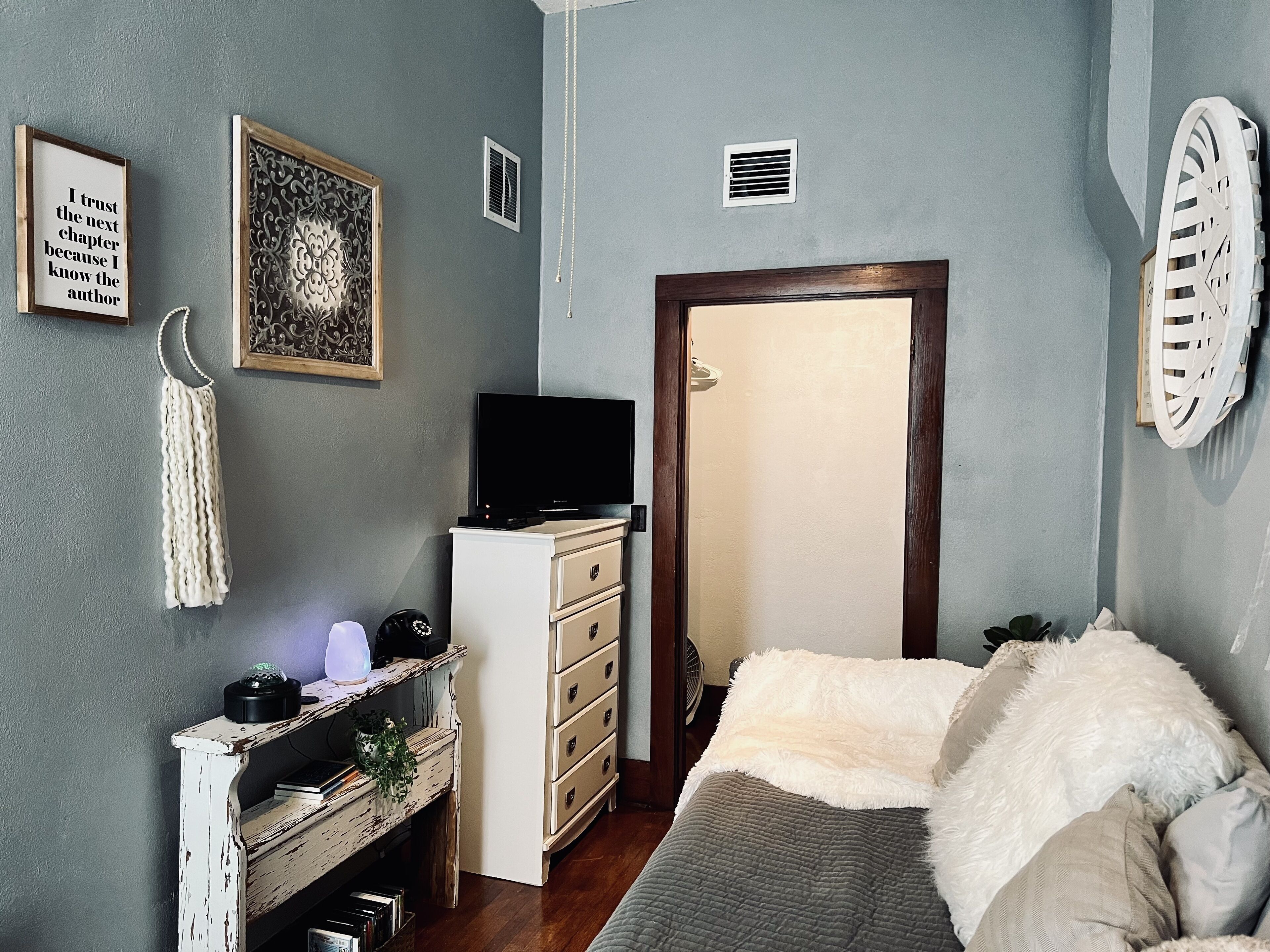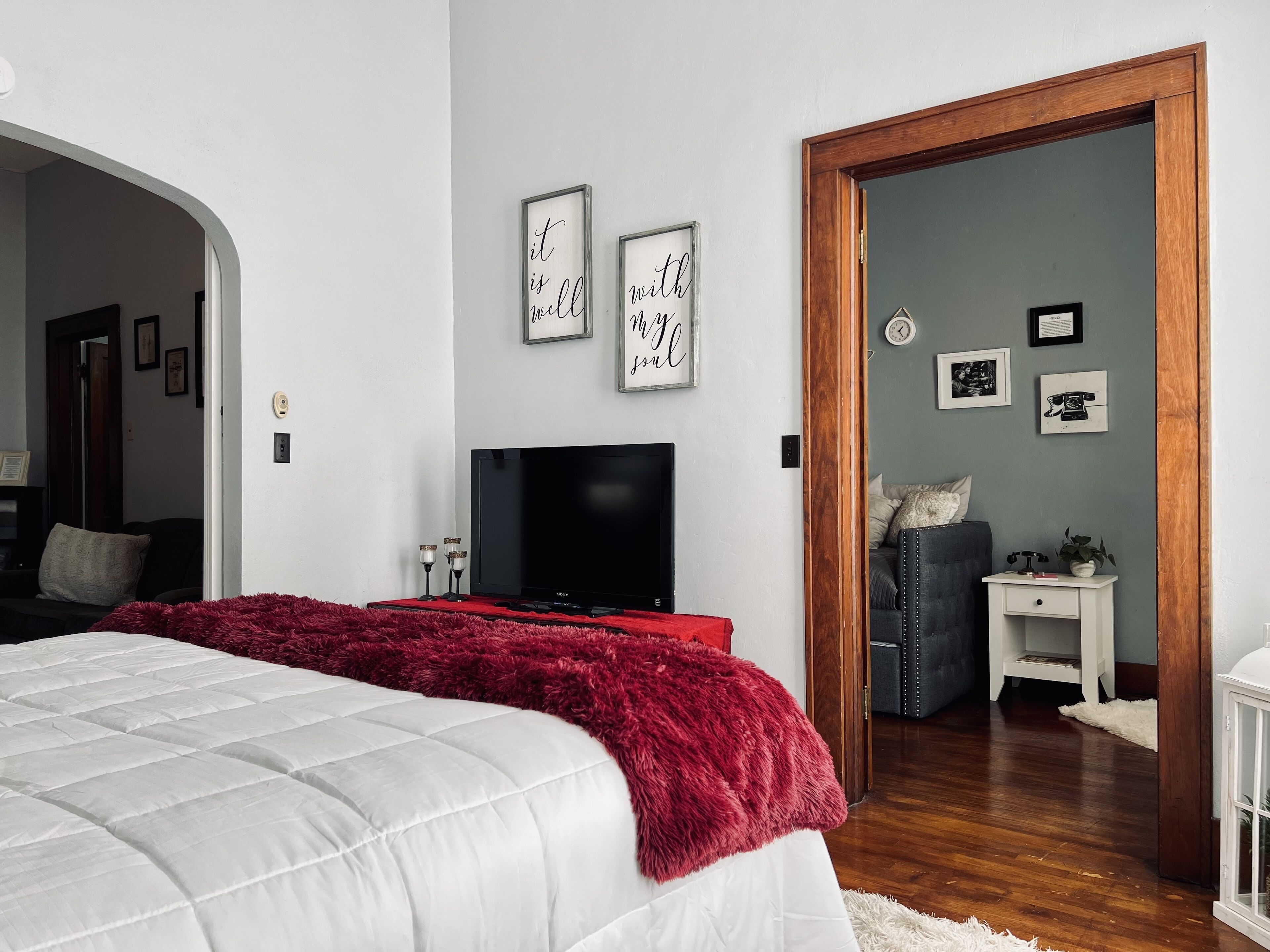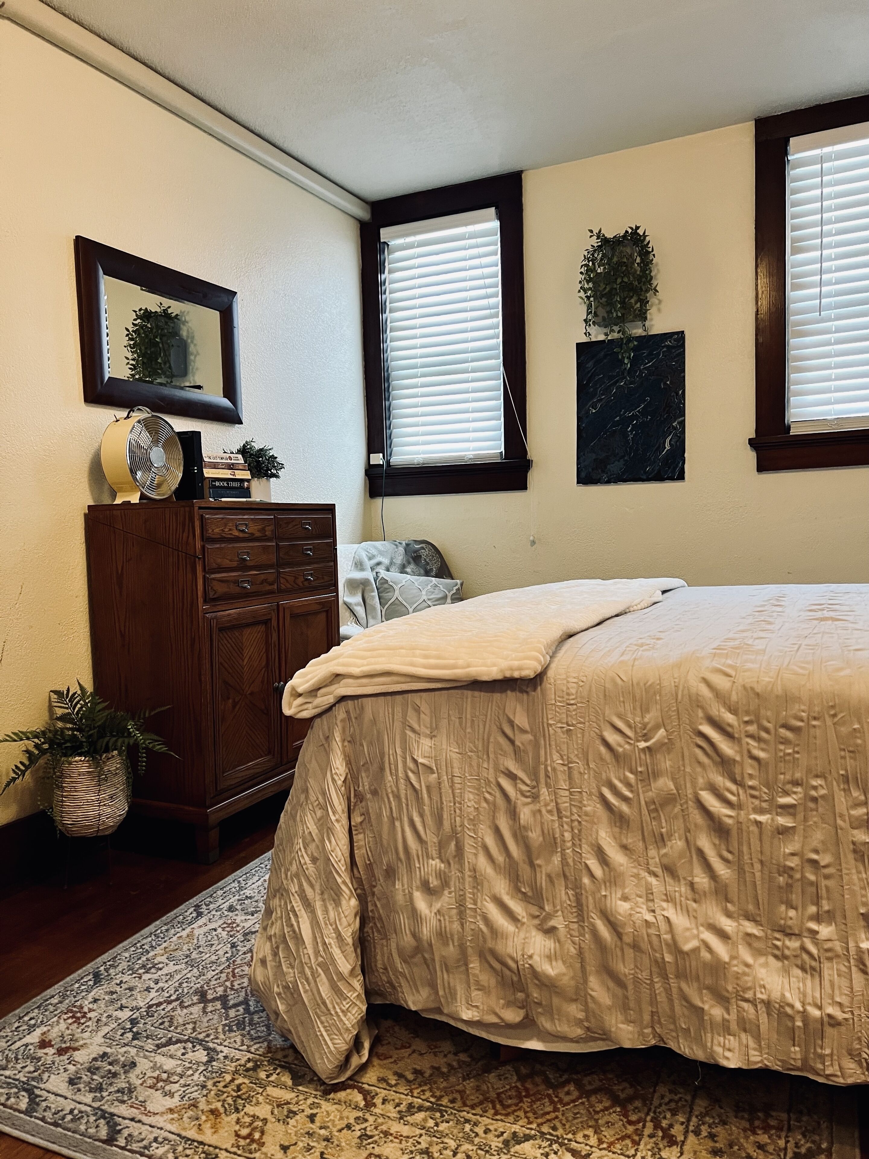 Mental Health Focused Historical Apartment The Regal Fritillary welcomes you to our “unique experience stays” upstairs apartment that offers beautiful views of the historic downtown Main Street of Belle Plaine, IA from 8ft windows, with grand 11ft ceilings, original woodwork, skeleton key doorknobs, & a retro 40s style kitchen with ample modern amenities. We offer several healing upgrade options such as massage, yoga, & personal indulgence items. Our storefront below opens 2024! Message us directly/FB for upgrade details & pricing.