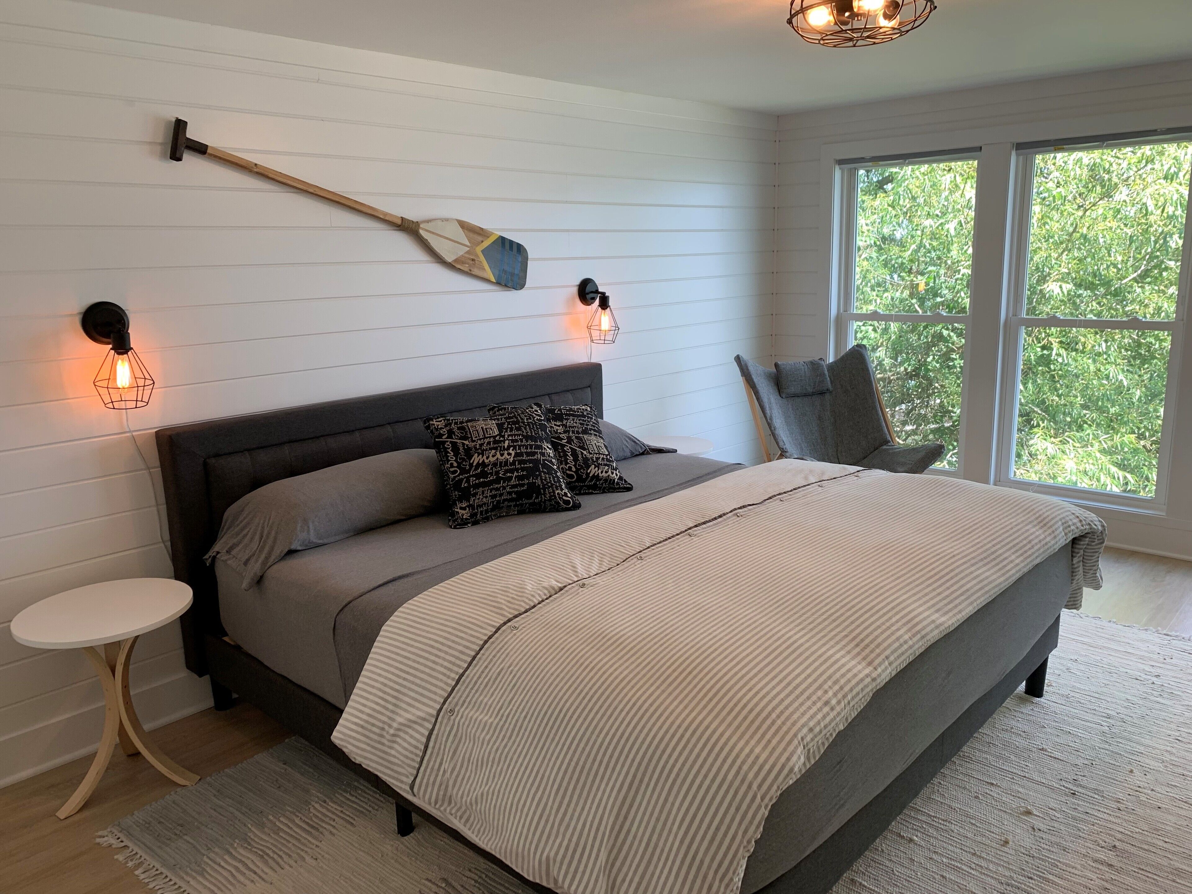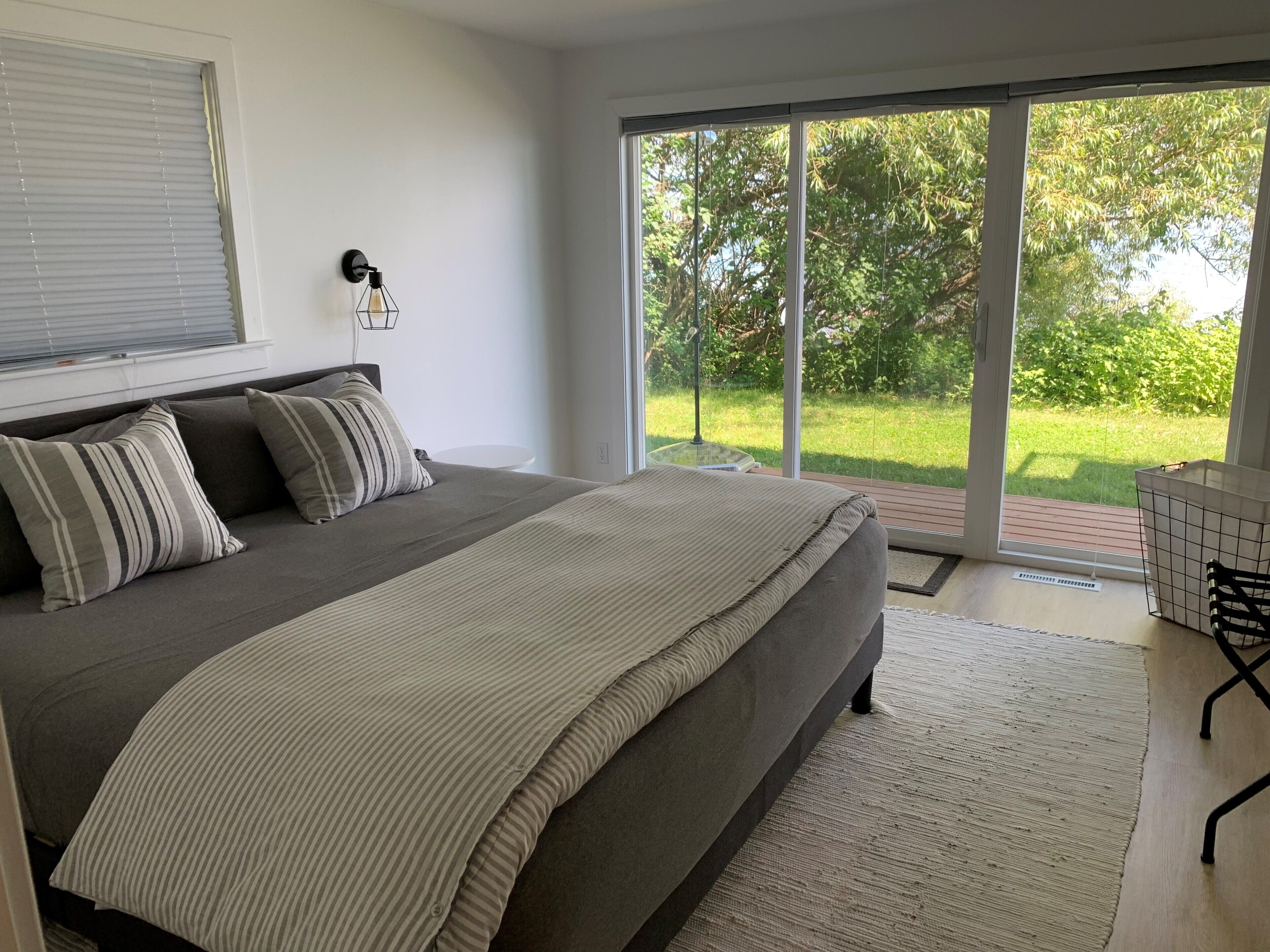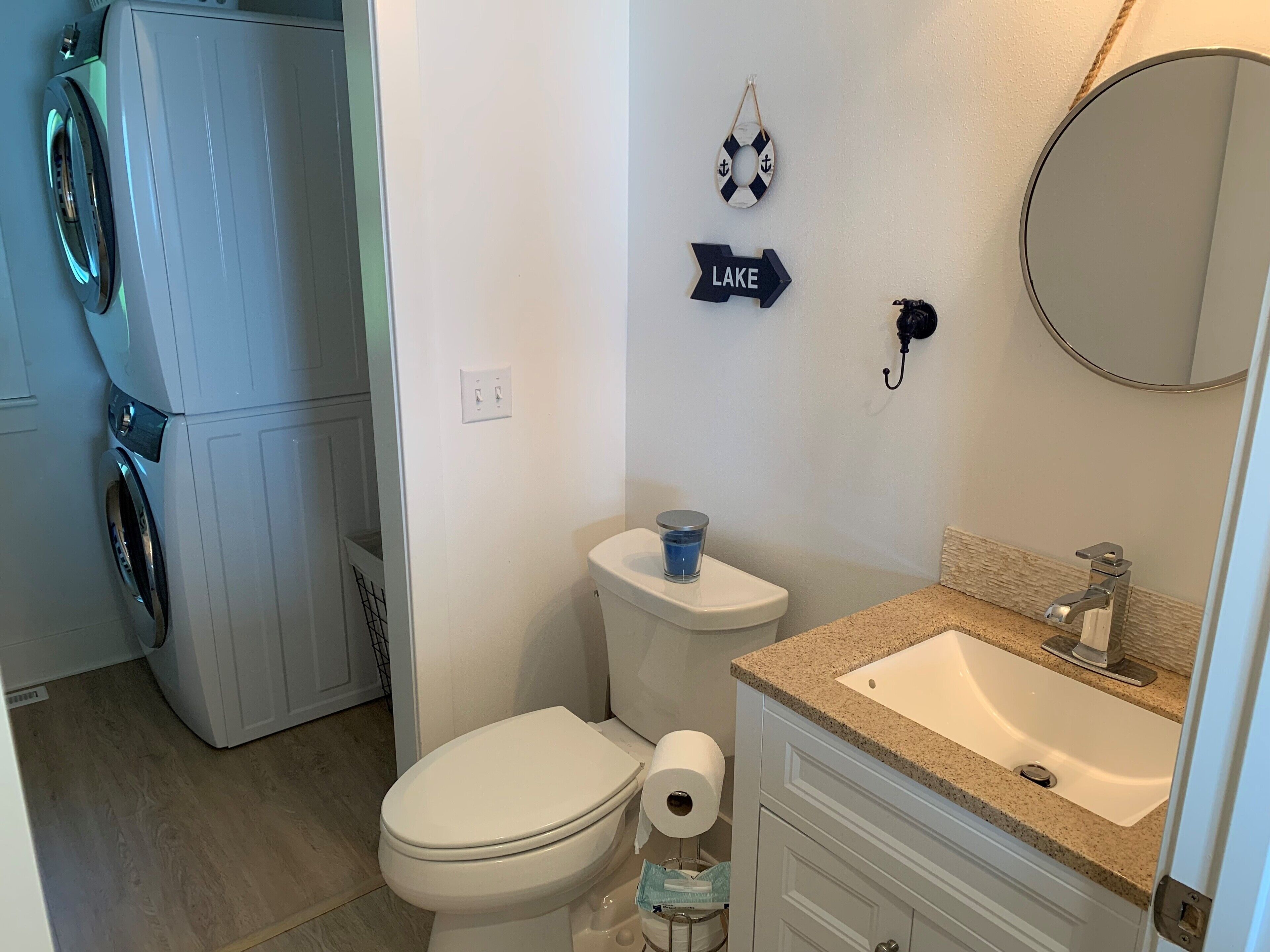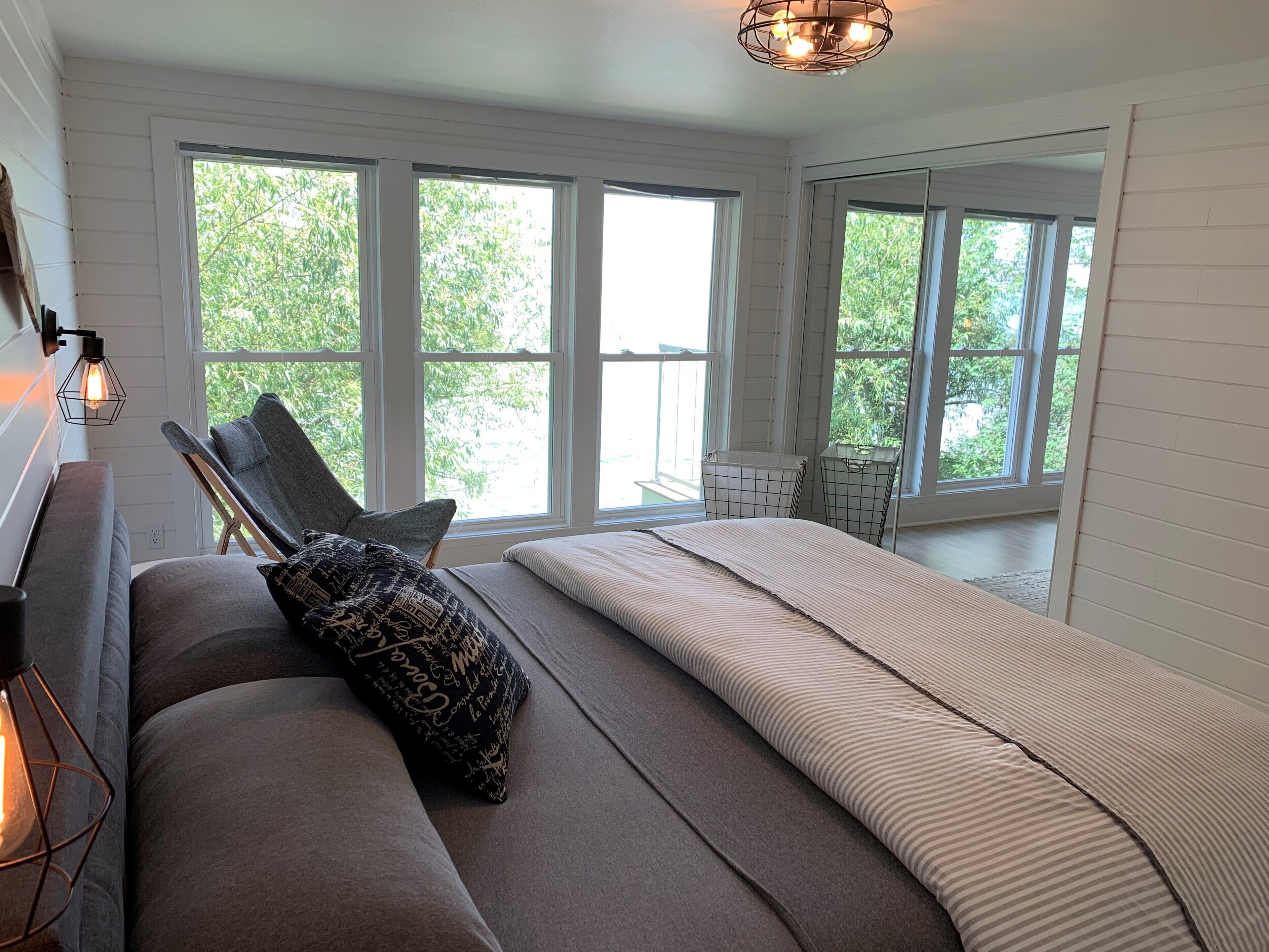 Newly Remodeled Beachfront Home This 6 bedroom, gut-remodeled home was designed to provide comfort and privacy with families in mind. With 3 completely separate two-bedroom suites (each with their own private bathroom) this house was laid out for large, extended family vacations or three families that enjoy vacationing together! Everything in this house is completely new. From the furniture and fixtures, down to the linens and kitchen; you'll find everything to be crisp, clean and new! Each suite has a king bed in one bedroom and two twin beds in the adjacent bedrooms. The 10ft dining room table easily seats 12 or more people. Walk right out from the living room to the large patio that overlooks the lake, or walk a few more steps down to the beach and enjoy the sand and surf. With an extra large lot and privacy in either direction, you will love the peaceful tranquility of life on the lake.