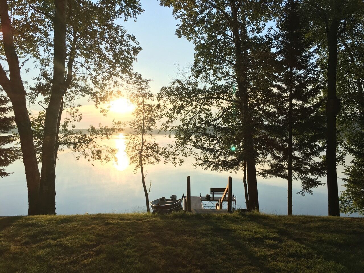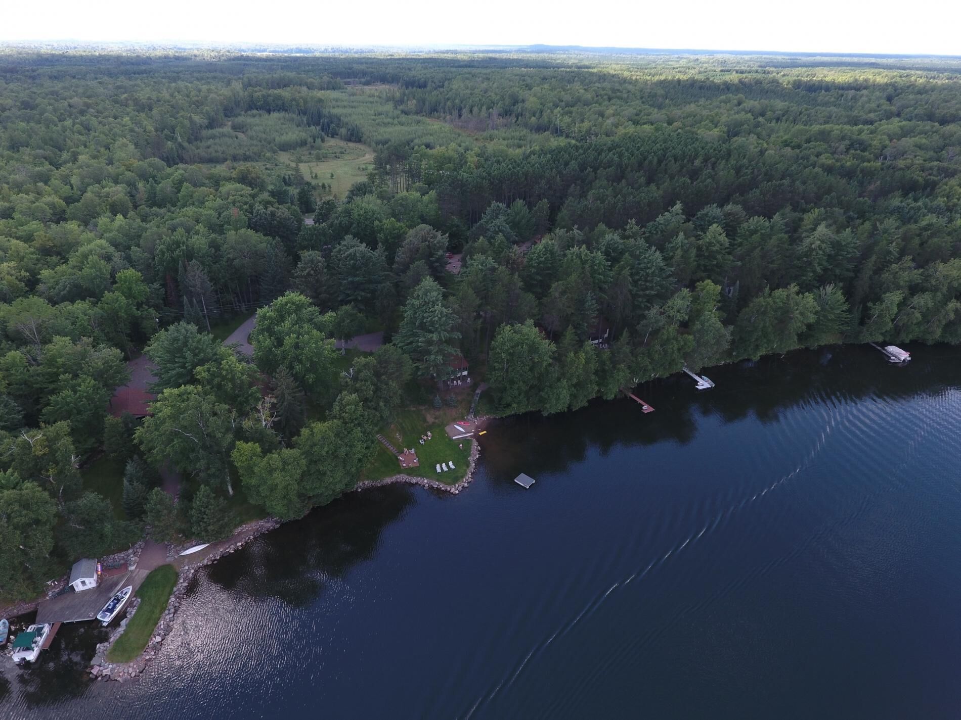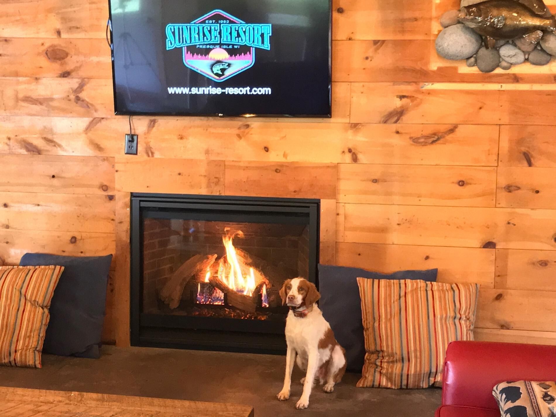 Lakefront Cabin #5 The Bass Last minute short stays available! Typically renting Weekly Sunday - Sunday Mid June to Mid August. 2 night minimum all other months. Occasionally cancellations will allow for shorter stays, please inquire prior to booking. Rates vary throughout the season, select dates for accurate pricing. Dog friendly however, all dogs must be approved prior to arrival!Cabin #5 The Bass is a 3br cabin that can sleep up to 6. There is 1 dockspace available, additional space available by the fish house at South end of the resort. Bedroom 1 has a queen bed, bedrooms 2 and 3 have two twin beds each for a total 4 twin beds. There is parking space for 2 cars or one truck and smaller trailer if trailer is disconnected or larger rigs use extra parking space by the garages. PLEASE DO NOT PARK OR DRIVE ON THE GRASS. Sunrise Resort is a family owned Northwoods resort in popular Vilas County, offering 8 cozy lakefront cabins to accommodate groups of all sizes, be together and have your own space! All cabins feature spectacular sunrises, screen porches and that “Northwoods” feeling. Spread across 1000′ of crystal clear Presque Isle Lake frontage, considered to be a trophy musky and smallmouth bass fishery, plus access to a variety of waters in a quiet 4 lake chain with over 1500 acres of water to explore. Nearly 12 acres of park like grounds create a relaxing atmosphere with 2 sun decks, sandy swim area, plus access to hiking/biking/snowmobile trails and more, there is something for everyone!