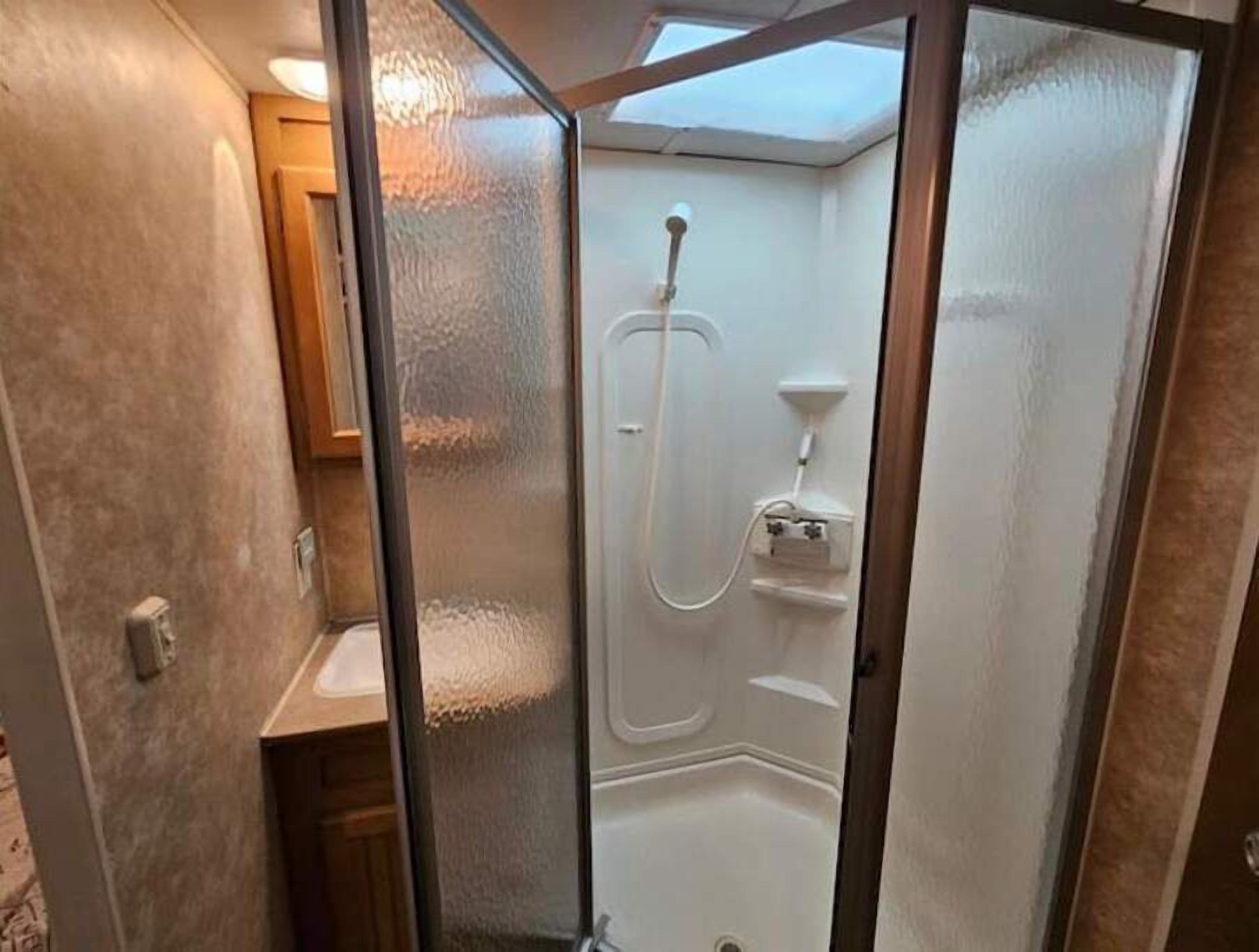 The Dutchman - Presque Isle Campground #3 This clean, spacious 38 ft Dutchman camper has two private bedrooms plus a sofa which converts in to a bed sleeping a total of 6 adults. Two slide-outs result in an open floorplan. The kitchen is well-furnished with plenty of room. In the dining area there is a table seating 4 plus an additional 2 stools at the kitchen bar countertop. The camper has air c...