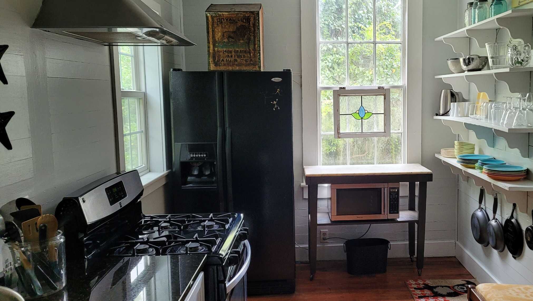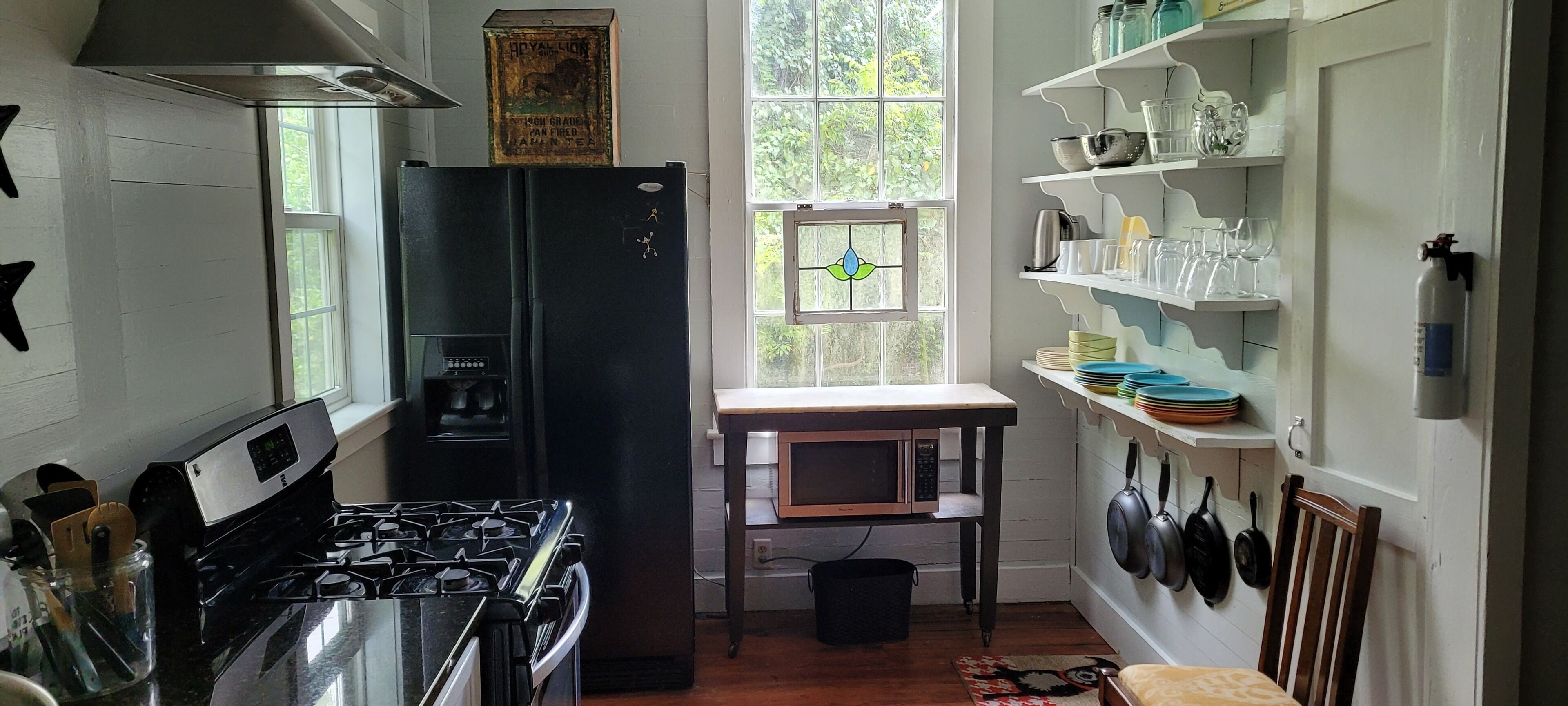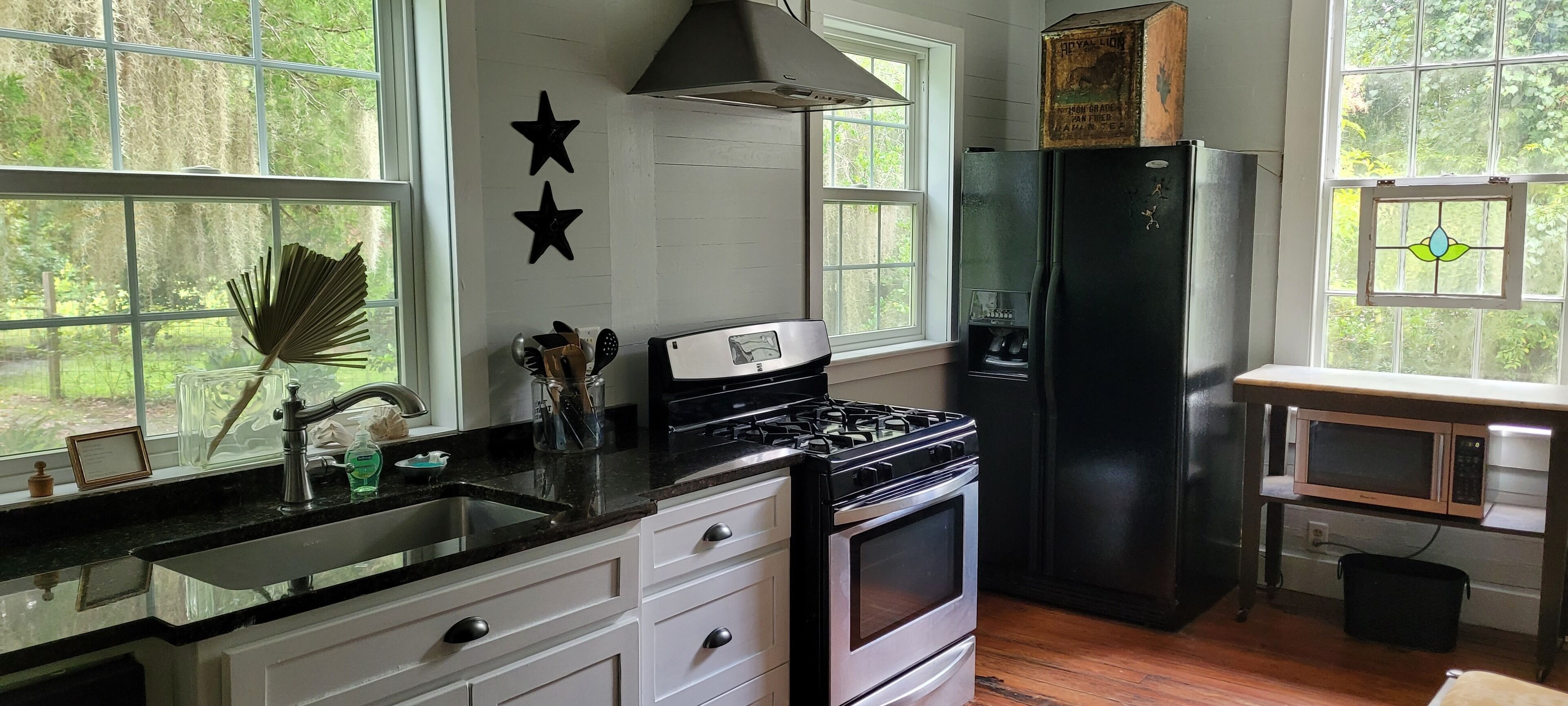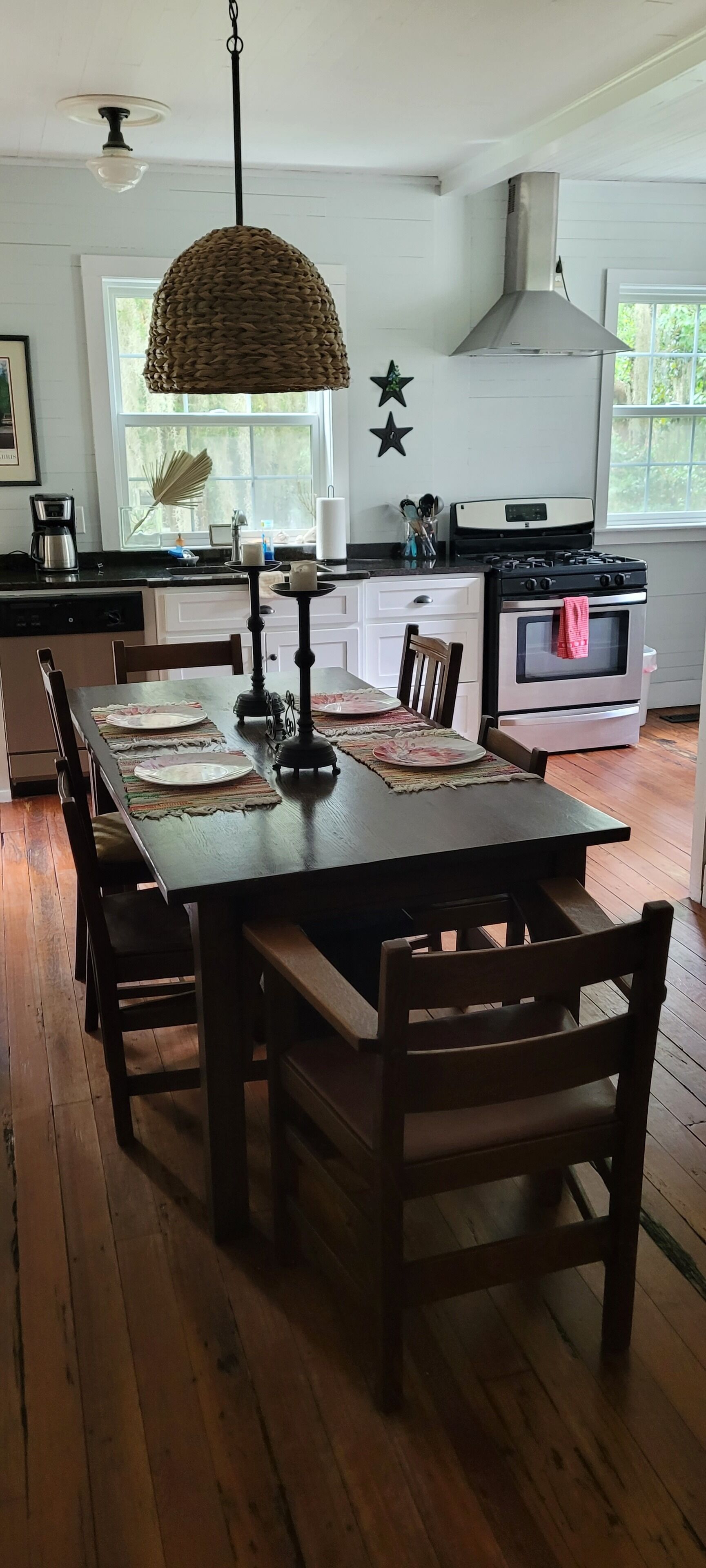 Historic Home, located in The Ridge Near Sapelo Island Near Darien in historic Ridge area (where the sea captains lived.) Close to Blue-n-Hall Marina. Historic home with modern amenities. Perfect for a family and/or friends getaway. Great are for birding and nature lovers. Fenced back yard for pets. Screened area for grilling. Kayak rentals available. Fishing and leisure charters.Large home with two king-sized bedrooms and two double bedrooms, two bathrooms, a fully equipped kitchen, washer/dryer, Wi-Fi, cable, Smart TV, a small grill, covered storage for kayaks, and ample parking for cars or boats. The front and back yards are fenced.The paved McIntosh County bicycle-walking path, known as the Highlander bicycle path and part of the East Coast Greenway between Maine and Key West, is located across the street. Blue ‘N Hall marina is close by for boat launch, kayaking and canoeing. St. Simons Island and Jekyll Island are about a 30 minute drive. Savannah is an hour's drive north.The charming town of Darien is three miles to the south and Harris Neck Wild Life Refuge is a 25 minute drive to the north. Sapelo Island is nearby. This home is located 6 miles from the Sapelo Island ferry dock.More History of the home....After the city of Darien was burned by Union troops in 1863, many timber merchants, bar pilots and physicians built new homes on this slight bluff three miles away from Darien Just above the river.Darien/McIntosh County, immersed in history and surrounded in natural beauty. Explore our rivers, estuaries, undeveloped barrier islands, beaches and natural habitats. We boast one of the world's largest estuarine systems. Darien/McIntosh County is situated in a beautiful, unspoiled, ecological location that is virtually unrivaled in the state for the natural habitats that abound. Here is ‘Nature’s Favorite Coast!” The tidewaters are the nursery of the ocean…tiny shrimp, crustaceans and all species of fish! Spring finds dozens of baby dolphins in the Intra-coastal Waterway, learning to fish with their mothers and pods. Over 350 species of migratory birds can be found here making it a premier birding area. While we know you will find your favorite place in history whether it be Fort King George, Ashantilly or the Old Jail, Butler Plantation and rice fields along with the Huston House mansion, historic old churches, cemeteries, and tabby ruins on the waterfront; our best advice is sure to be dining on local cuisine at one of our restaurants, events or festivals. Sapelo Island makes for a wonderful day trip, but you must plan ahead for the tour and ferry trip. Don't miss Harris Neck National Wildlife Refuge. Harris Neck NWR provides premier nesting, foraging, and wintering habitat for a diversity of wildlife. Signature species include threatened wood storks, which nest in a large colony on Woody Pond, and the colorful and uncommon painted bunting. Immerse yourself in a world where flowers bloom in every season, birds and butterflies abound and enjoy the small coastal town interests and environment.