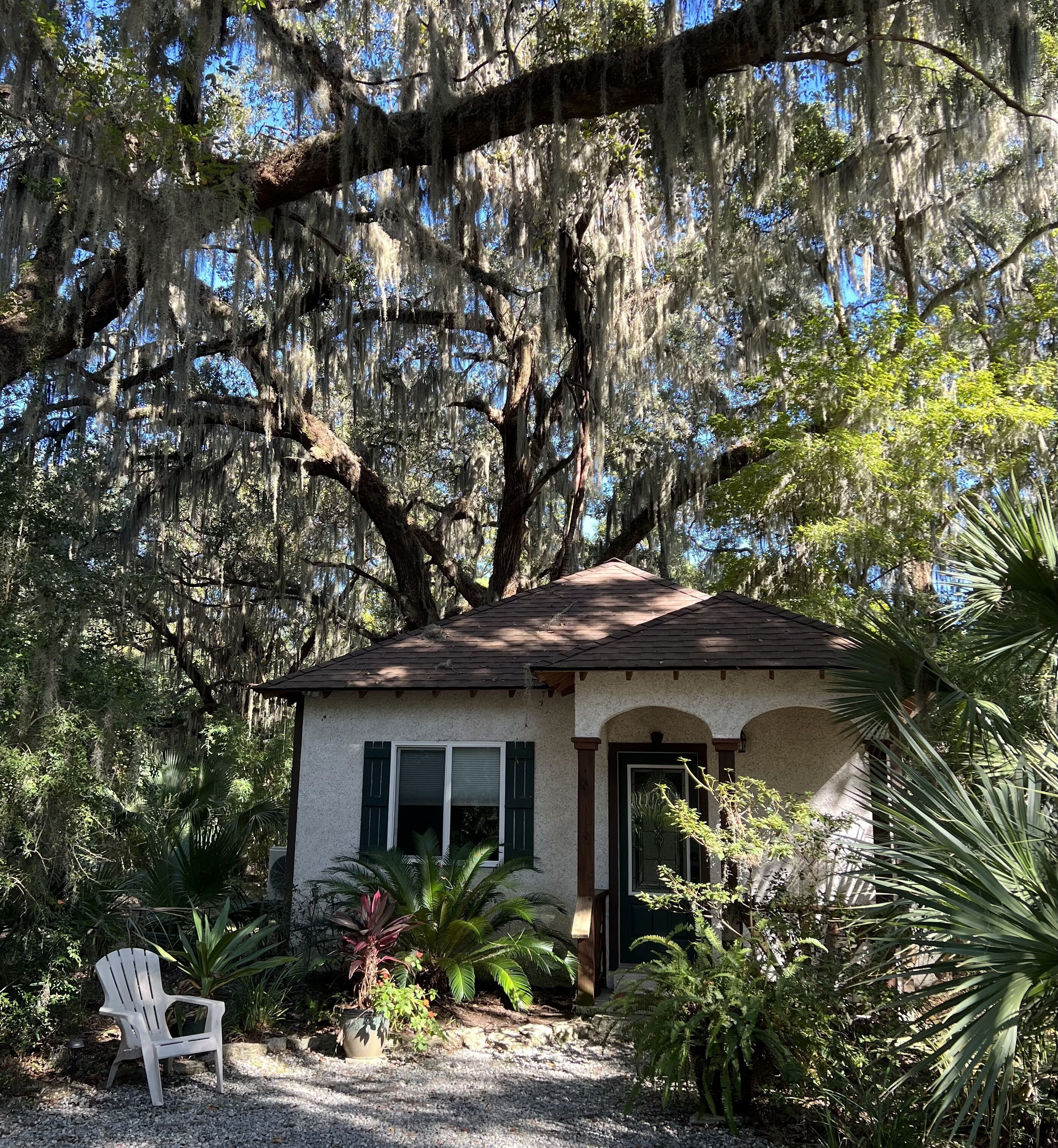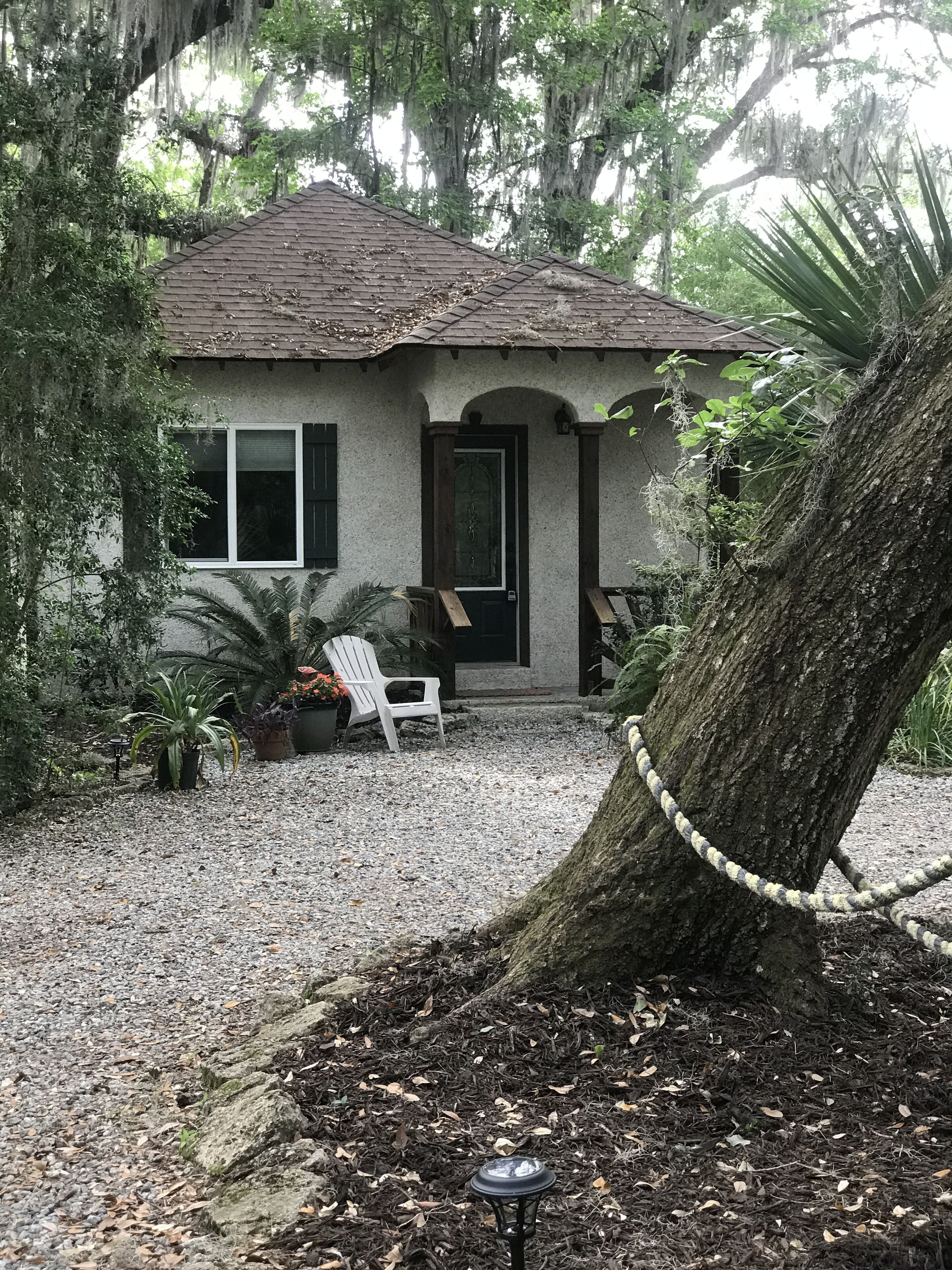 Quiet, Secluded Cottage, Close to Sapelo, Birding, nature, fishing Free wi-fi! Private cottage at the Oaks of Eden. Set among towering live oaks this cottage is like a fairy tale escape nestled in lush ferns, palmettos and live oaks. One bedroom , 1 bath, plus sitting area with a pull out sofa. Queen bed, bath with shower, full kitchen includes dishwasher, washer dryer, flat screen TV, wifi, and a sitting area. Private screened porch. Follow the path to the observation deck to gaze over marsh and tidal creeks. This a self catering unit that is pet friendly with prior approval of your four-legged companion.Darien/McIntosh County, immersed in history and surrounded in natural beauty. Explore our rivers, estuaries, undeveloped barrier islands, beaches and natural habitats. We boast one of the world's largest estuarine systems. Darien/McIntosh County is situated in a beautiful, unspoiled, ecological location that is virtually unrivaled in the state for the natural habitats that abound. Here is ‘Nature’s Favorite Coast!” The tidewaters are the nursery of the ocean…tiny shrimp, crustaceans and all species of fish! Spring finds dozens of baby dolphins in the Intra-coastal Waterway, learning to fish with their mothers and pods. Over 350 species of migratory birds can be found here making it a premier birding area. While we know you will find your favorite place in history whether it be Fort King George, Ashantilly or the Old Jail, Butler Plantation and rice fields along with the Huston House mansion, historic old churches, cemeteries, and tabby ruins on the waterfront; our best advice is sure to be dining on local cuisine at one of our restaurants, events or festivals. Sapelo Island makes for a wonderful day trip, but you must plan ahead for the tour and ferry trip. Don't miss Harris Neck National Wildlife Refuge. Harris Neck NWR provides premier nesting, foraging, and wintering habitat for a diversity of wildlife. Signature species include threatened wood storks, which nest in a large colony on Woody Pond, and the colorful and uncommon painted bunting. Immerse yourself in a world where flowers bloom in every season, birds and butterflies abound and enjoy the small coastal town interests and environment.