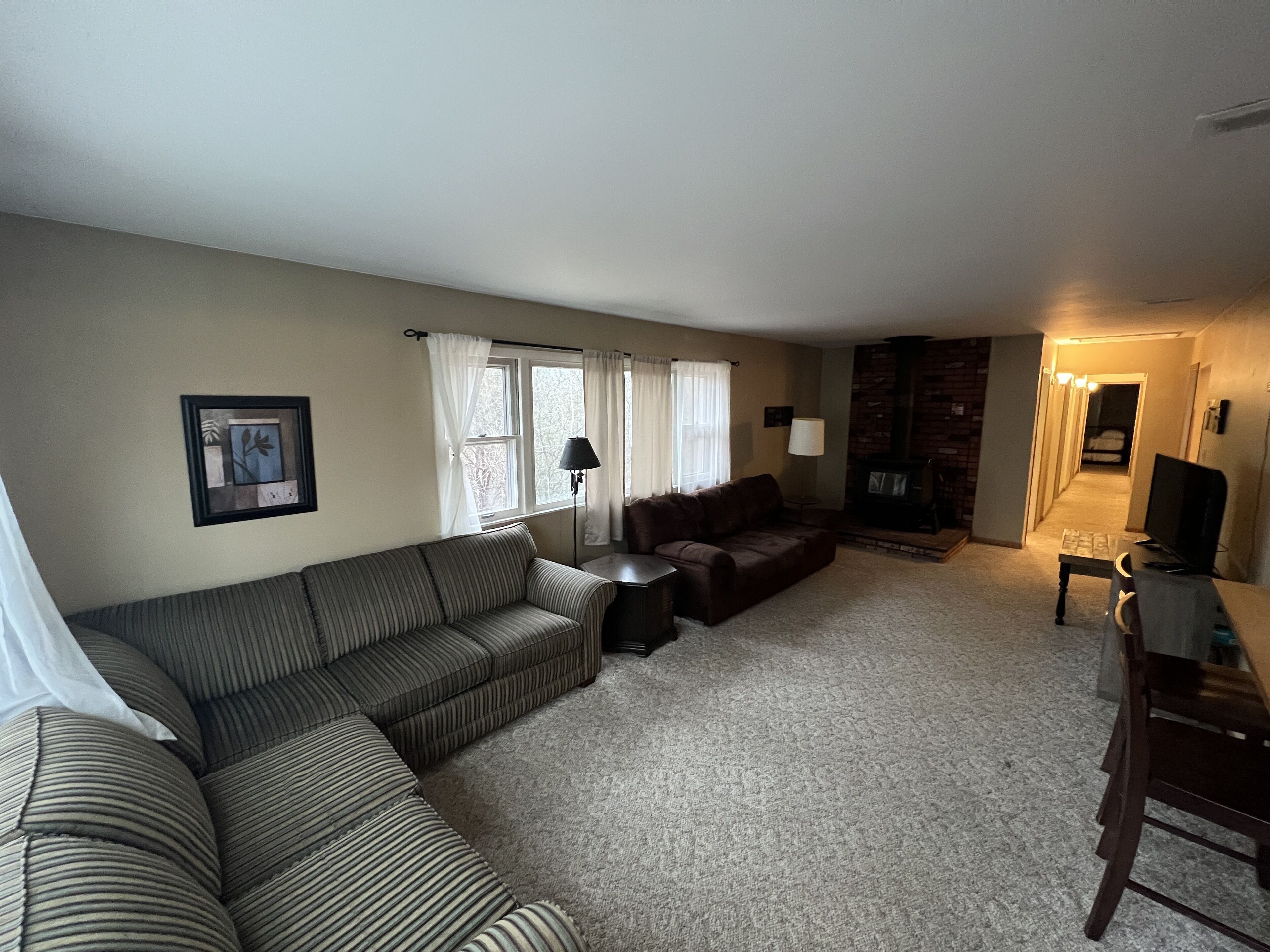 4BR House in Glacier Hills County Park / Heart of the Kettle Moraine! The Glacier Hills Ranger House is located in Glacier Hills County Park and is located on what geologists term an interlobate moraine. Between ten and twenty thousand years ago, the Green Bay and Lake Michigan Glacier Lobes butted against each other. When they receded, approximately 10,000 years ago, they left the interesting and unique landform we call the Kettle Moraine. The park was originally developed as St. Amelians Orphanage Youth Camp and became a Washington County Park in 1976. The park consists of 140 acres of land and includes approximately 1,200 feet of frontage on Friess Lake.The rental house is located just 150' from the Main Hall & Chapel, which often holds large events and weddings throughout the year (weddings often go until 11:00 pm - 12:00 pm on Saturday evenings and can be heard from the house). The house has 4 bedrooms and can sleep up to 12 people, a great place to stay for groups attending events at the park. There are 1.5 bathrooms, a laundry room, full kitchen, living room, and a private deck and backyard.Park Amenities •Playground Equipment•Basketball Court•Fishing•Hiking Trails (6.5 miles)•4 Reservable Shelters•Lighted Parking Areas•Lighted Sled Hill (not designed for use by small children)•Snowmobile Trail Access•Heated Flush Restrooms•Cross Country Ski Trail (trail is not groomed)•Sand Volleyball Court (provide own ball and net)•Swimming (no lifeguard provided)