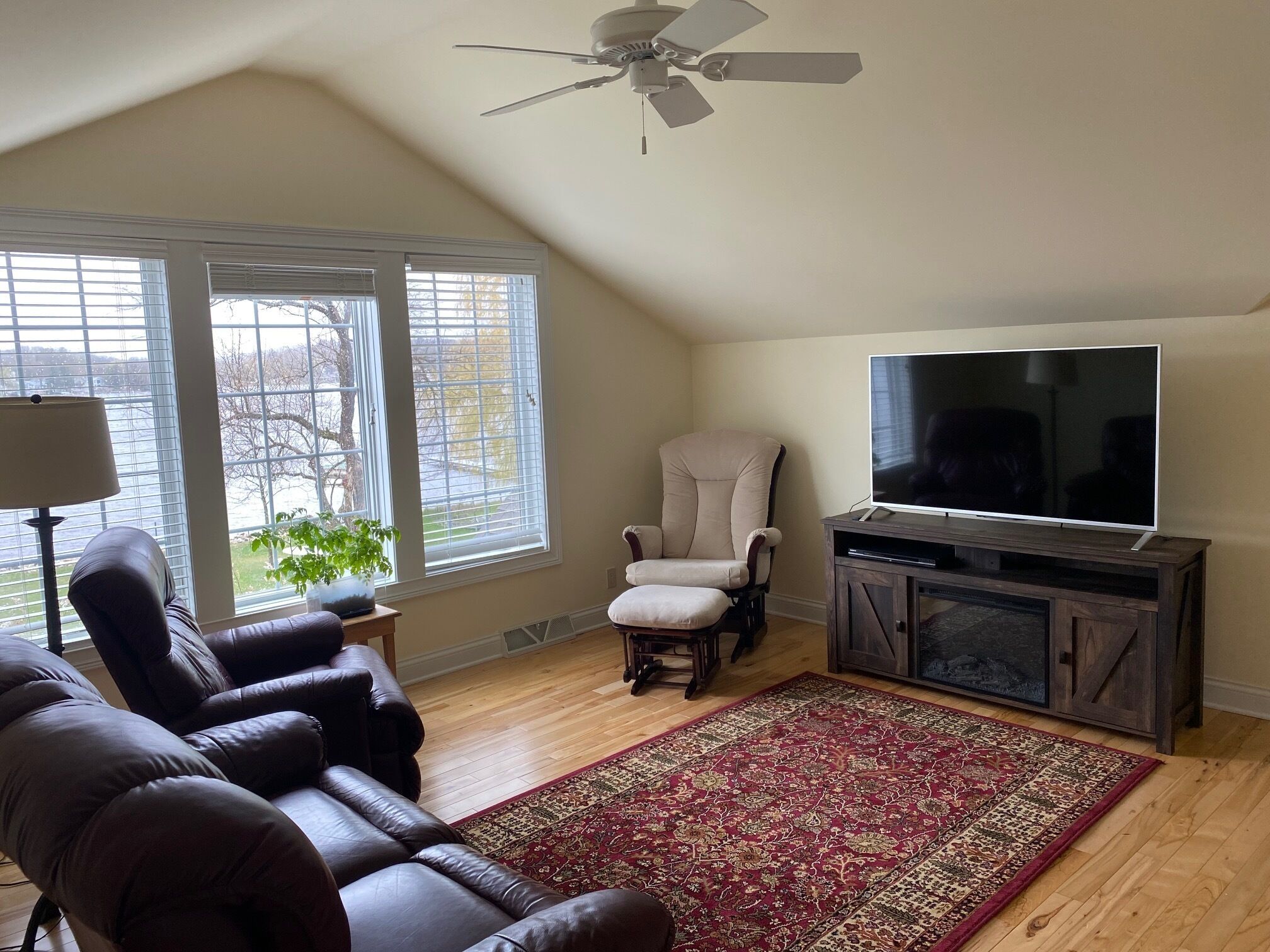 Piper's Retreat: 4 bed, 2.5 bath by Erin Hills Golf, Glacier Hills, Holy Hill Come and enjoy our family lake home located on quiet Friess Lake from September thru April! Our house has 4 bedrooms and 2.5 baths. You'll love the open-concept kitchen/dining room/living room with great lake views! We have a fully stocked kitchen with an island and seating, a fireplace, a large patio with a gas grill, an outdoor gazebo, and a large firepit for the family! You'll love the Fall Colors AND the ice fishing is superb!We are close to so many wonderful attractions! Do you like to golf? Erin Hills is just 7 miles away! It's only 2 miles to Glacier Hills County Park to hike. Holy Hill Catholic church is just 4 miles away- climb to the top of their tower and see all the way to downtown Milwaukee! Our home is 30 miles away from downtown Milwaukee's sports, concert and theater venues. Outdoor security cameras are located on the front porch AND the patio in the backyard for your safety.