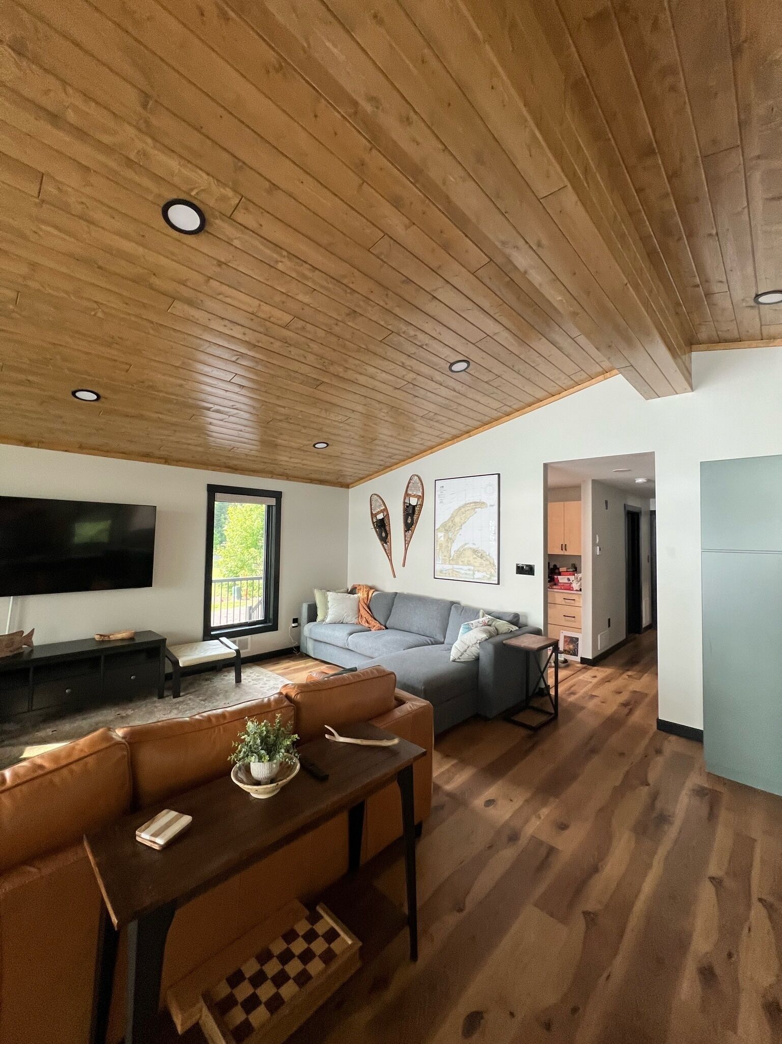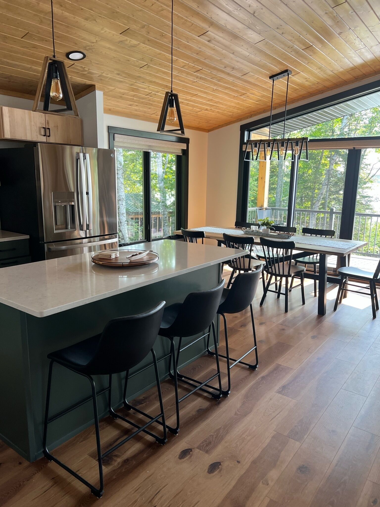 Brand New Lake House - Charming waterfront property near Mount Bohemia At the tip of the Keweenaw Peninsula, nestled on Lac La Belle—a small, beautiful inland lake off of Lake Superior—you’ll find our charming, modern lake house. Here, you’ll have access to the full top floor (on top of an unoccupied, unfinished basement level). Whether seeking adventure or tranquility, our home is the perfect place to immerse yourself in nature while also enjoying comfortable amenities, including a spacious living room, a gas fireplace, a washer and dryer, WiFi, a smart TV, and an open gourmet kitchen (including pantry staples and spices).There’s two bedrooms, both with queen beds. The master has an attached bathroom and large walk-in closet. Another full bathroom can be found in the hall. In the living room, there’s a queen sleeper sofa that can comfortably fit two. All linens (sheets/towels) will be provided. For your morning coffee or evening cocktail, take a seat on our wrap-around porch overlooking the lake. Down by the water, relax in the hammock, fish off the dock, or gather around the campfire. We also have kayaks and bikes available for use, as well as games, puzzles, and books.There’s something to do nearby in every season. Our place is:- 2 miles from Mount Bohemia (for snowboarding/skiing in winter)- 2.5 miles from Bare Bluff (a great spot for hiking with breathtaking views)- 2.5 miles from Bete Gris Beach on Lake Superior (with clear waters and a pristine shoreline)- 20-minute drive from Copper Harbor (where you can find restaurants, bike trails, Brockway Mountain, and more)- 30-minute drive from Calumet, Michigan (great for shopping and buying groceries en route to house)- 50-minute drive from Houghton (where you can find Michigan Tech, restaurants, and a brewery)There are also plenty of ATV, ORV, and bike trails nearby! The Keweenaw Peninsula is a popular destination for snowmobilers in the winter. Golfers can enjoy a few courses in the area, including The Keweenaw Mountain Lodge, Calumet, Sandy Pebble, and Portage Lake Golf Courses. All in all, our lake house is a wonderful place for friends and families to enjoy lake life, forge memories, and embrace the beauty and serenity of the Upper Peninsula.