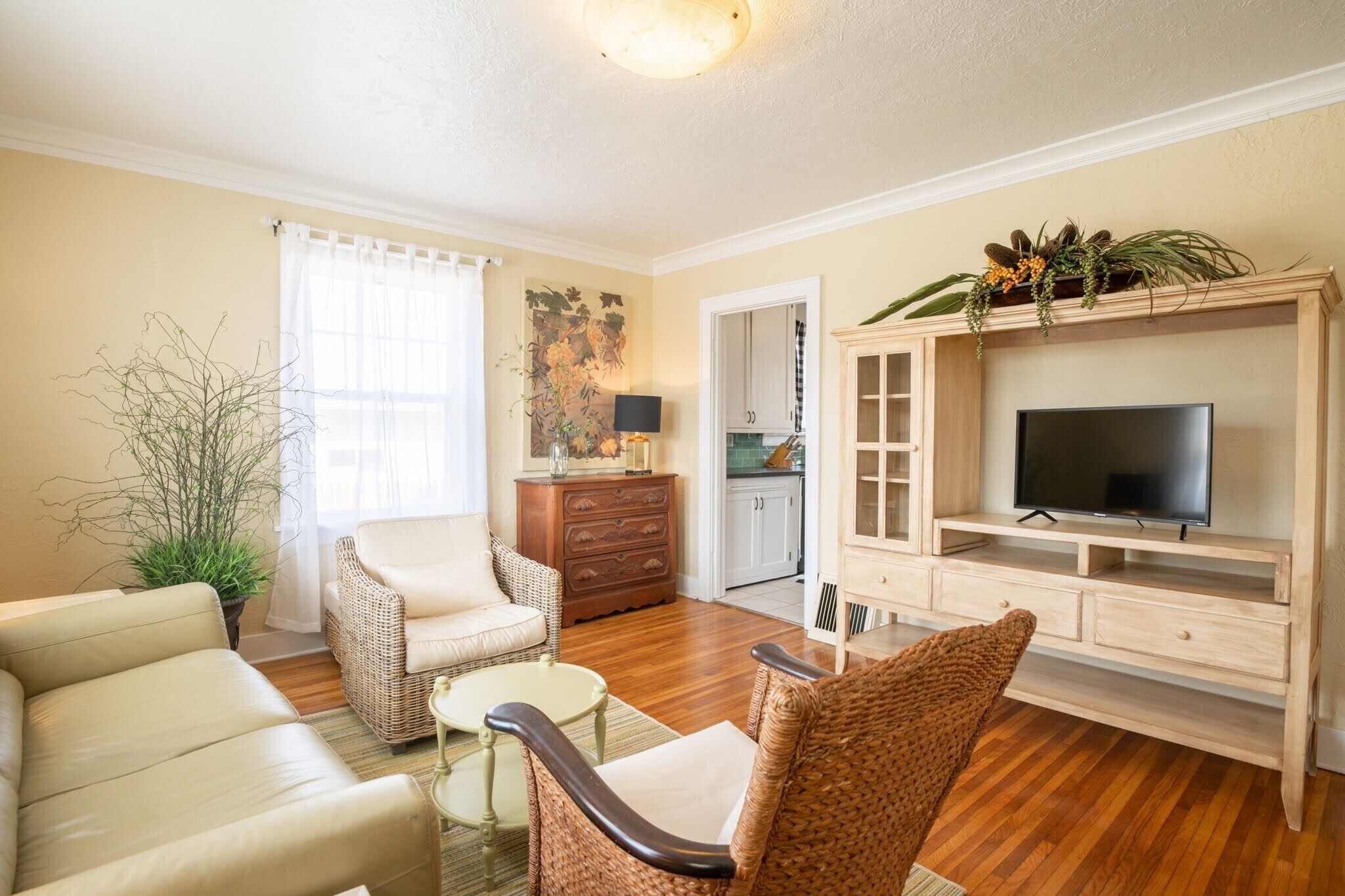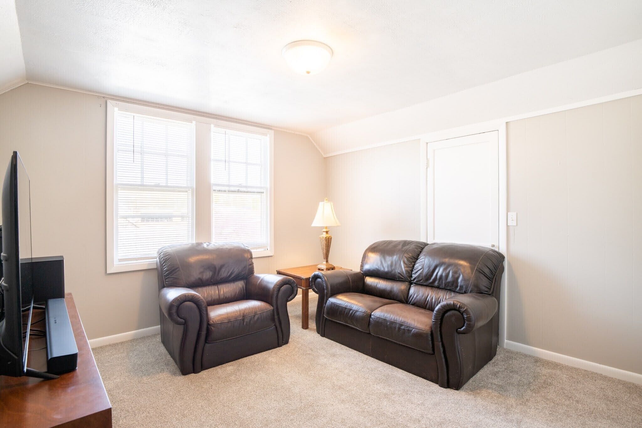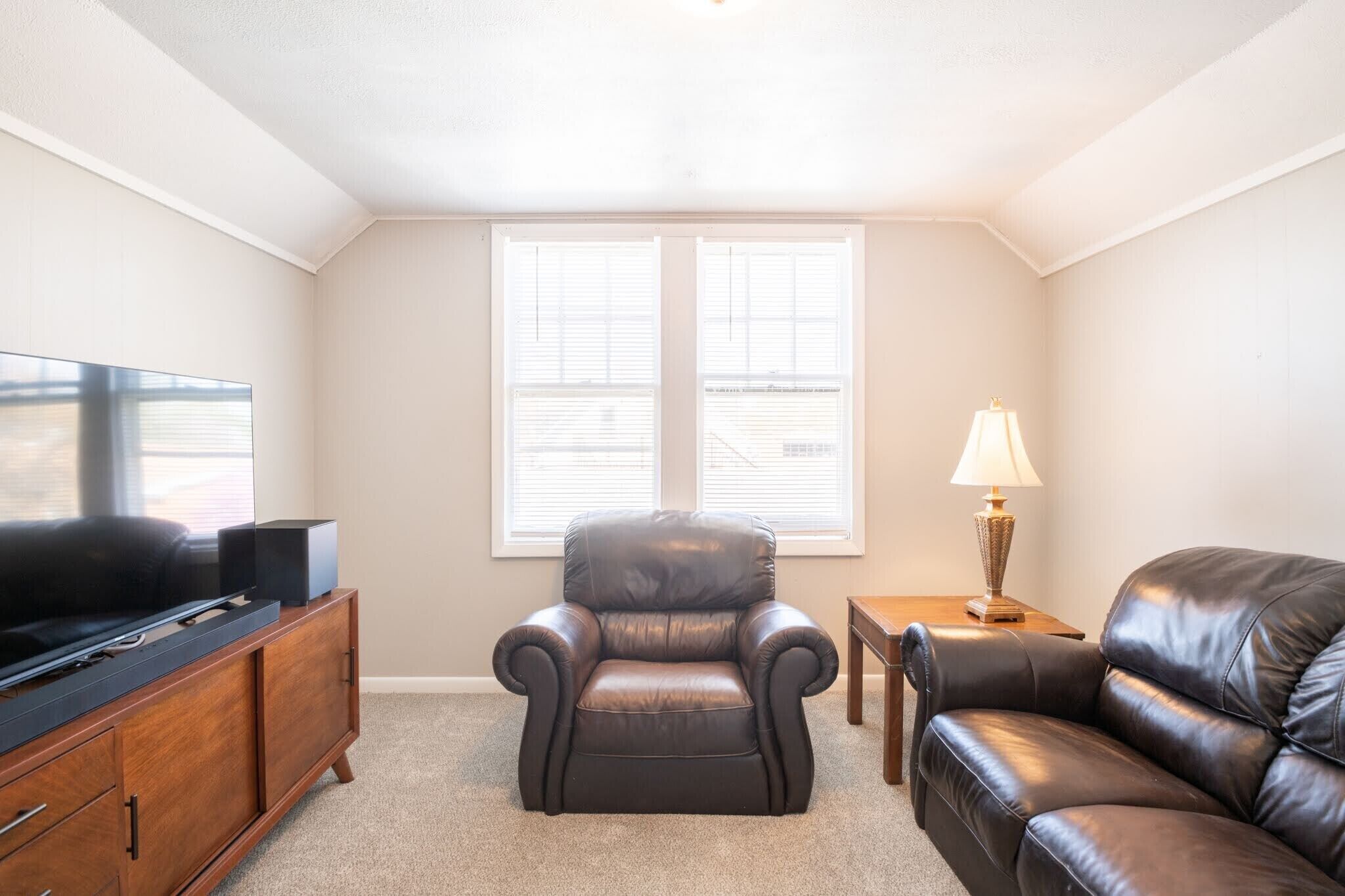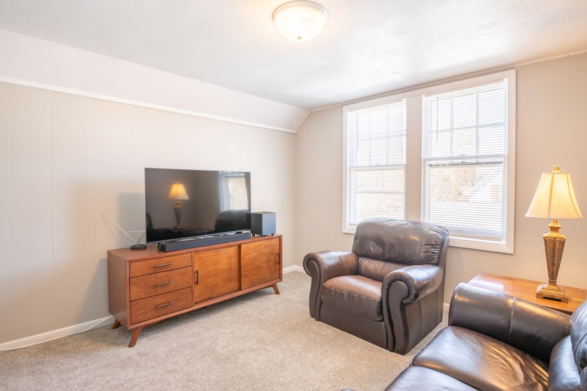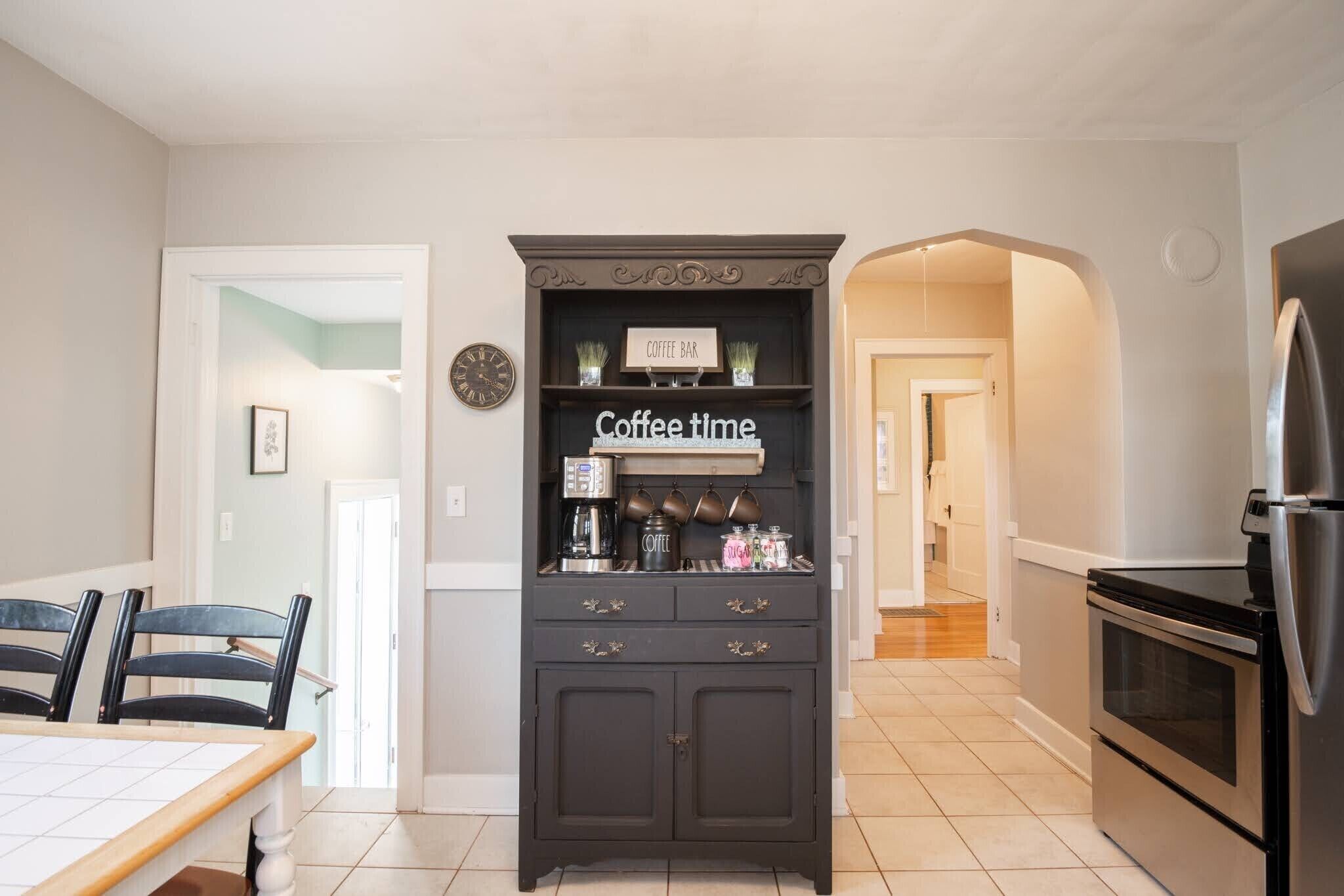 Charm on Clifton Find all of the peace of small town life in this 1937 restored bungalow in the heart of Morton Illinois. This inviting home is a cozy relaxing retreat. Ideally located within walking distance to several restaurants, bars, parks, coffee shops, and bike trails. Hard wood floors and tiled kitchen/bathroom. The kitchen features a coffee bar. Newly remolded upstairs has 1 bedroom with 2 full beds and an entertainment room with 50" HD TV. Main floor features 2 bedrooms with queen beds each. Full basement with washer and dryer/ironing. Grill and full patio set for outdoor fun. Private Backyard. Garage for small car. Whole home air purifier system installed June 26, 2021. Brand new AC unit installed June 26, 2021. New Stand alone AC unit installed upstairs bedroom. There is one full bathroom recentky remolded in the main floor. In June 2021, Filming for Morton’s only movie, Baking up Love, took place during Mid June at Charm On Clifton. We were honored to have filming at our place to help our community in Morton! A big Thanks to Candice Cain (director) for choosing our home to film! Look for the Movie in fall 2021! Our house and decorations are not designed for young toddlers or infants. Please be aware of these limitations before you book. New Air Hockey table and 6 person game table added to basement summer of 2021. In October of 2021 we added a 6 person game table in the basement for playing cards etc. We added a Ninja Blender in late October 2021 A Fuse Ball table was added spring of 2022A frisbee disc golf basket was added to the back yard July 2022.