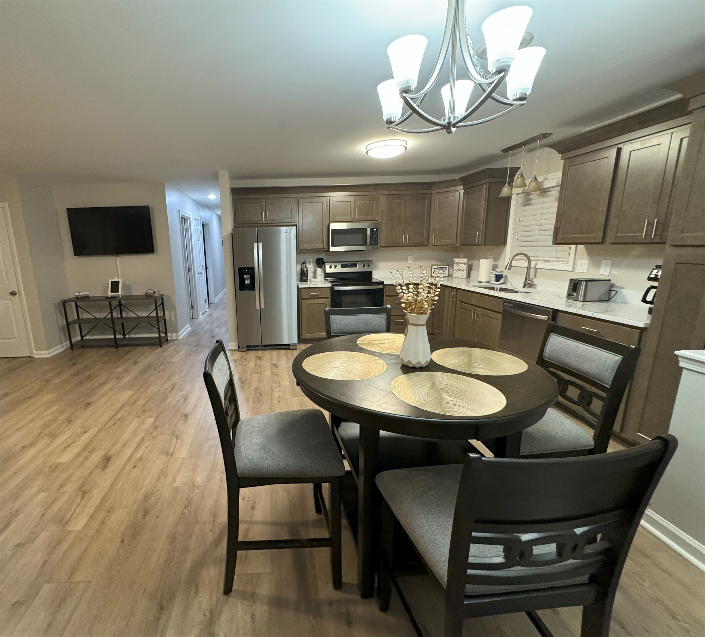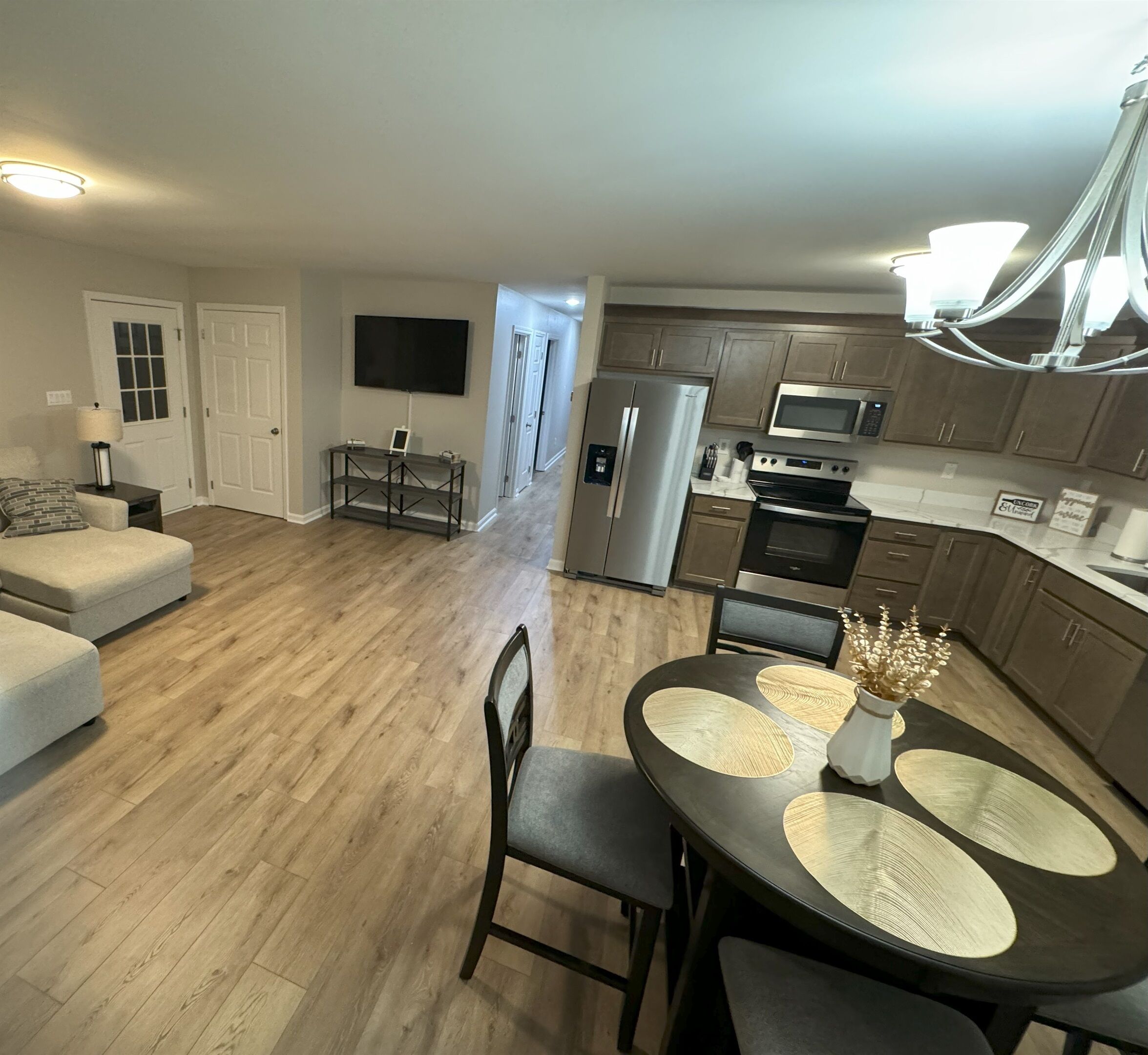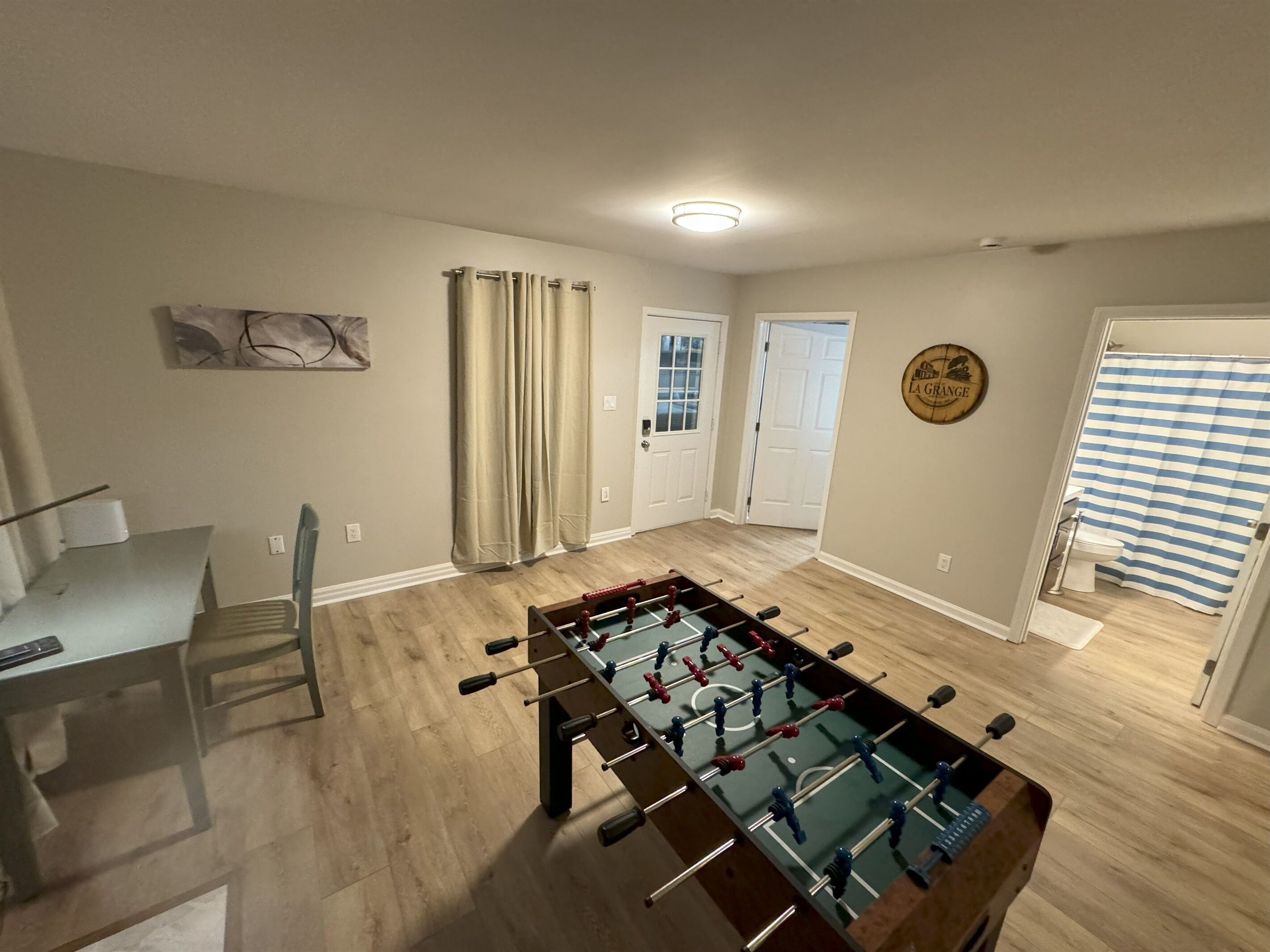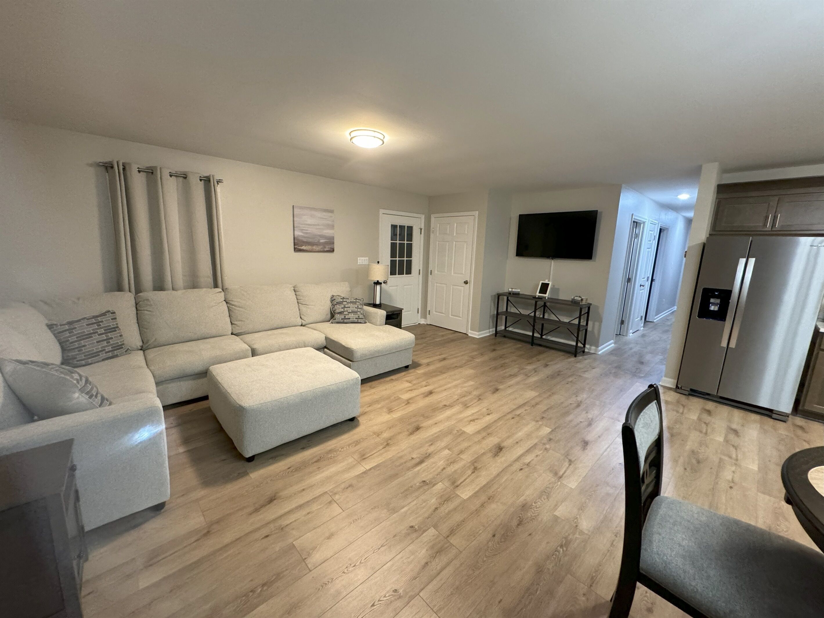 3 bed, 2.5 bath 1,900 sq ft 5-star renovated private home The Bourbon Rail is a 3 bedroom, 2.5 bathroom completed renovated home with a finished walkout basement within walking distance of downtown La Grange, Kentucky. In November 2023, the entire home was remodeled including all new laminate flooring, paint, and furniture along with all new bathrooms and kitchen including all new cabinets and appliances, and so much more. With two king bedrooms and one full bedroom on the main level and a queen sofa sleeper in the walkout basement, this home sleeps up to 8 people. The home is within walking distances to multiple restaurants, a coffee shop, antique stores, an escape room, and much more. And don't forget to take a seat at the observation deck as you watch the train go right through the middle of downtown.Only 21+ years of age and older are allowed to rent.
