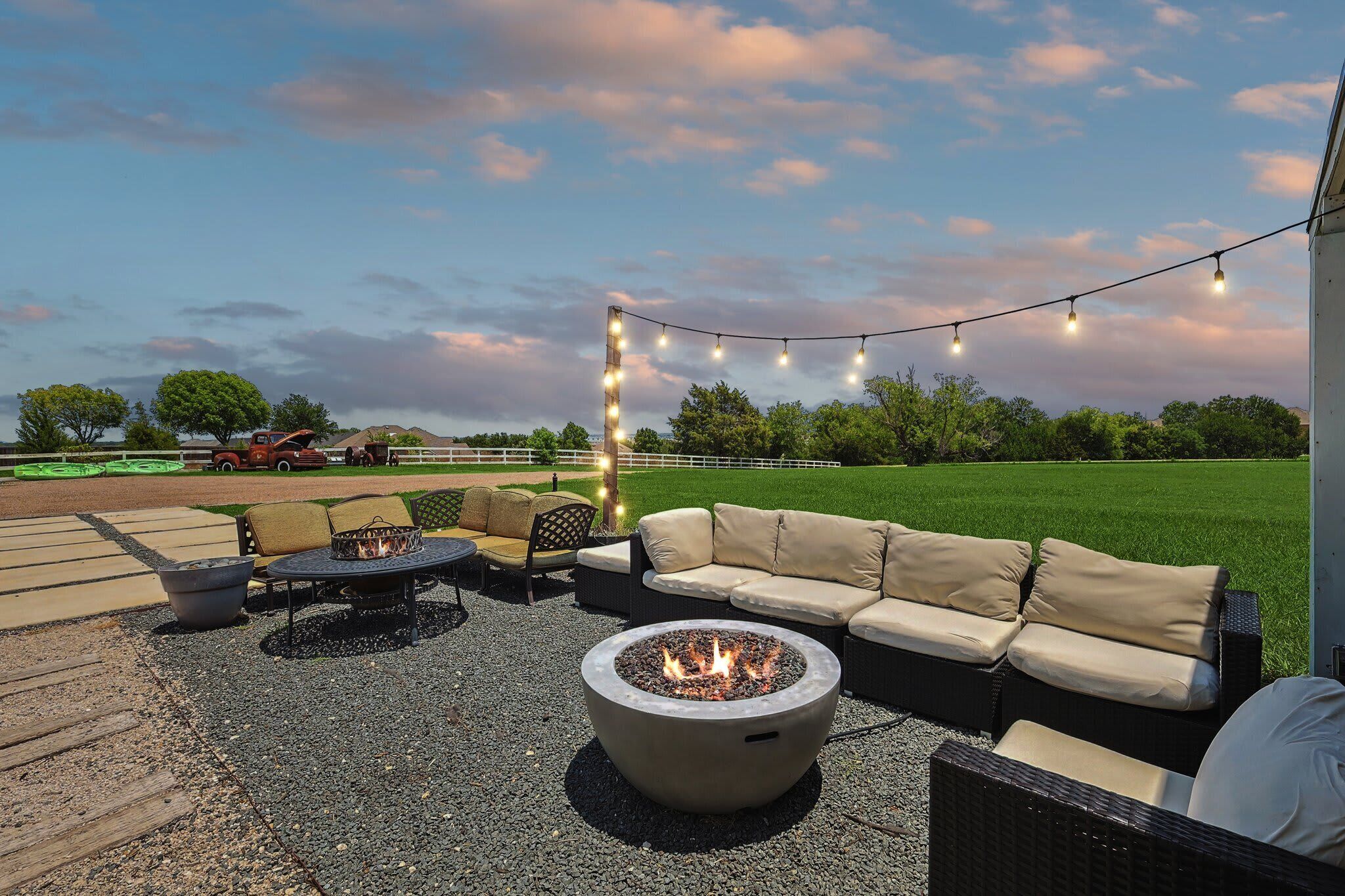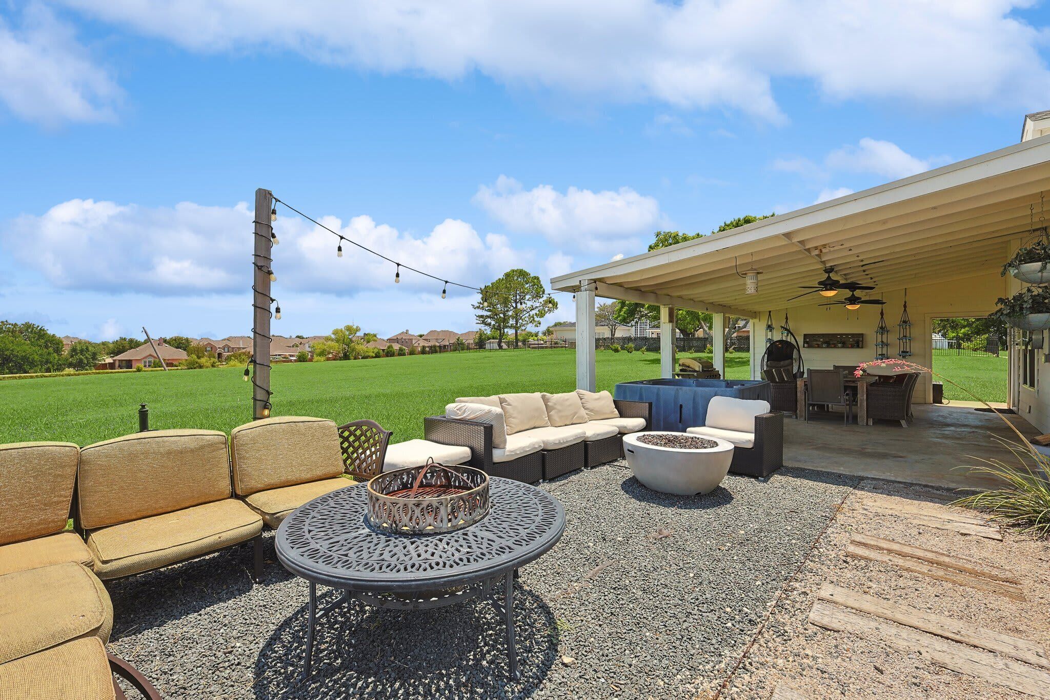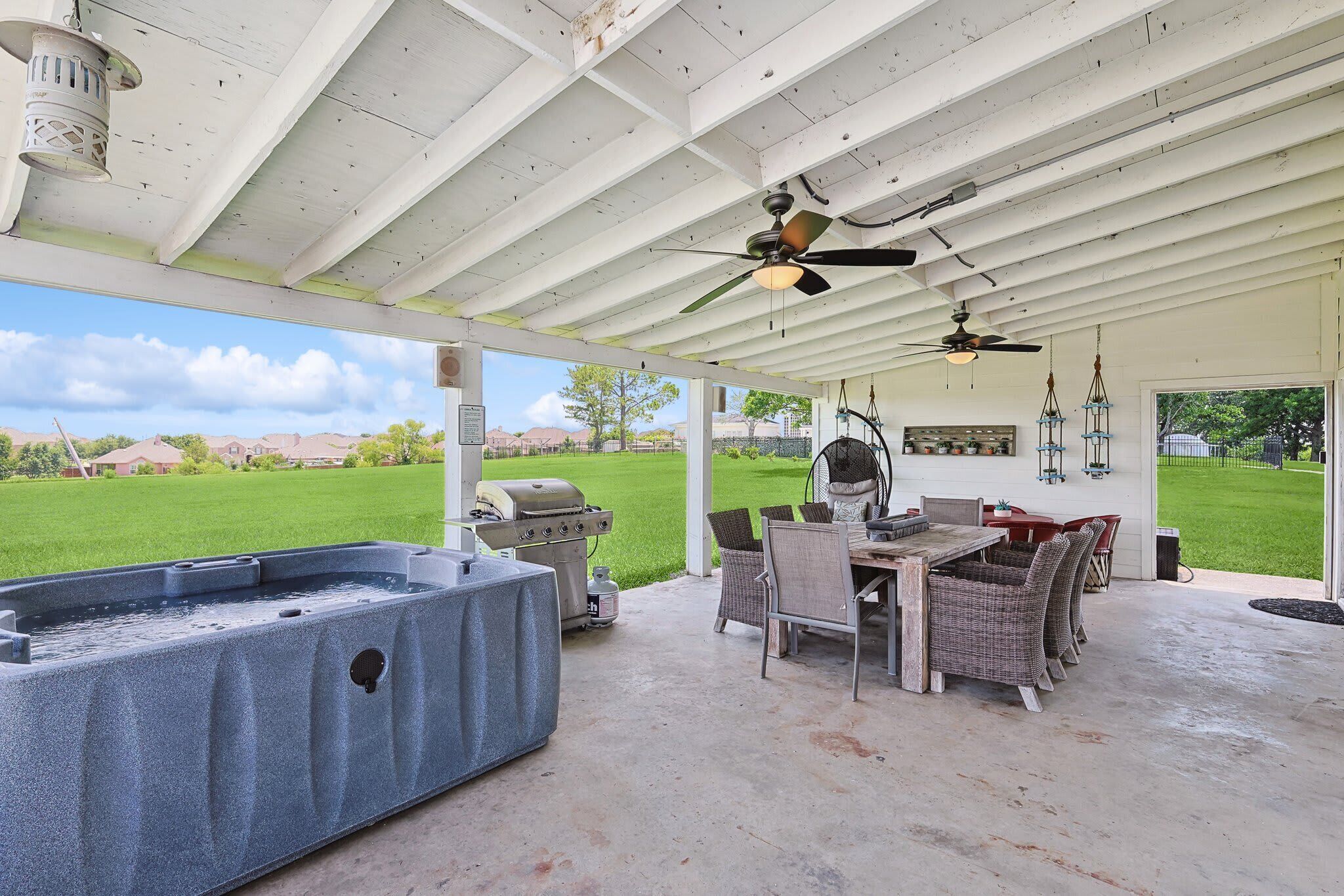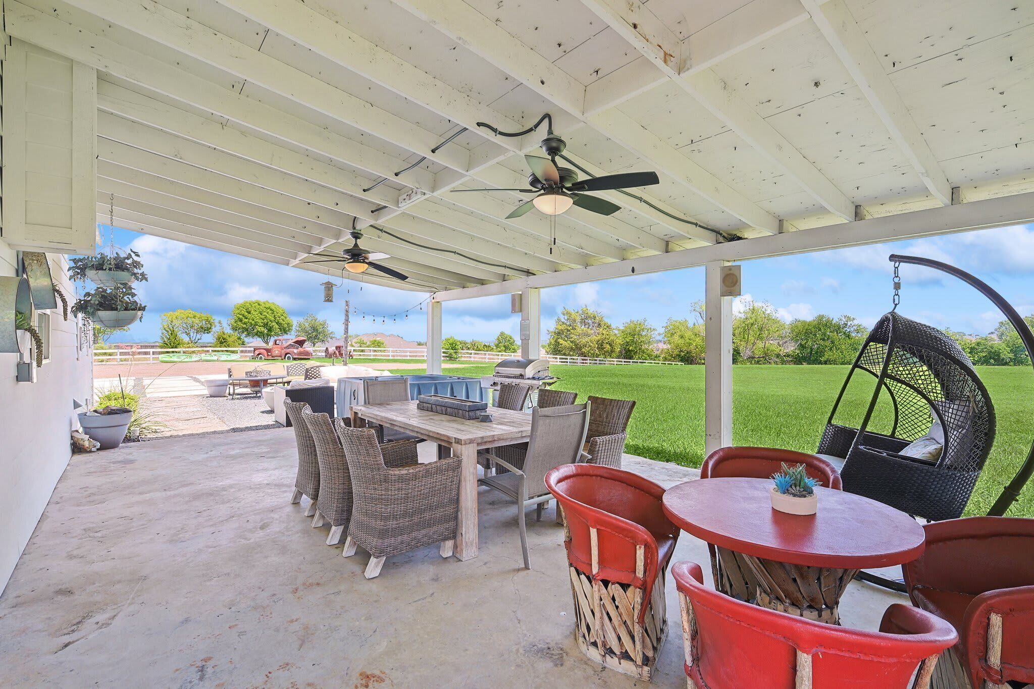 Scenic Barndominium, Hot tub & Separate Suite Summary:Looking for a nice quiet vacation getaway? This is it! Let this rustic charming barn be your home away from home! Featuring 6 bedrooms and 4 bathrooms, this place offers plenty of open space to gather with friends and family. Come experience the indoor/outdoor lifestyle with a patio, fire pit, BBQ grill and hot tub. After all, it’s the little details that make a big difference!✔ 6 bedrooms (sleeps 14)✔ 4 bathrooms✔ Fire pit, grill, hot tub✔ Separate Dwelling✔ Game RoomThe Space:Our home caters to both short term and medium term stays, making it an excellent choice for corporate housing needs. Whether you find yourself temporarily displaced from your home or require accomodations for your team during an extended project in our area, we provide a welcoming and comfortable "home away from home" experience.★ KITCHEN ★You will be amazed by the 2 kitchens. They both look like they walked straight out of Joanna Gaines’ Magnolia vision! Equipped with classic white subway tiles and open shelving for an authentic rustic atmosphere, this open-concept kitchen makes it easy to whip up a southern meal while enjoying time with good company. It’s even got a farm-style double sink! ✔ 2 fully equipped kitchen for all your cooking needs✔ Stainless steel appliances - oven, fridge, freezer, stove, microwave, dishwasher✔ Cooking essentials, place settings, and dining utensils✔ Granite countertops, natural sunlight, and ample counter space★ LIVING AREA ★Modern and chic, this spacious living area was designed for creating great memories with family and friends. Tastefully furnished with artwork that pays homage to the farming lifestyle, this spacious living room has plenty of seating for everyone with not one but two curved sectionals. No need to make anyone sit on the floor!✔ 2 curved sectionals for comfortable seating✔ Coffee tables, lighting, and artwork ✔ Flat-screen TV and high-speed Wi-Fi✔ Open-concept layout with overhead fan✔ Extra living area on the separate dwelling ★ BREAKFAST NOOK ★This part of the house gets plenty of natural sunlight which makes it perfect for serene peaceful mornings. Whether you’re in need of some quiet “me time” with your morning coffee or you live by the “early bird gets the worm” mantra, this kitchen is ready to be your partner in crime!✔ Dedicated breakfast nook ✔ Seating for 6+ guests✔ Plenty of natural sunlight✔ Rustic décor and indoor plants★ DINING ROOM ★ This dinner table is so large that you might have to raise your voice when you ask for the potatoes to be passed to you! There’s nothing quite like a homecooked meal shared amongst some of your favorite people so gather around and enjoy a toast to each other’s company. Away from the distractions of daily life, take the time to enjoy being in the presence of your loved ones. ✔ Dedicated dining room for sit-down meals ✔ Dining table with seating for 12✔ Designer accents for a restaurant-like feel★ BEDROOMS ★With 6 bedrooms to choose from, be sure to check them all out before settling in! Each bedroom offers a little something different so free feel to rock-paper-scissors to see who gets the first pick of the rooms. The 5th bedroom has a comfortable sofa that pulls out into a bed for additional sleeping space – perfect for those who enjoy falling asleep midway through a movie!✔ Master bedroom with king-sized mattress✔ 2 additional bedrooms with queen-sized mattresses✔ A 4th bedroom with a bunk bed with 3 full mattresses✔ A 5th bedroom with a TV and a sofa bed✔ 6th bedroom is a master on the separate dwelling ✔ Can comfortably sleep 14 guests★ BATHROOMS ★We don’t shy away from bold statements in this household! Featuring contrasting geometric tilework in every bathroom, the rustic barndominium theme extends into the bathrooms. Each bathroom has its own unique touch – from dual vanities to designer lighting – but they all include essential toiletries and a soothing space for some quiet “me time”.✔ 4 private bathrooms✔ Glass walk-in standing showers for easy accessibility✔ Shower and bathtub for a nice bubble bath✔ Essential toiletries included ★ OUTSIDE SPACE ★True to our farm house roots, there is plenty of open green space for everyone to enjoy! Let the kiddos roam wild and free as they embrace their youthful imaginations. Meanwhile, you can sit back and enjoy a cool beverage from the comforts of the covered patio. Equipped with everything you need to embrace the indoor/outdoor lifestyle, be sure to enjoy the fire pit, outdoor grill, and hot tub!✔ Covered patio for indoor/outdoor living✔ Outdoor dining table and patio furniture✔ Outdoor grill for easy BBQ meals✔ Fire pit and string lights✔ Hot tub for relaxation★ ENTERTAINMENT ROOM ★Whether you’re looking for a bar-style space to catch the latest game or a more intimate lounge area, make your way to the game room to see what happens on the farm house when the sun goes down. If you’re feeling competitive, feel free to your friends to some friendly foosball or Mortal Kombat!✔ Foosball table✔ Mortal Kombat arcade✔ Bar-style seating with a wall-mounted TV✔ Lounge area with TV and media console★ ADDITIONAL AMENITIES ★✔ Free parking is available to guests. There is plenty of space available on the property. ✔ There is a laundry room with a washer and dryer available for your use. Lastly, we must stress that we do NOT allow parties or large unauthorized gatherings of any sort at our property. We are adamant about only welcoming families and groups who are looking to relax and enjoy the beautiful stunning backyard and the amenities the home has to offer.Please note our occupancy is 14 guests but, by the City of Garland code, the property may not be occupied by more than three persons who are unrelated by blood, adoption or marriage, with exception of children related to an 